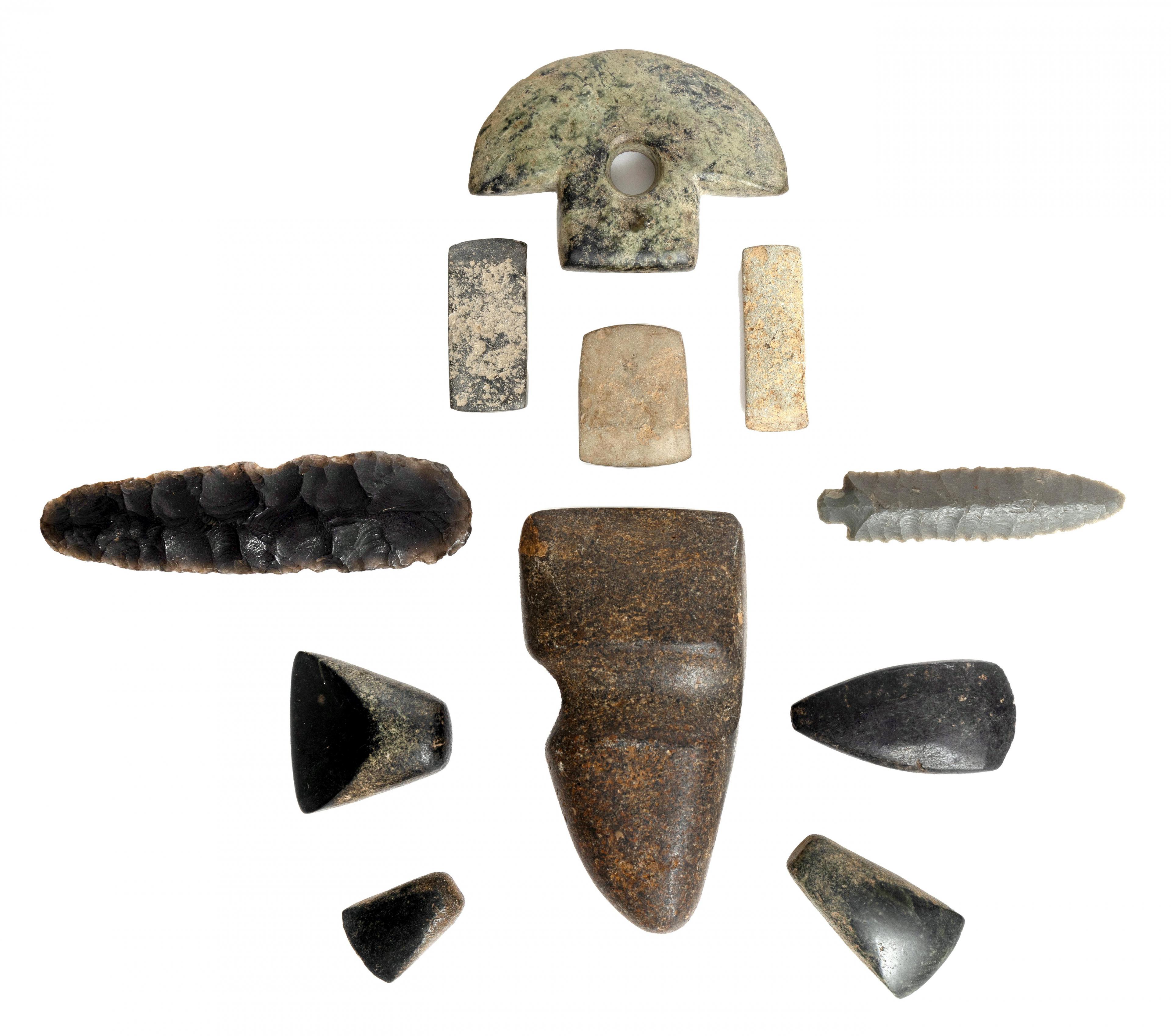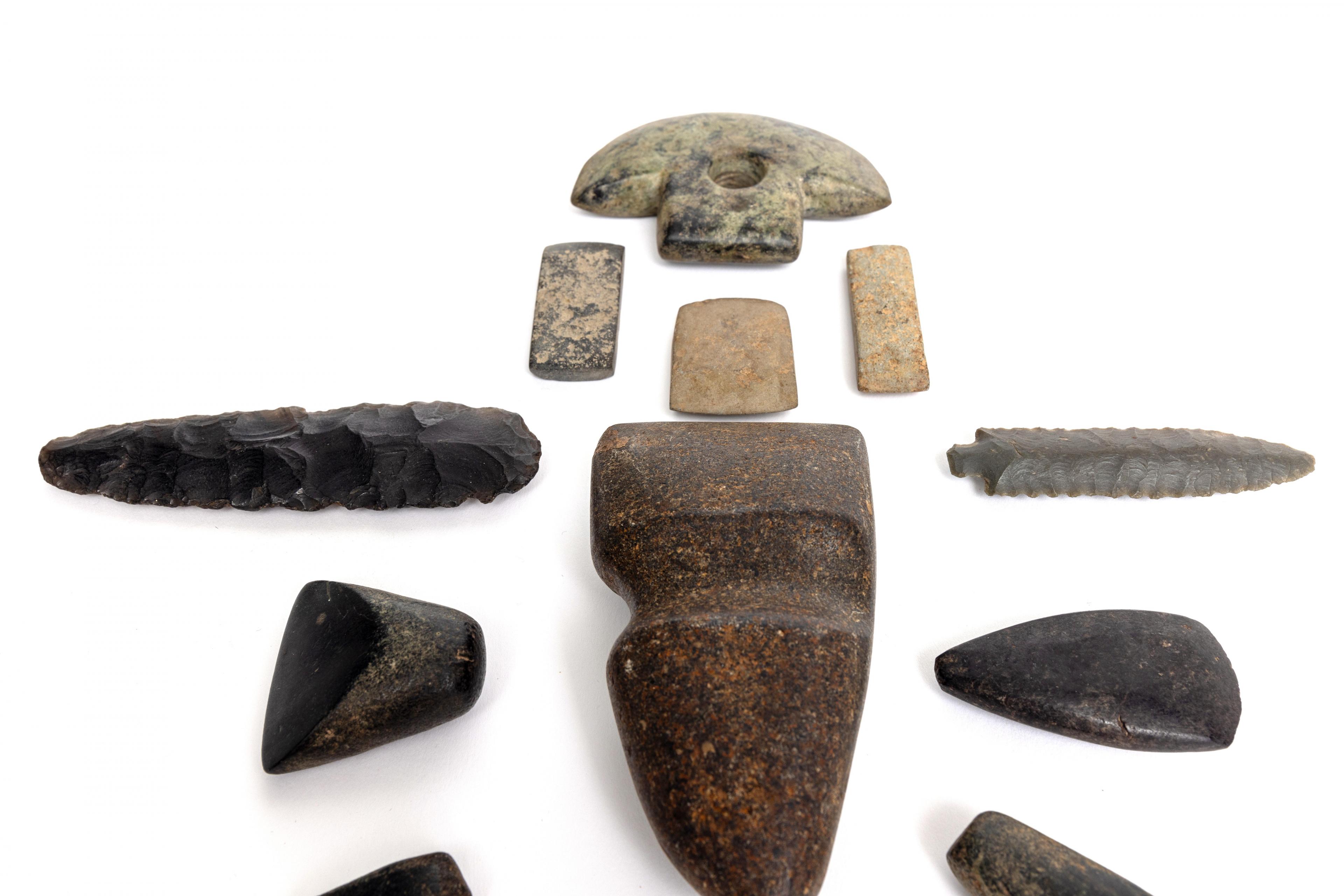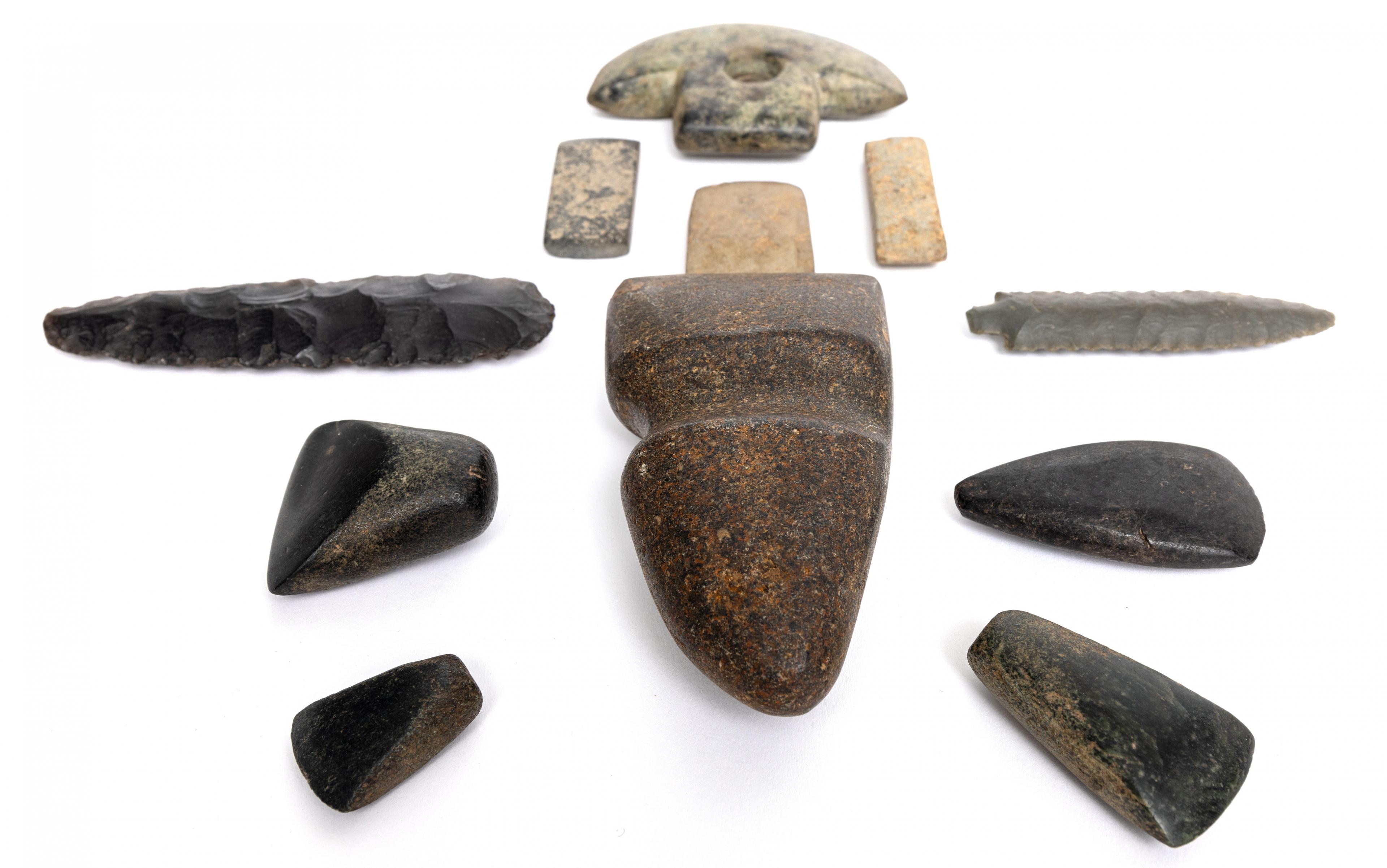 Mexico-Guatamala, Maya Culture, 100 - 900 CE a collection of nine stone axes and two stone tools,