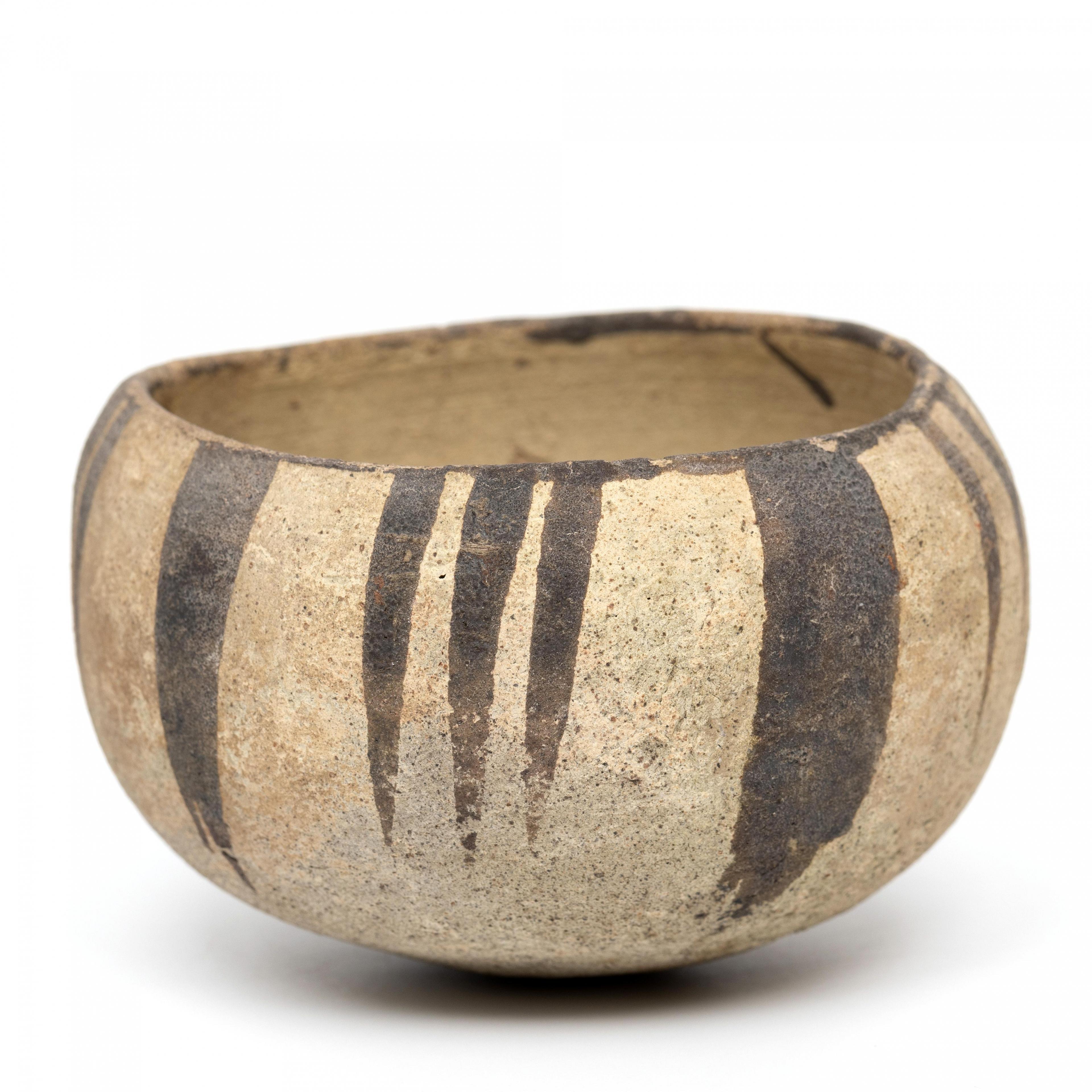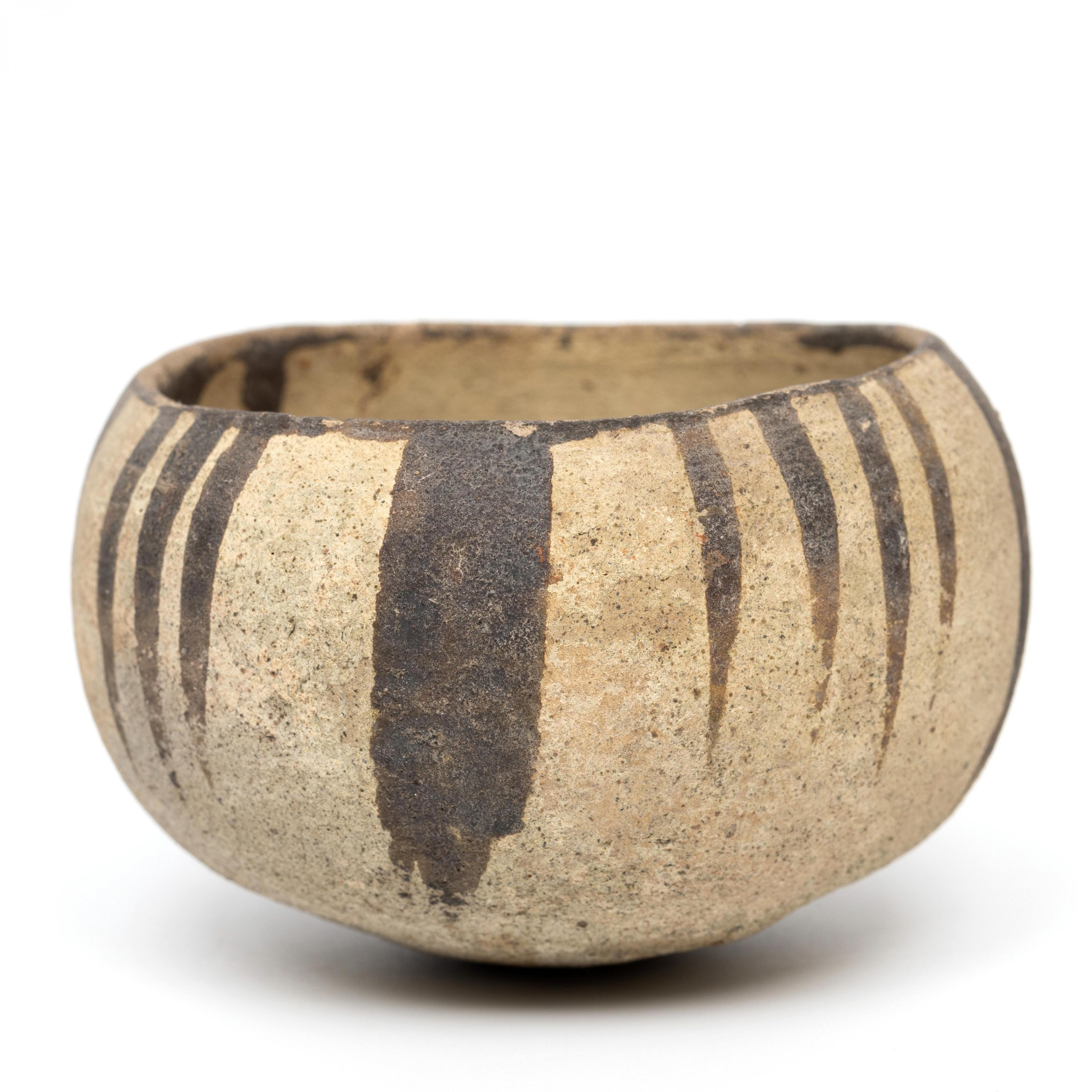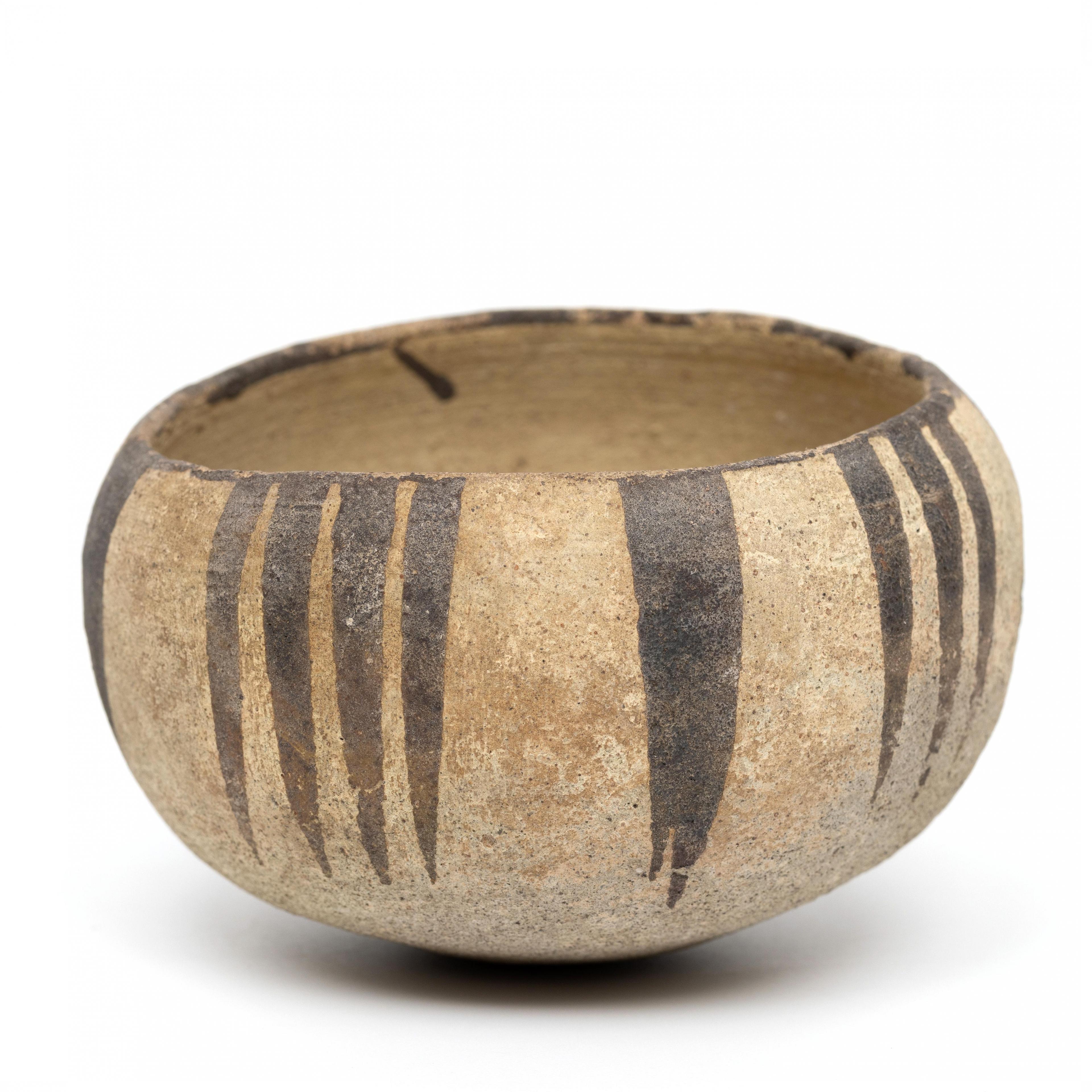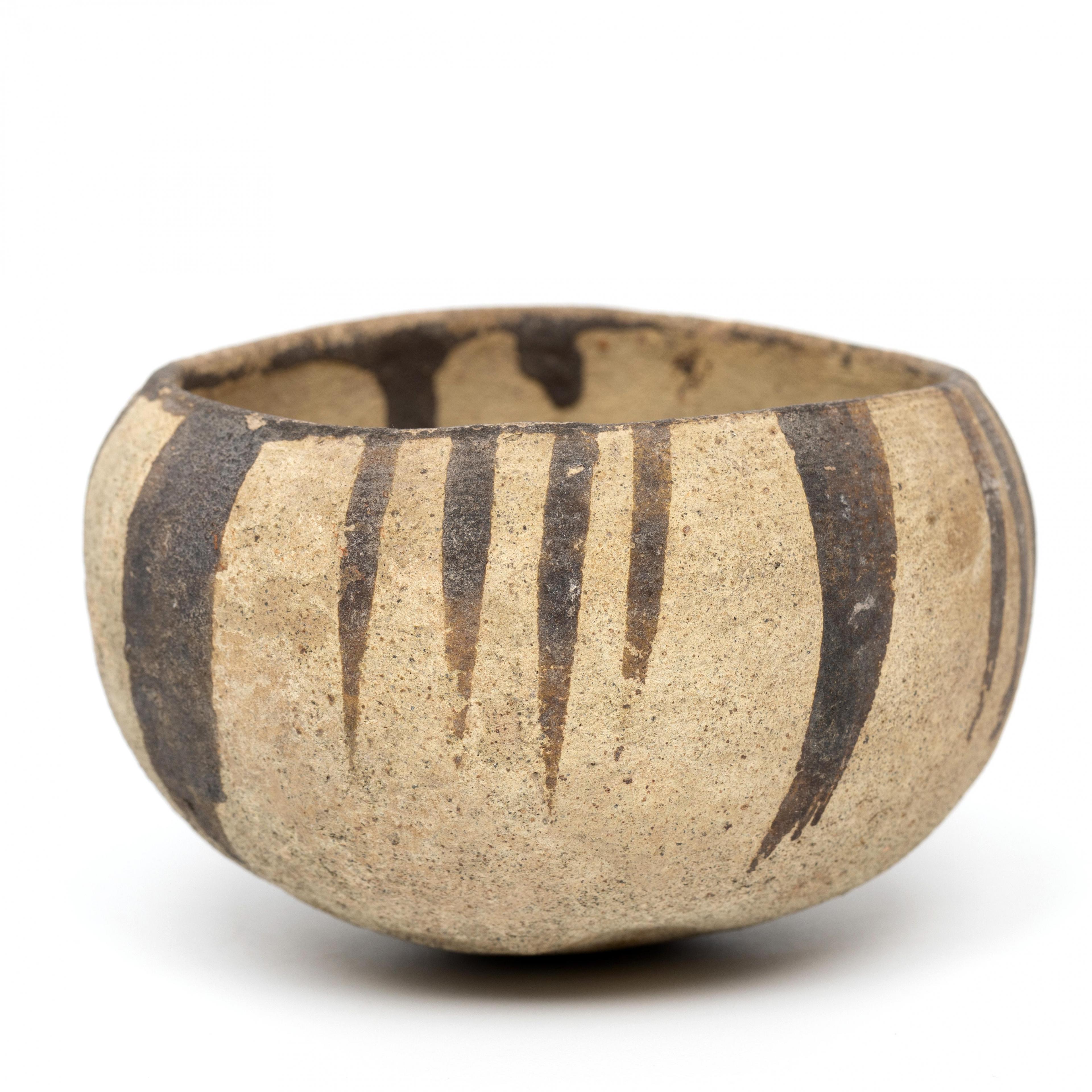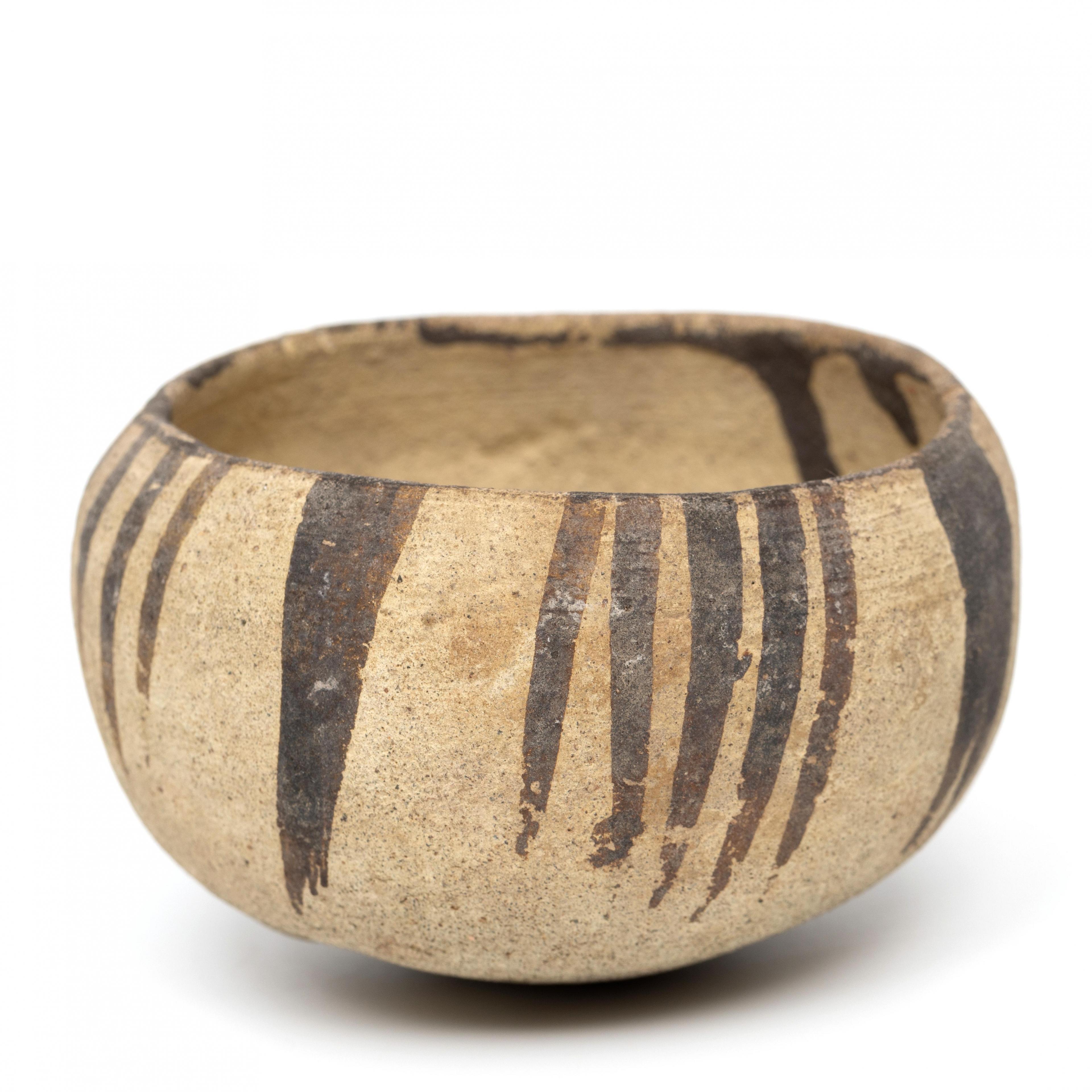 with decor of lines in brown slip.