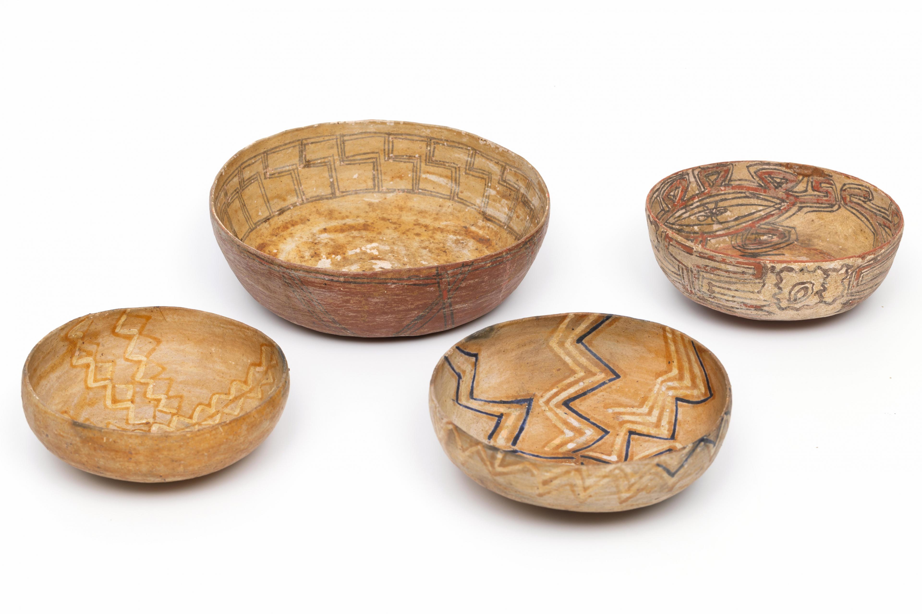 North Argentinia, Amazone Indian, four painted terracotta ceremonial bowls,