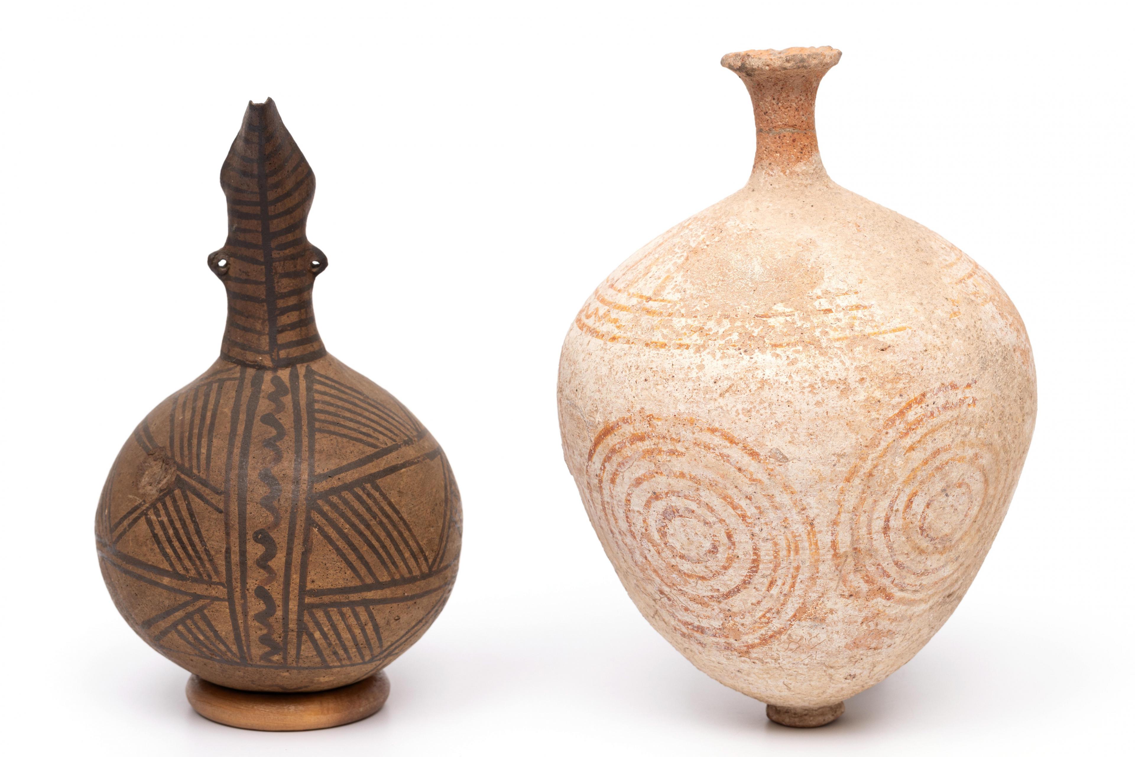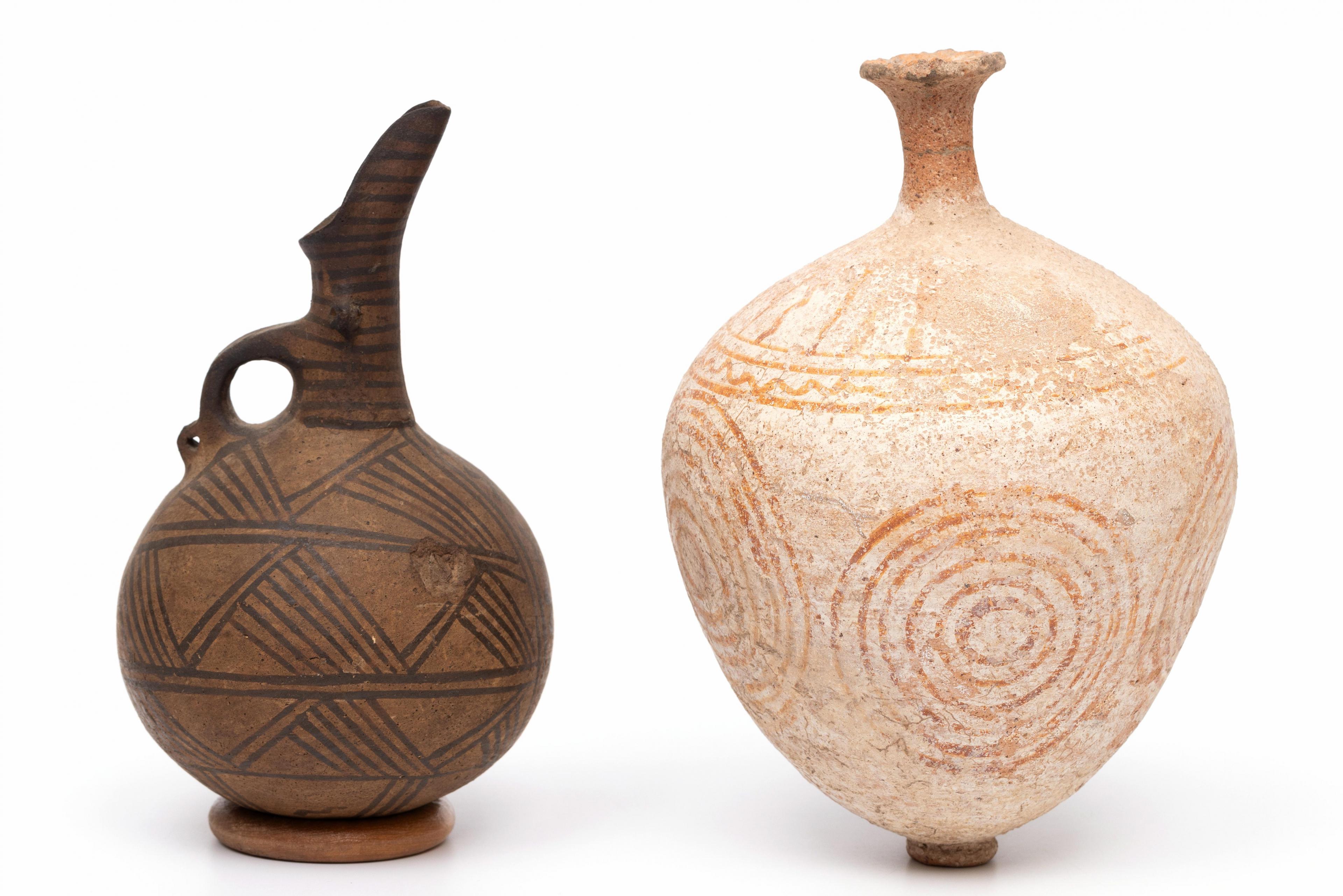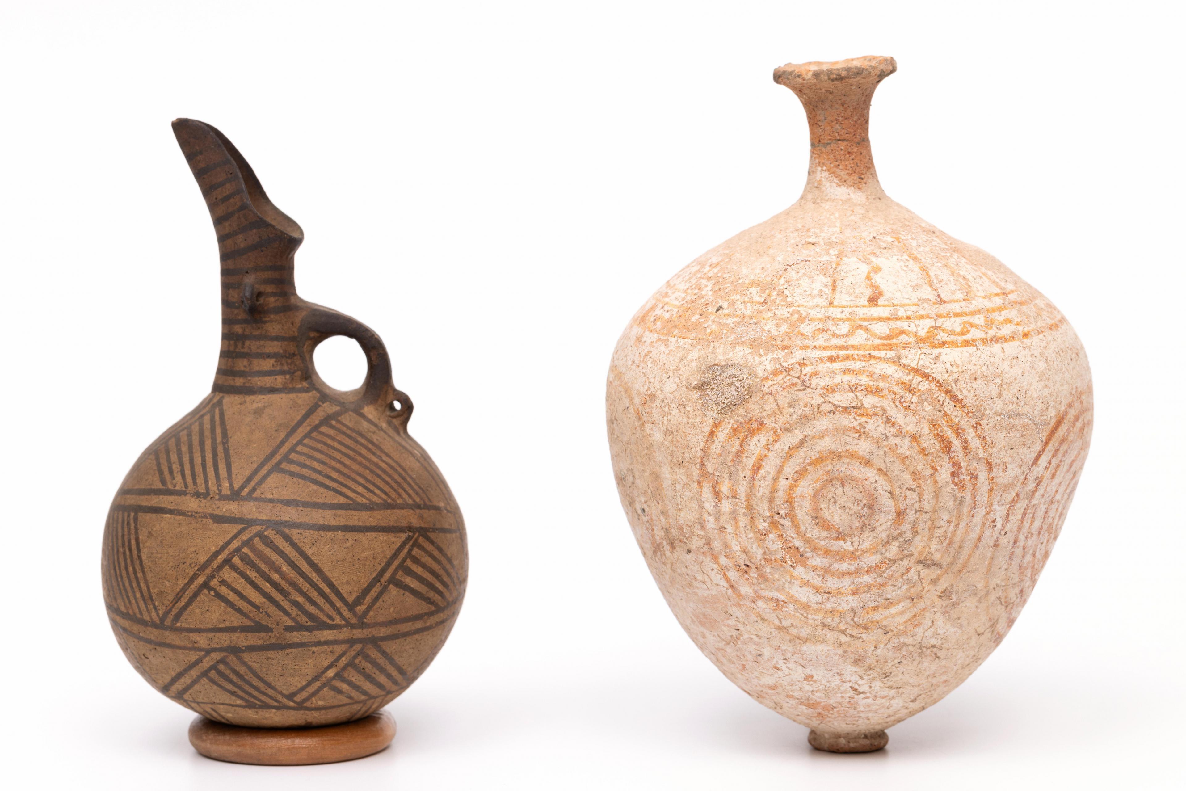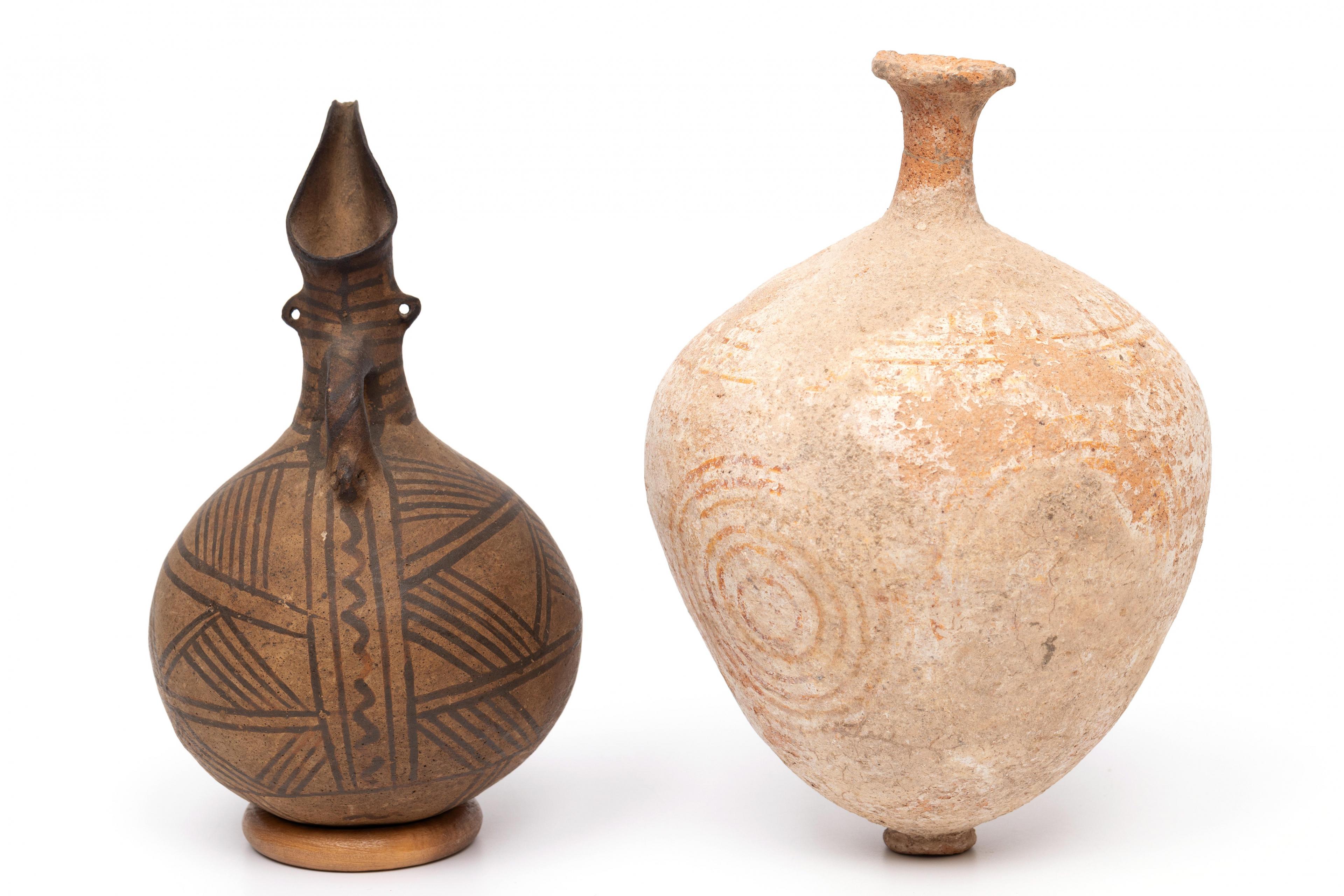 Cyprus, terracotta vase, Bronze Age, ca. 2000 - 1500 BCE and a bi-chrome terracotta jug, ca. 1000-500 BCE