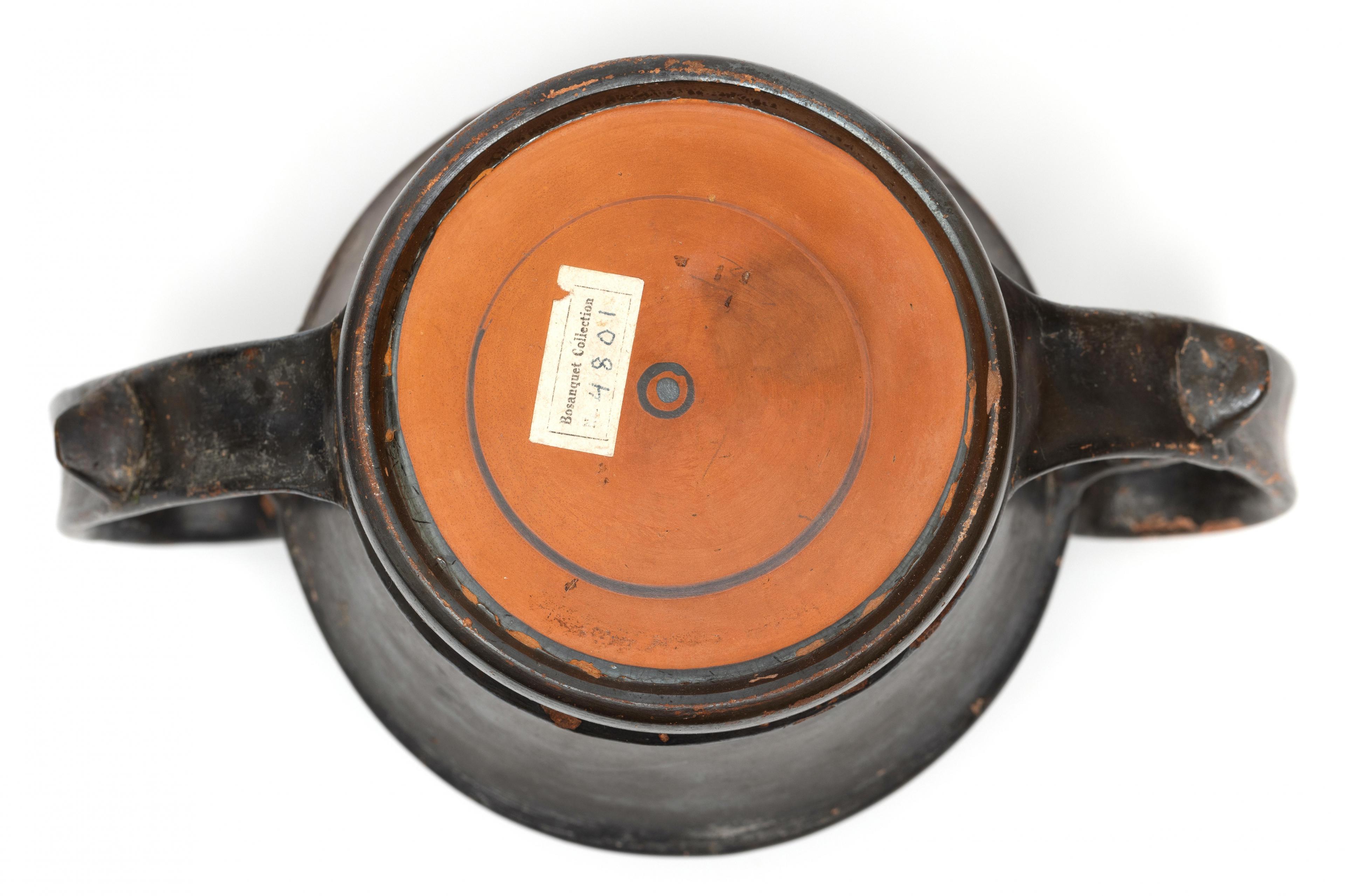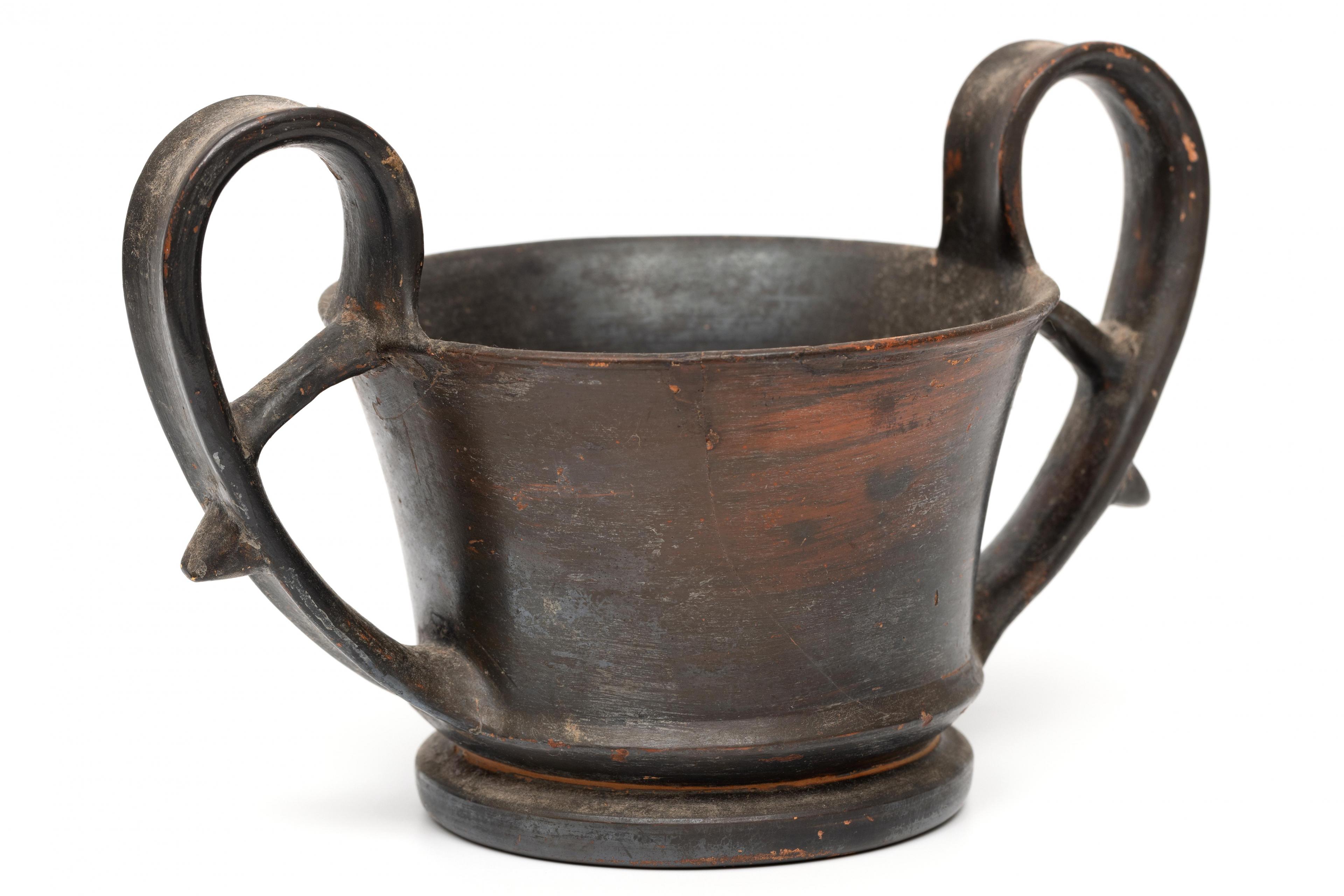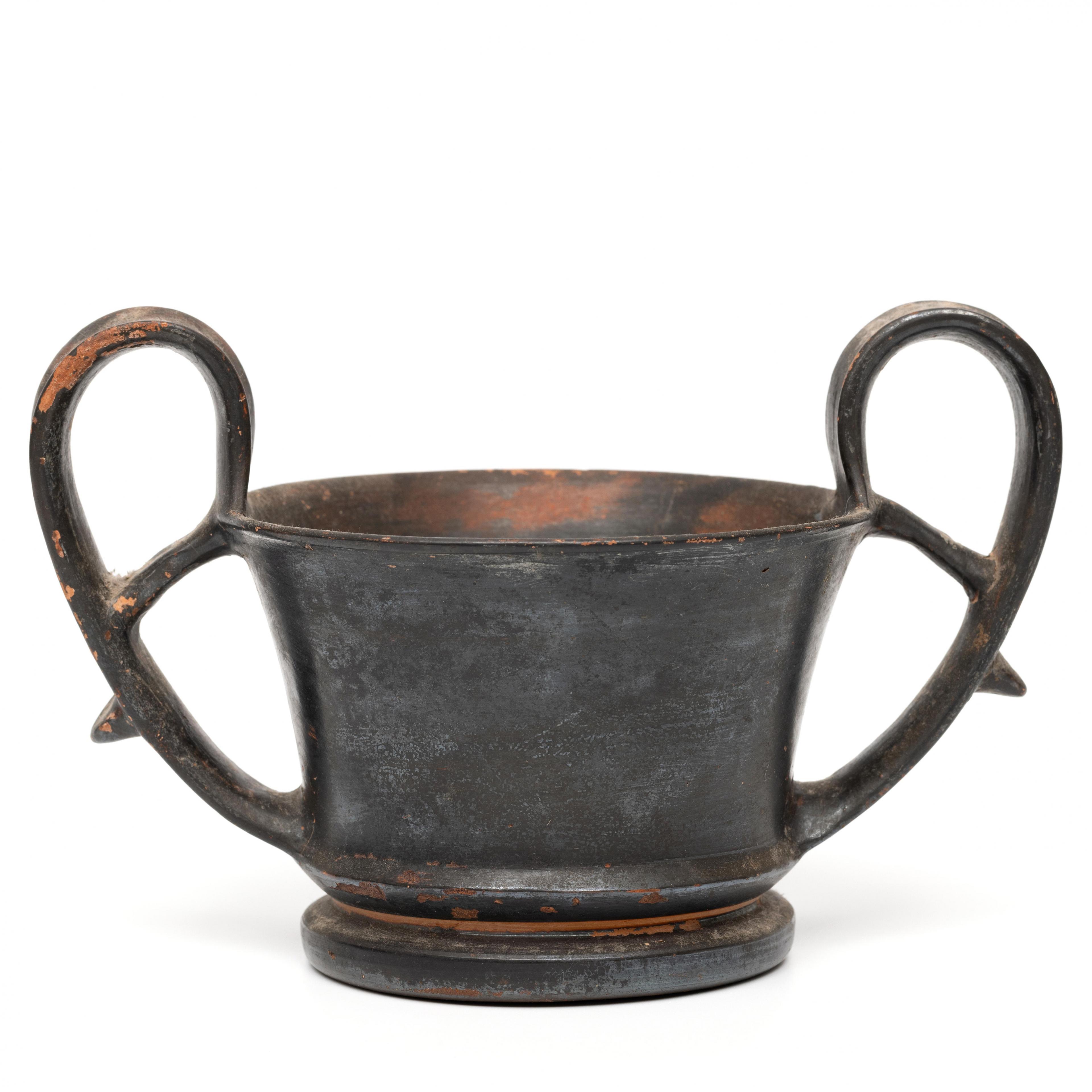 A Greek, Attic terracotta kantheros, 5th-4th century BCE;