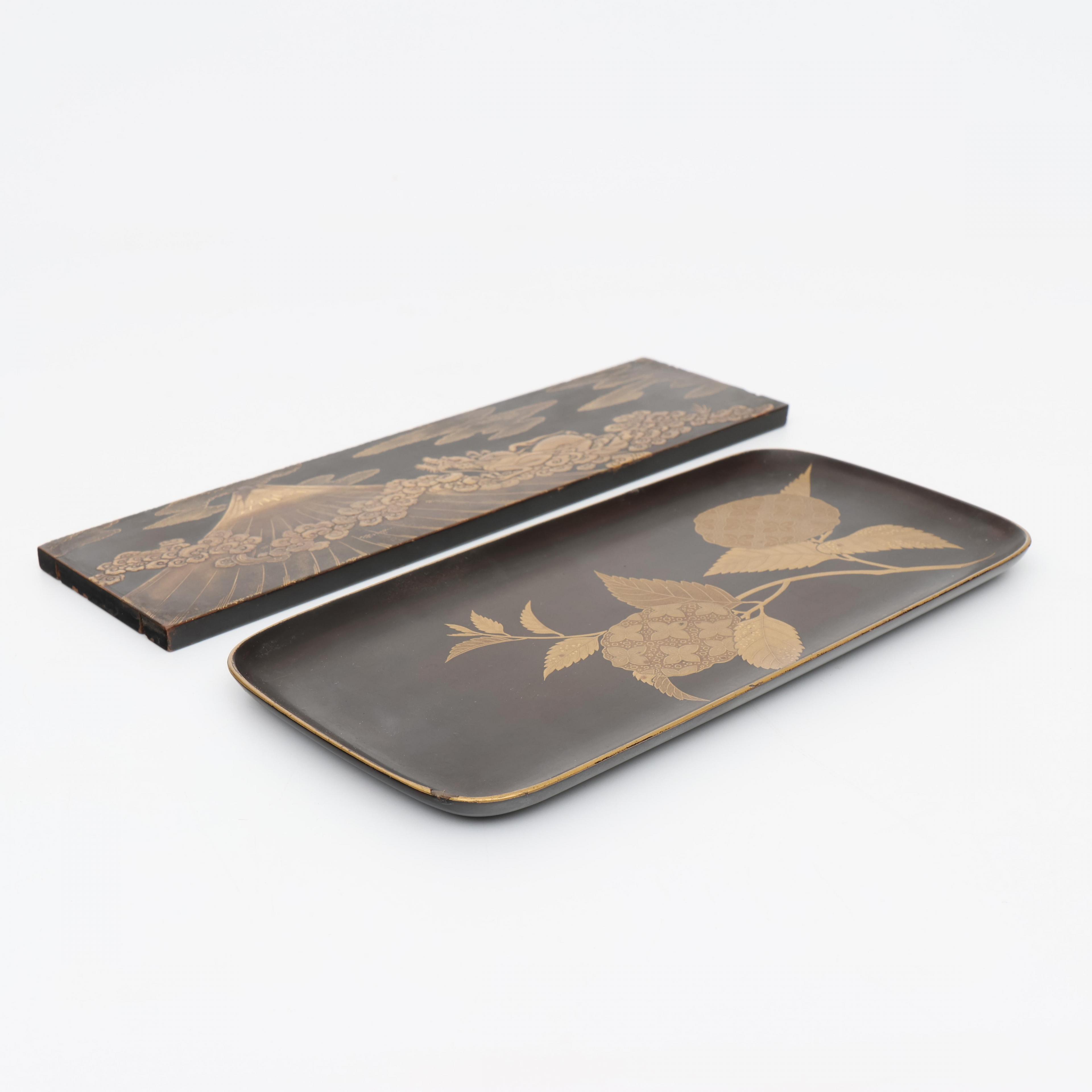 Japan, a black-lacquer tray and a black-lacquer panel, Meiji period (1868-1912),