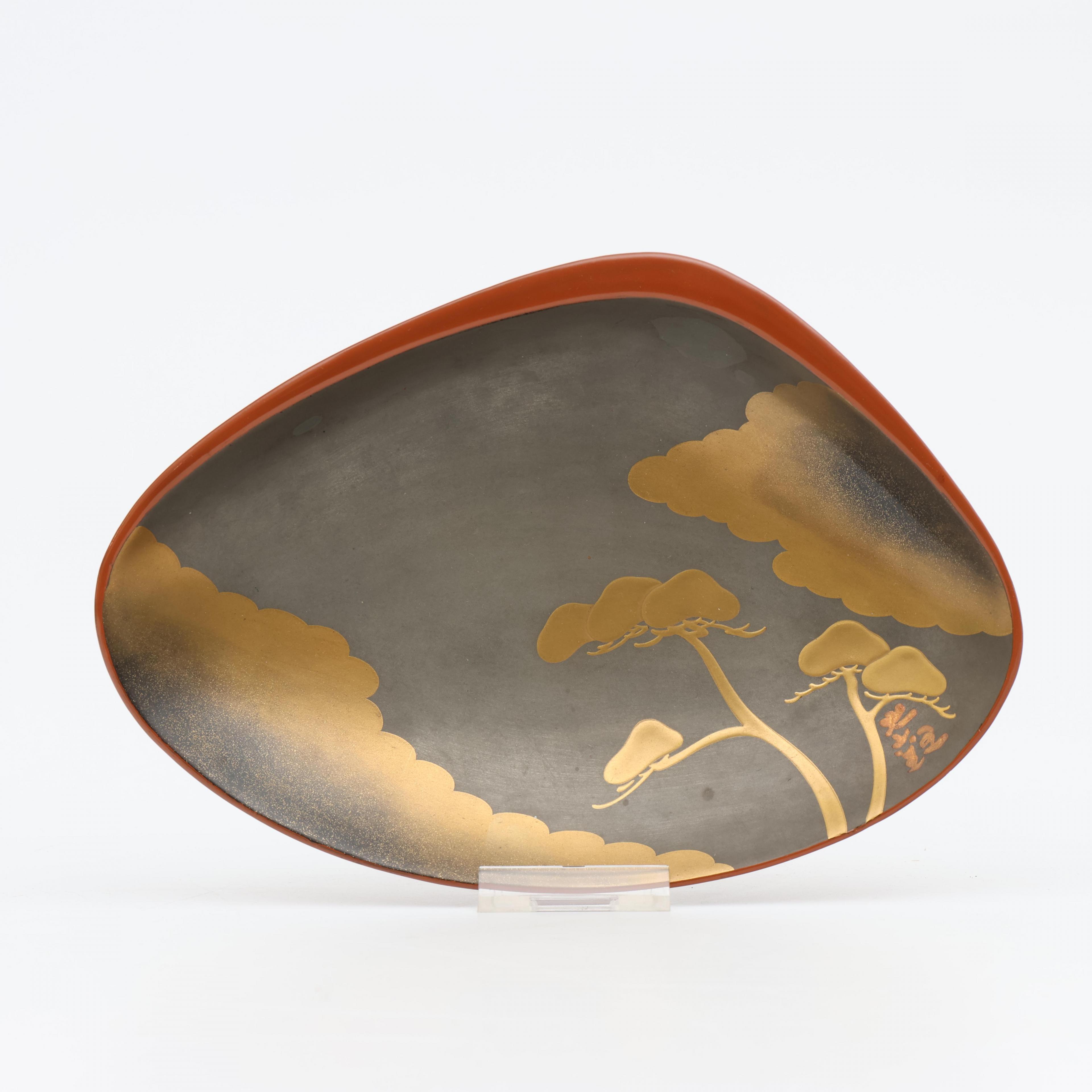 Japan, a brown and grey-lacquer shell-shaped dish, Meiji period (1868-1912),