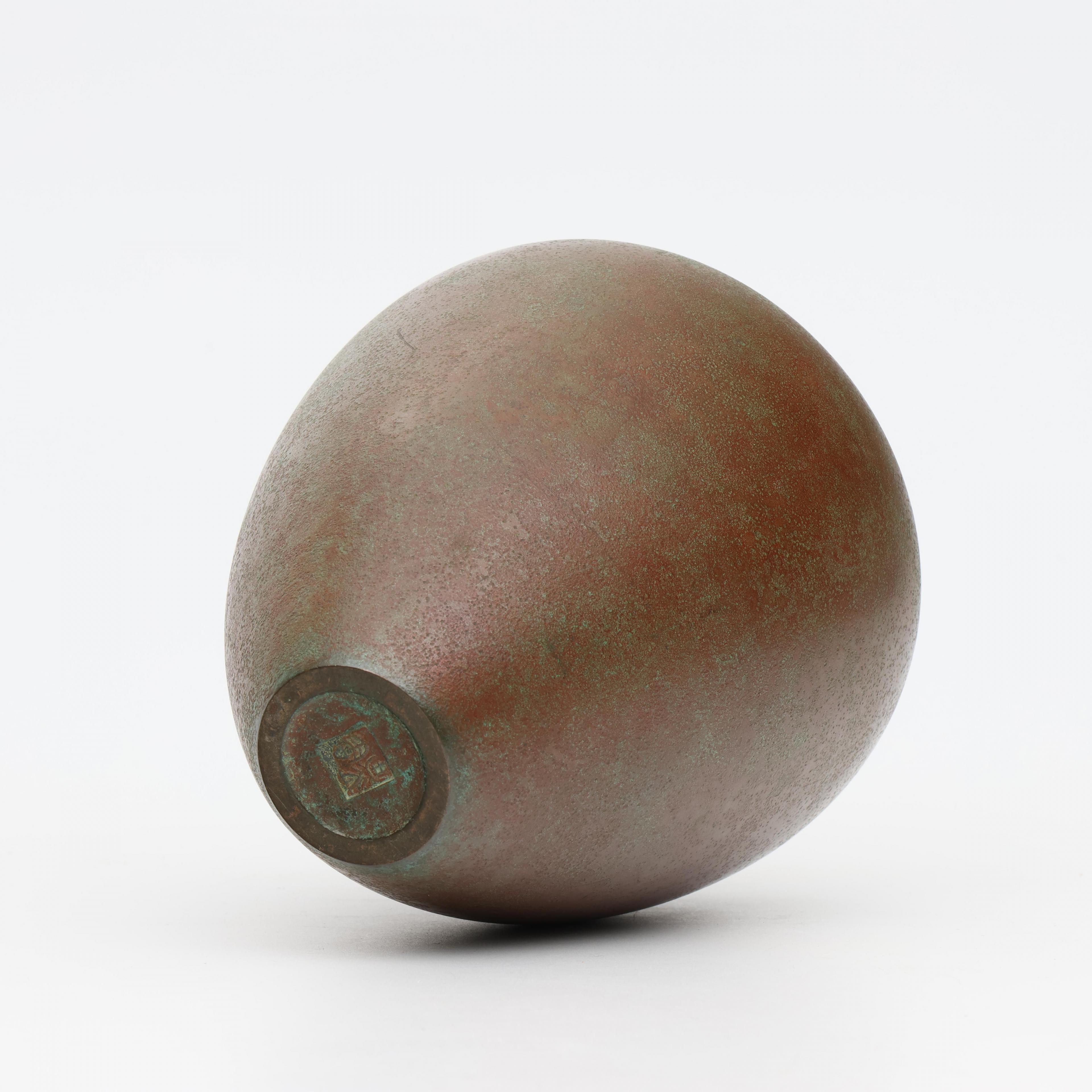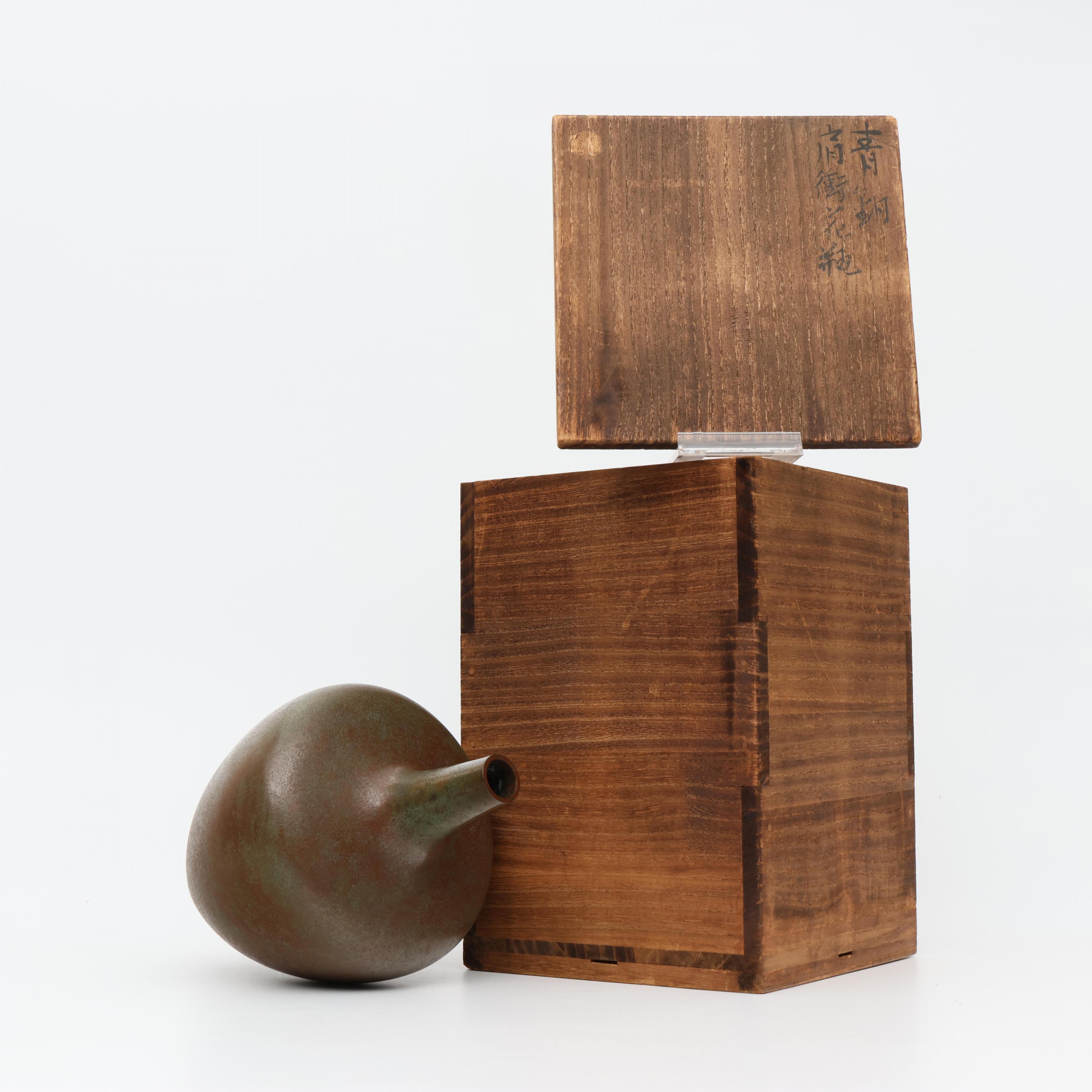 Japan, green patinated bronze bottle vase, signed by Living National Treasure Toyochika Takamura (1890-1972),