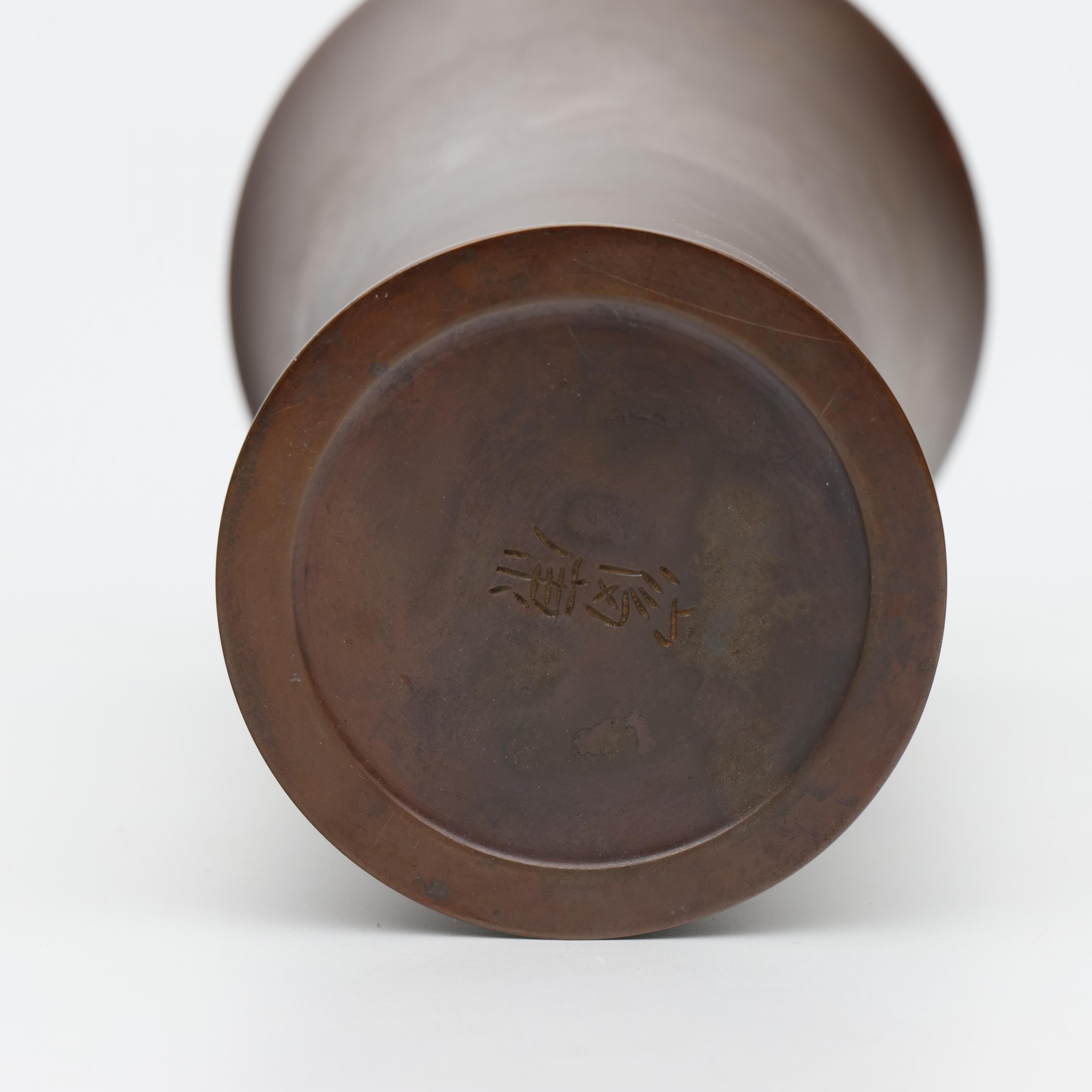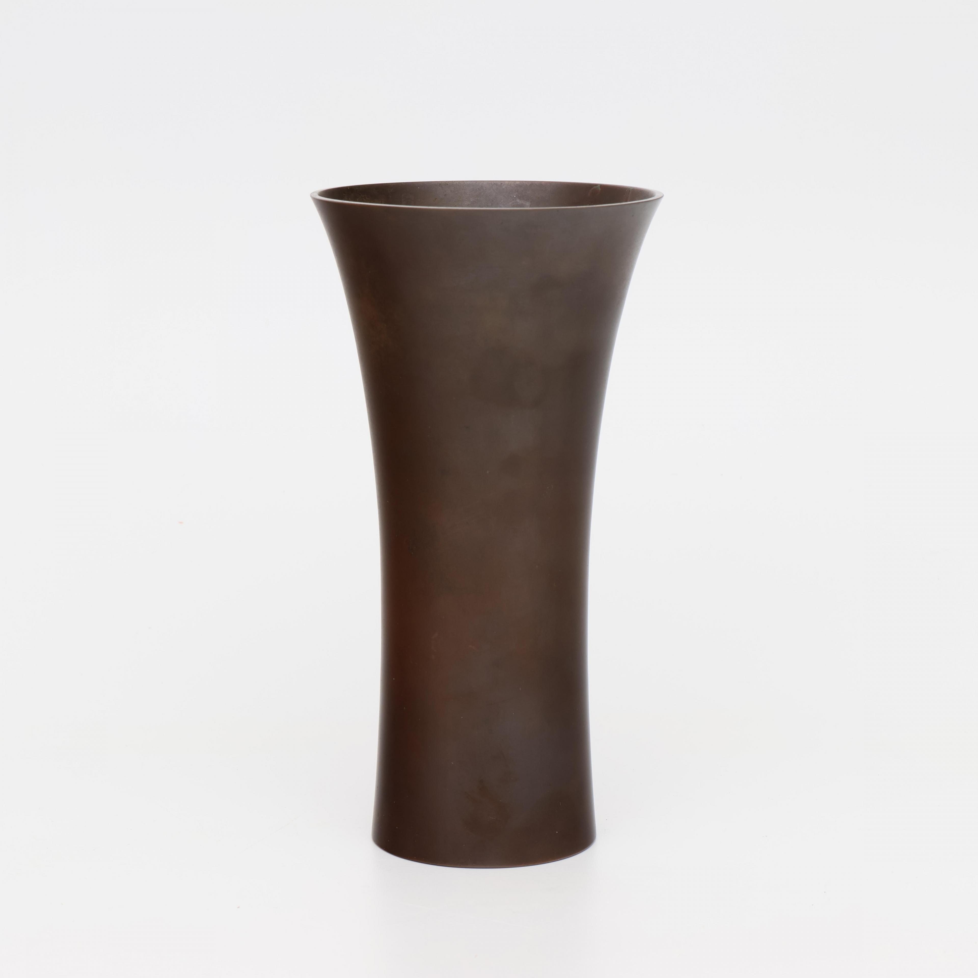 Japan, a brown patinated bronze beakervase, signed Aida Tomiyasu (1901-1987),