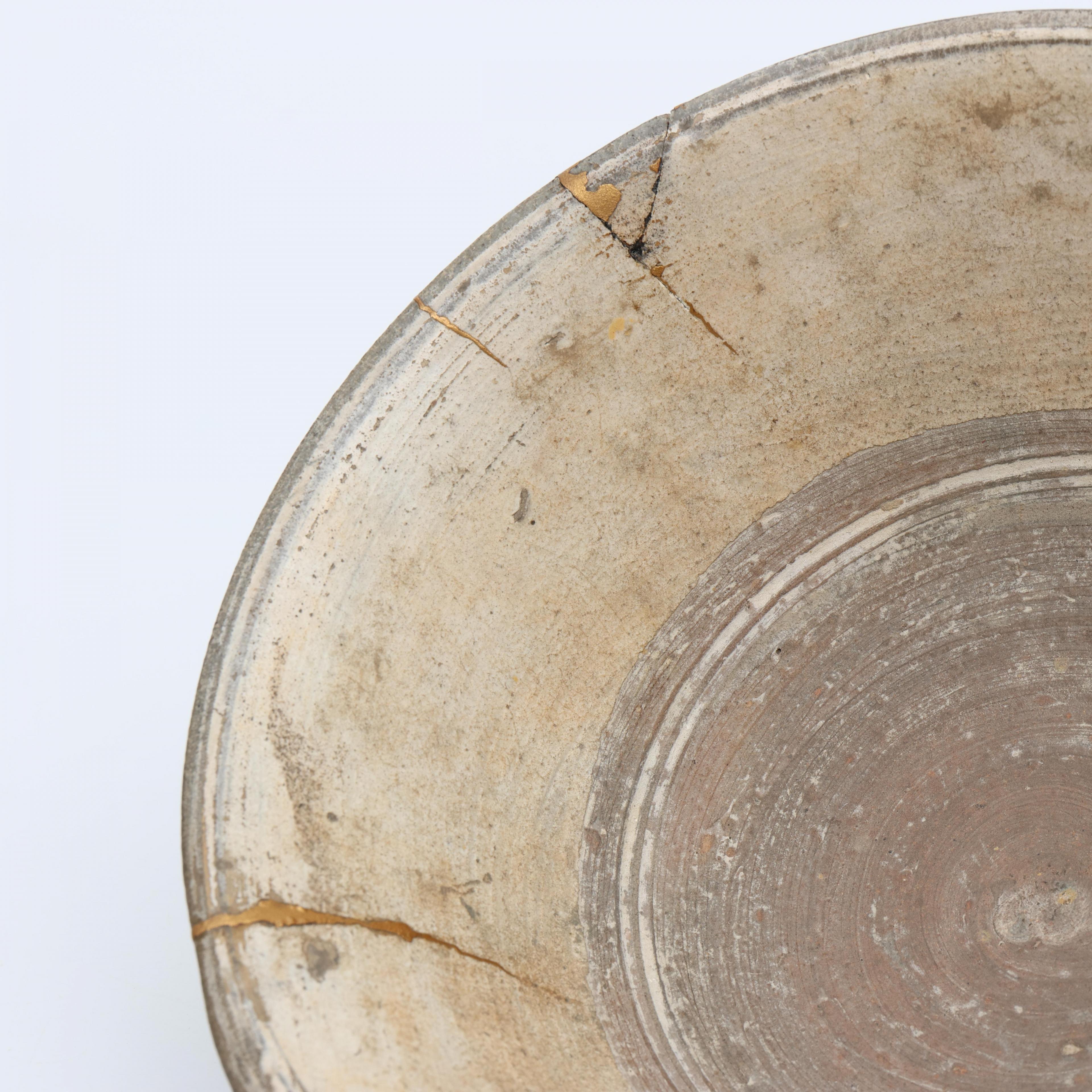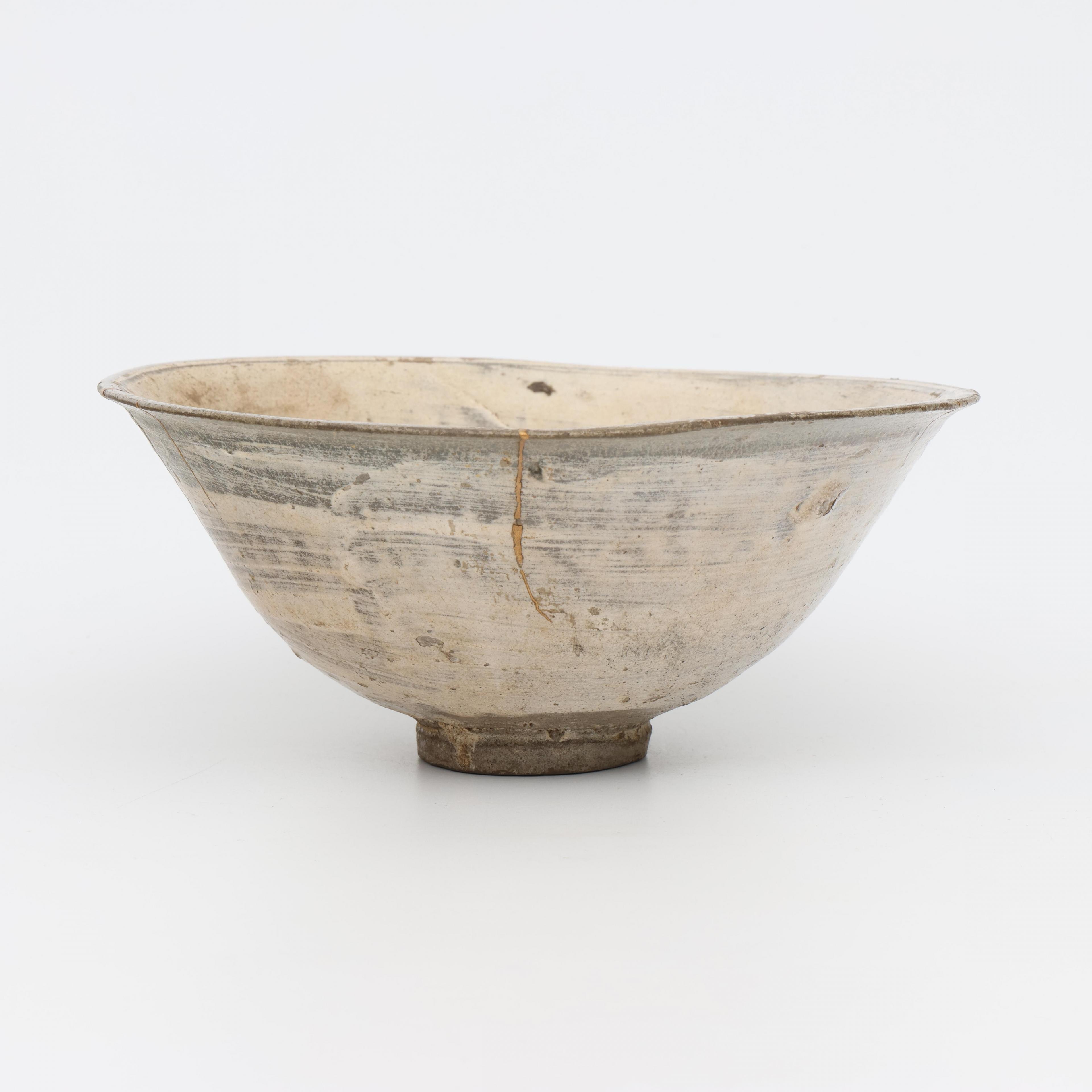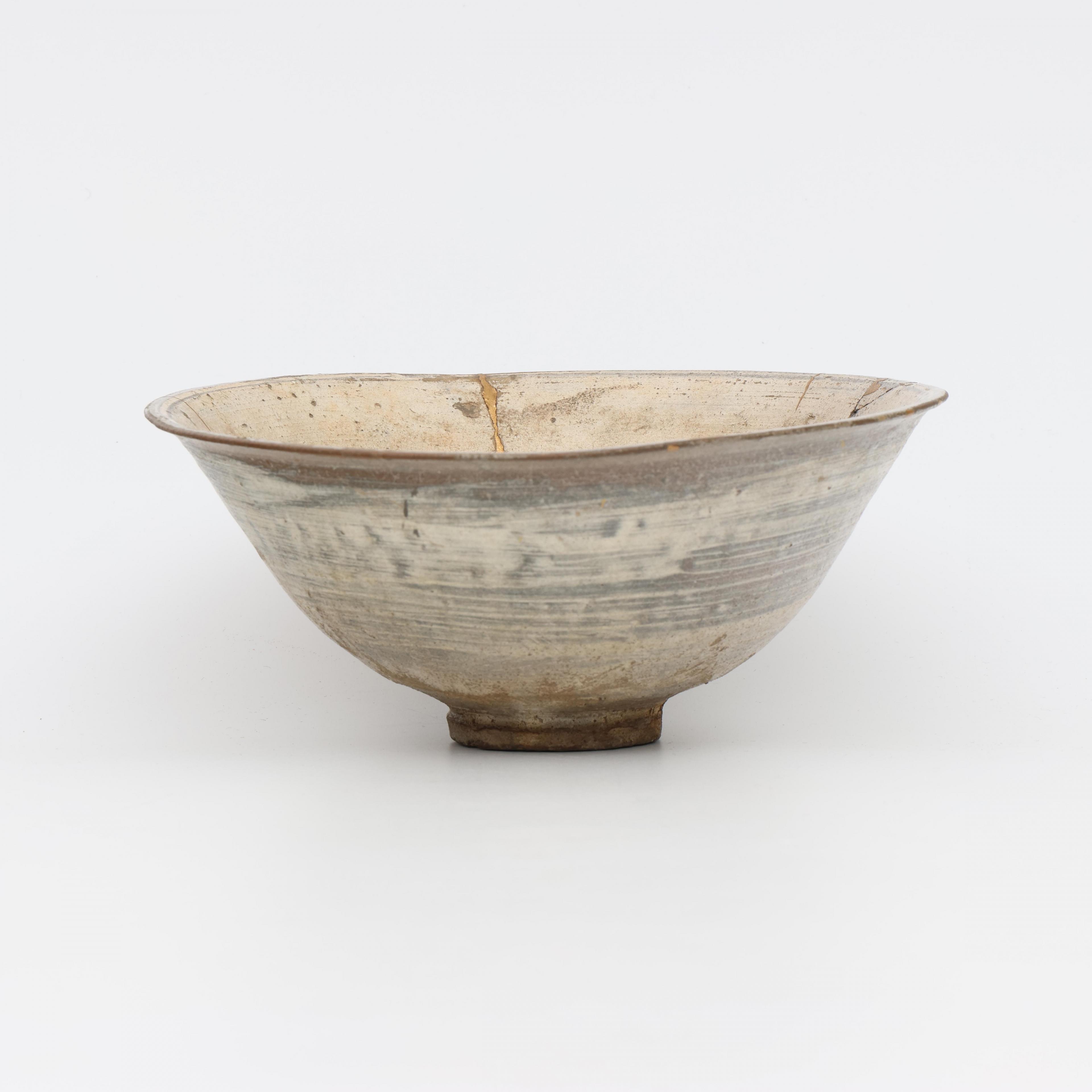 Korea, a hakeme-type bowl with old Japanese gold lacquer repairs, kintsugi, early Joseon dynasty, 16th century,
