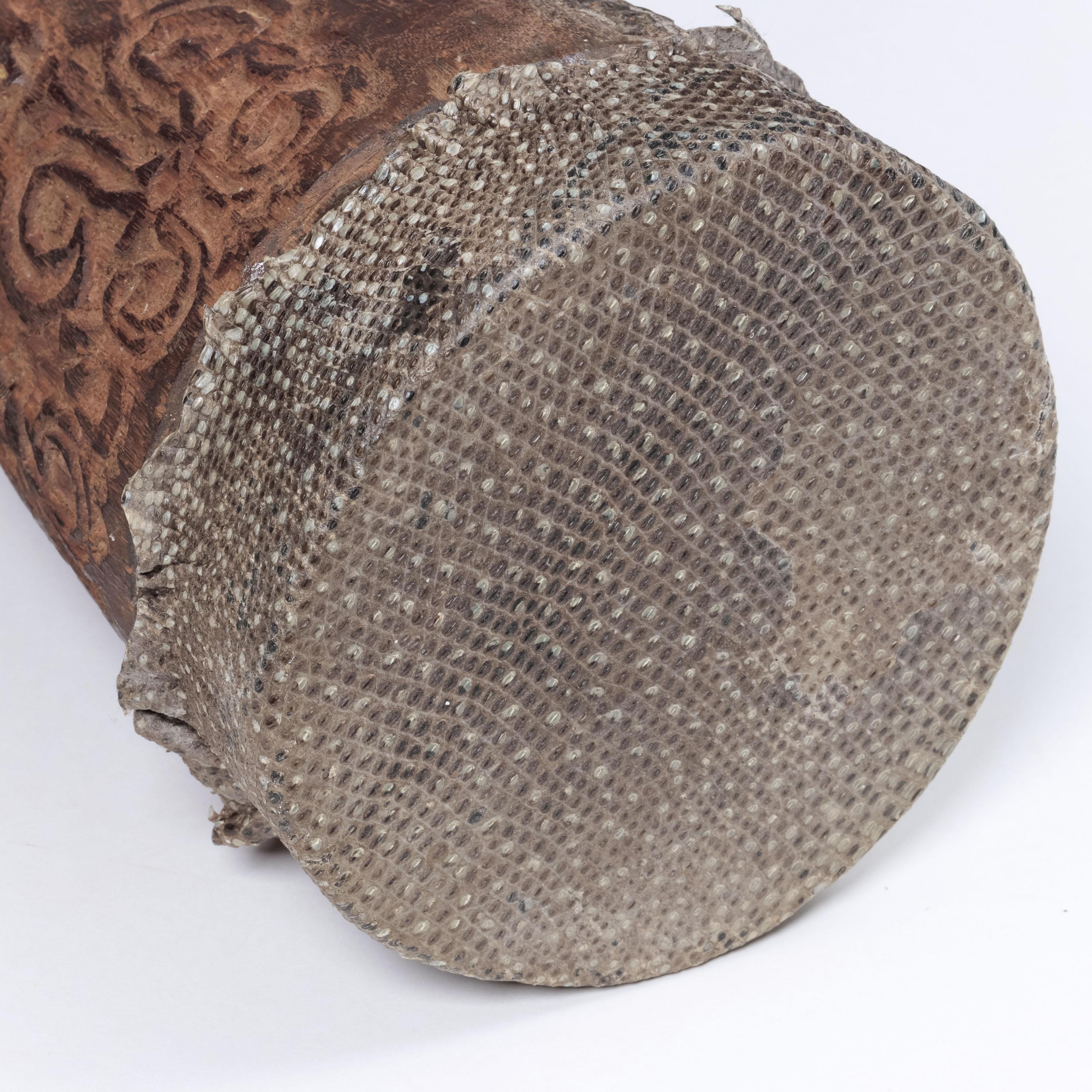 the handle shaped as an anthropomorph in a praying mantis position. A reptile skin tympanum.