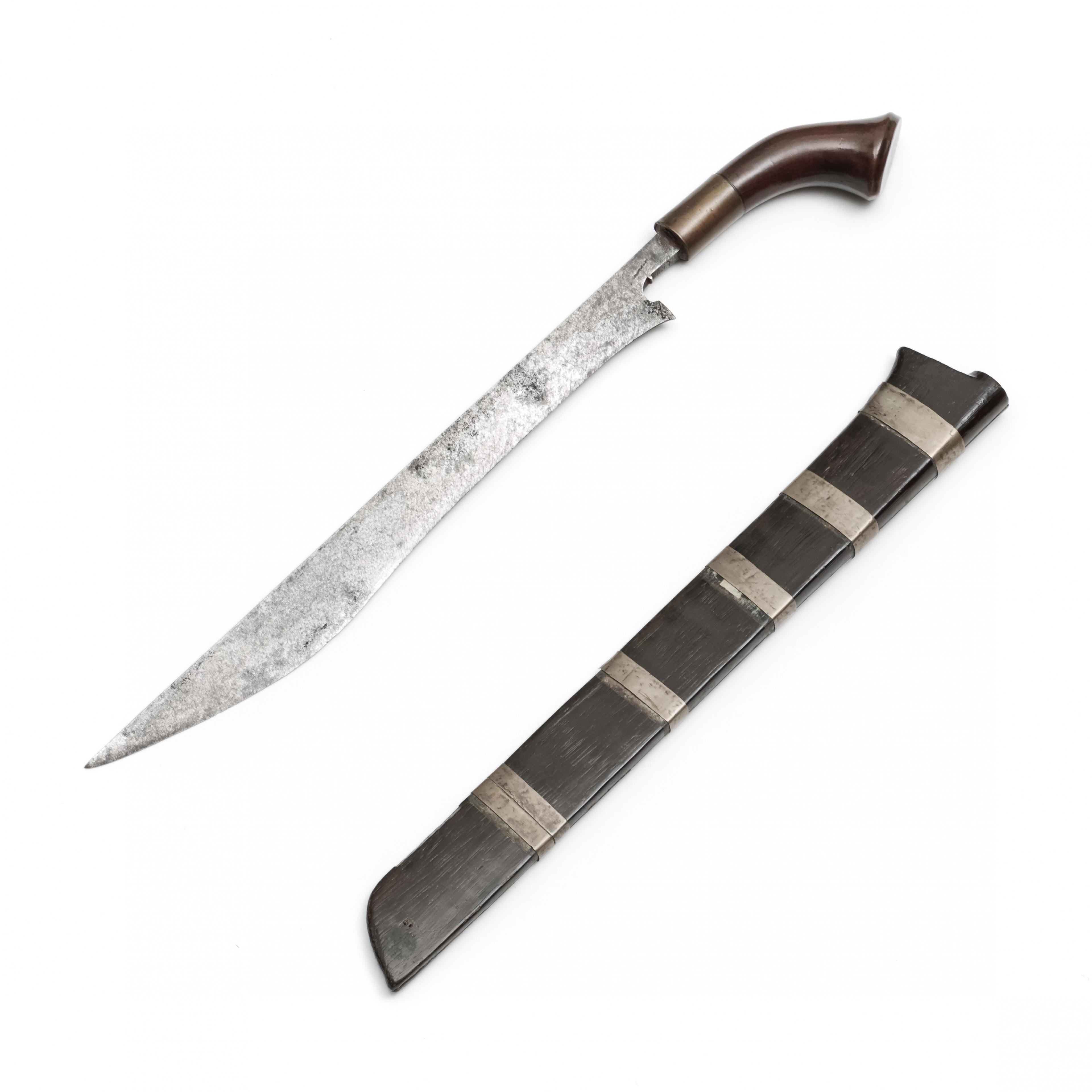 Sumatra, sword, wooden handle and sheath with silvered bands.