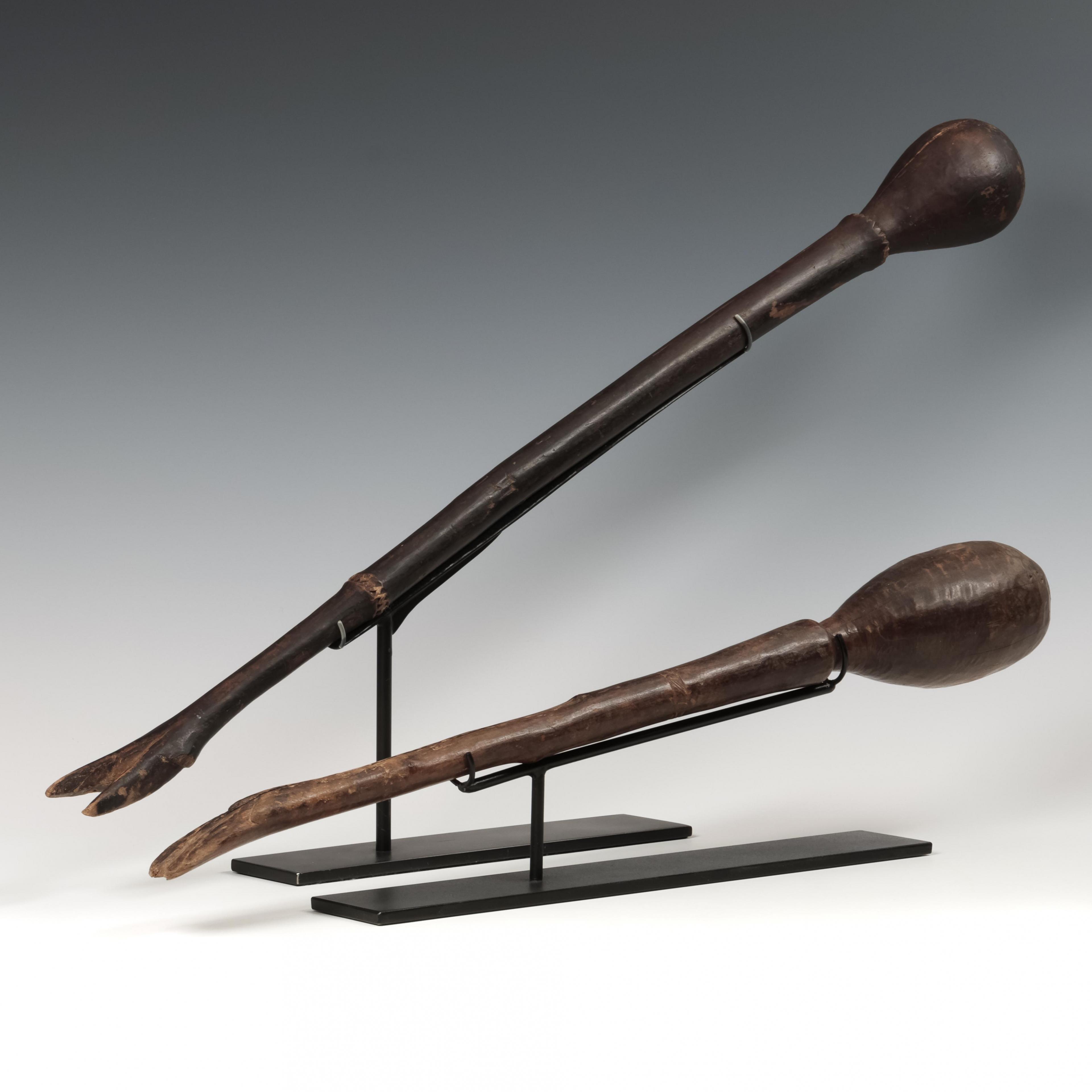 Sumatra, Mentawai Islands, Siberut, two pounders, tutuddu, both with deer foot finial.