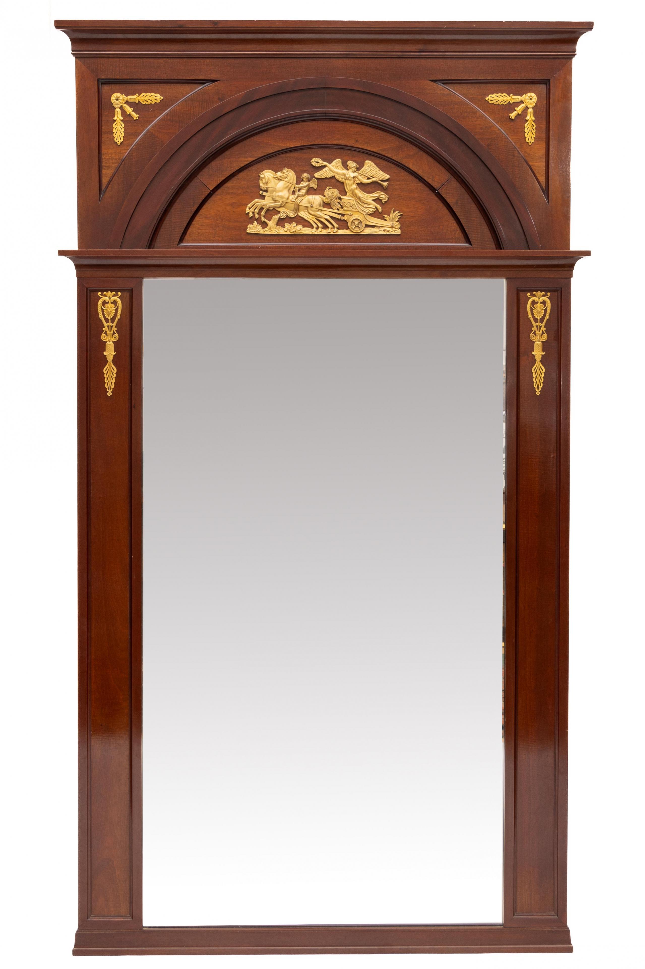 met los paneel. Het geheel versierd met vuurverguld bronzen ornamenten, waaronder een strijdwagen