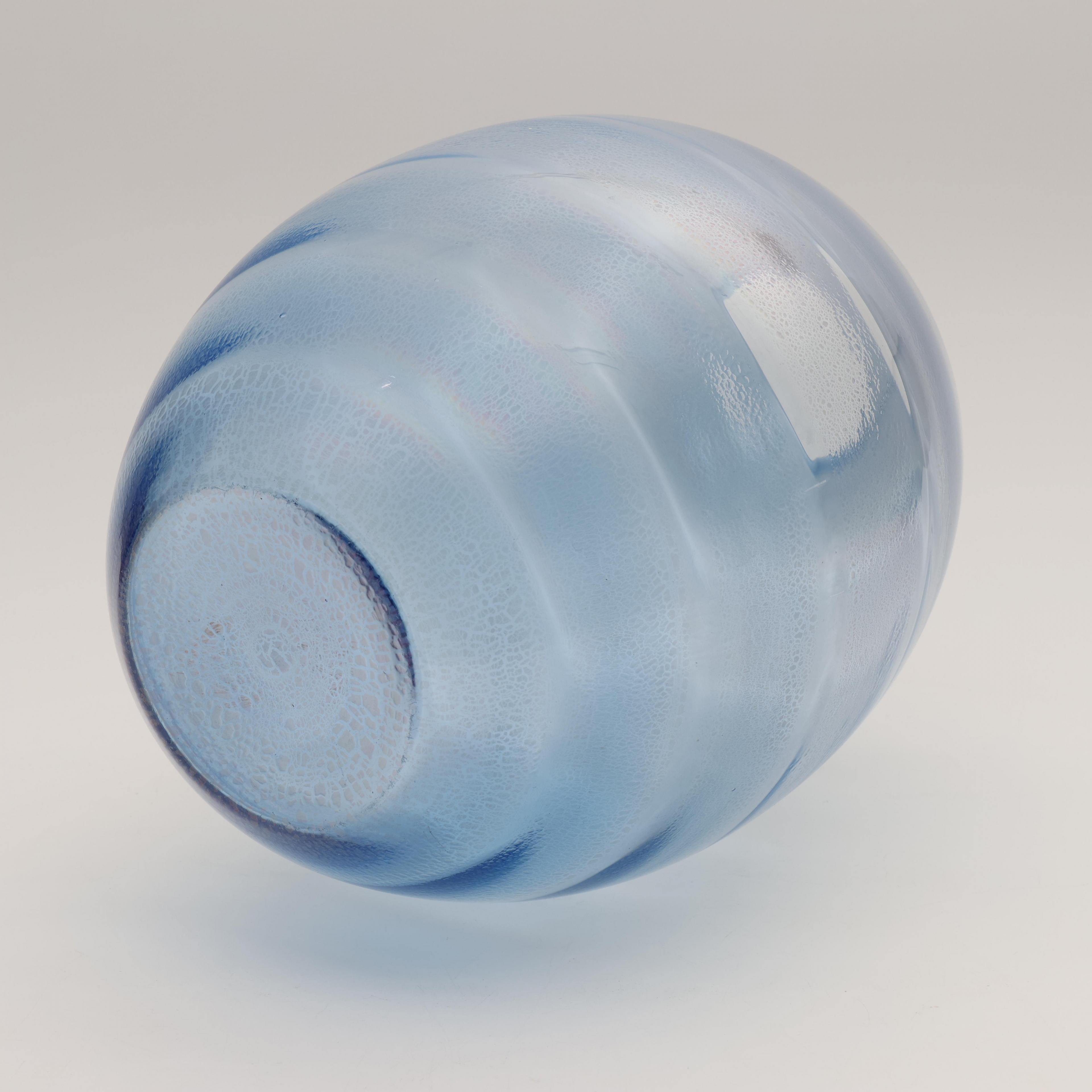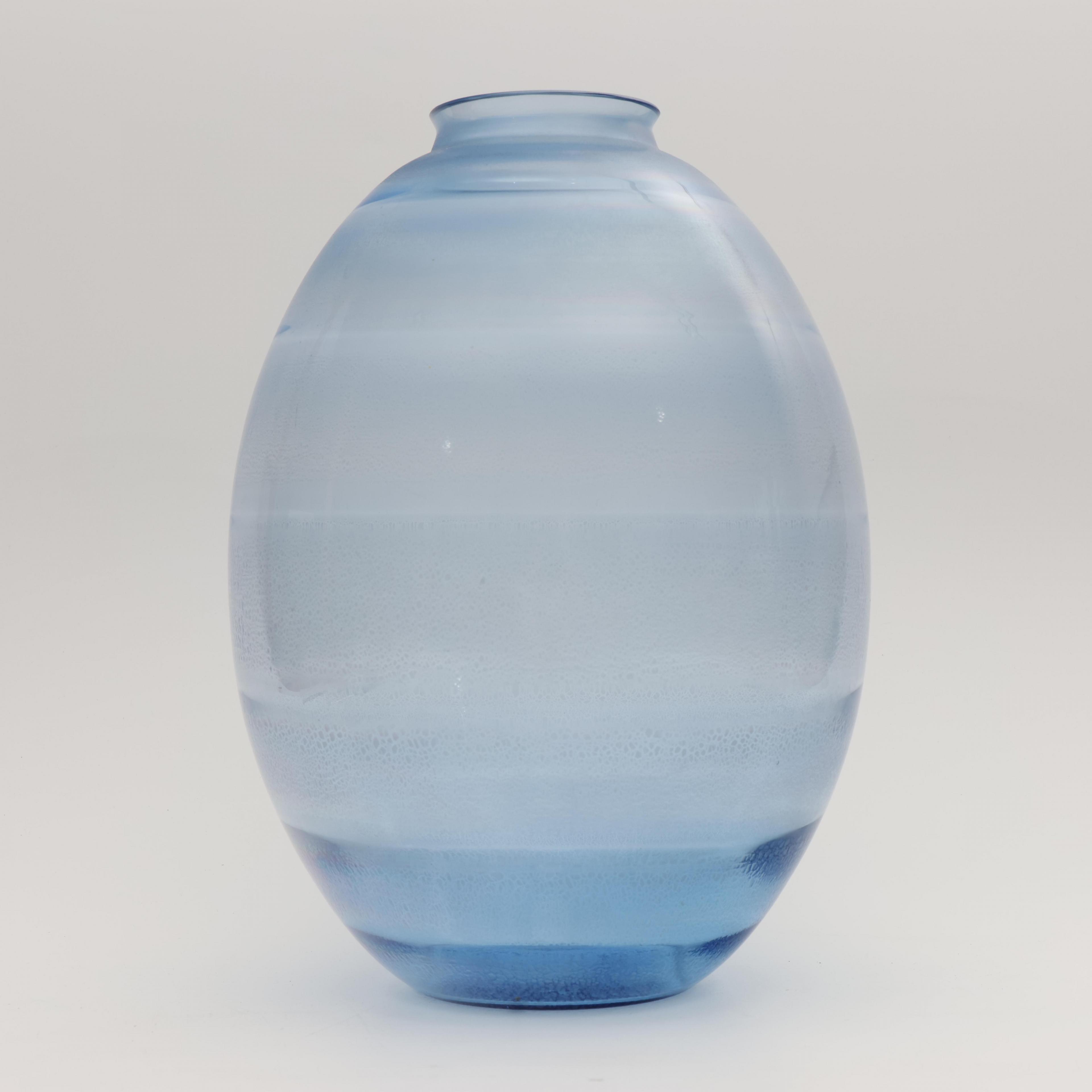 A.D. Copier (1901-1991), lichtblauwe glazen Serica vaas met horizontale craquelé banen, ontwerp 1934;