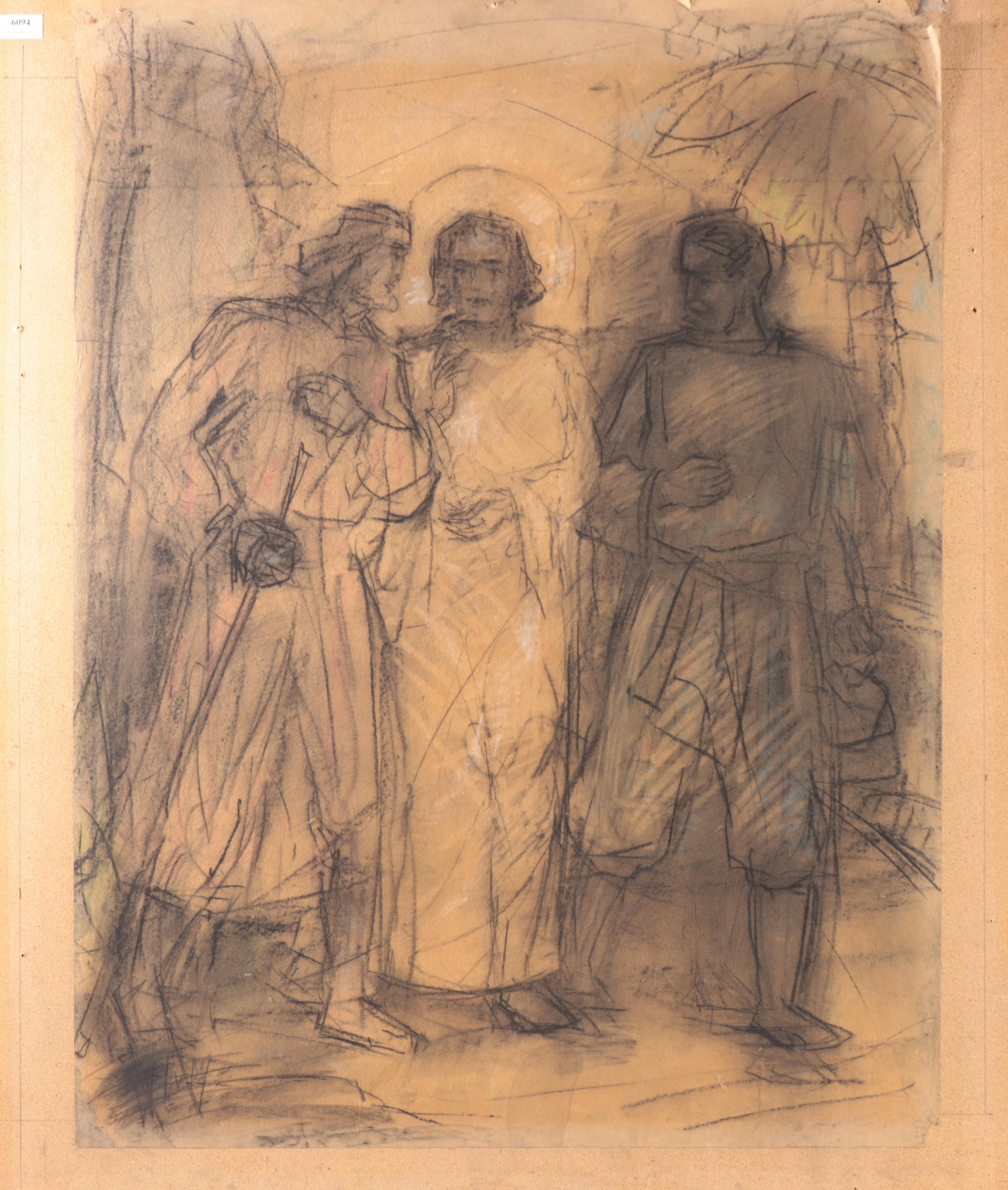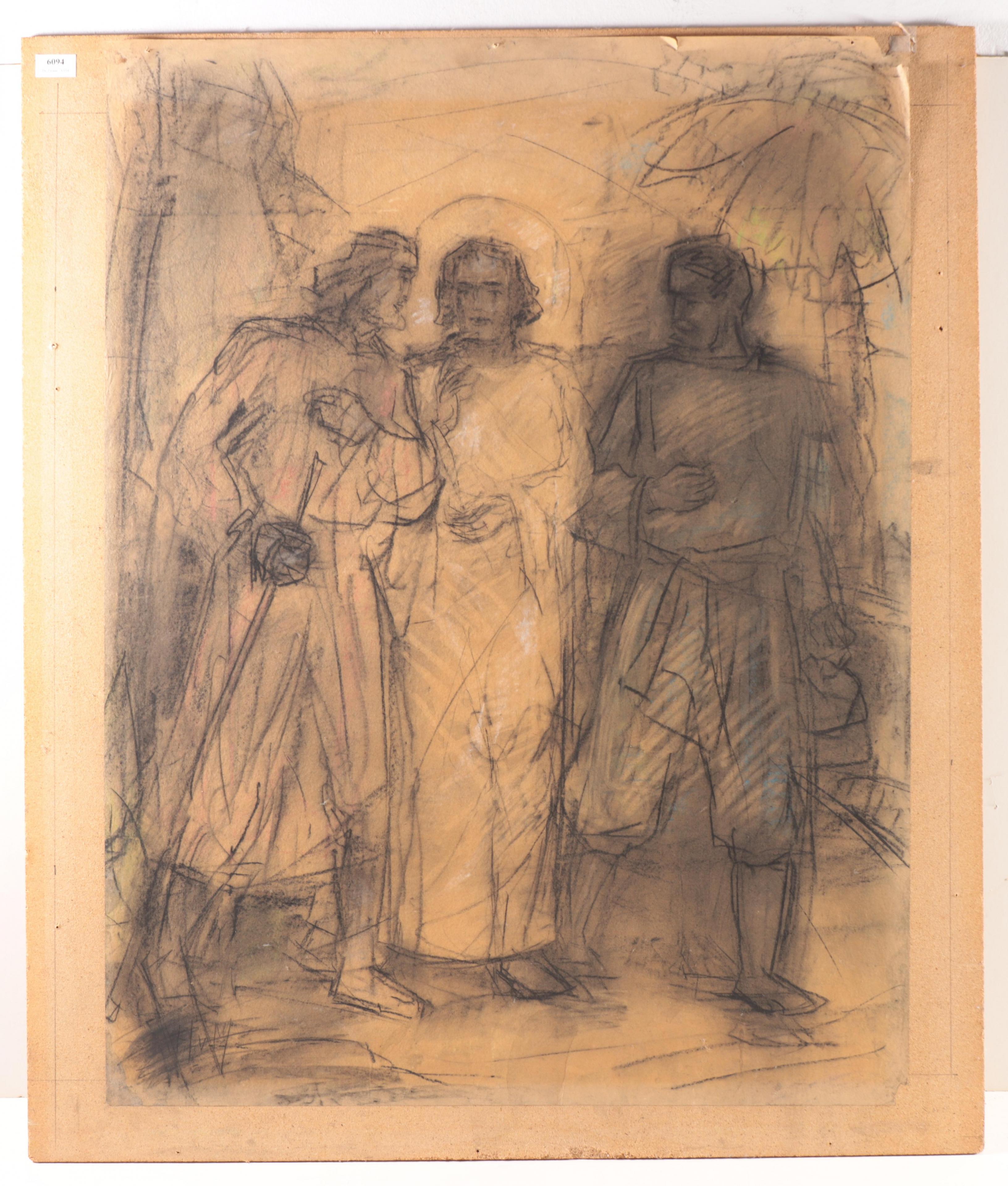 houtskool en pastel op papier op board, gesign. HvM l.o., 100 x 75,5 cm.