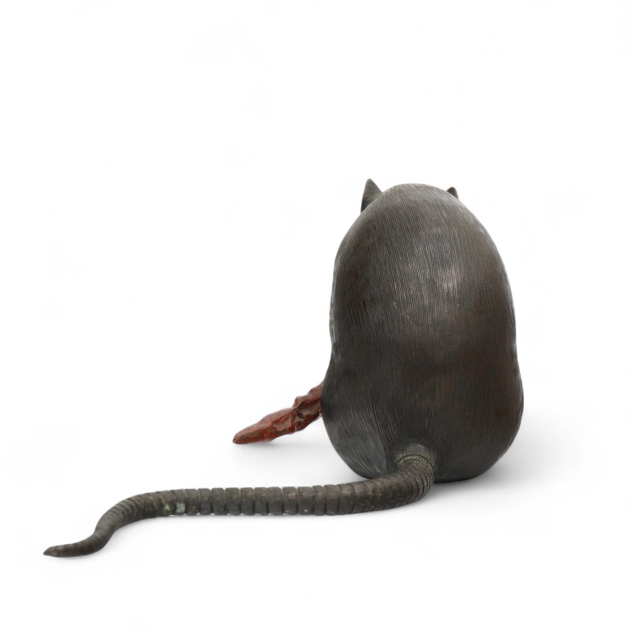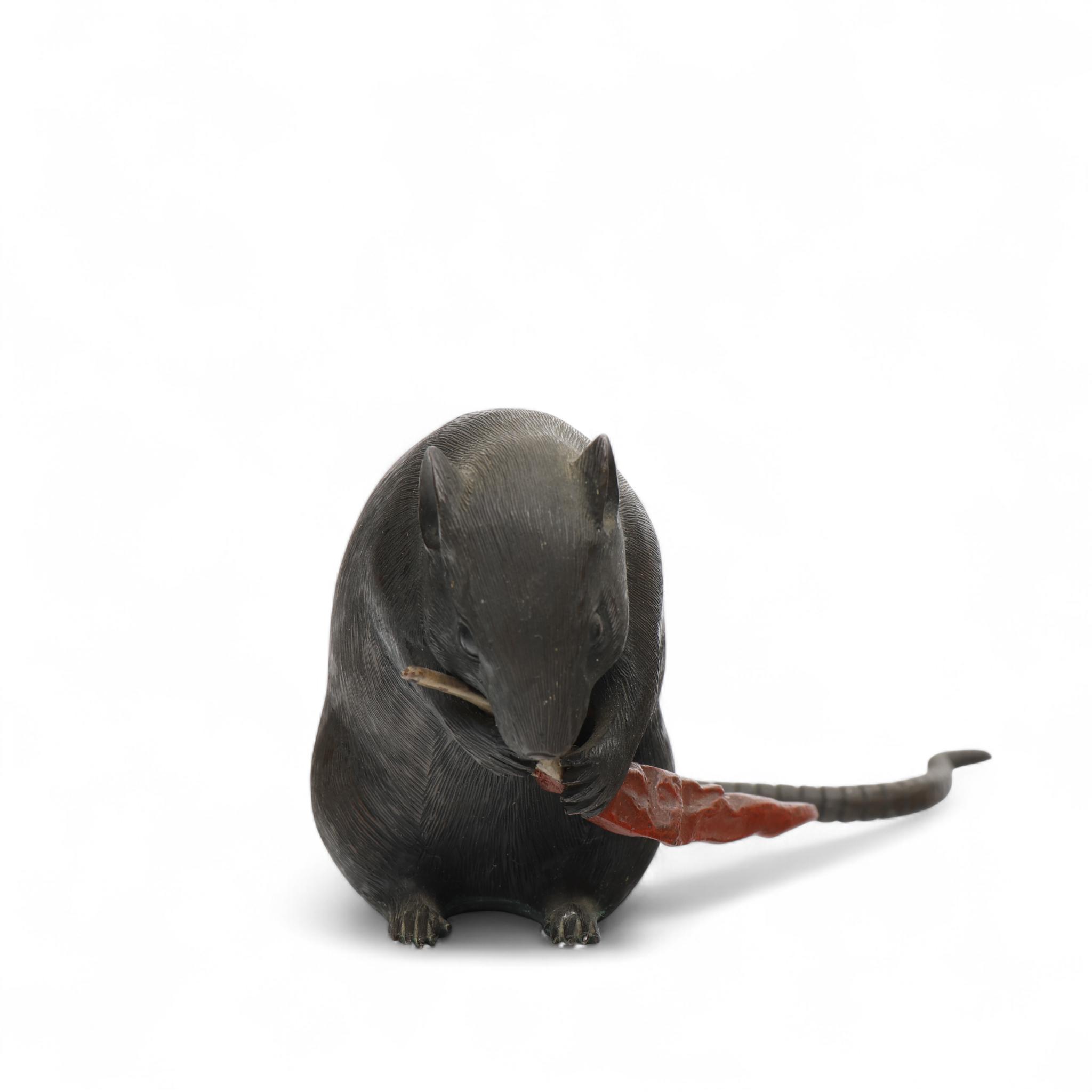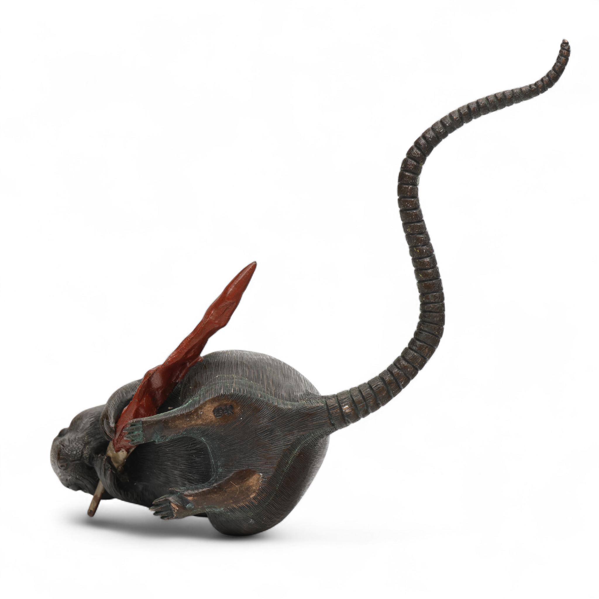Japan, a brown and red patinated bronze okimono, 'rat with red pepper', Meiji period (1868-1912),