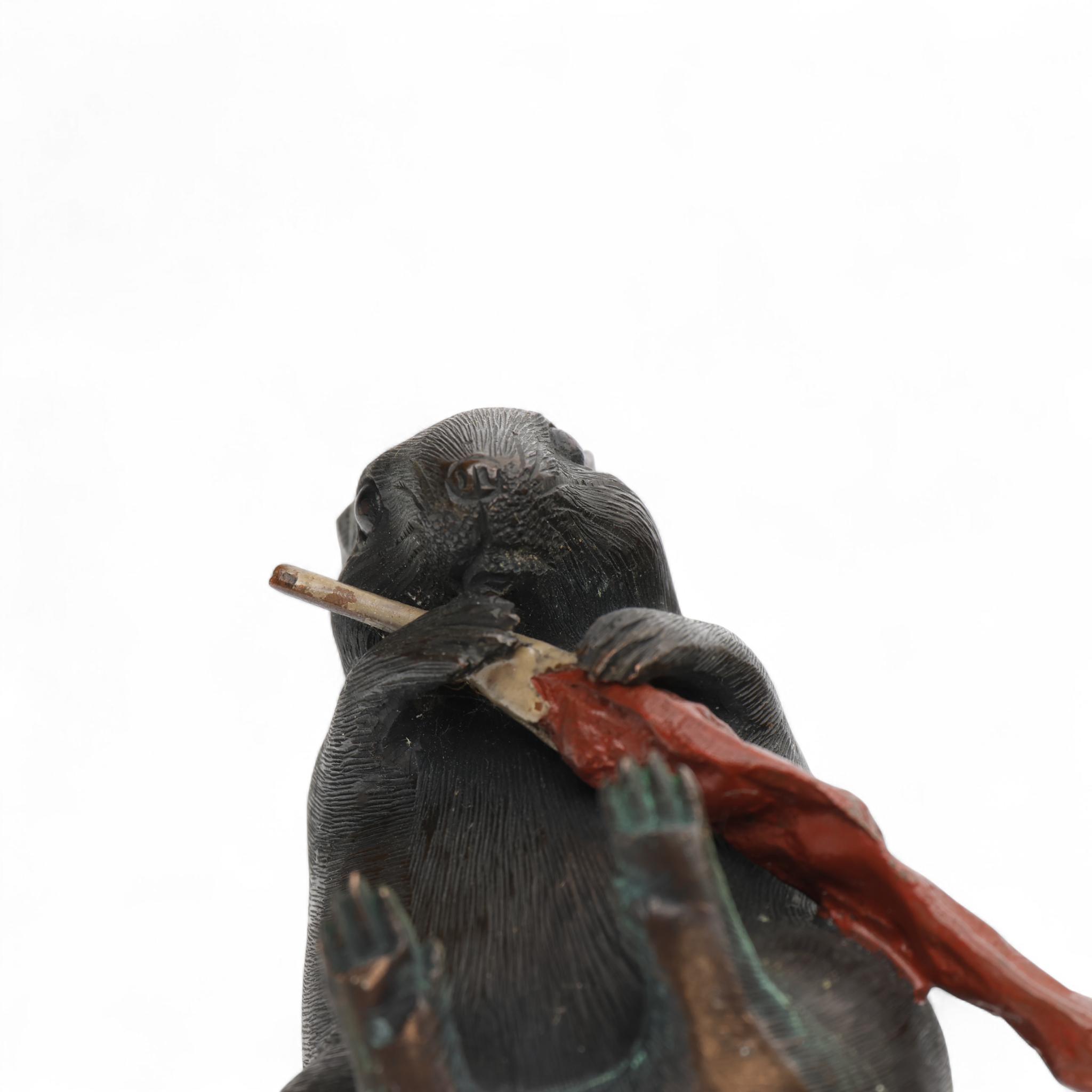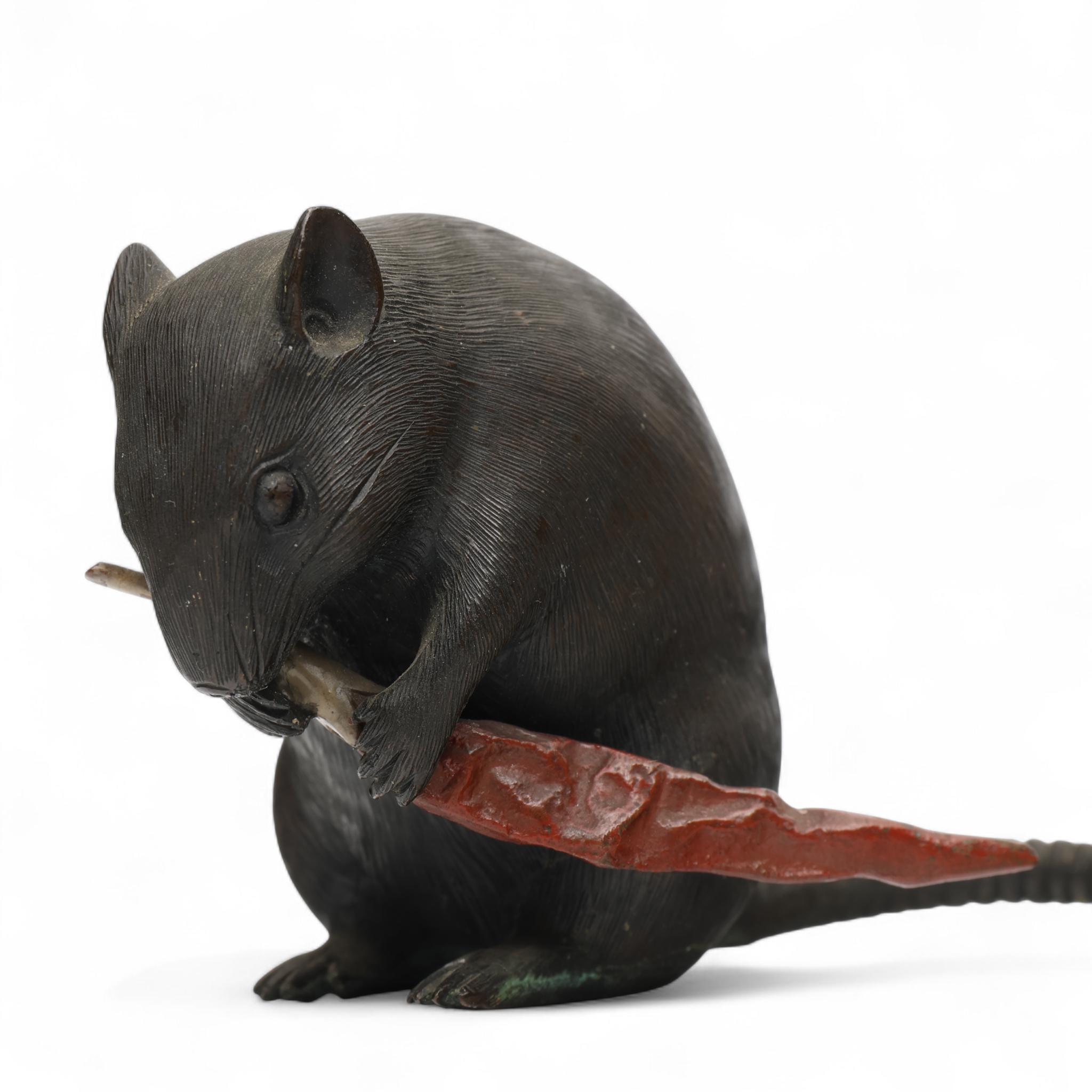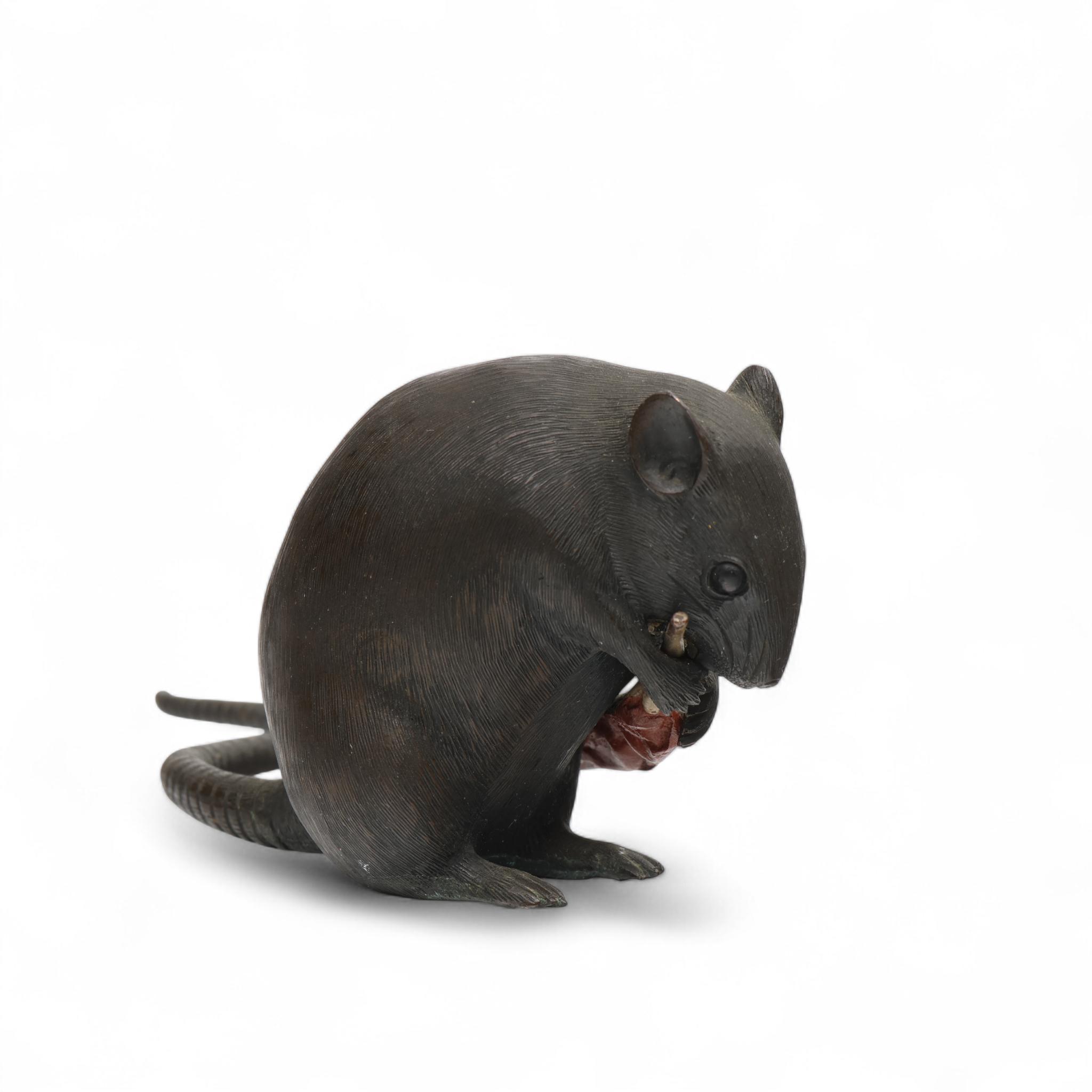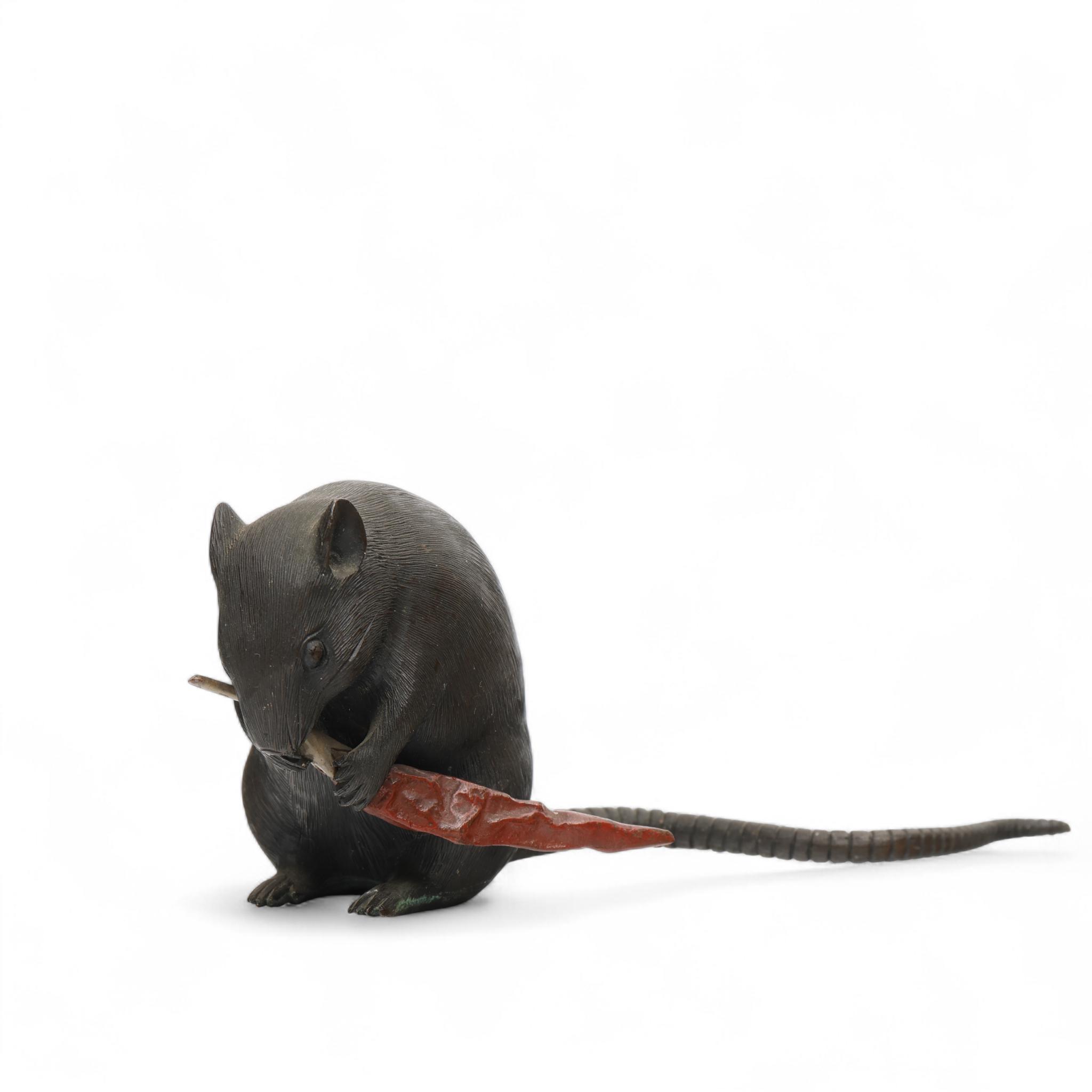 Japan, a brown and red patinated bronze okimono, 'rat with red pepper', Meiji period (1868-1912),
