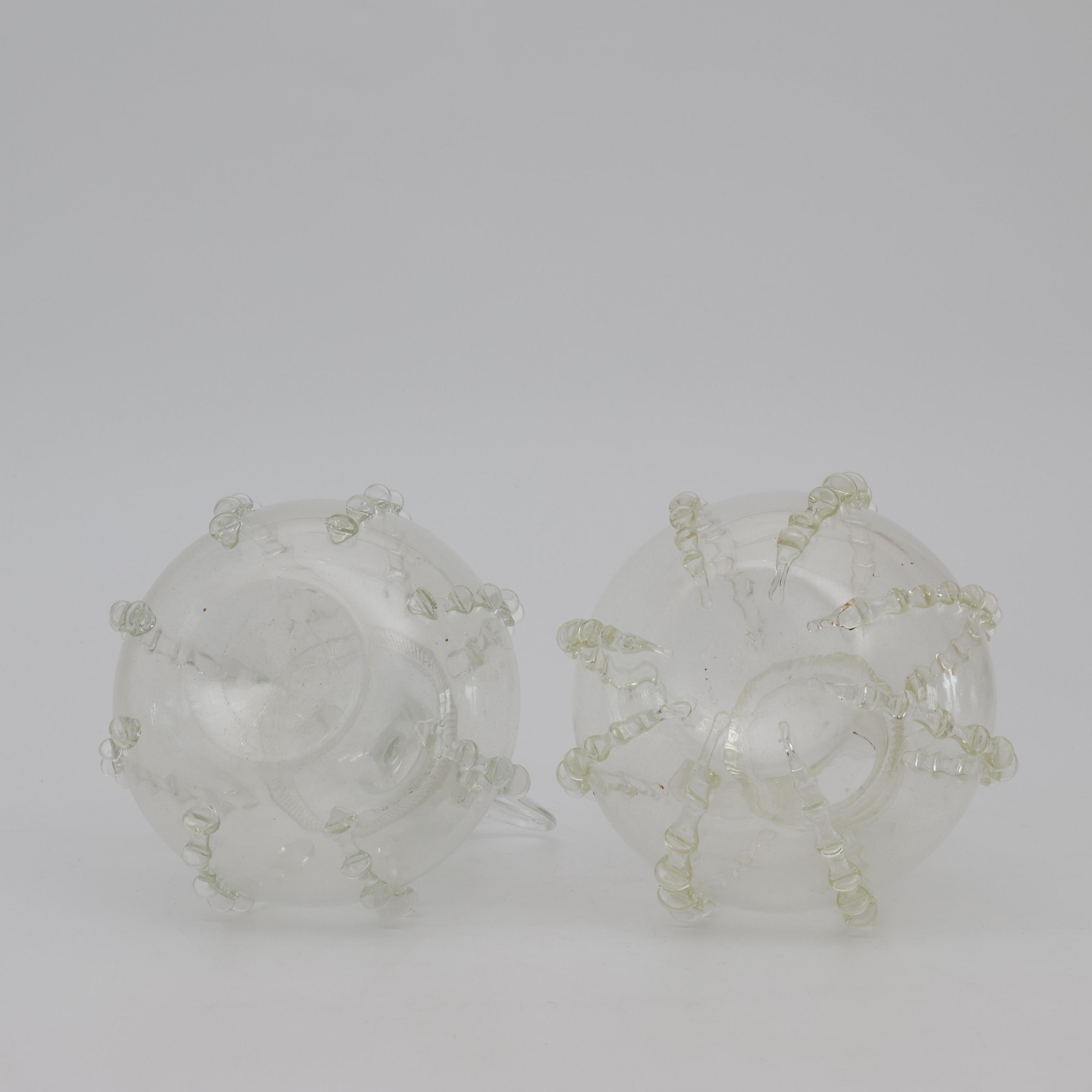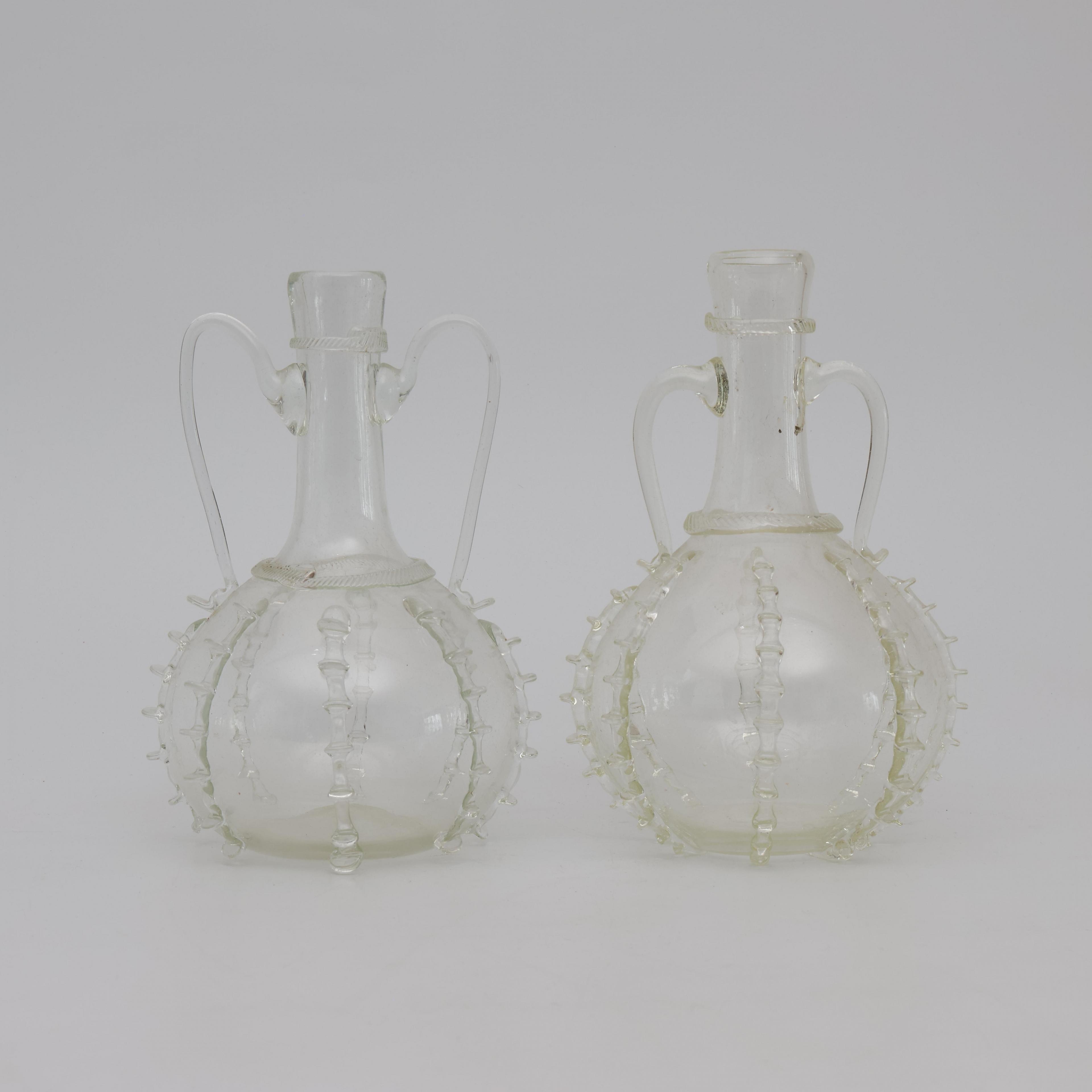 Noord-Nederland, twee glazen buidsflacons, met geknepen ribben, 19e eeuw;