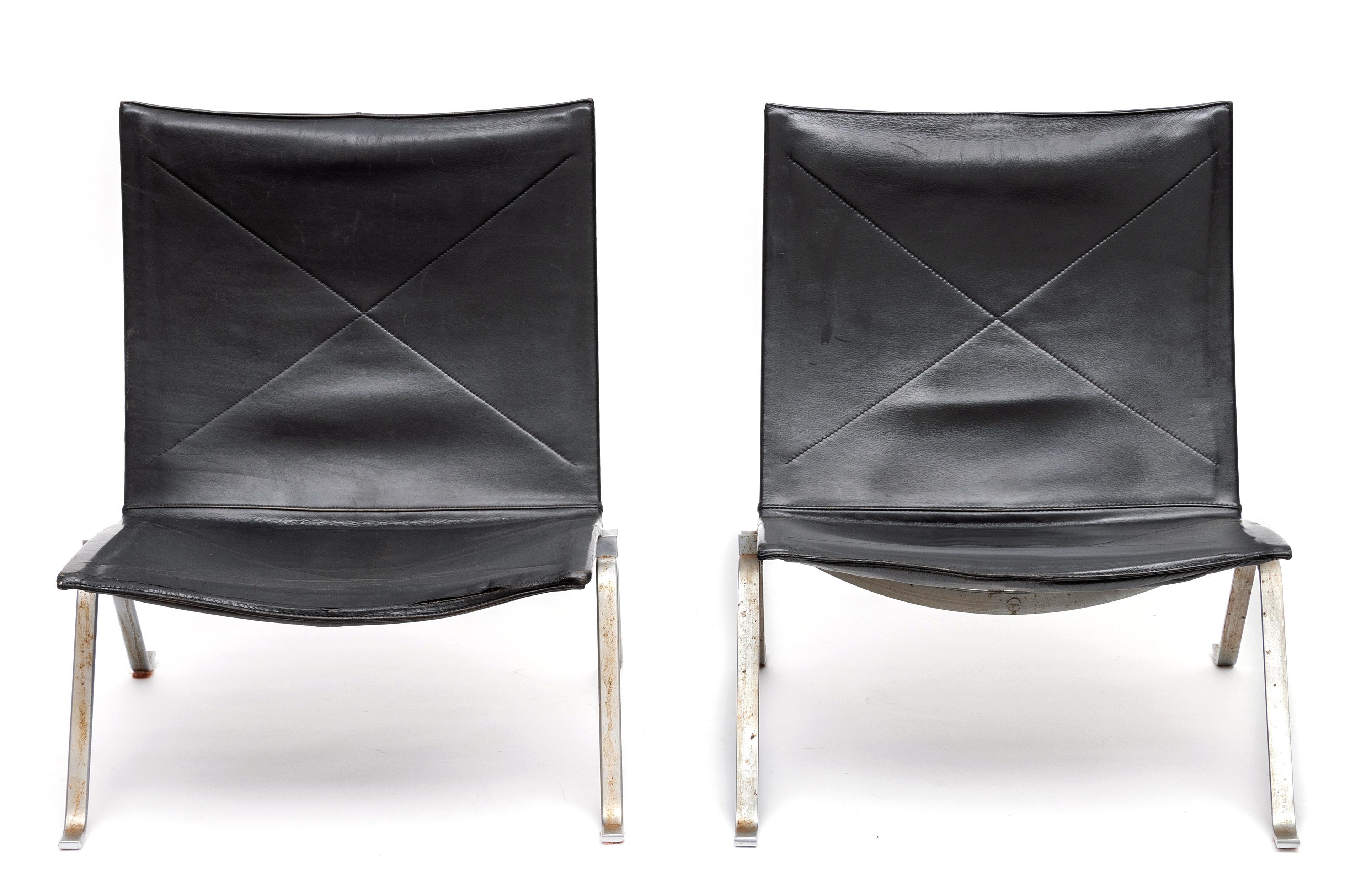 Poul Kjaerholm voor Fritz Hansen, Denenmarken, paar 'PK22' loungestoelen, ontwerp 1955, fabrikaat 1988.
