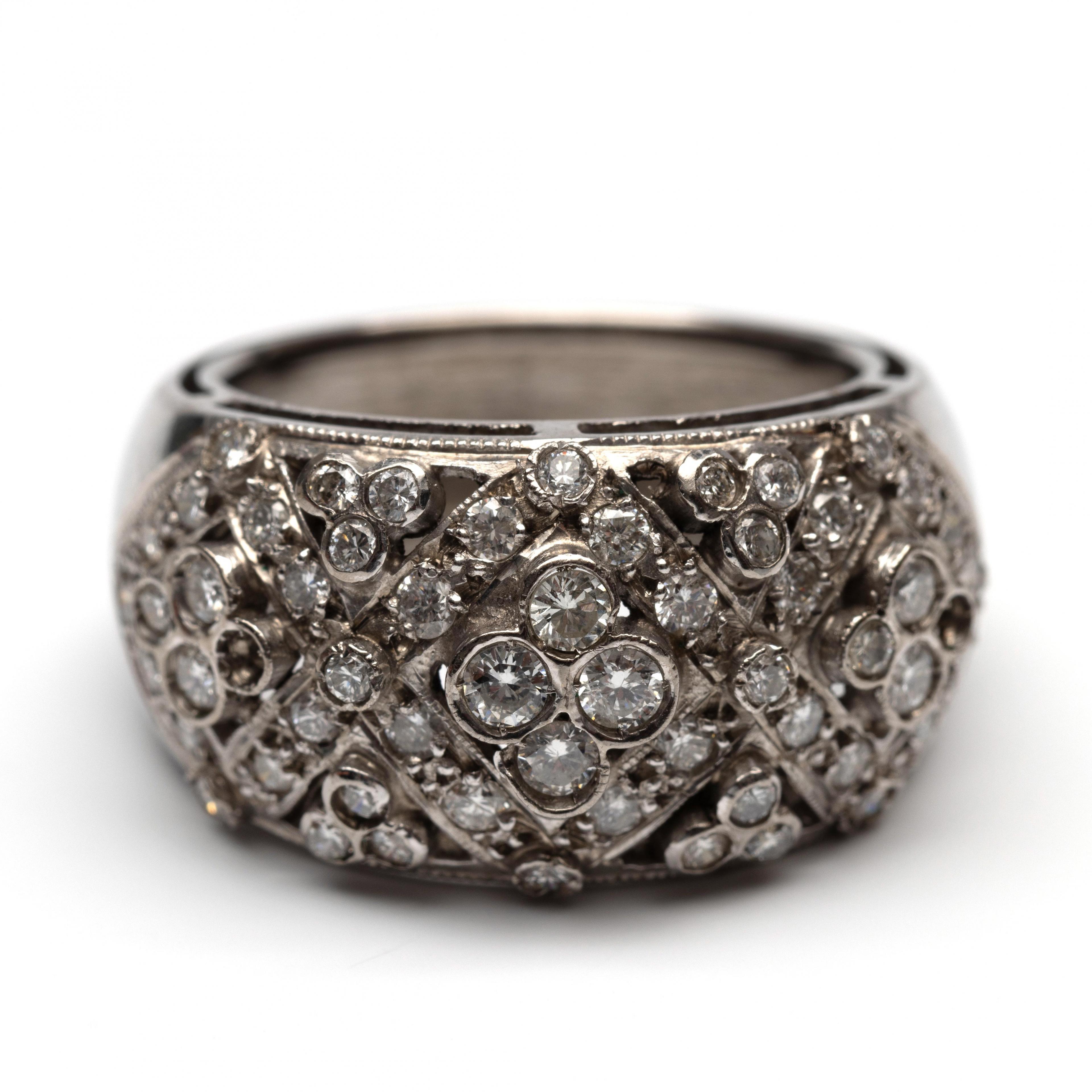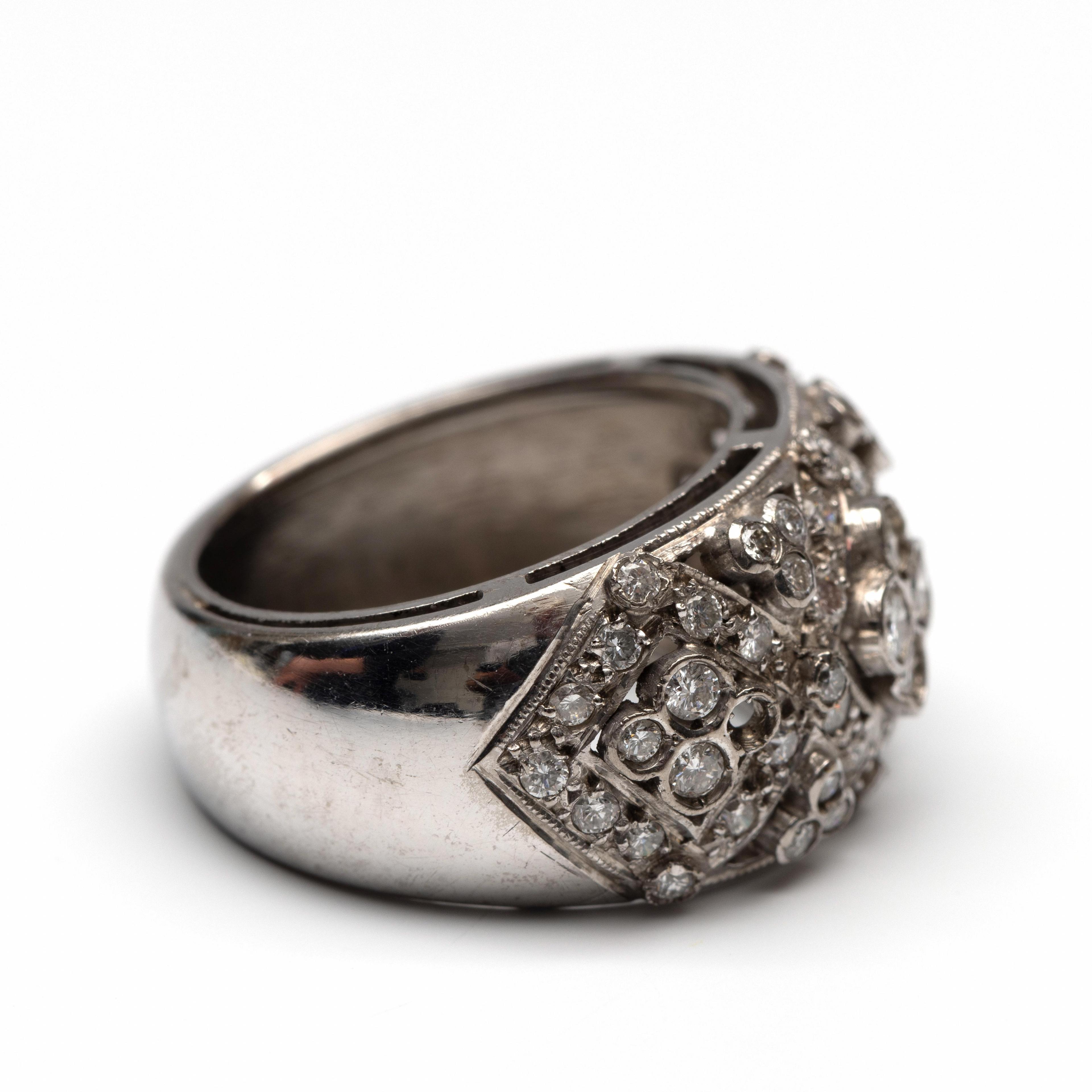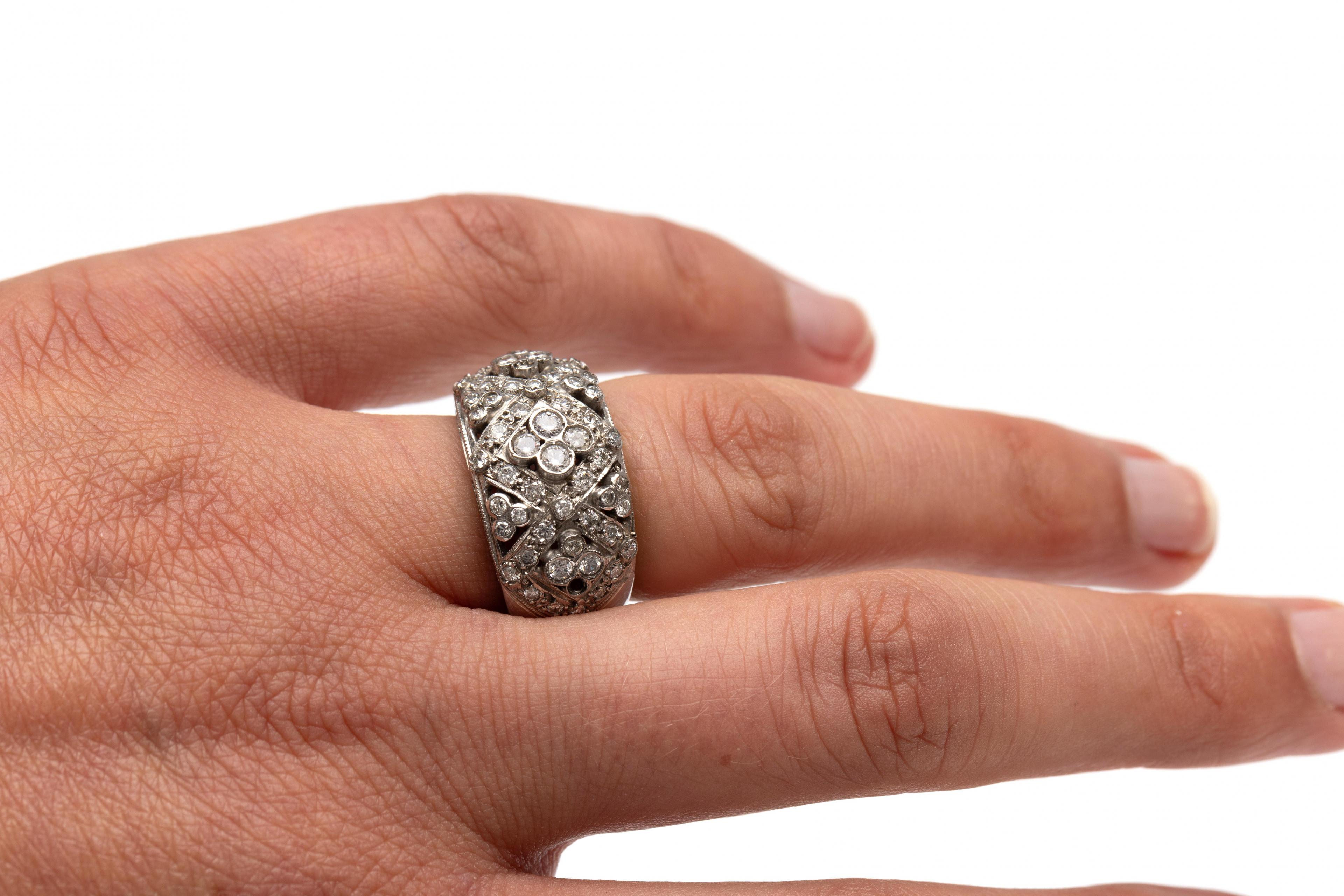 14 k. White gold band ring, set with brilliant-cut diamonds with a total weight of approximately 1.00 ct.