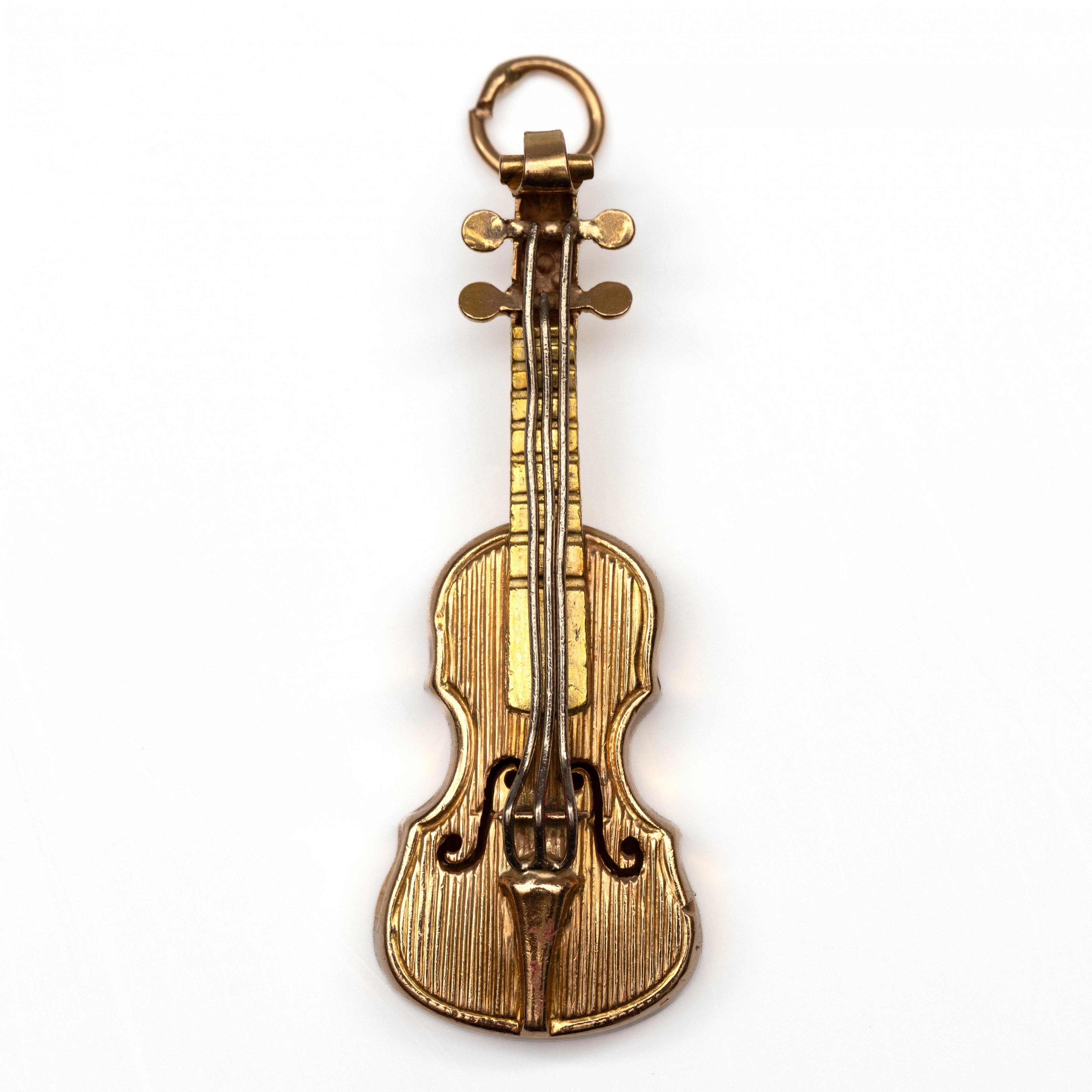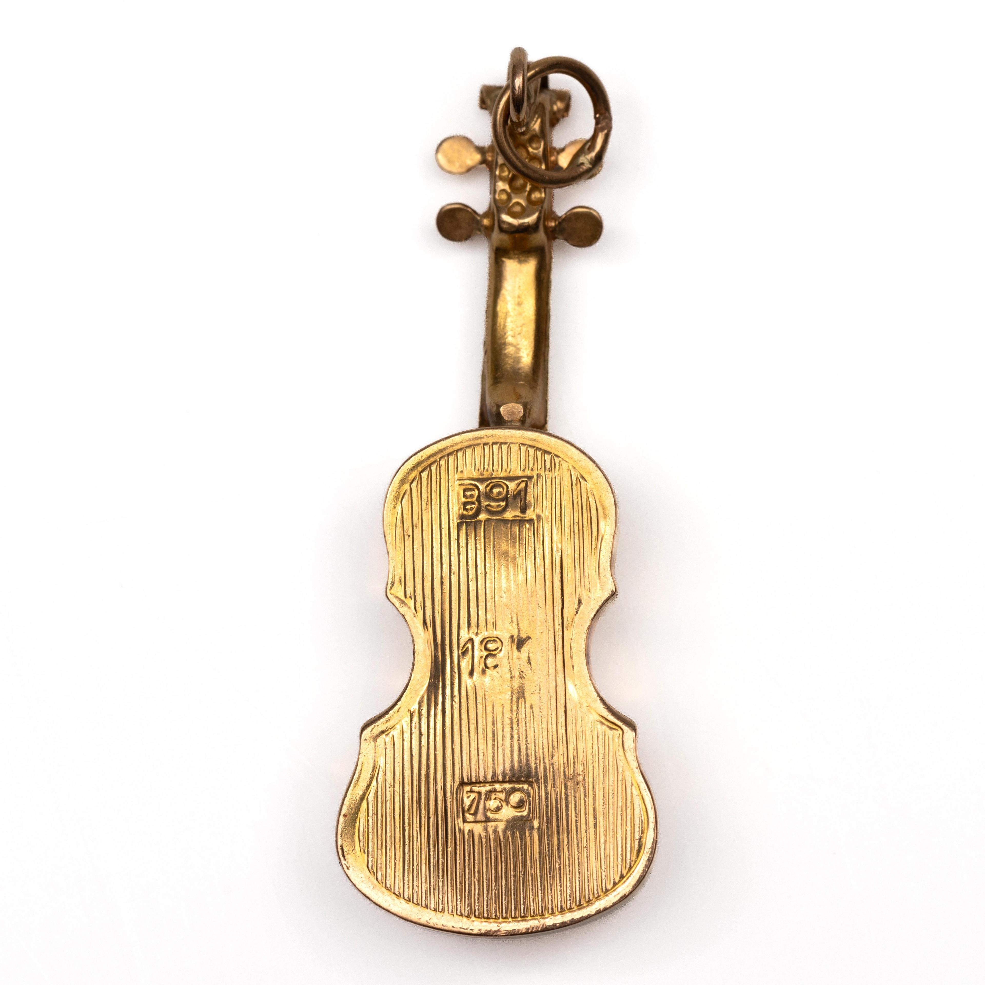 in de vorm van een viool. De hals van geelgoud, de snaren van witgoud