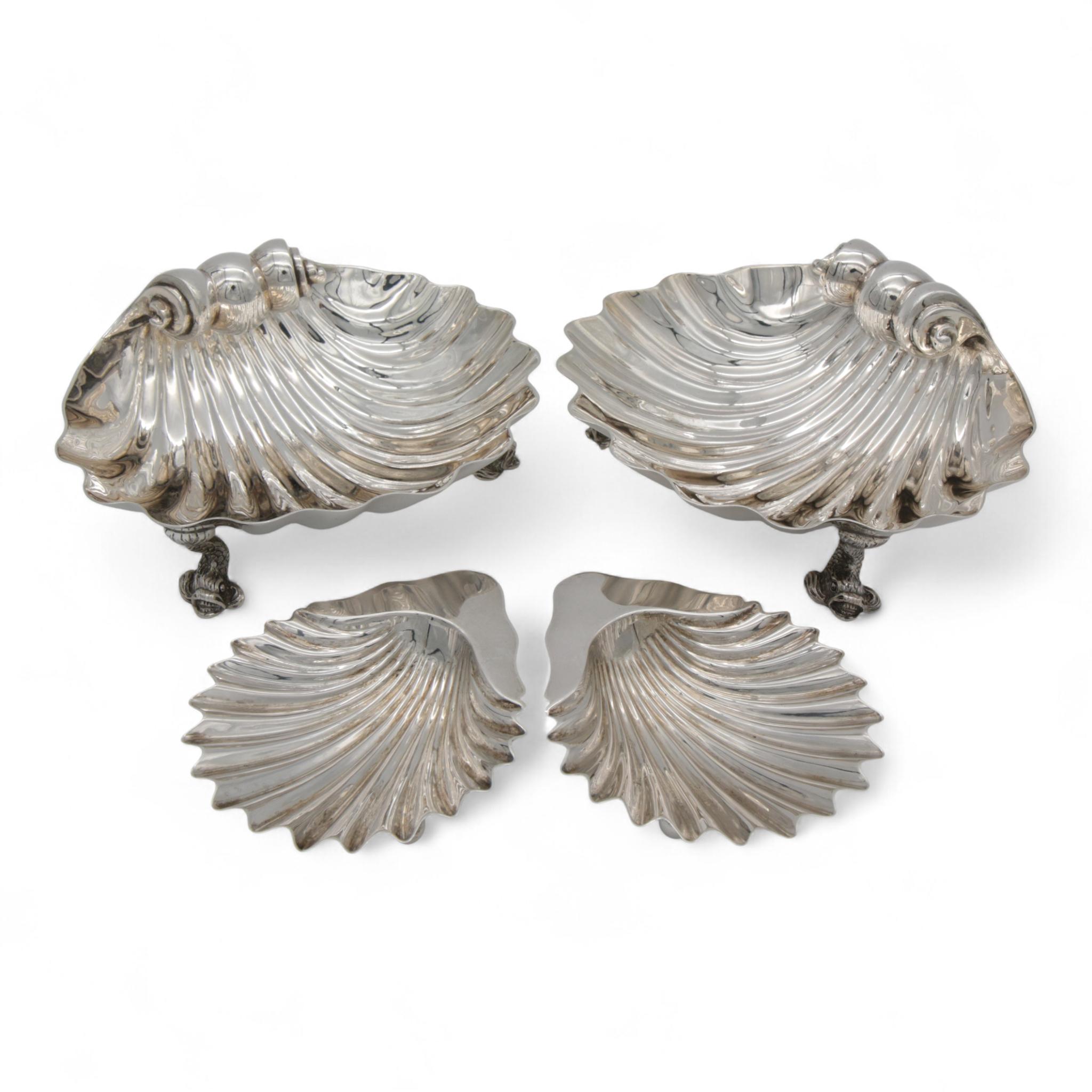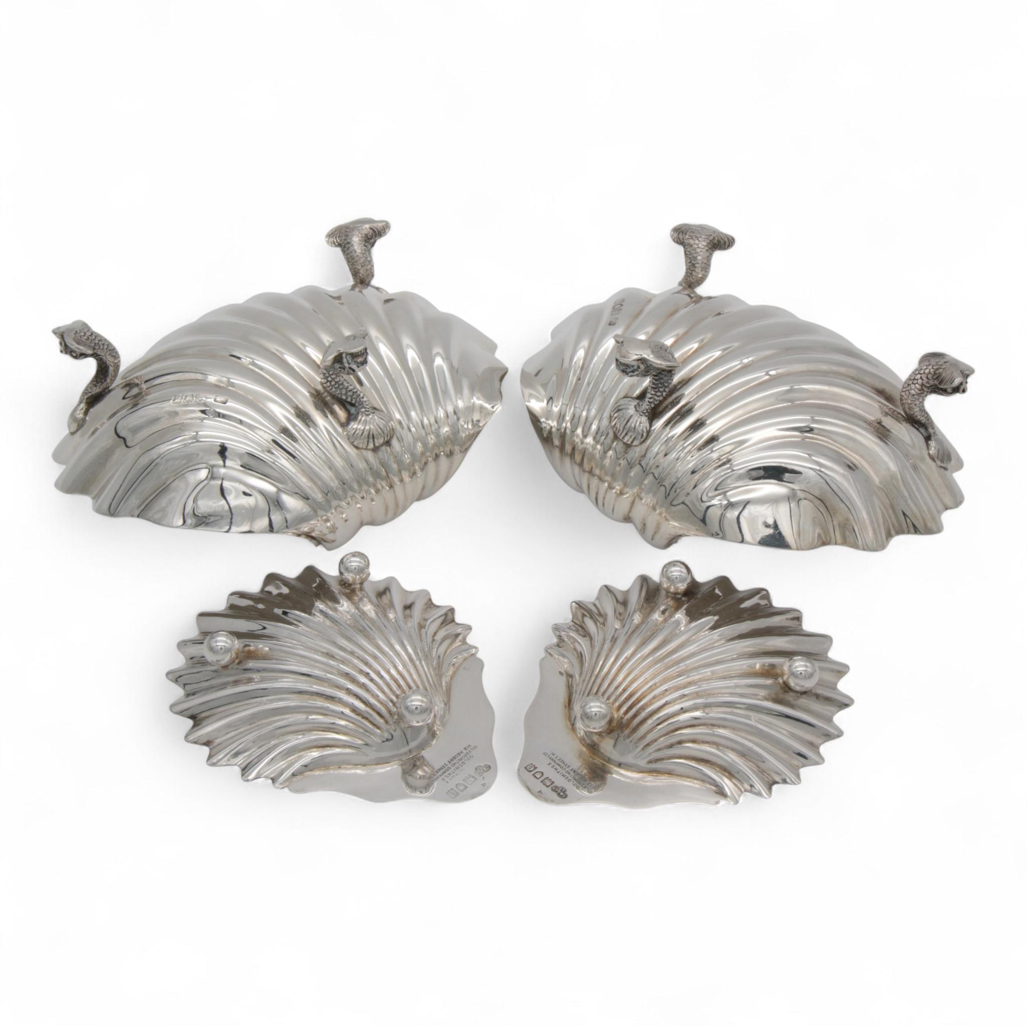 Engeland, paar schelpvormige coupes en een paar schelpvormige schaaltjes, vroeg 20e eeuw,