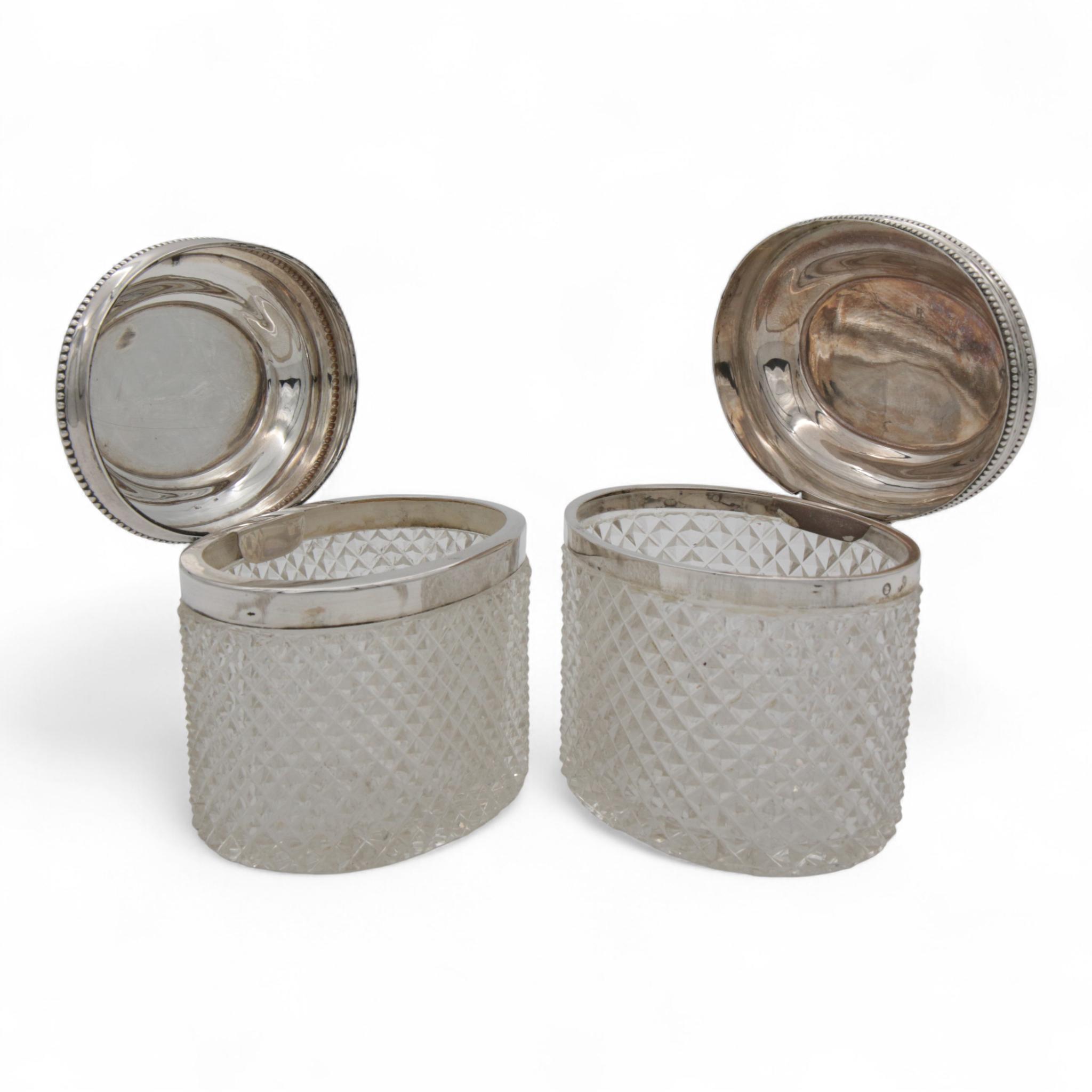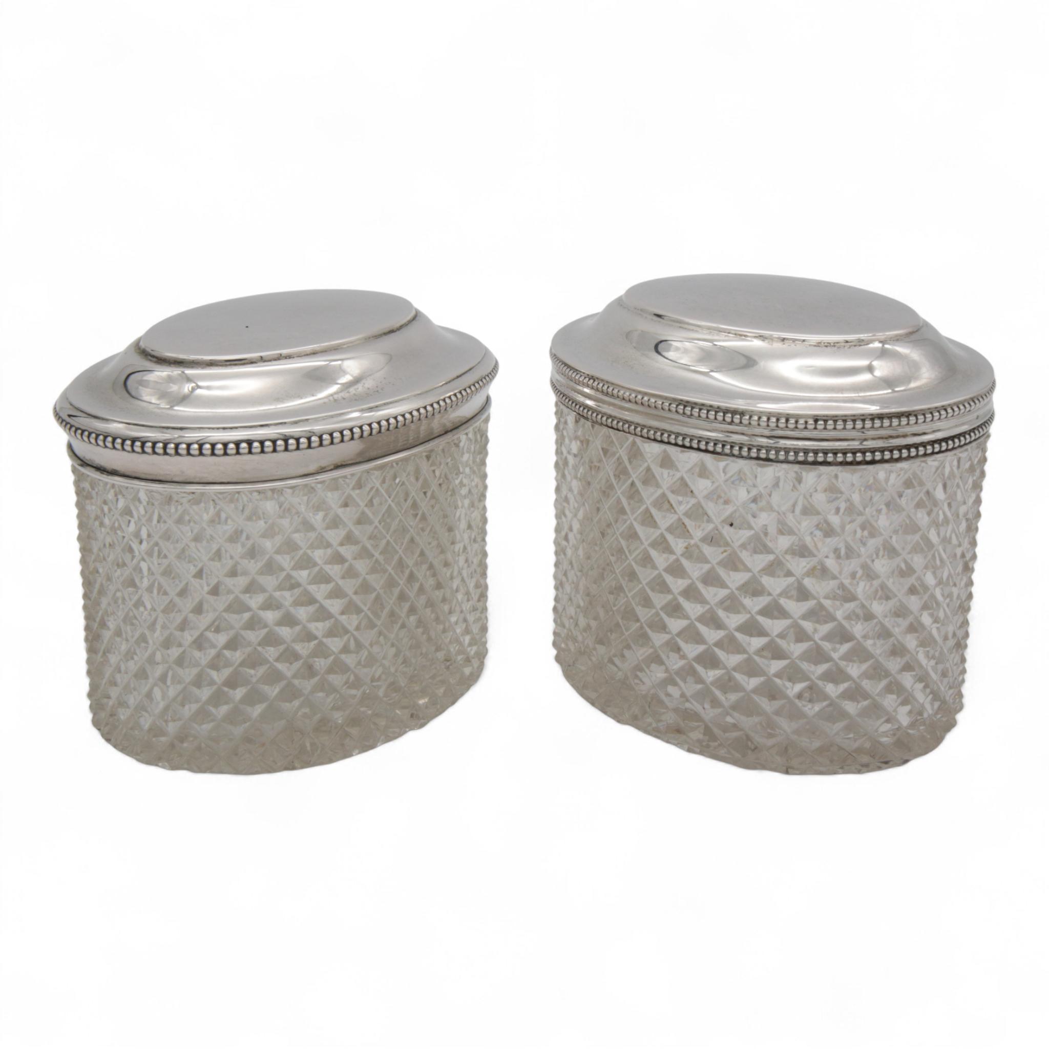 Twee kristallen theebussen met zilveren deksel, eind 19e eeuw of vroeg 20e eeuw,