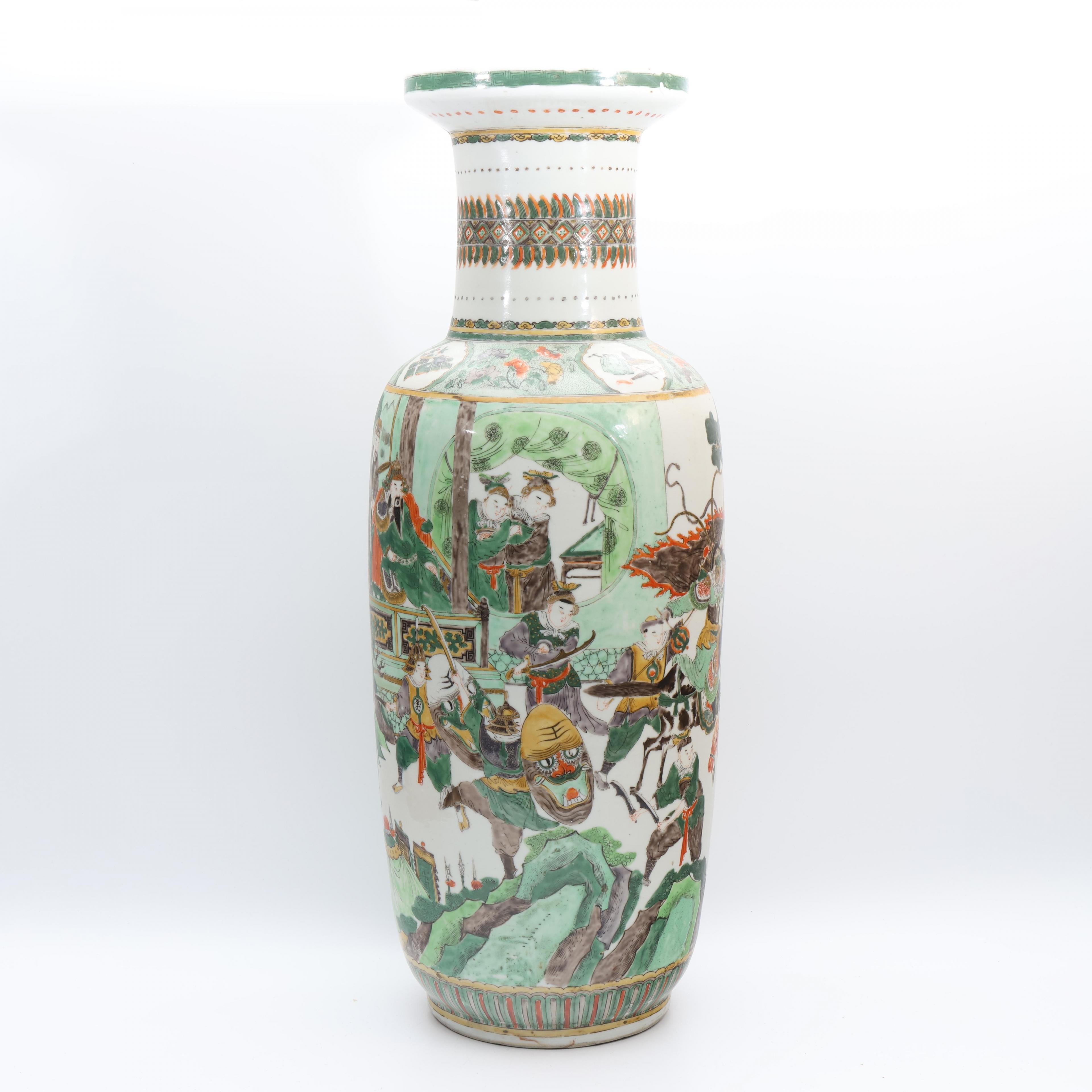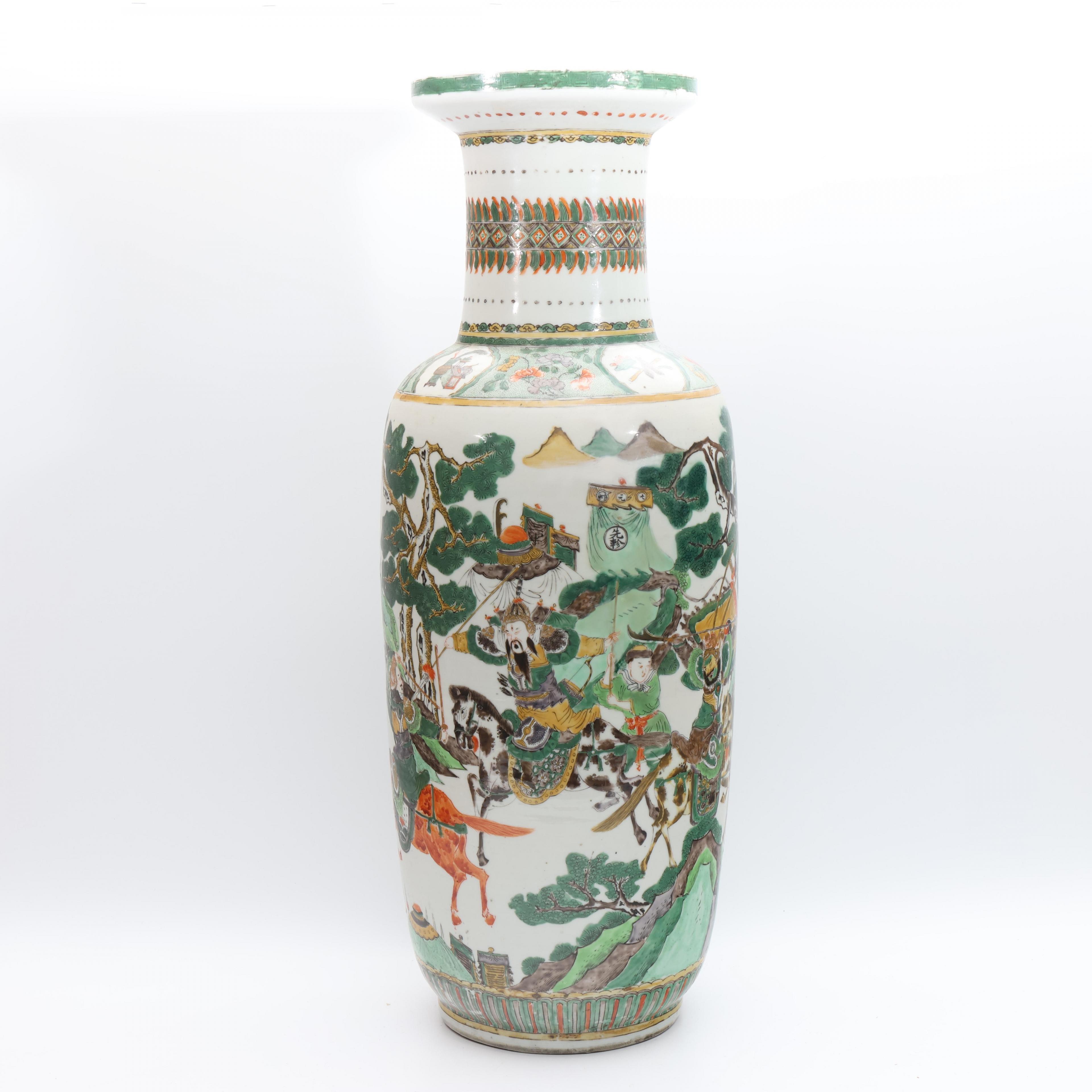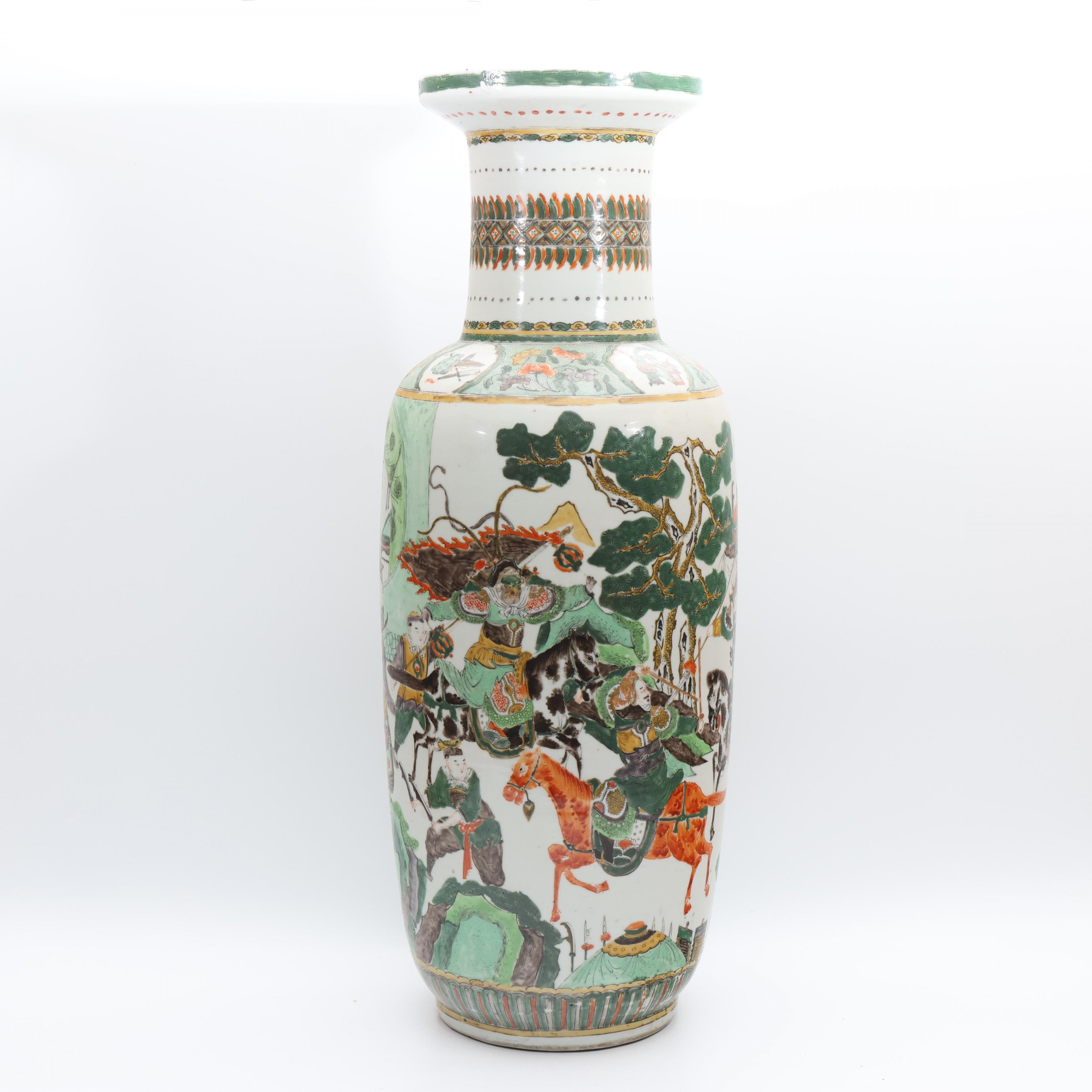 the sides painted in the Kangxi style with a warrior scene from the Romance of the Three Kingdoms (restored)