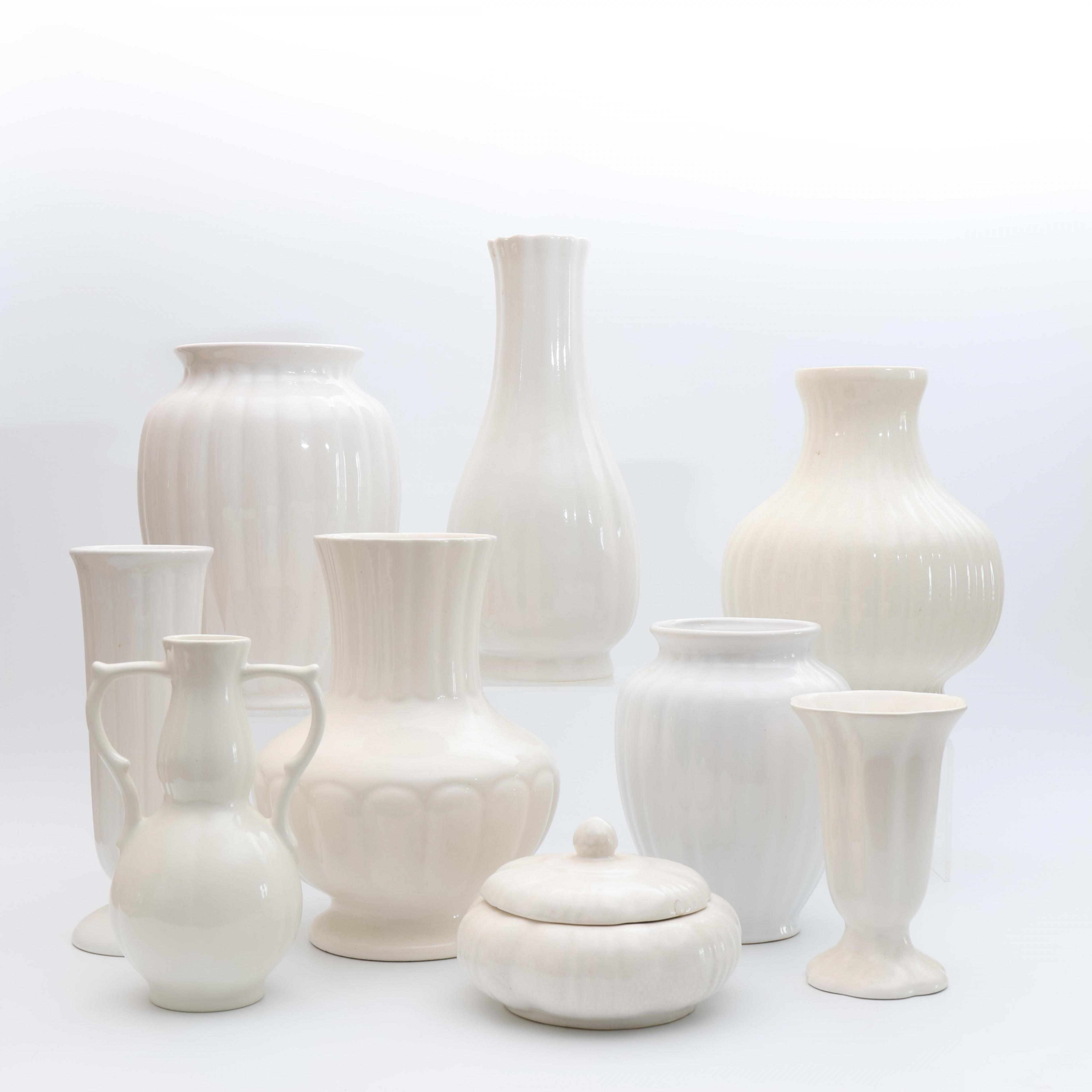 Delft, acht wit aardewerk vazen, 20e eeuw;