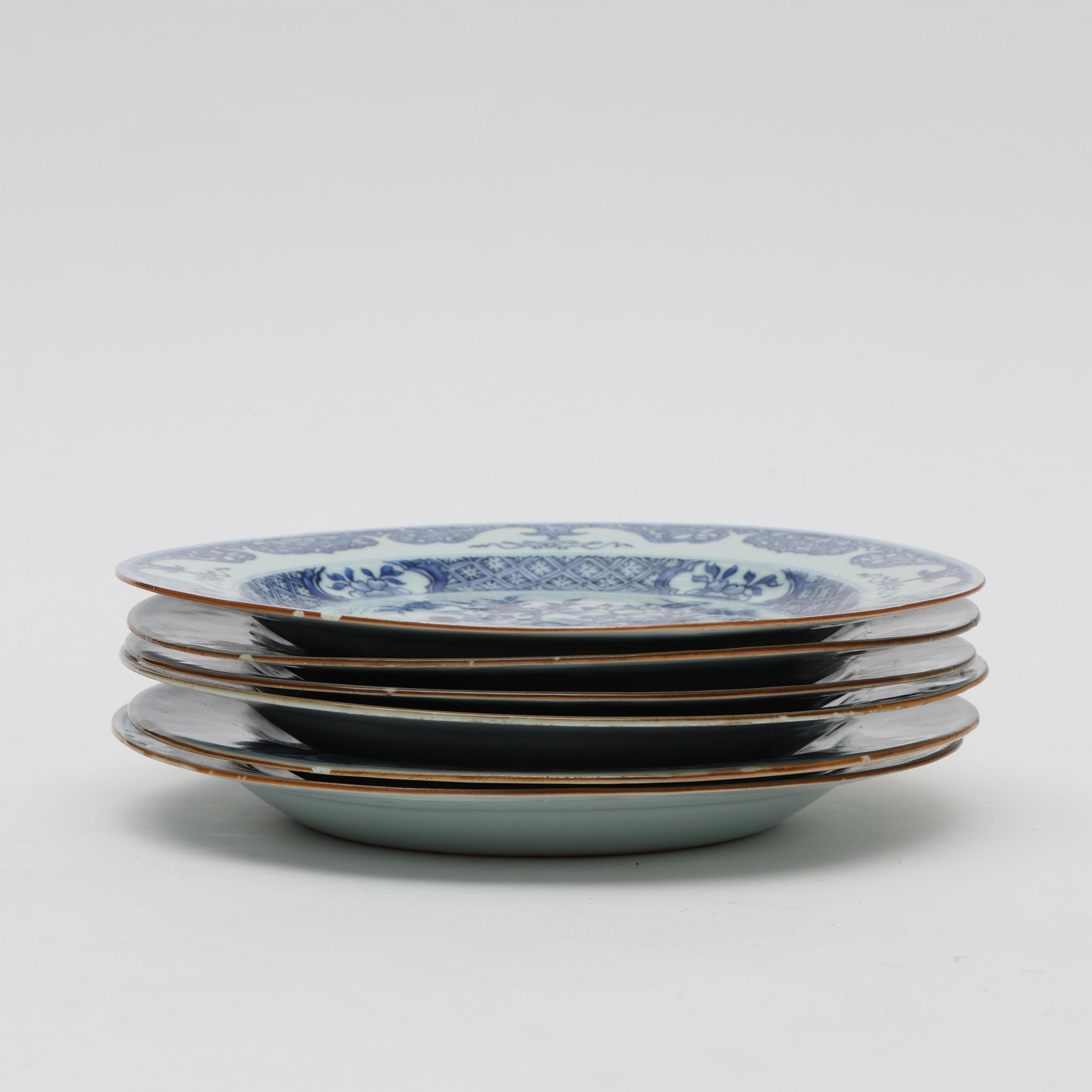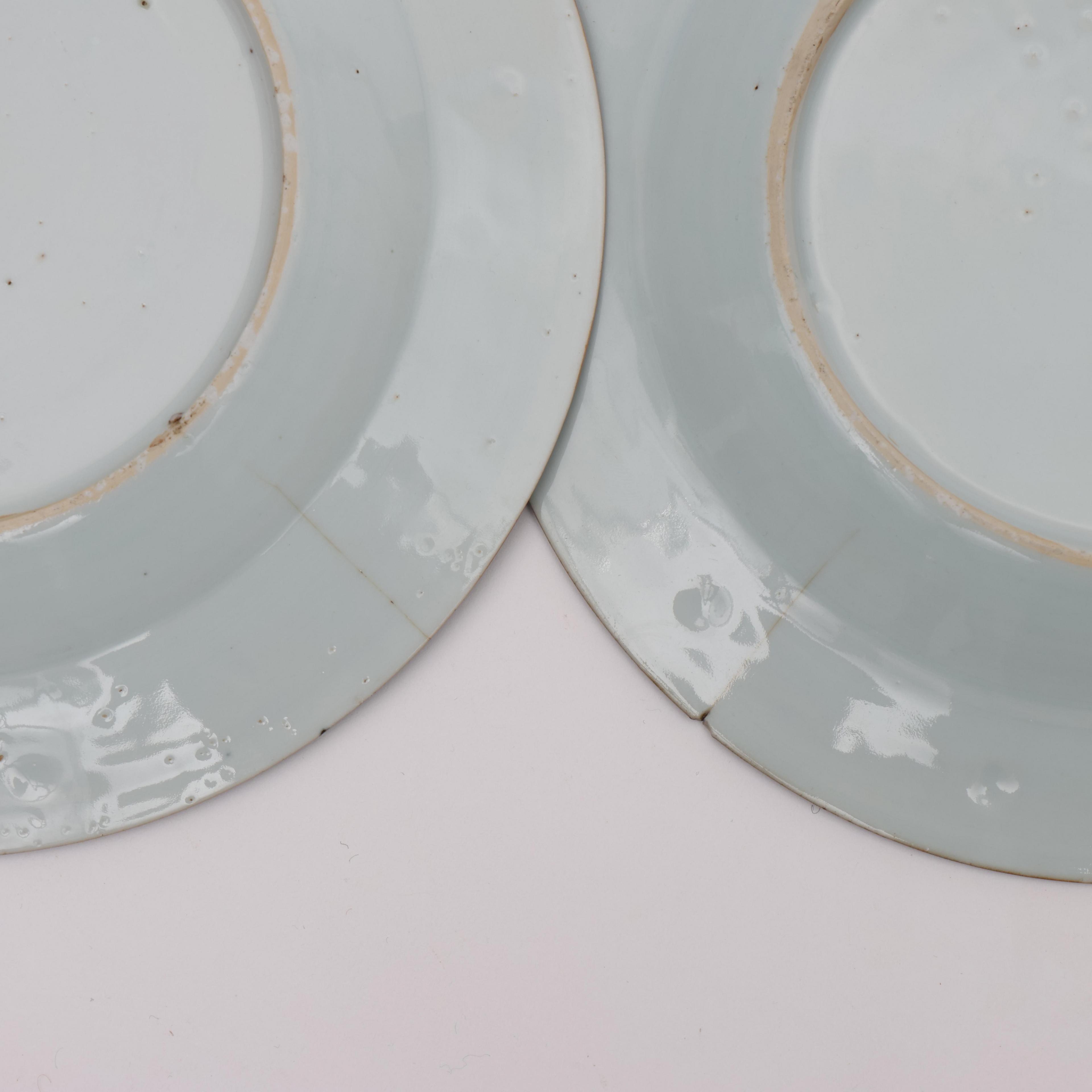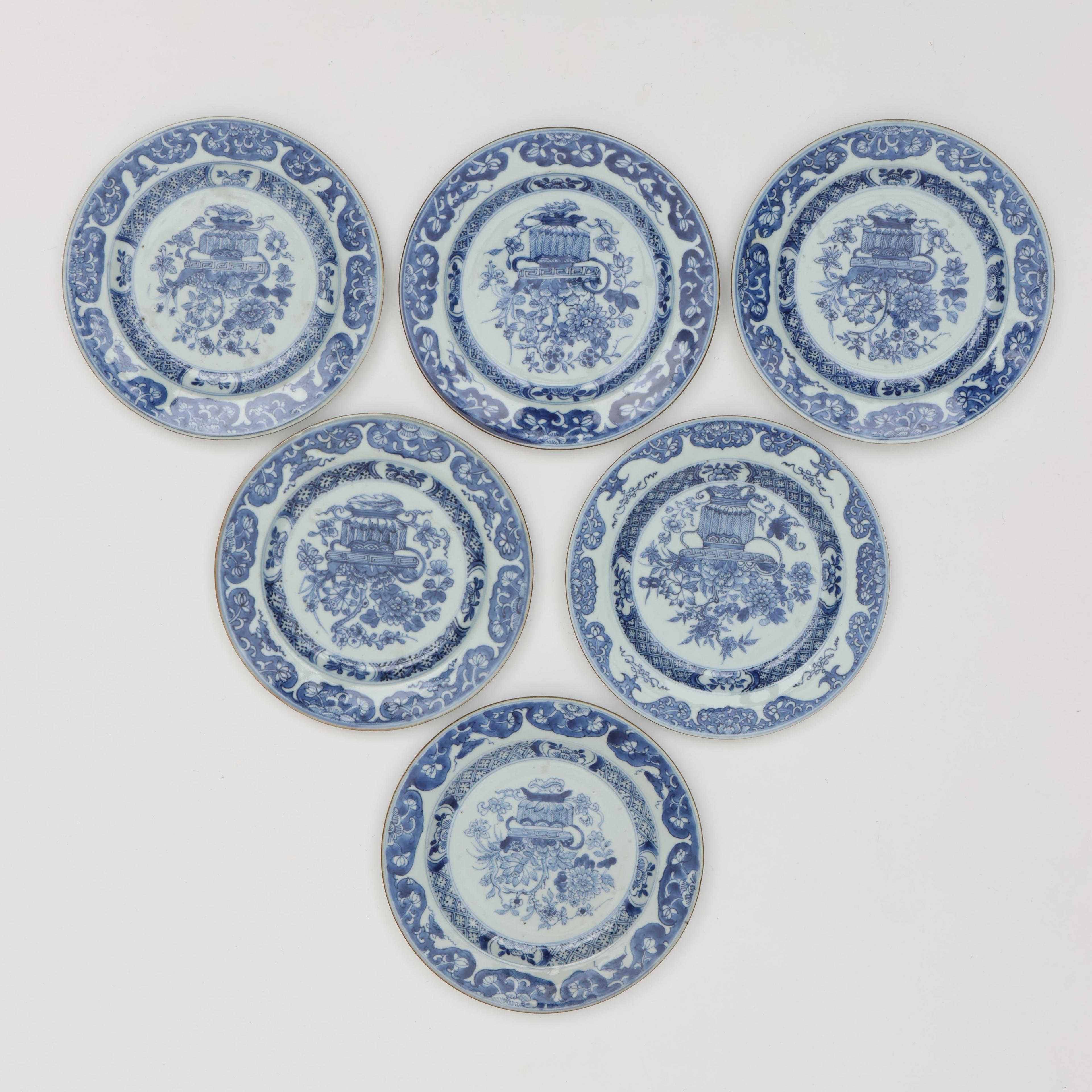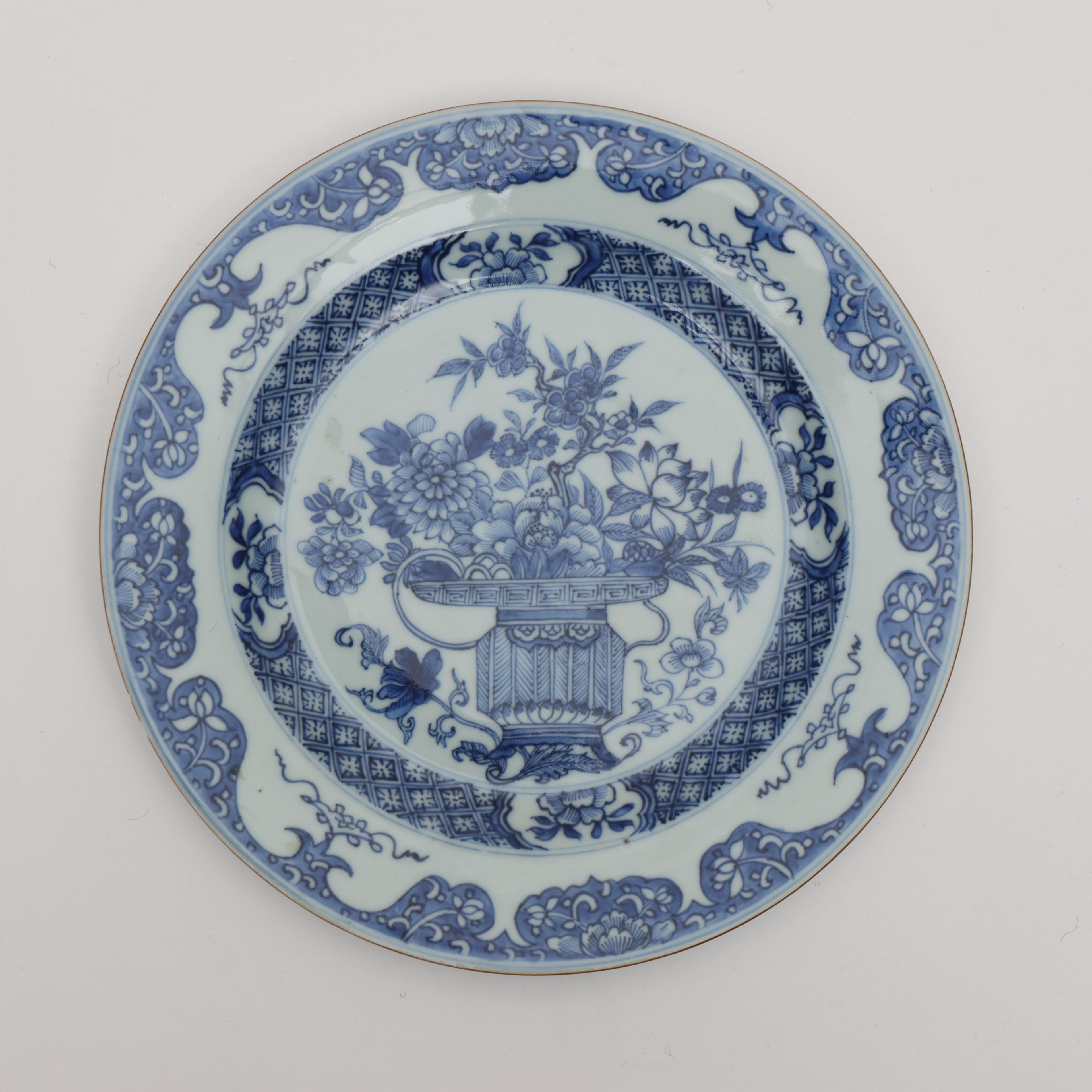 decorated with flower-baskets of lilies, lotus and chrysanthemum (two with a hairline, various small rim nicks)