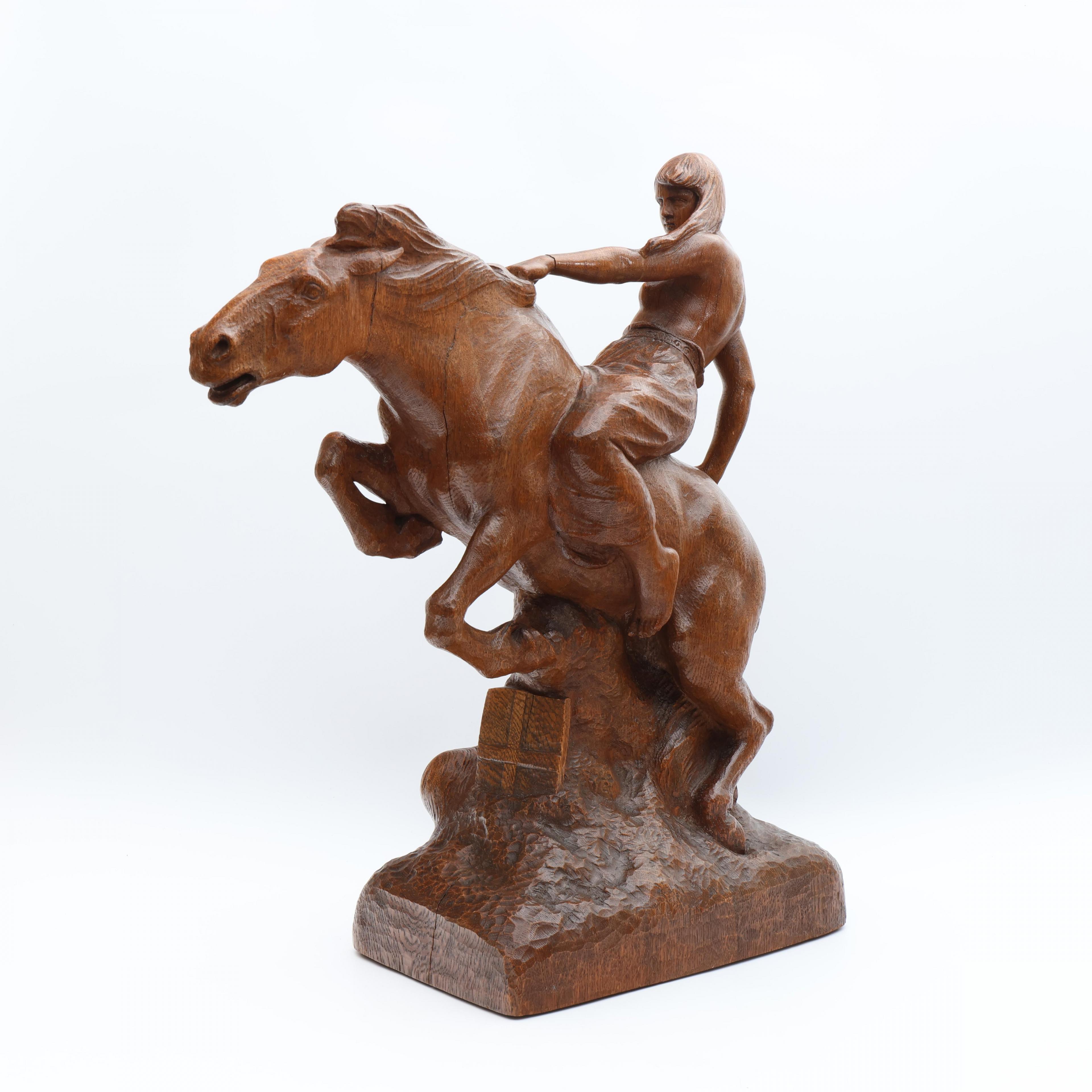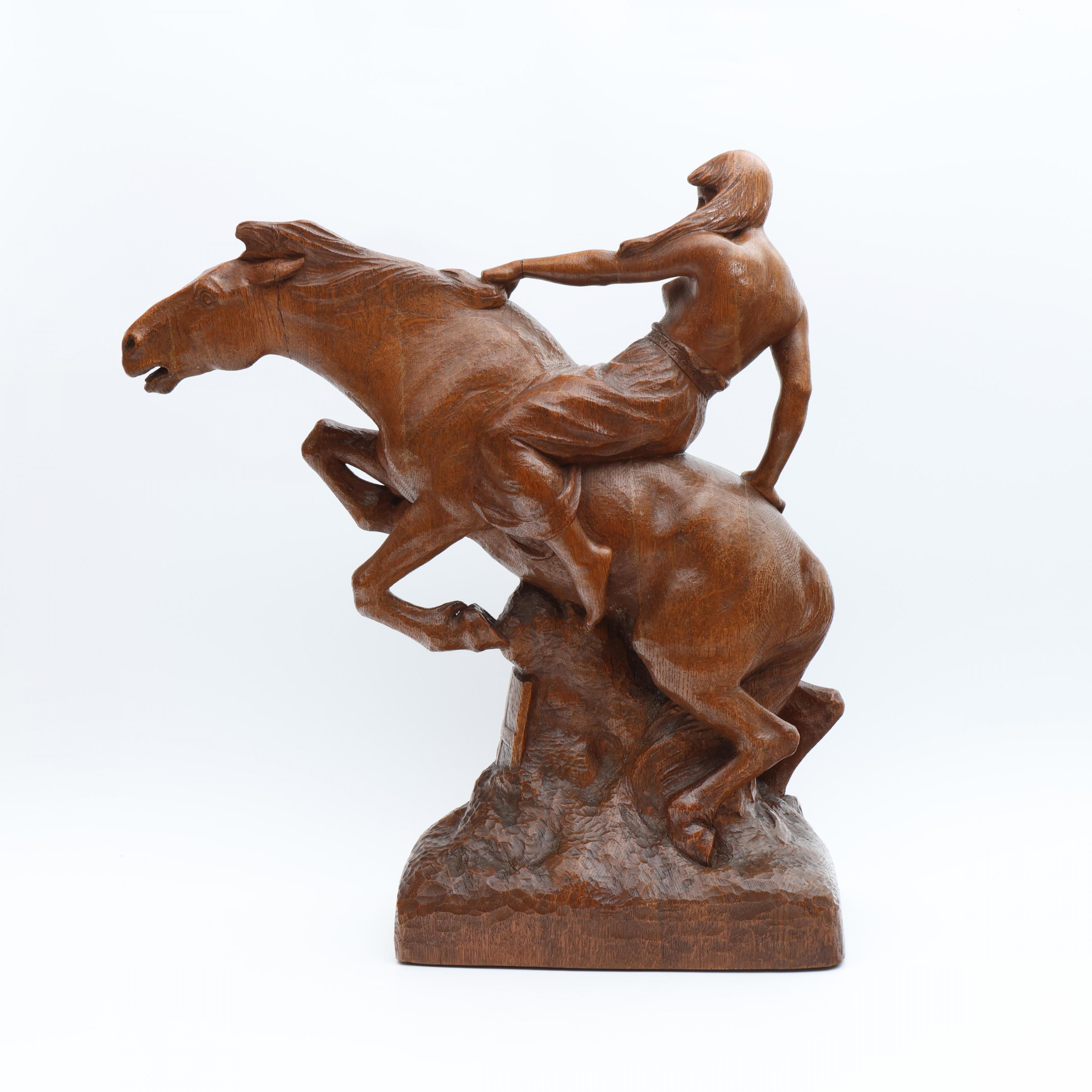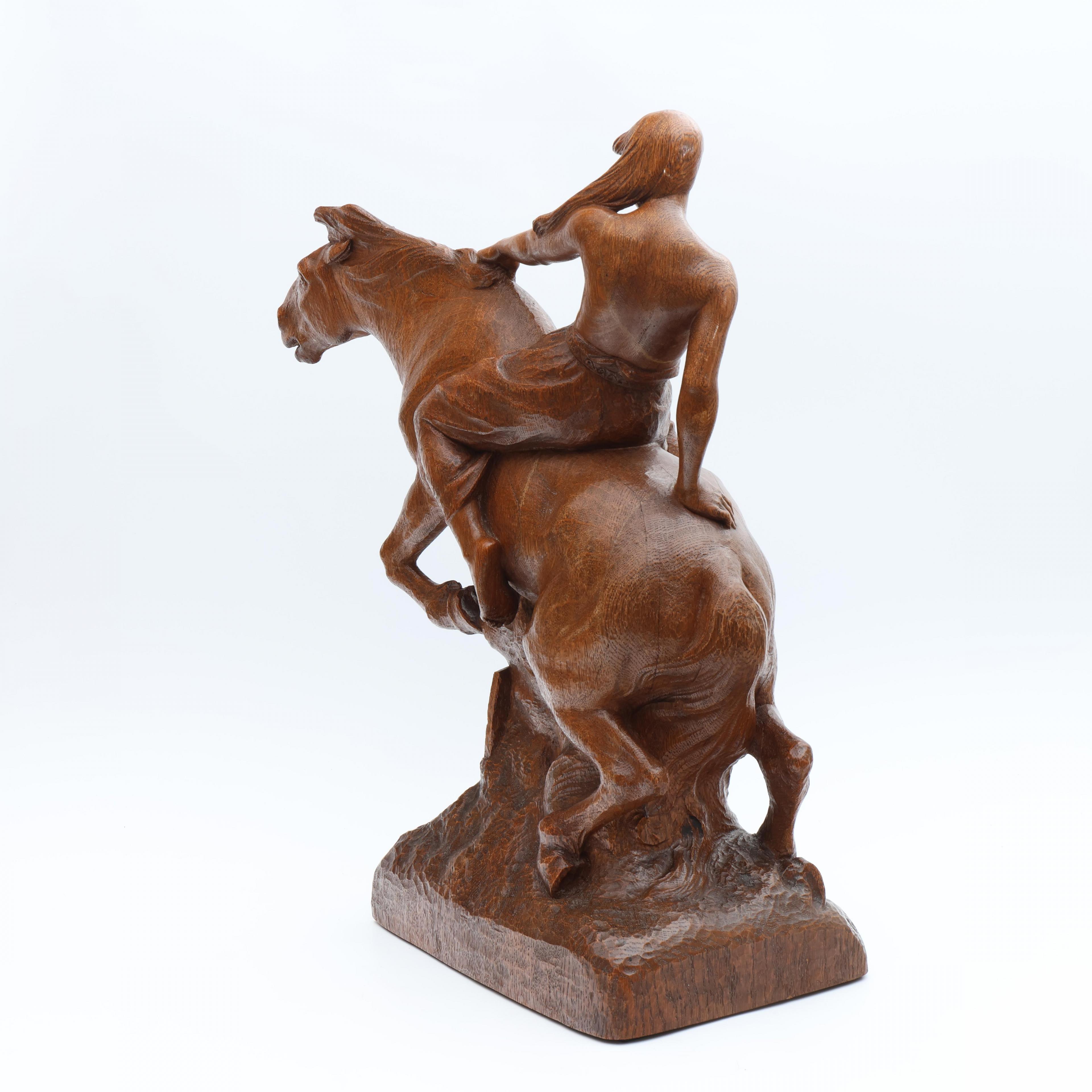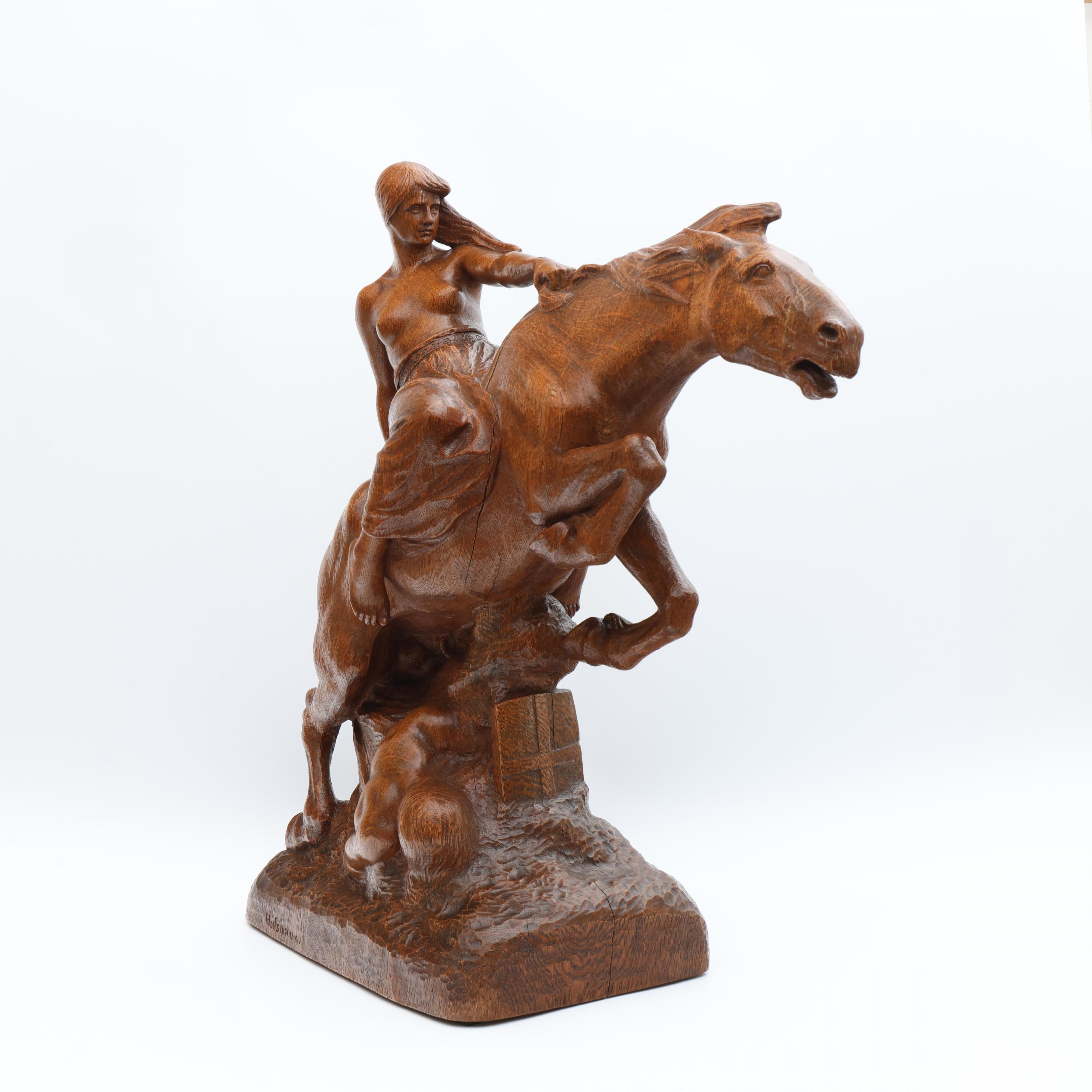 Albert Hinrich Hussmann (1874-1946), eikenhouten sculptuur, 'Walküre zu Pferde';