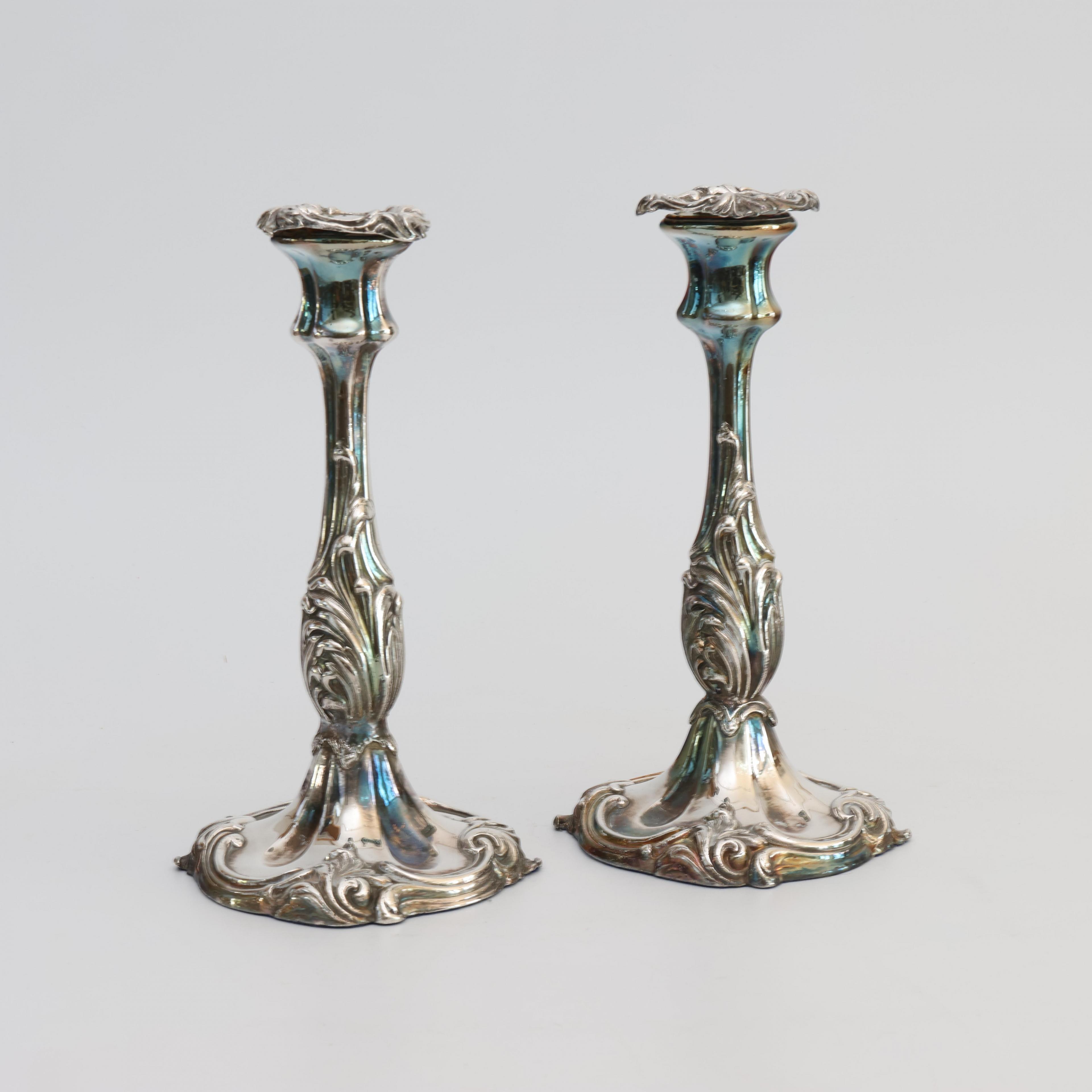 Engeland, paar verzilverde eenlichts kandelaars, laat 19e eeuw;
