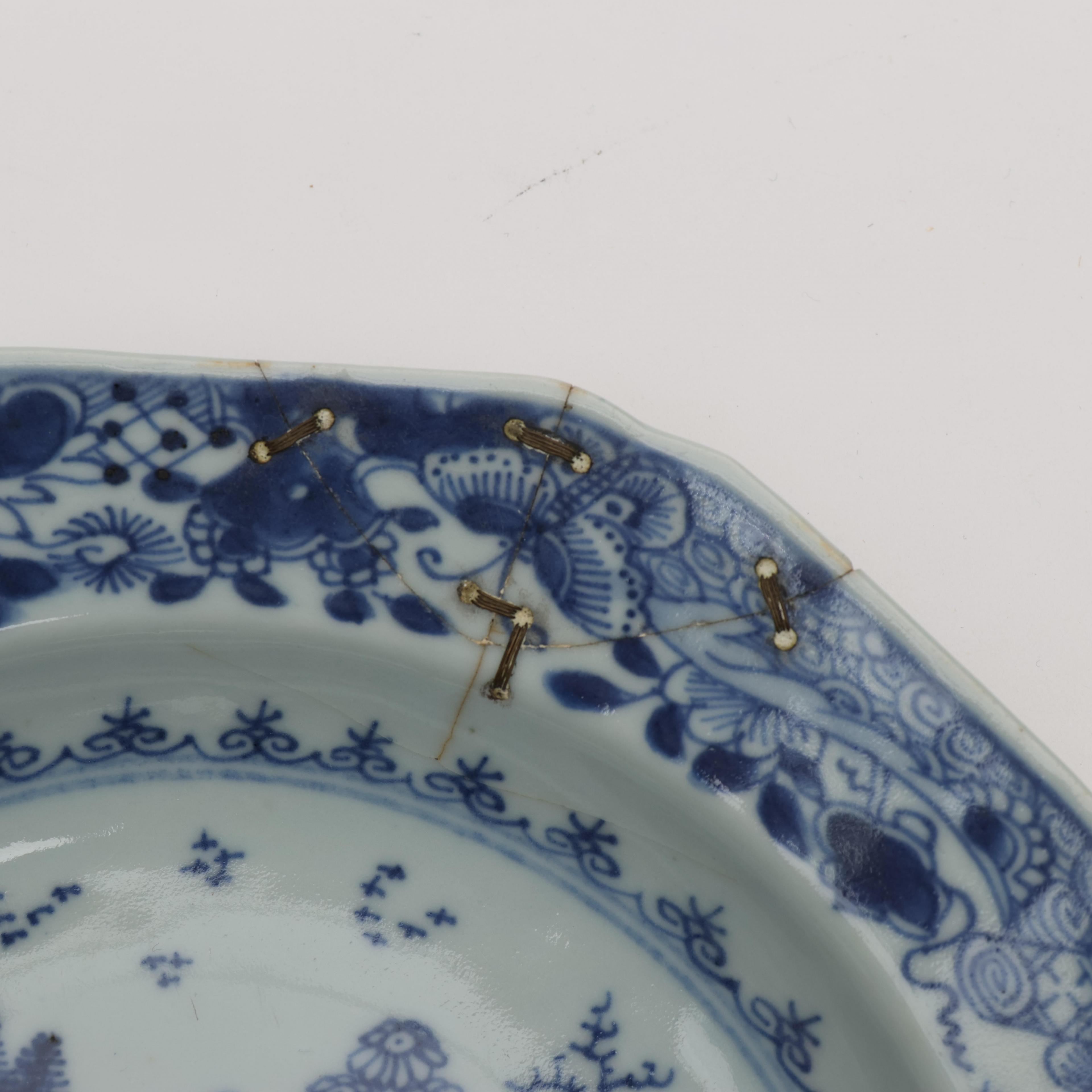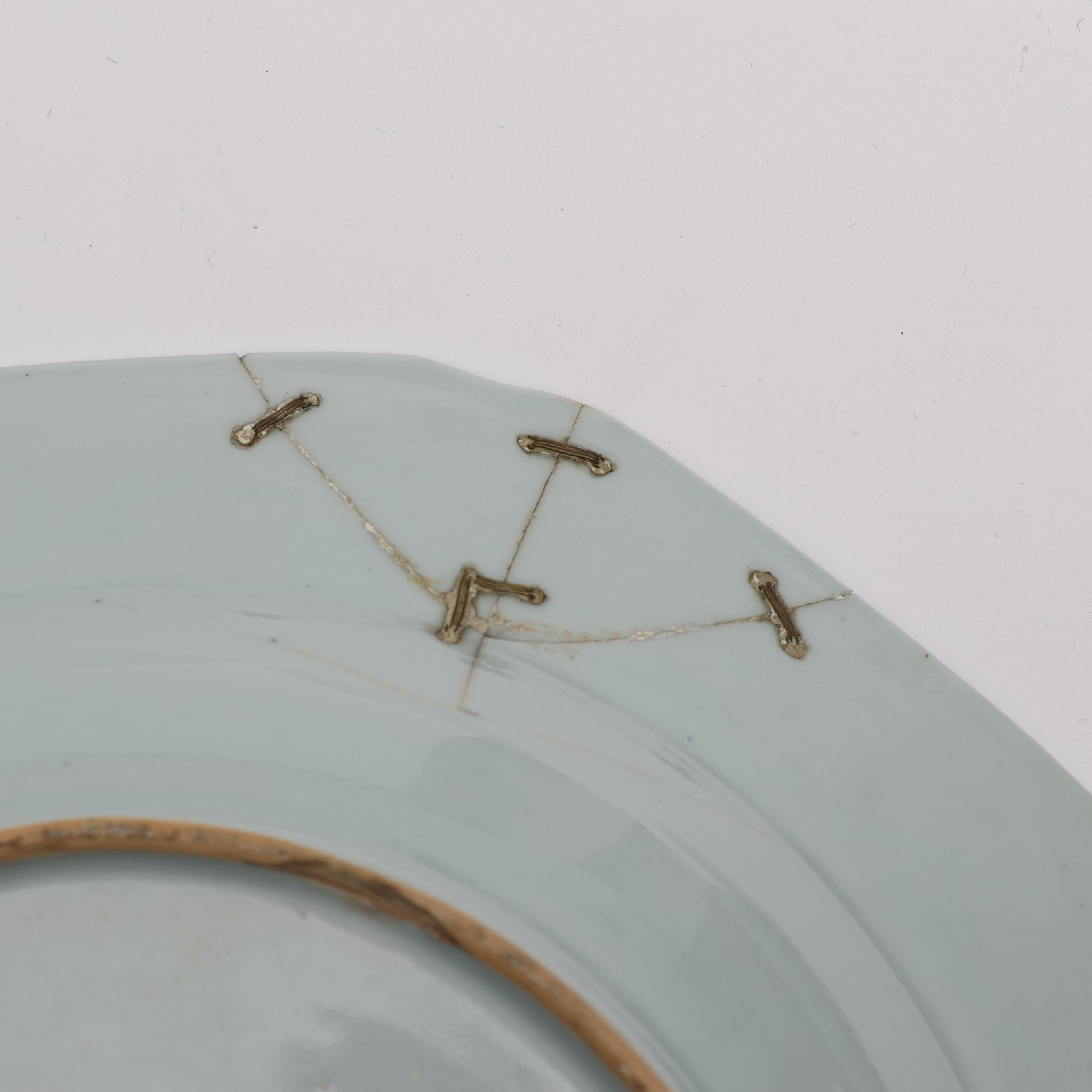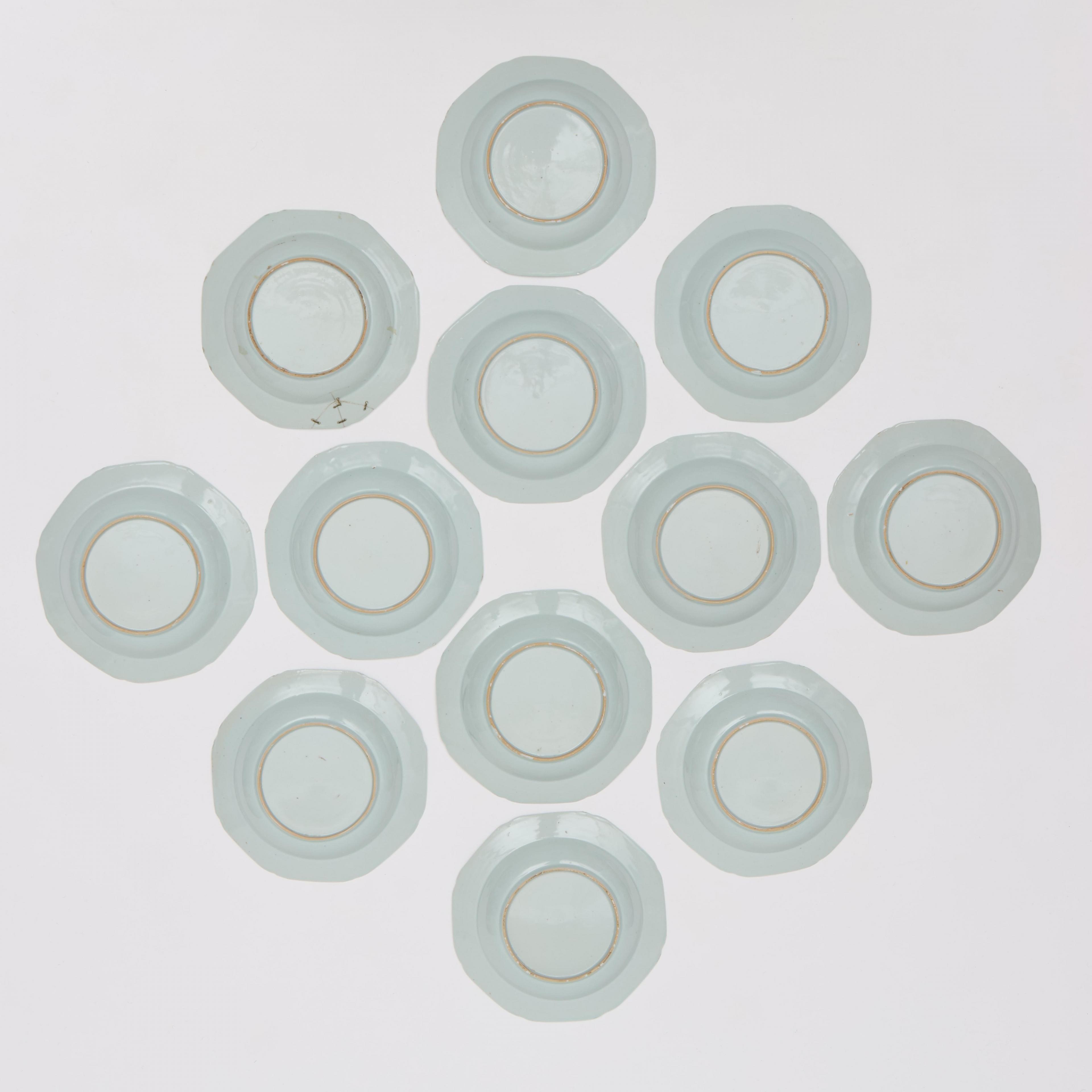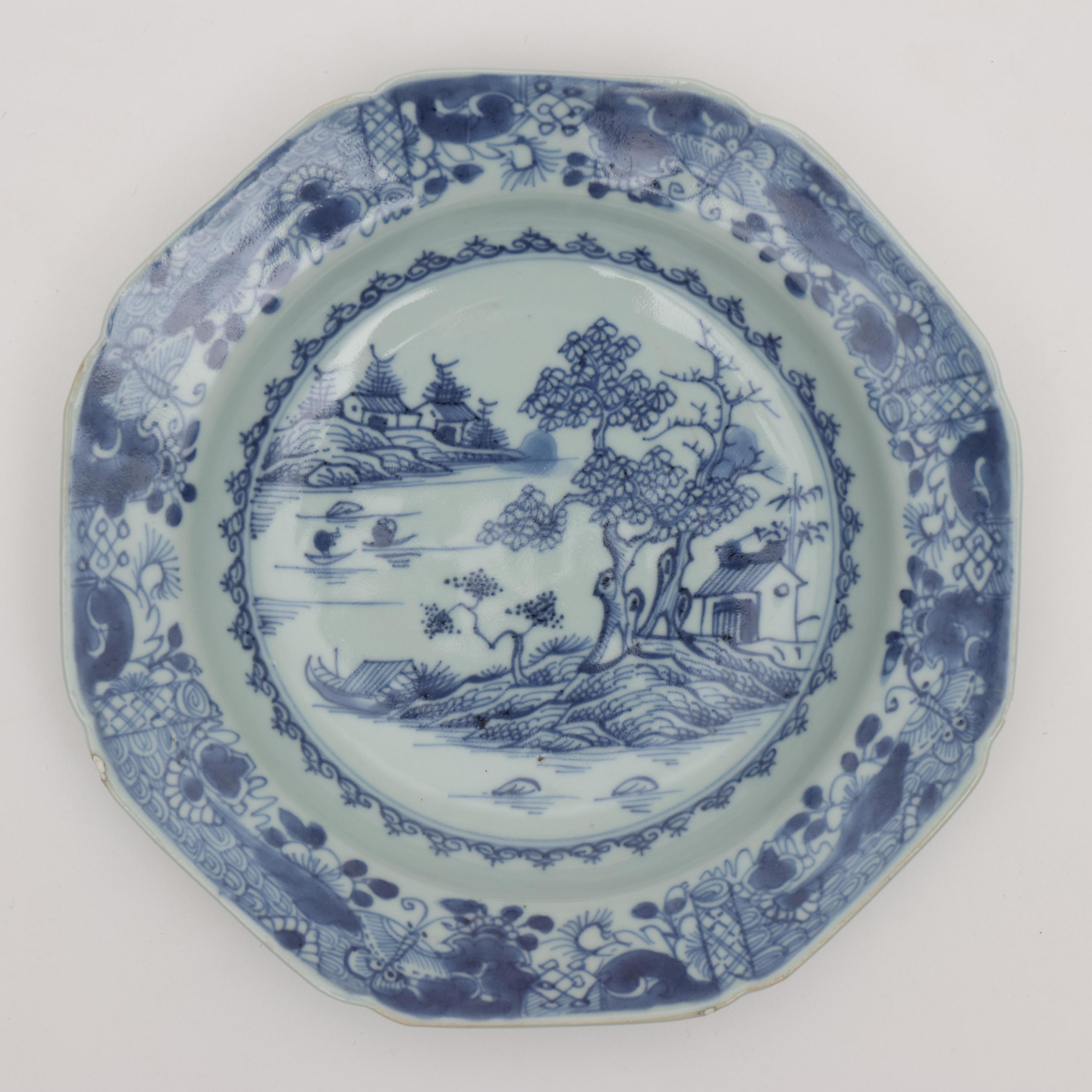 each decorated with fishermen in an extensive riverscape with a pavilion and tree in the foreground, the rim with composite border (one restored with crams, four with small harlines, some small rim nicks and frits as expected)