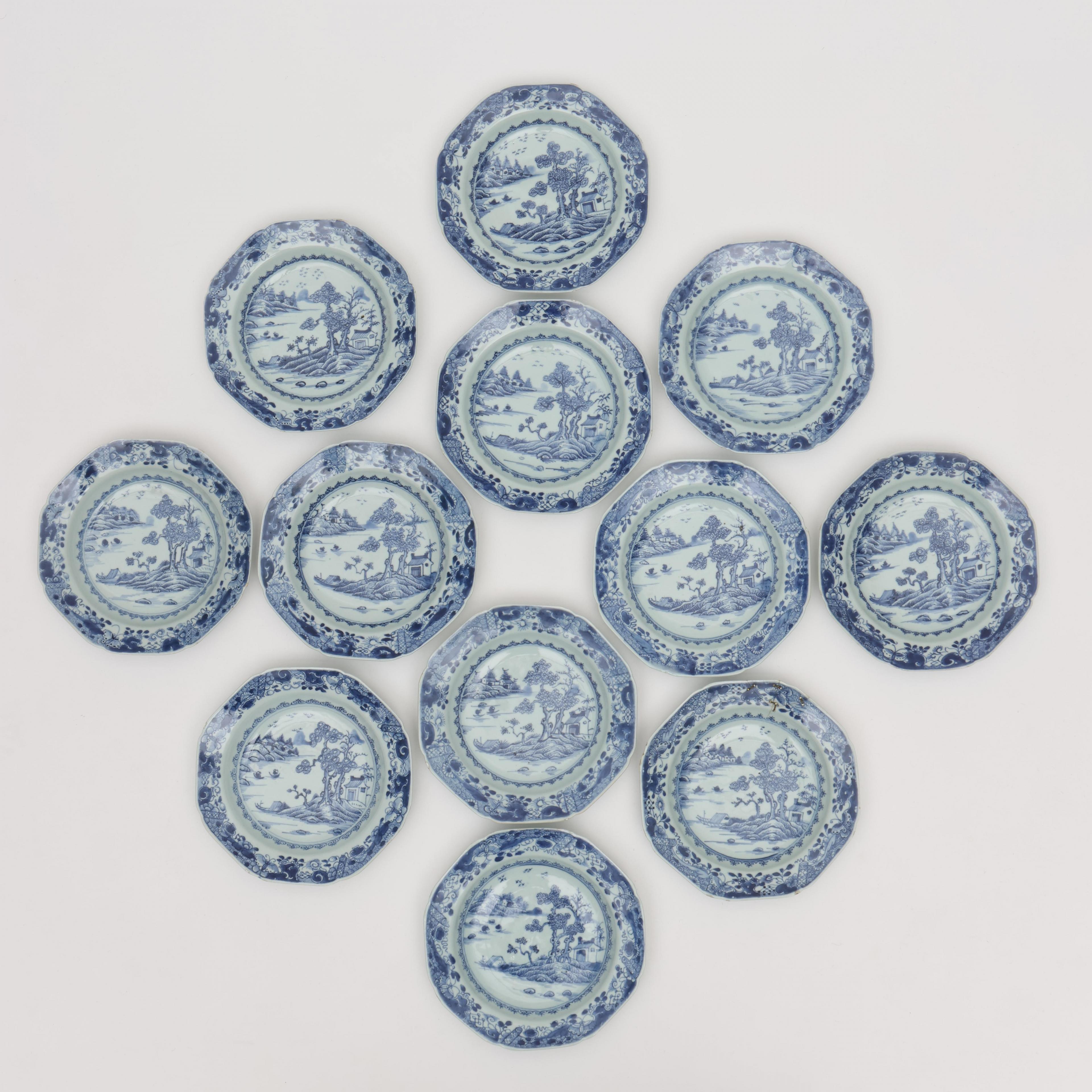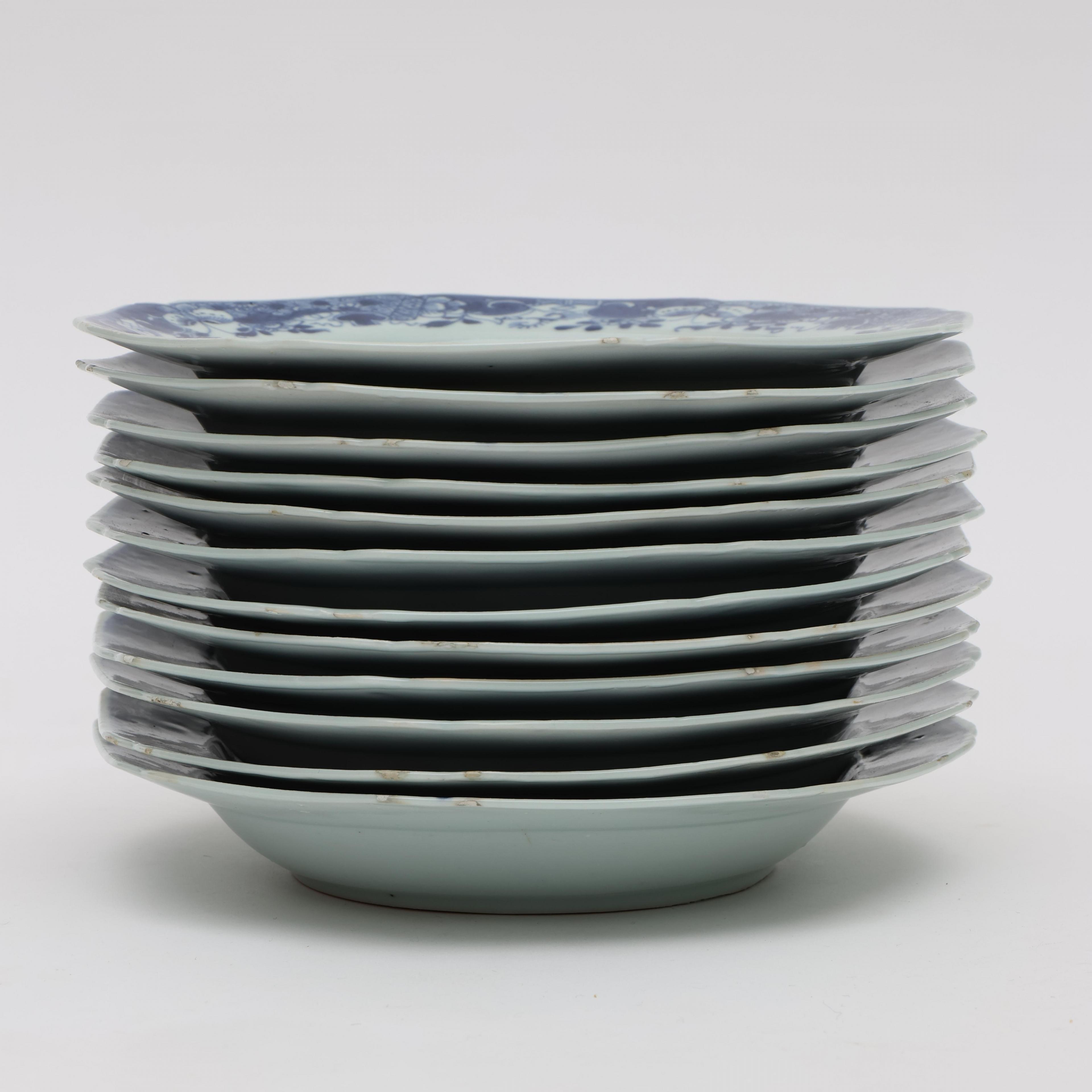 China, a set of twelve deep blue and white porcelain plates, Qianlong period (1736-1795),