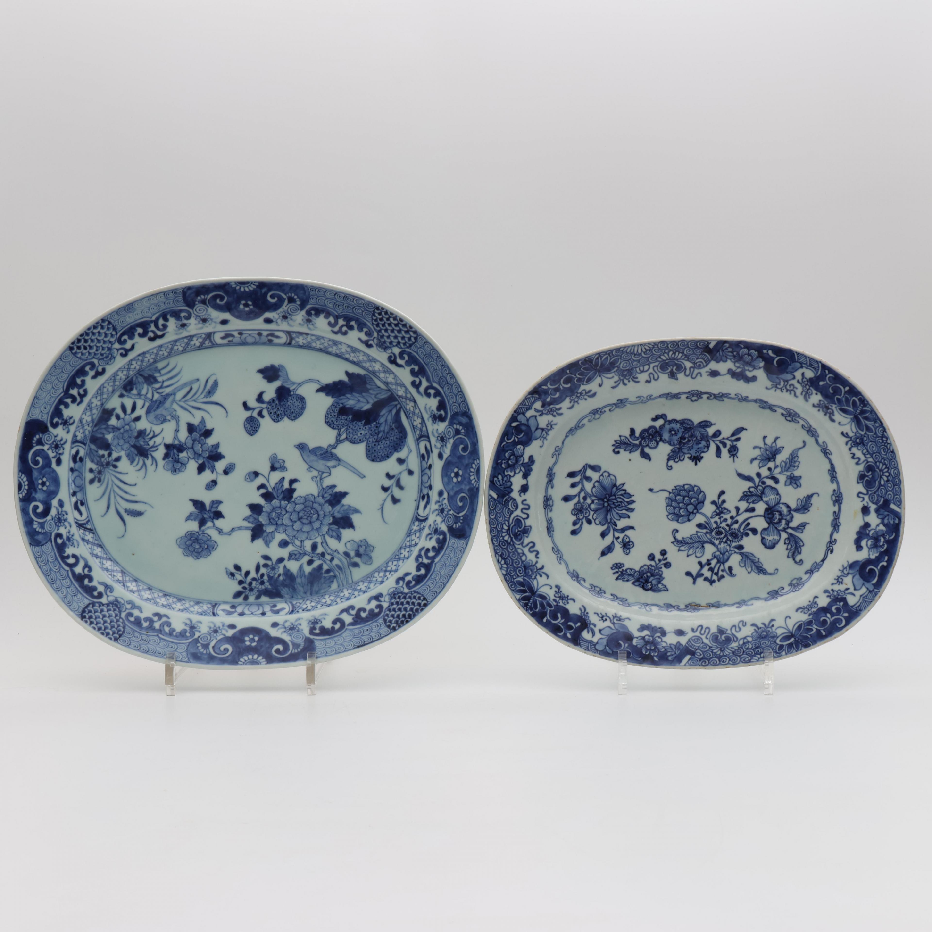 China, two blue and white porcelain serving dishes, ca. 1800,
