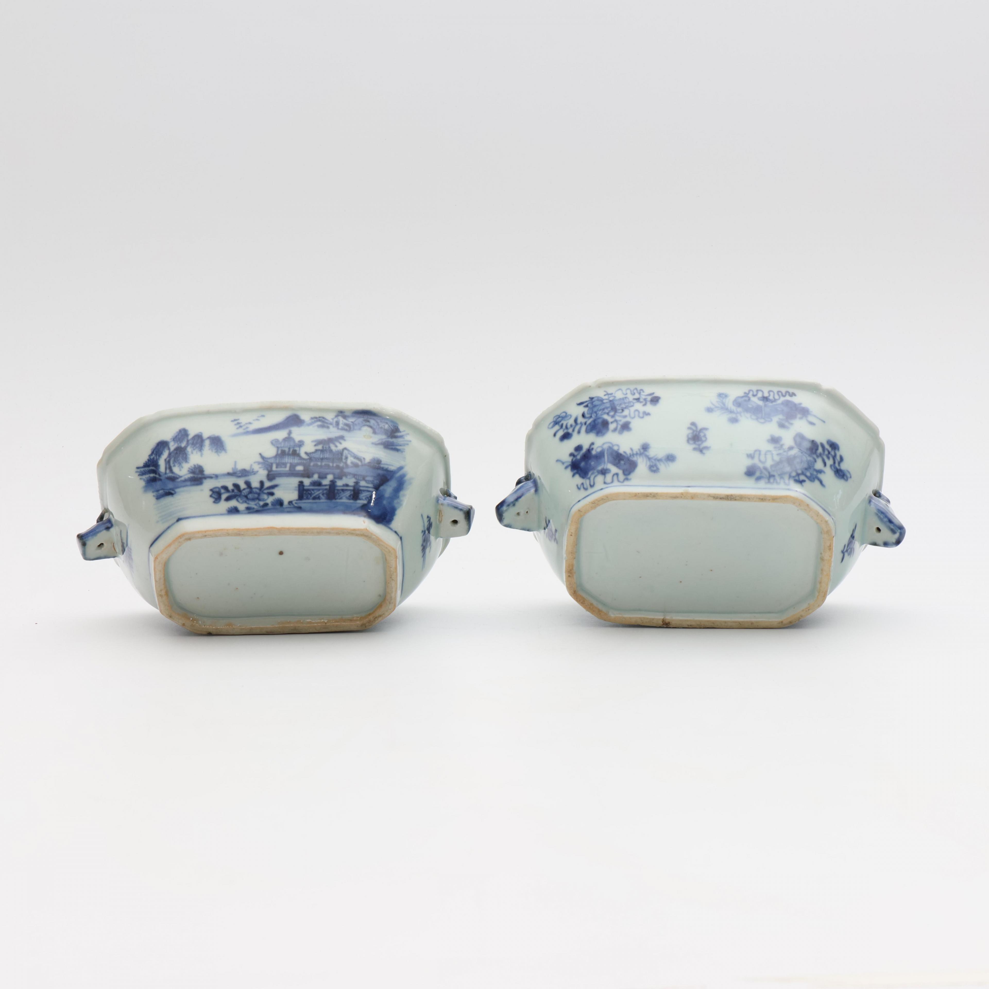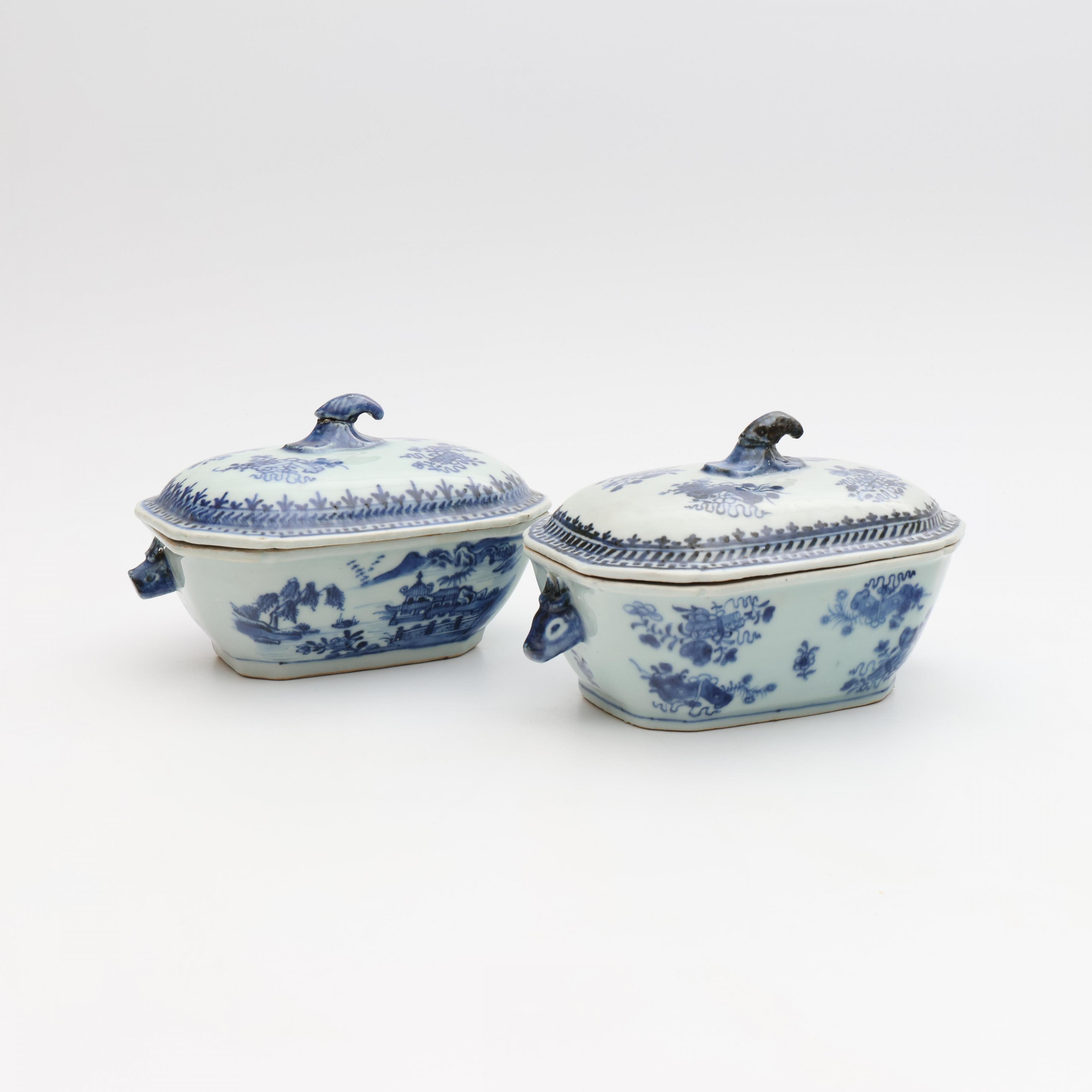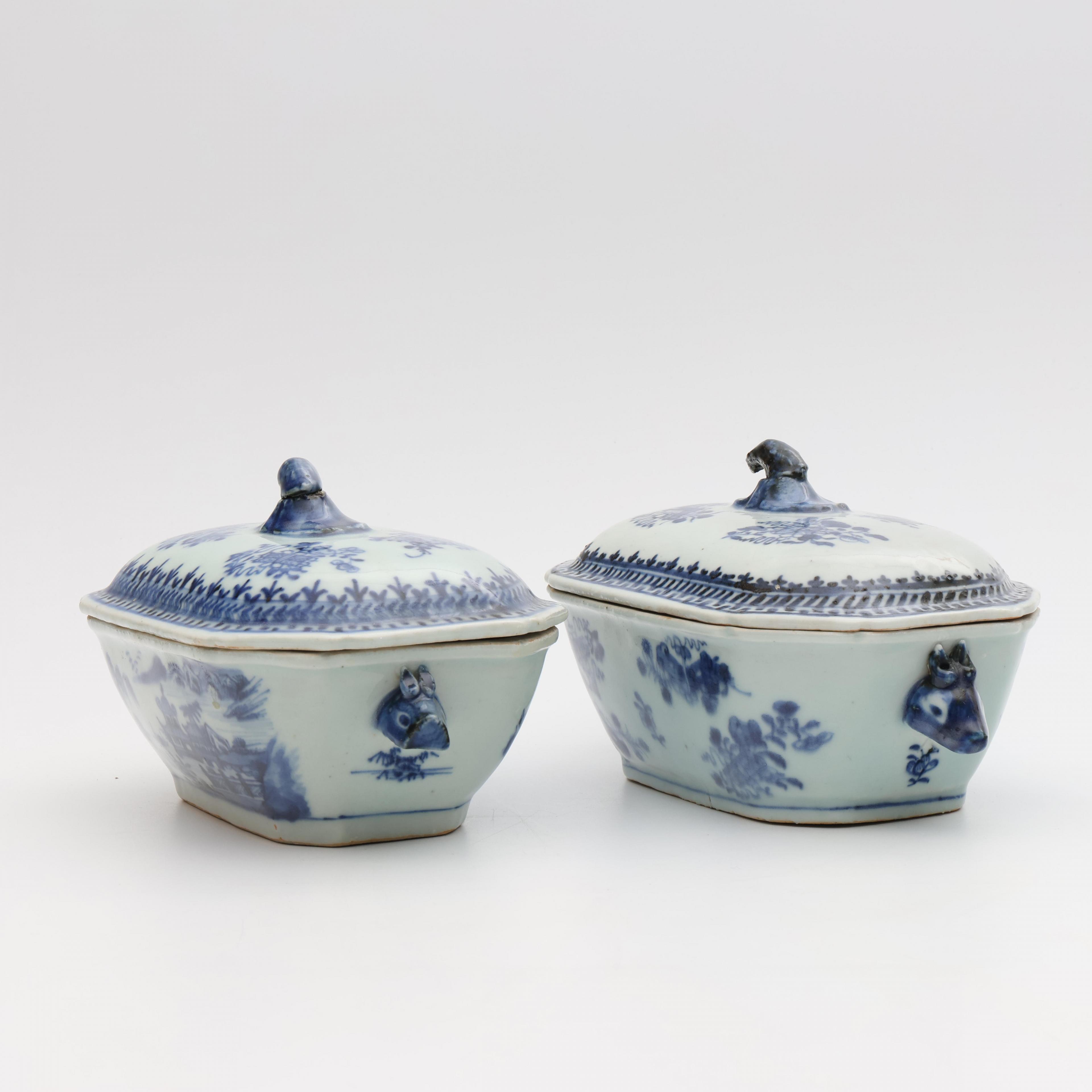 China, a pair of blue and white porcelain butter-tubs and covers, Qianlong period (1736-1795),