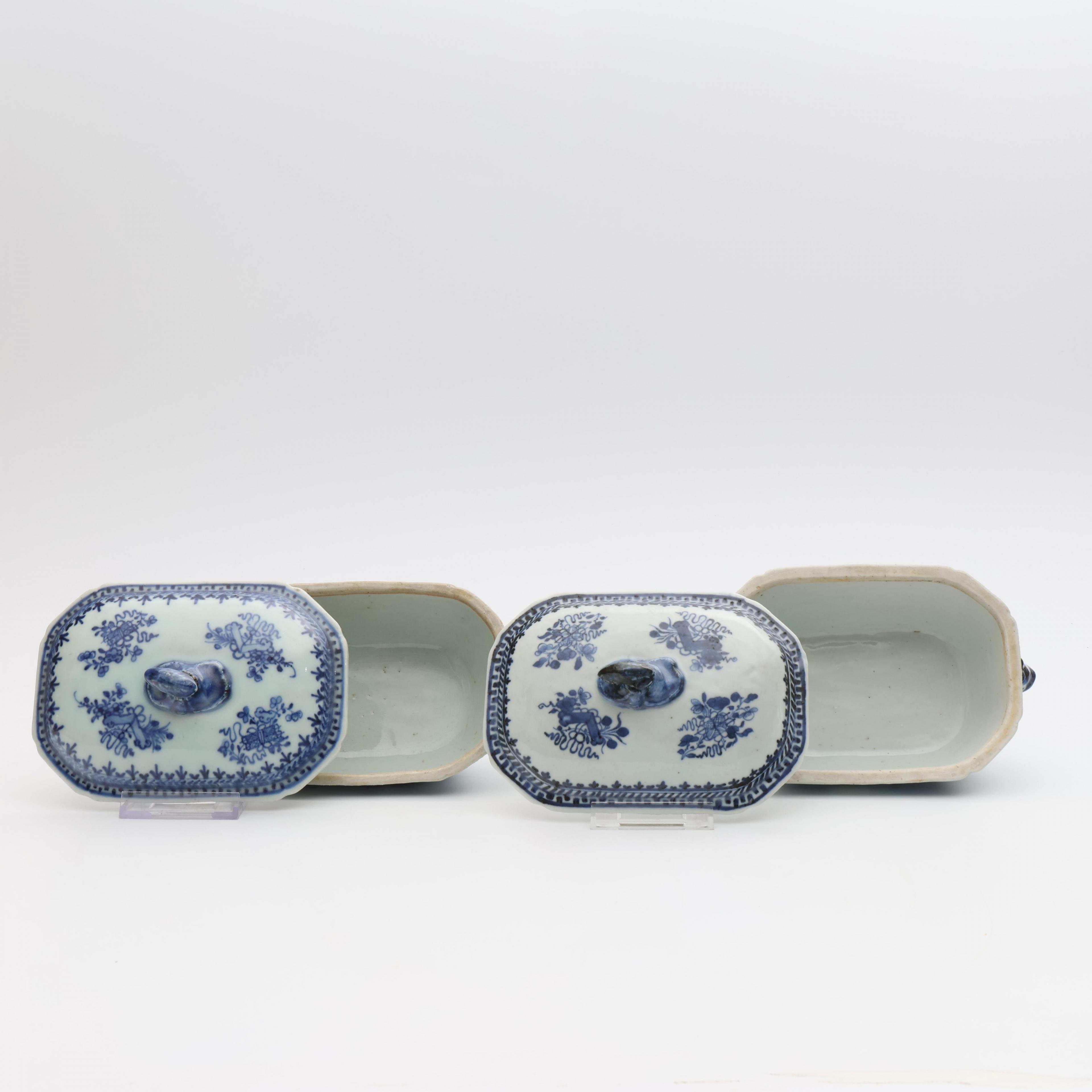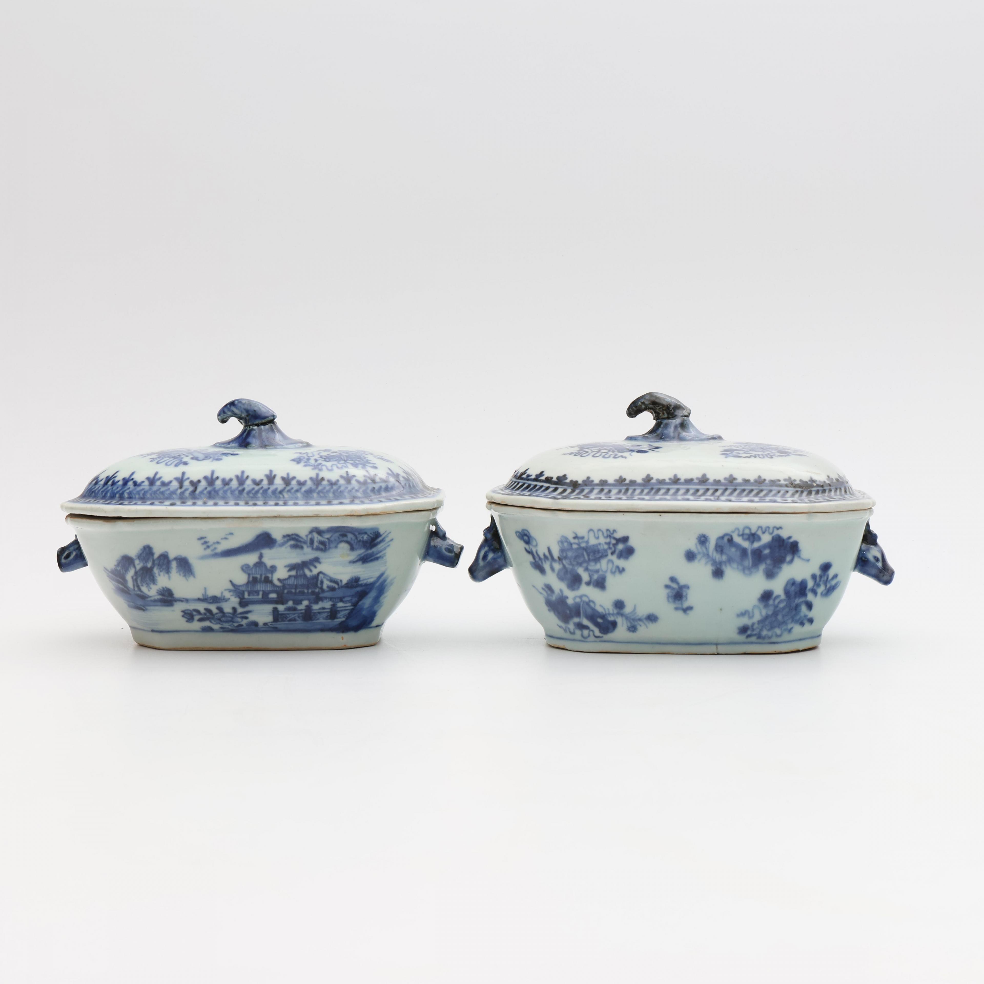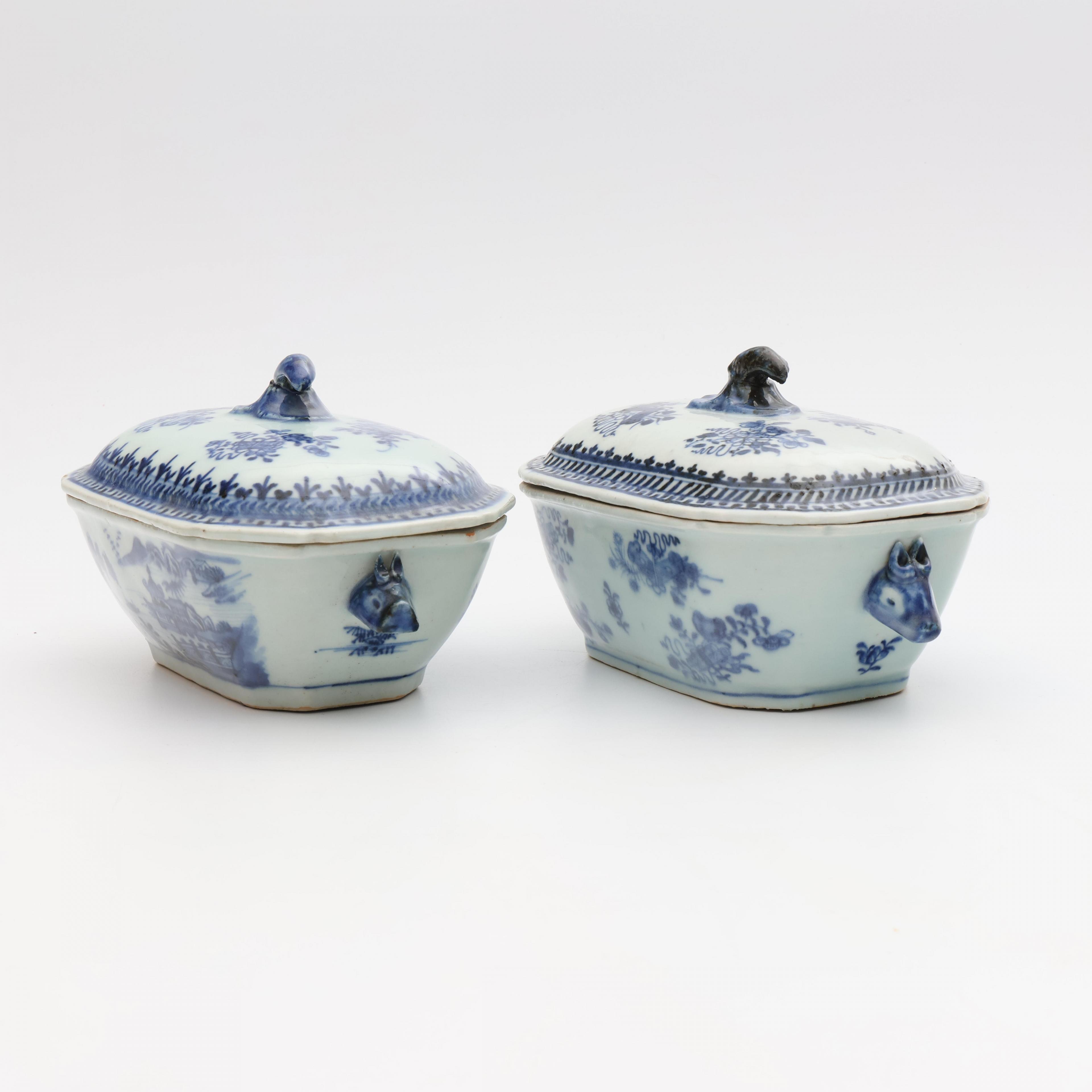 China, a pair of blue and white porcelain butter-tubs and covers, Qianlong period (1736-1795),