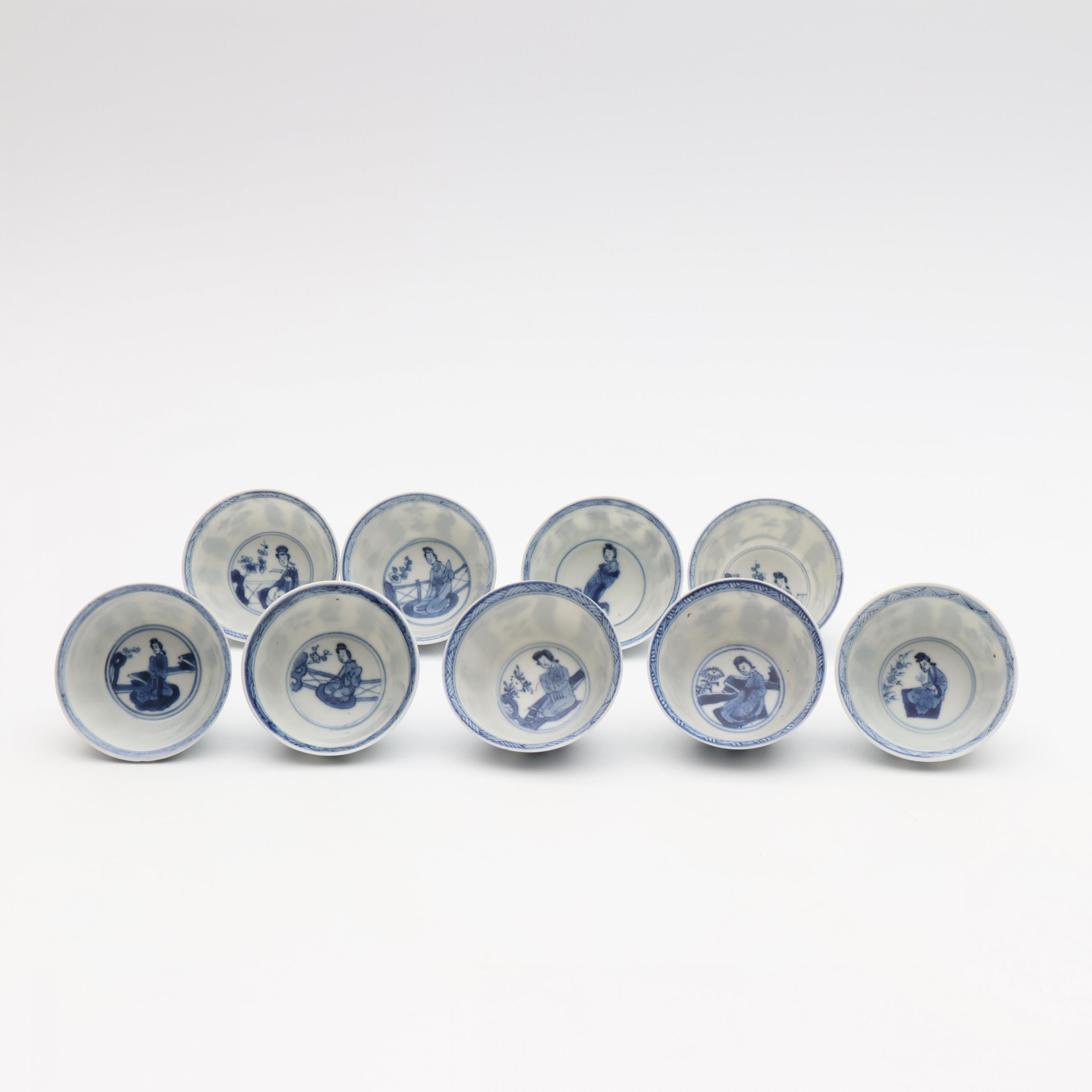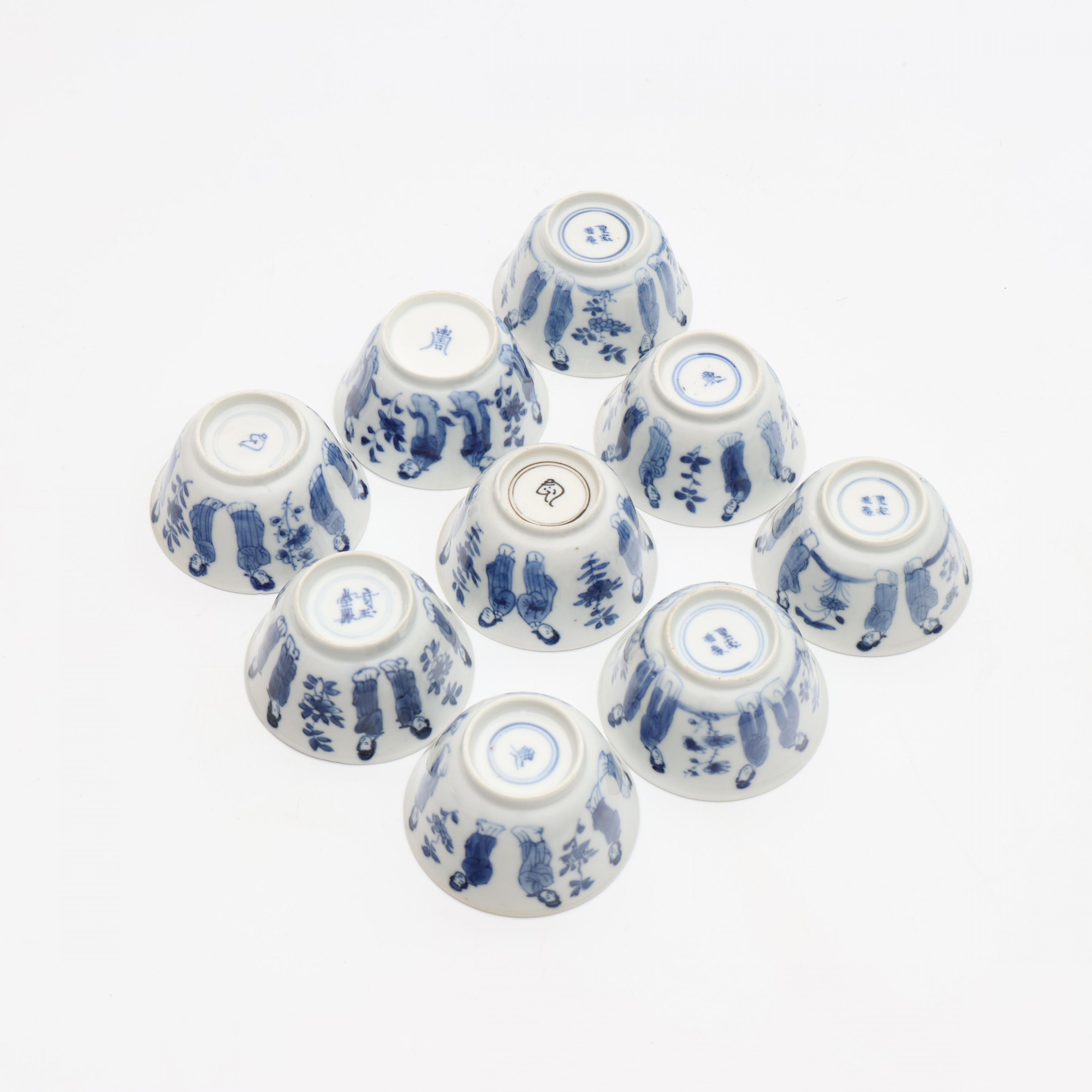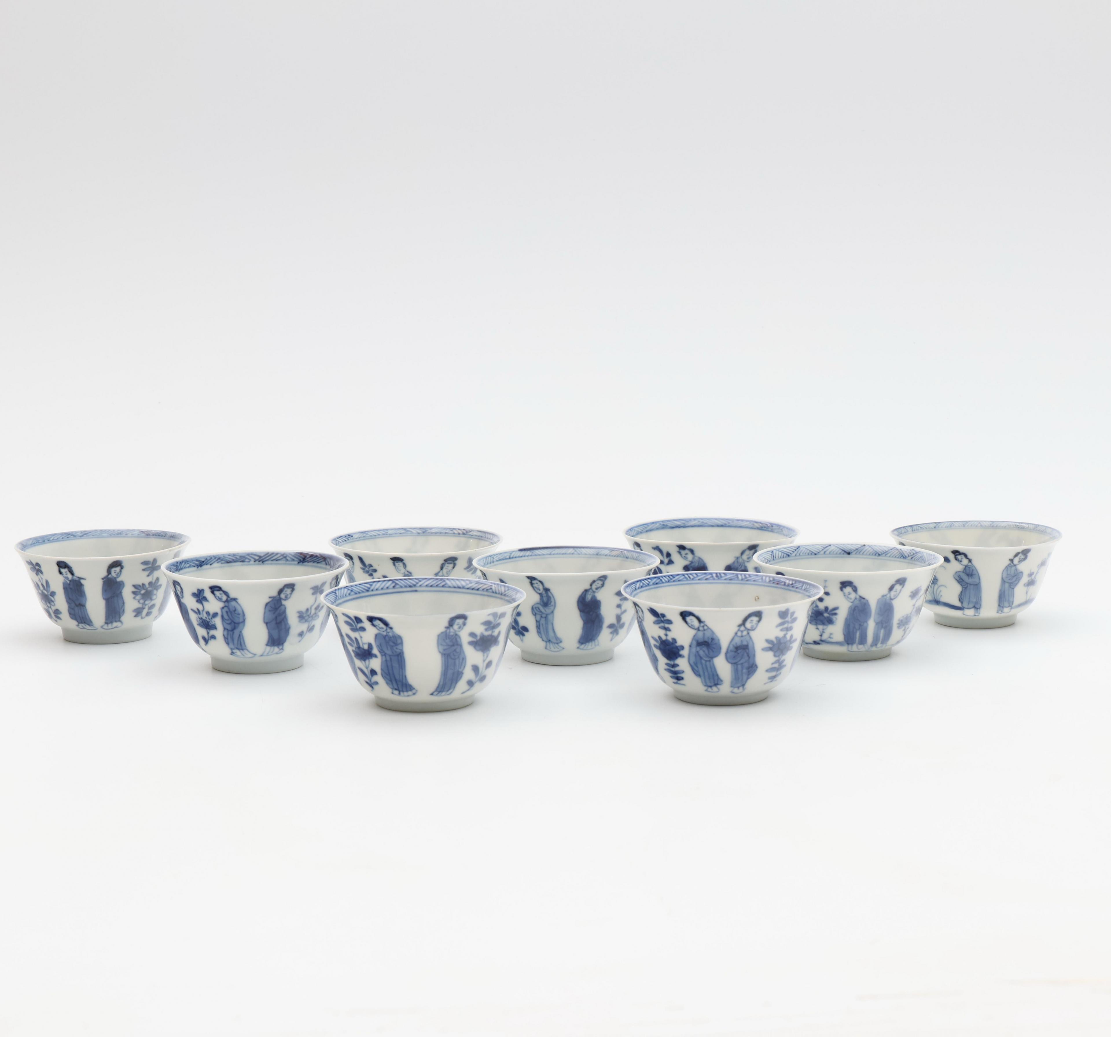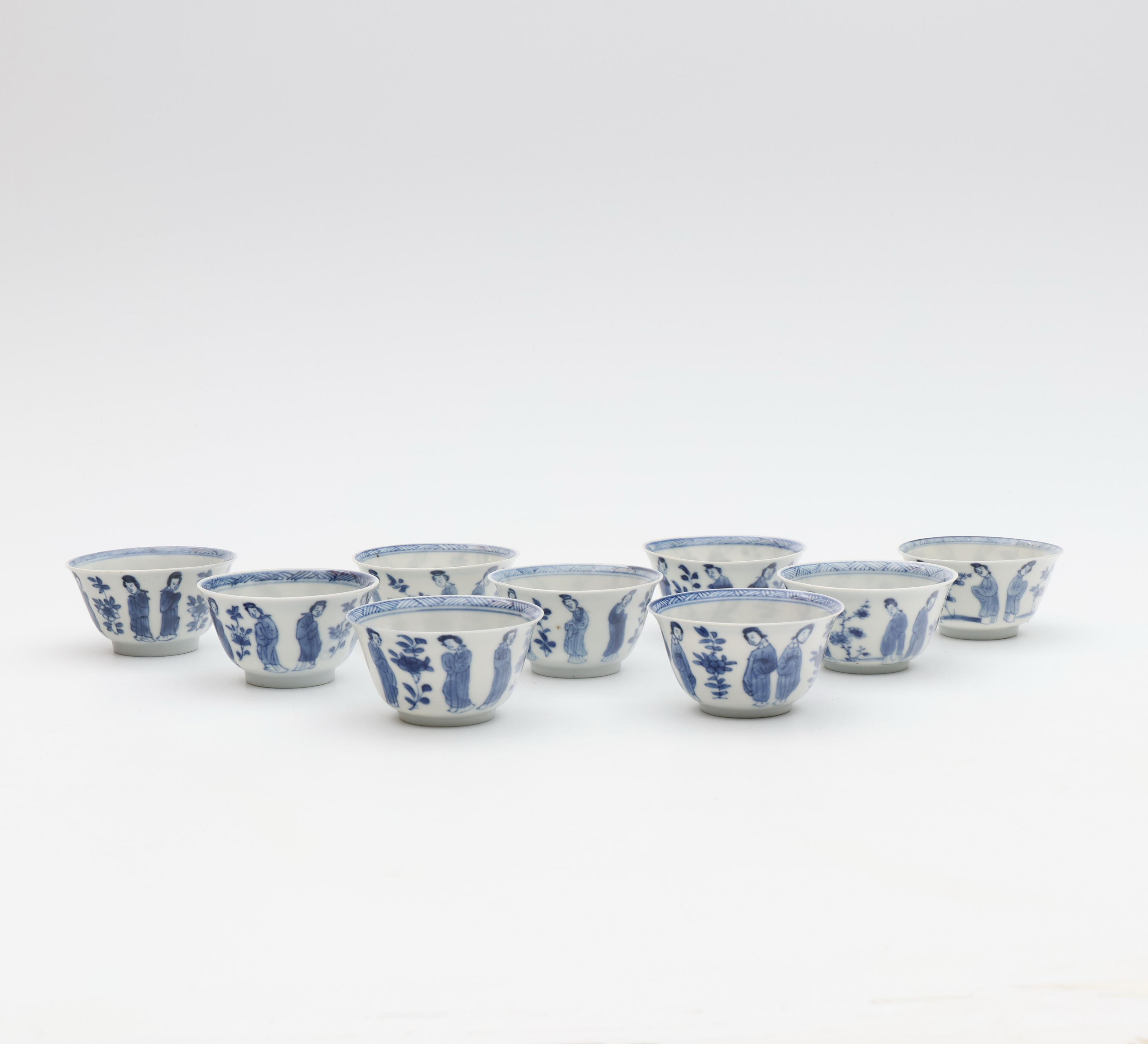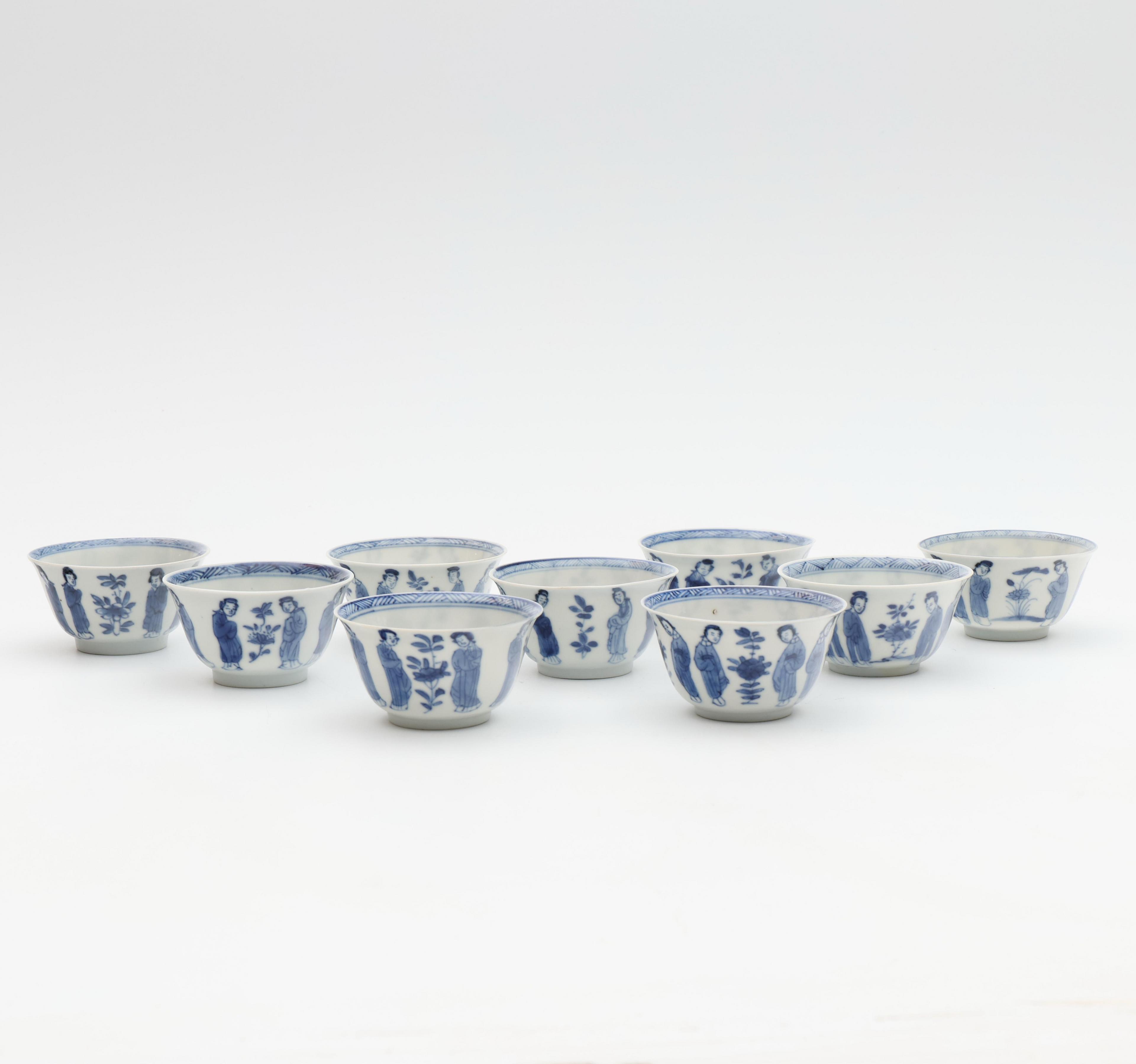 China, a set of nine blue and white porcelain cups, Kangxi period (1662-1722),