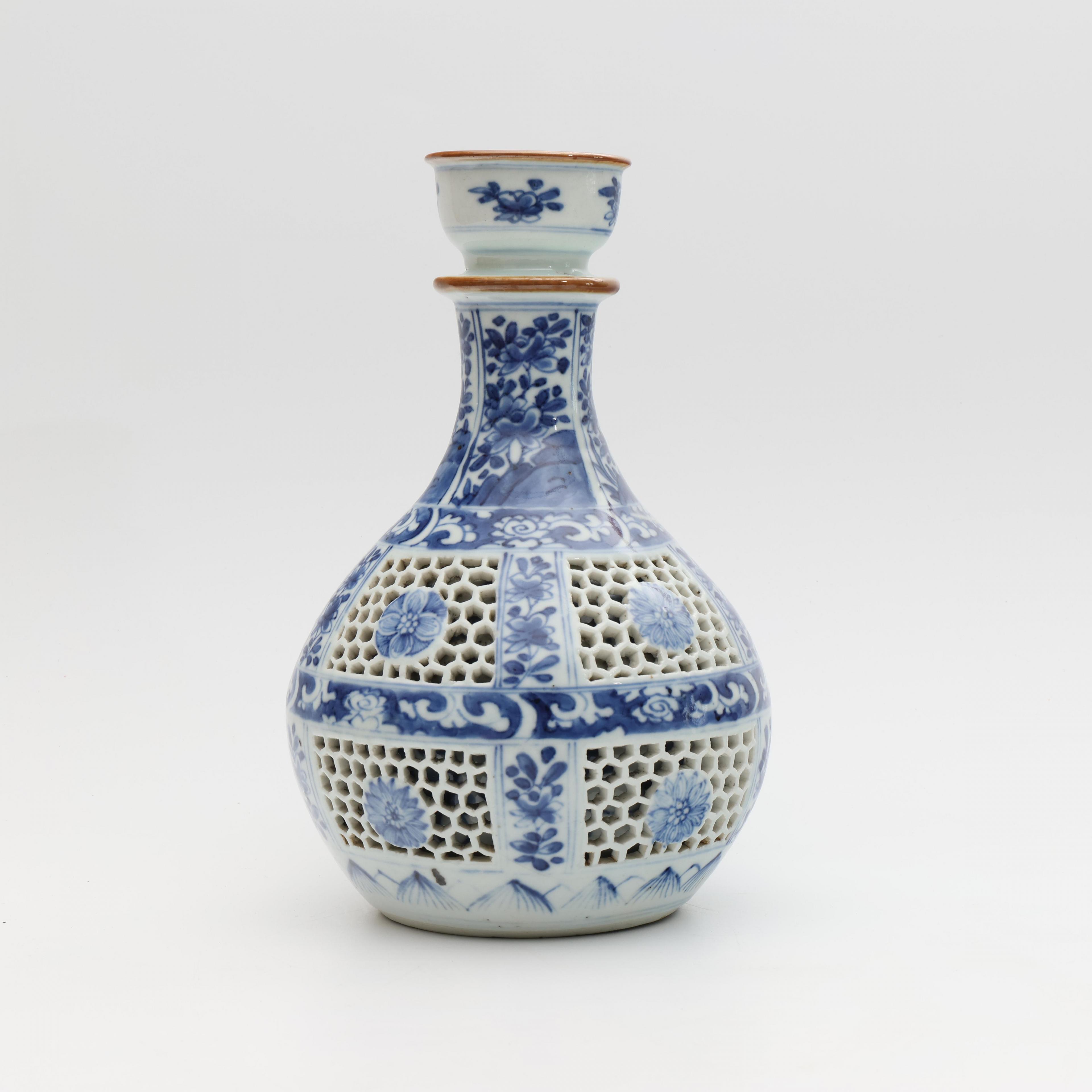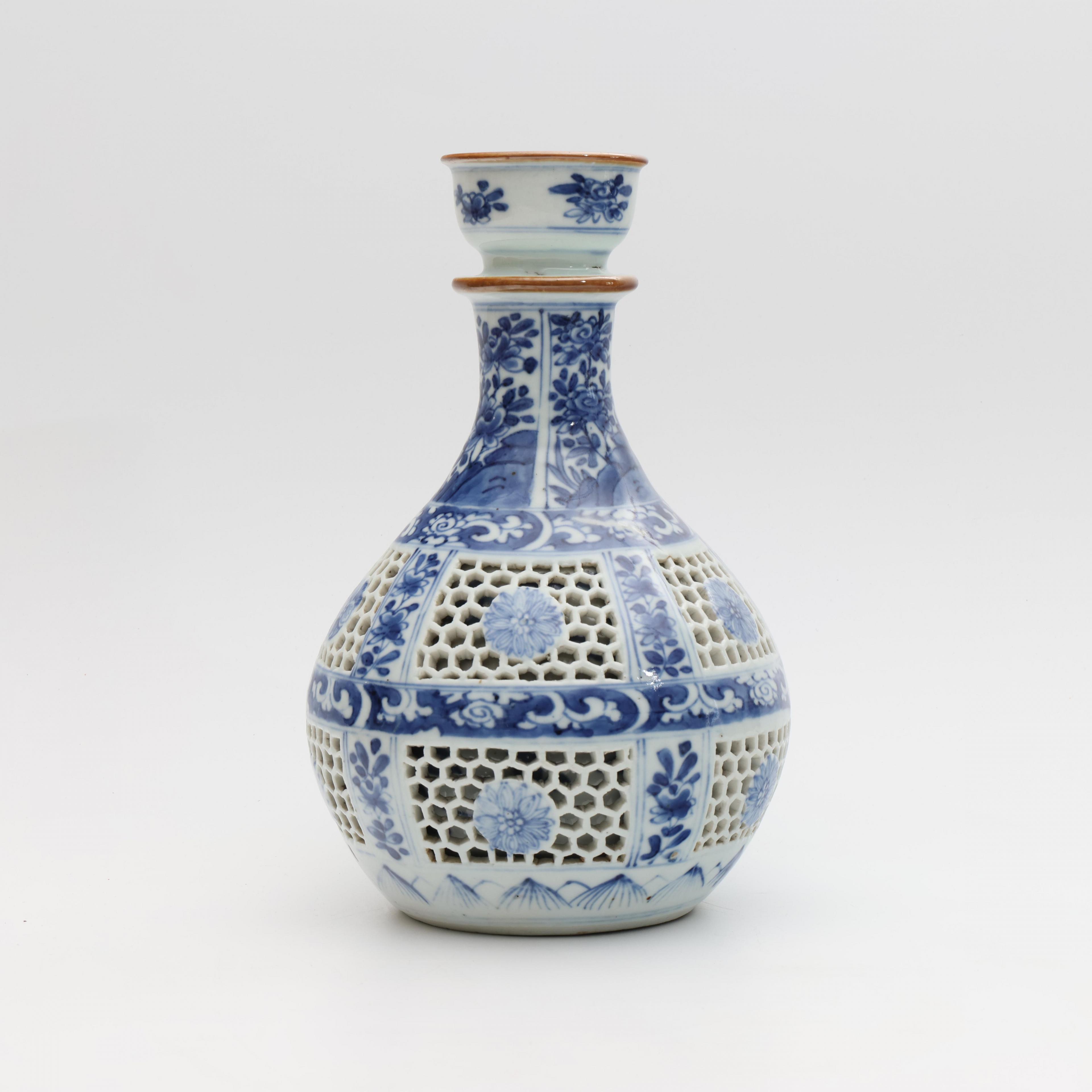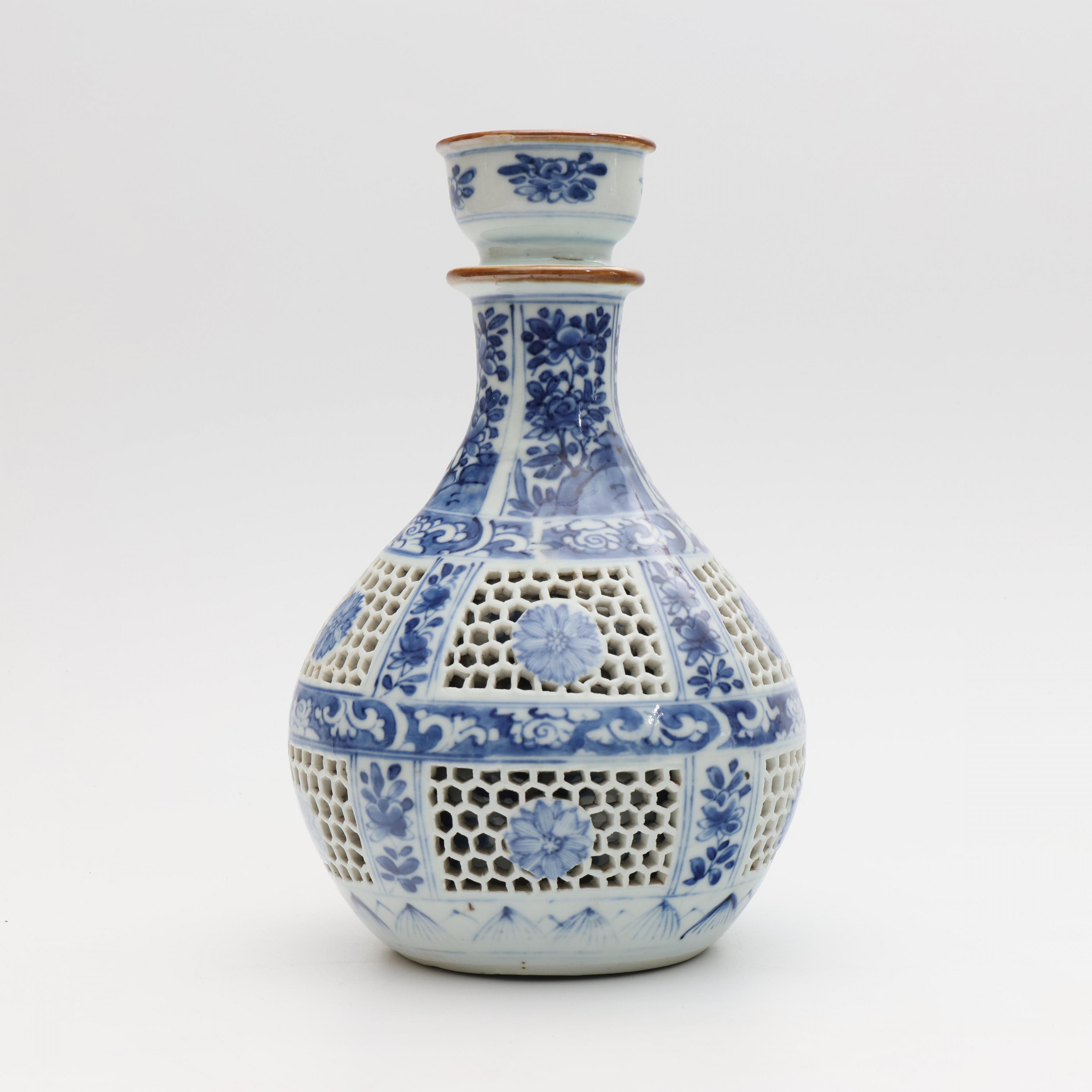 China, a blue and white porcelain reticulated hookkah-base, Kangxi period (1662-1722),