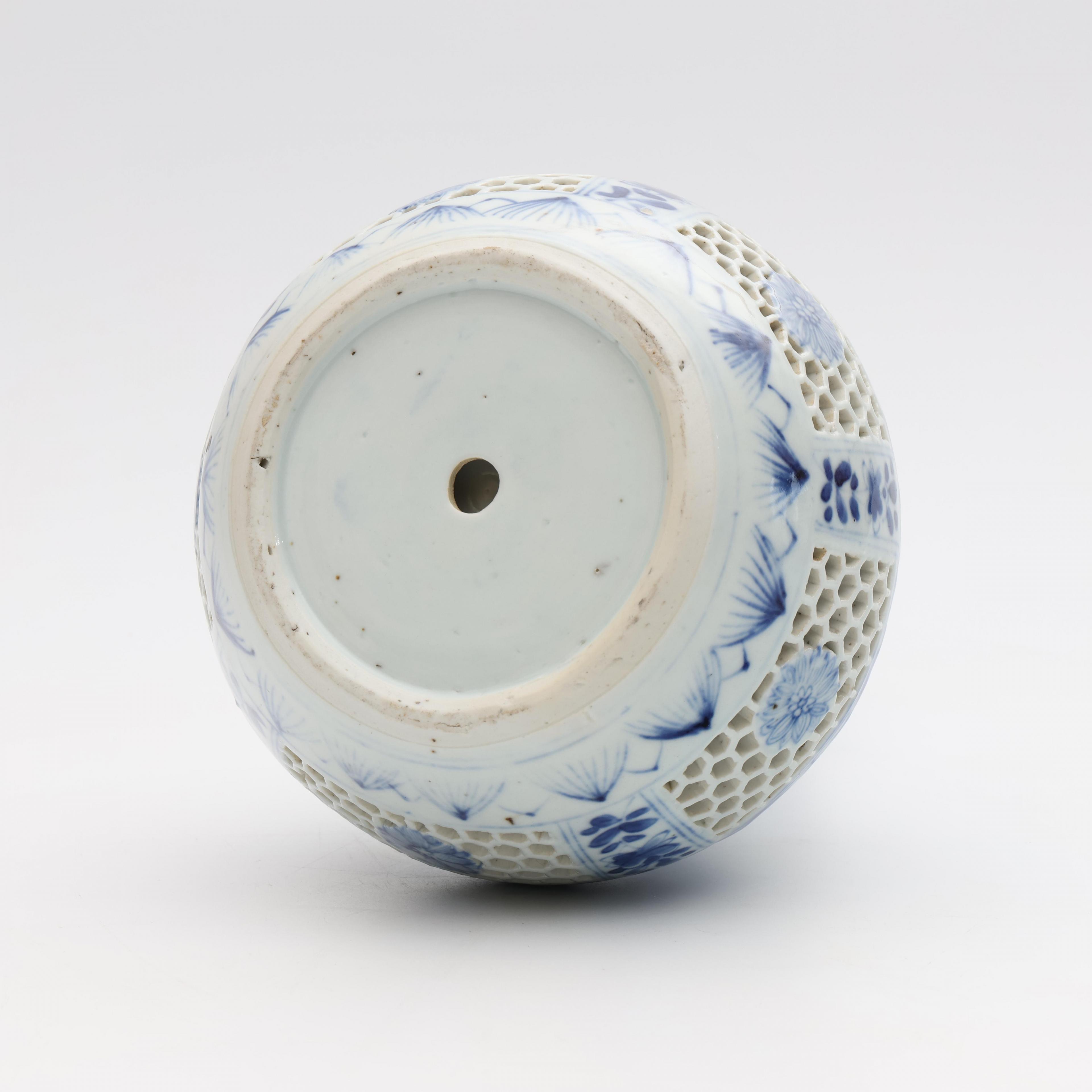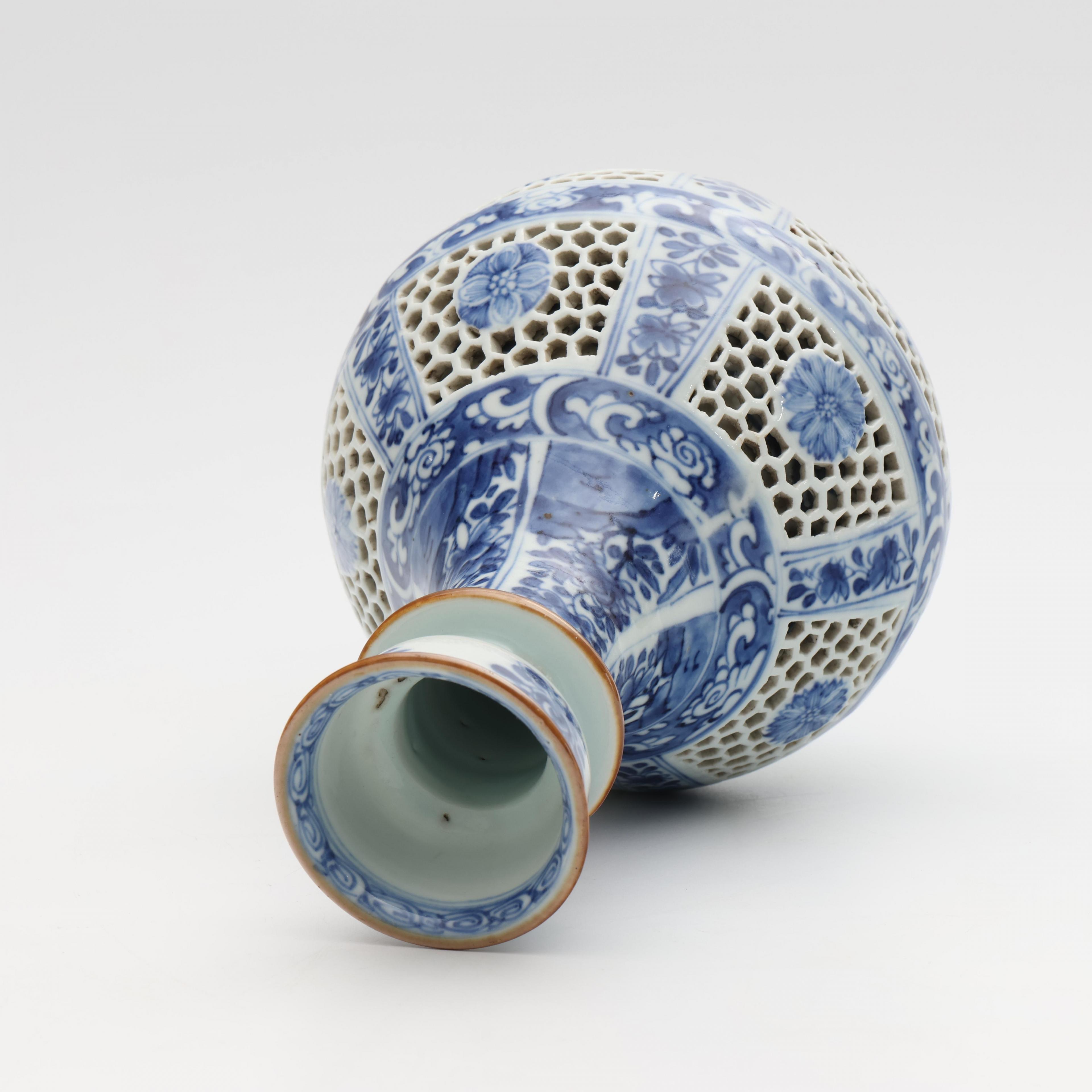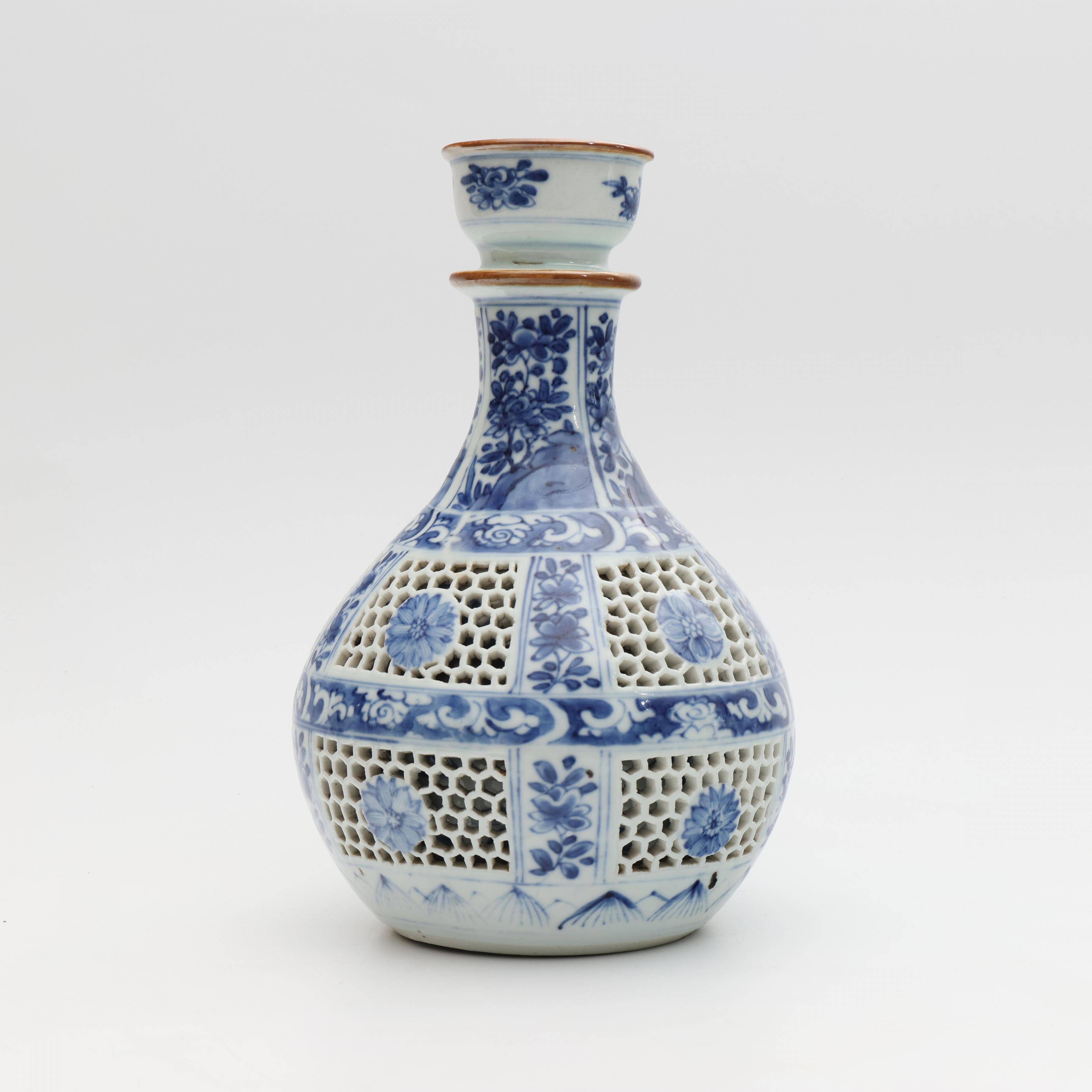 China, a blue and white porcelain reticulated hookkah-base, Kangxi period (1662-1722),