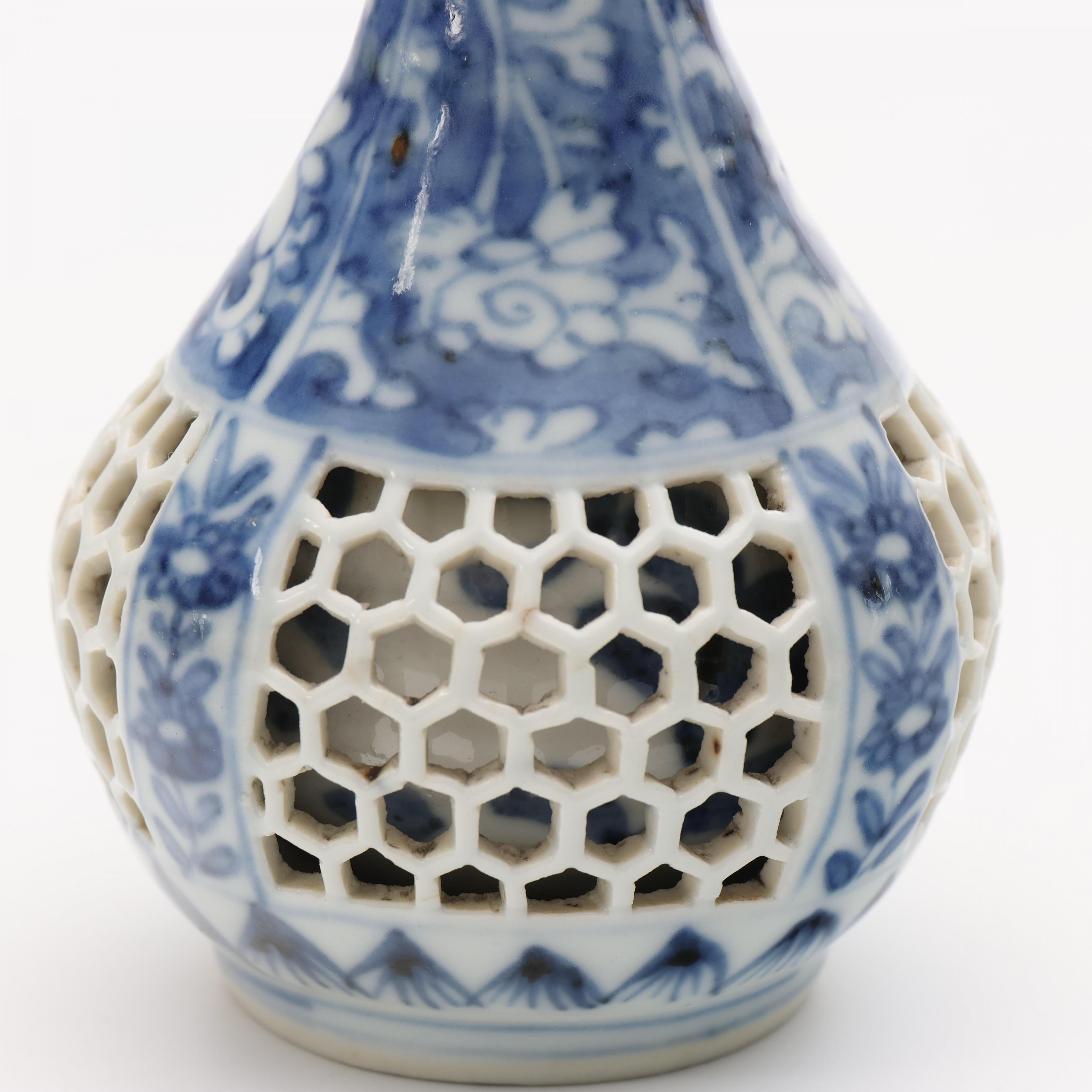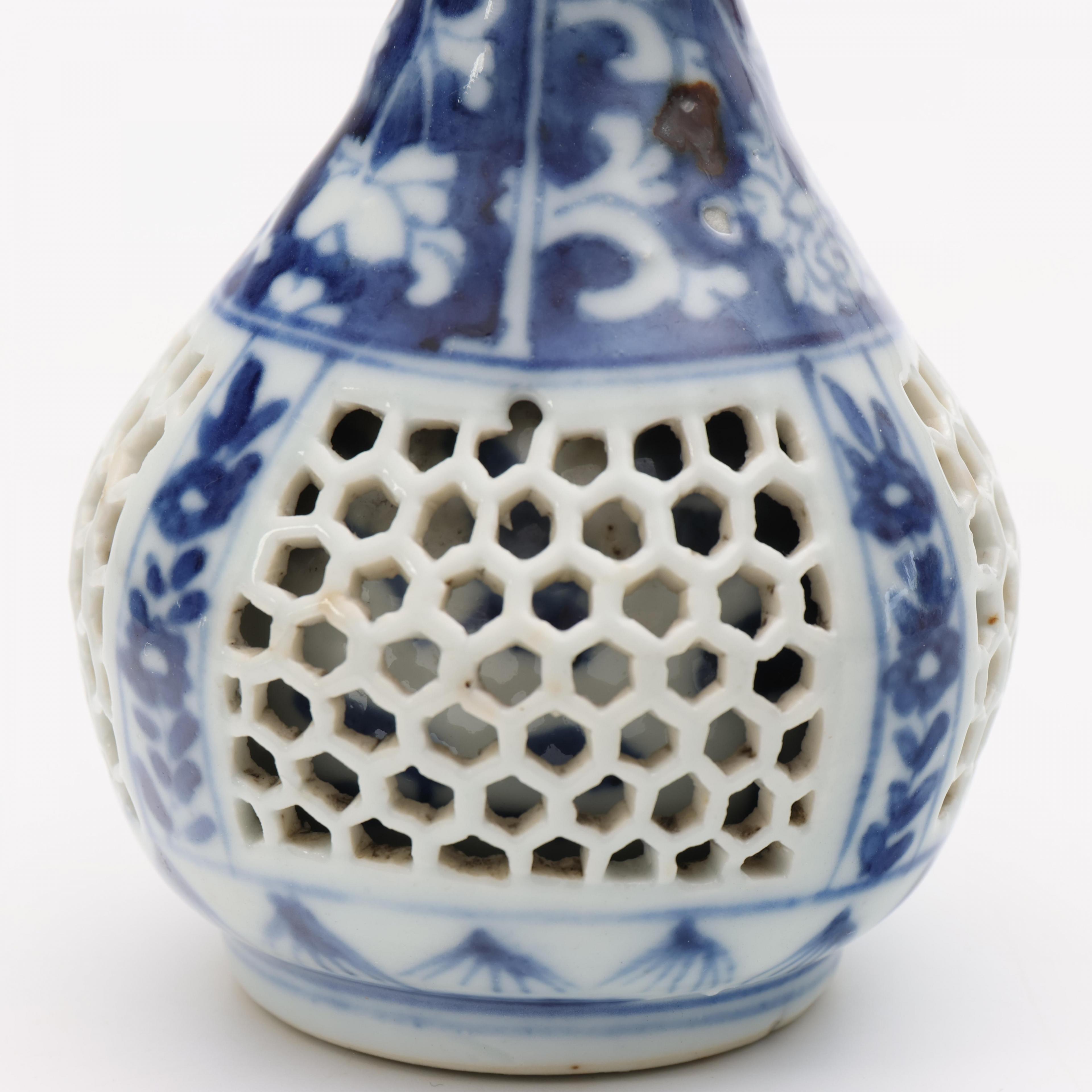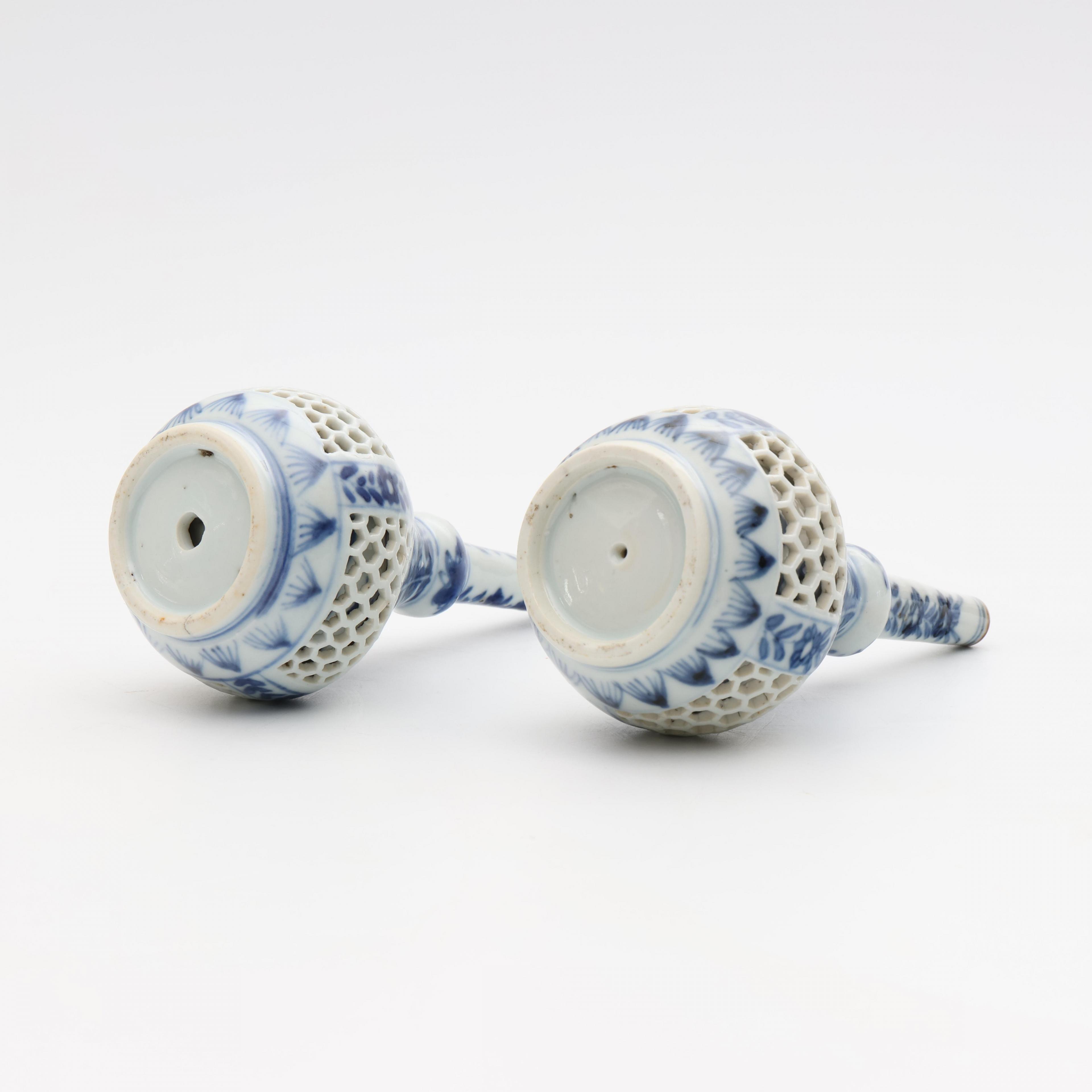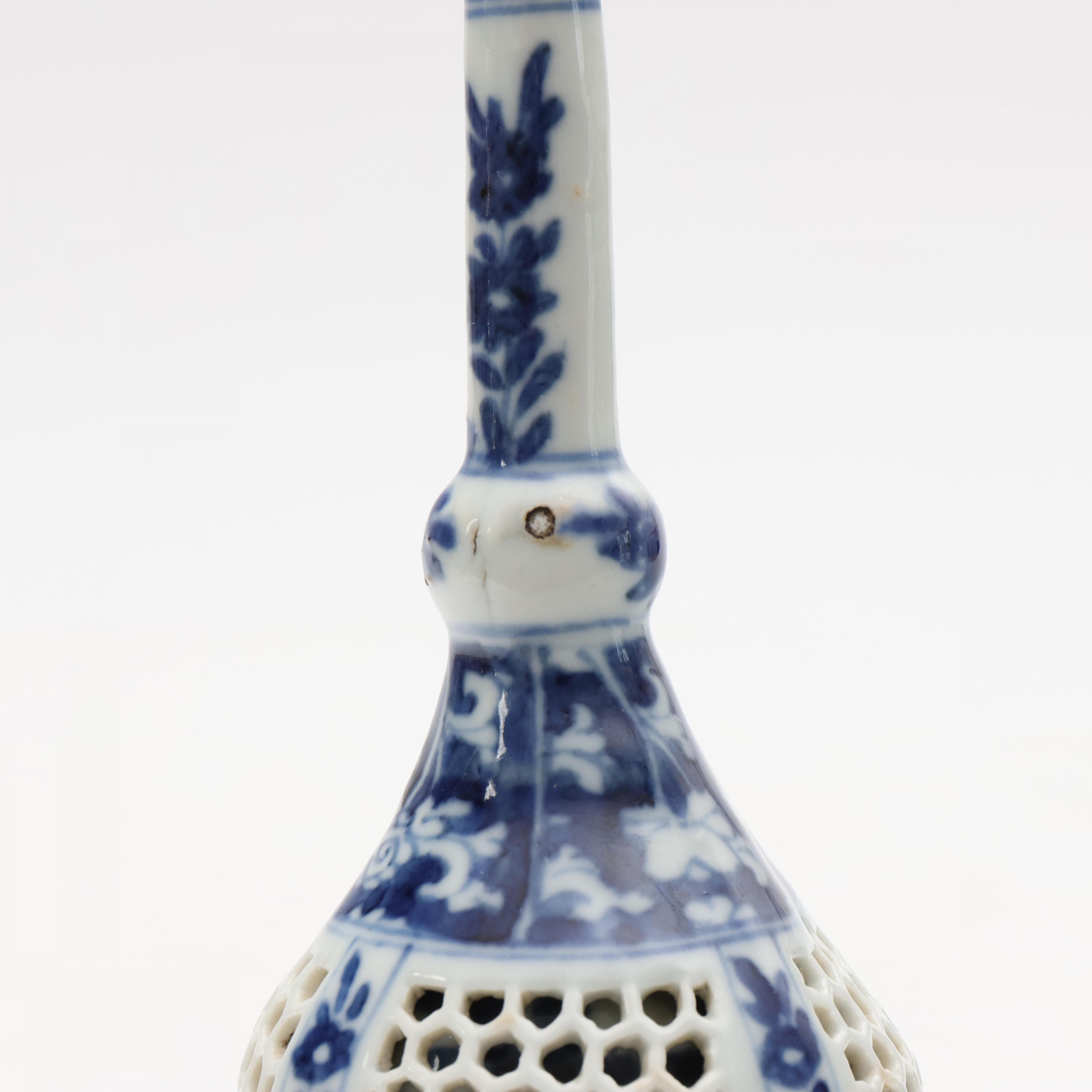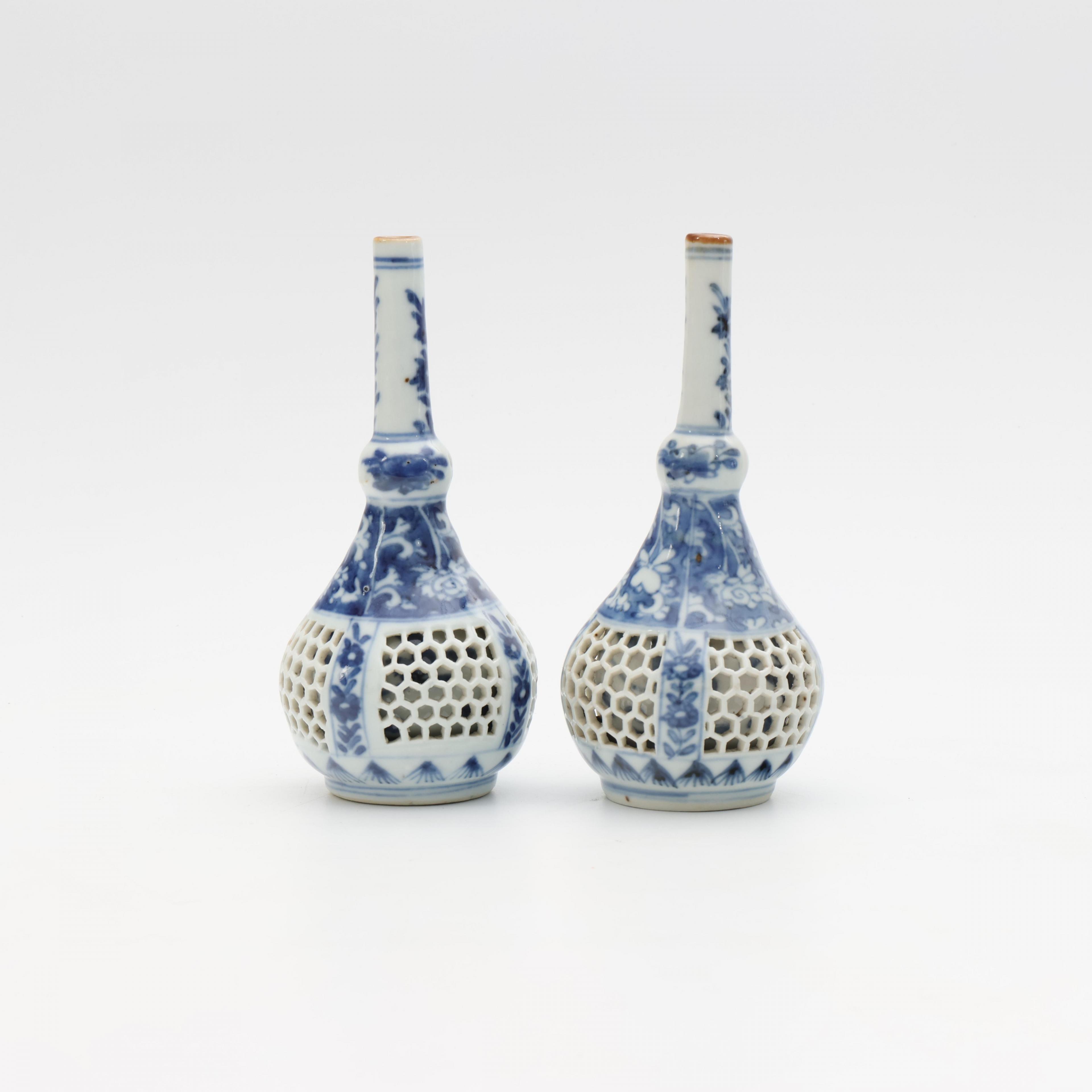 China, a pair of blue and white porcelain reticulated rosewater sprinklers, Kangxi period (1662-1722),
