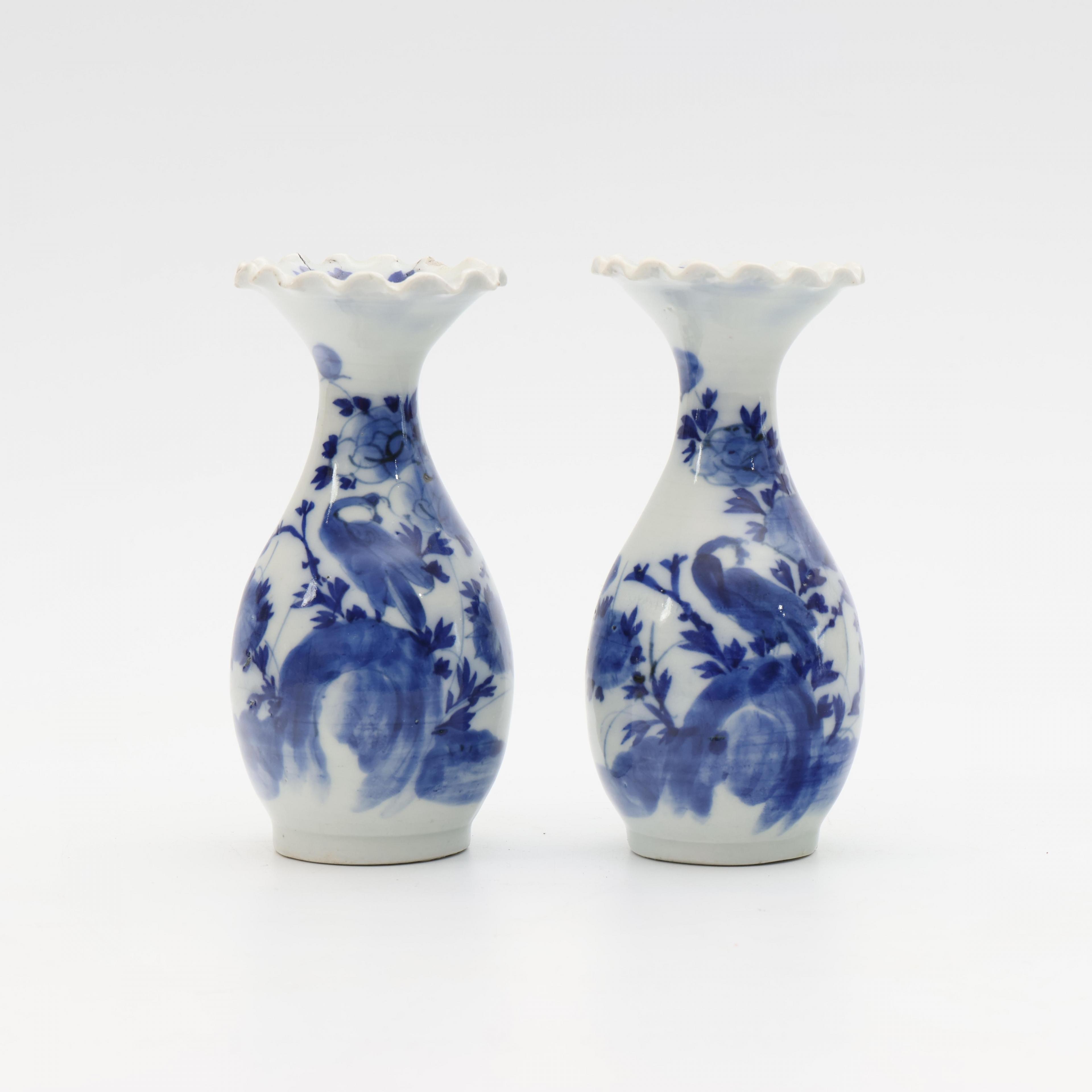 Japan, a pair of small blue and white porcelain vases, 19th century,
