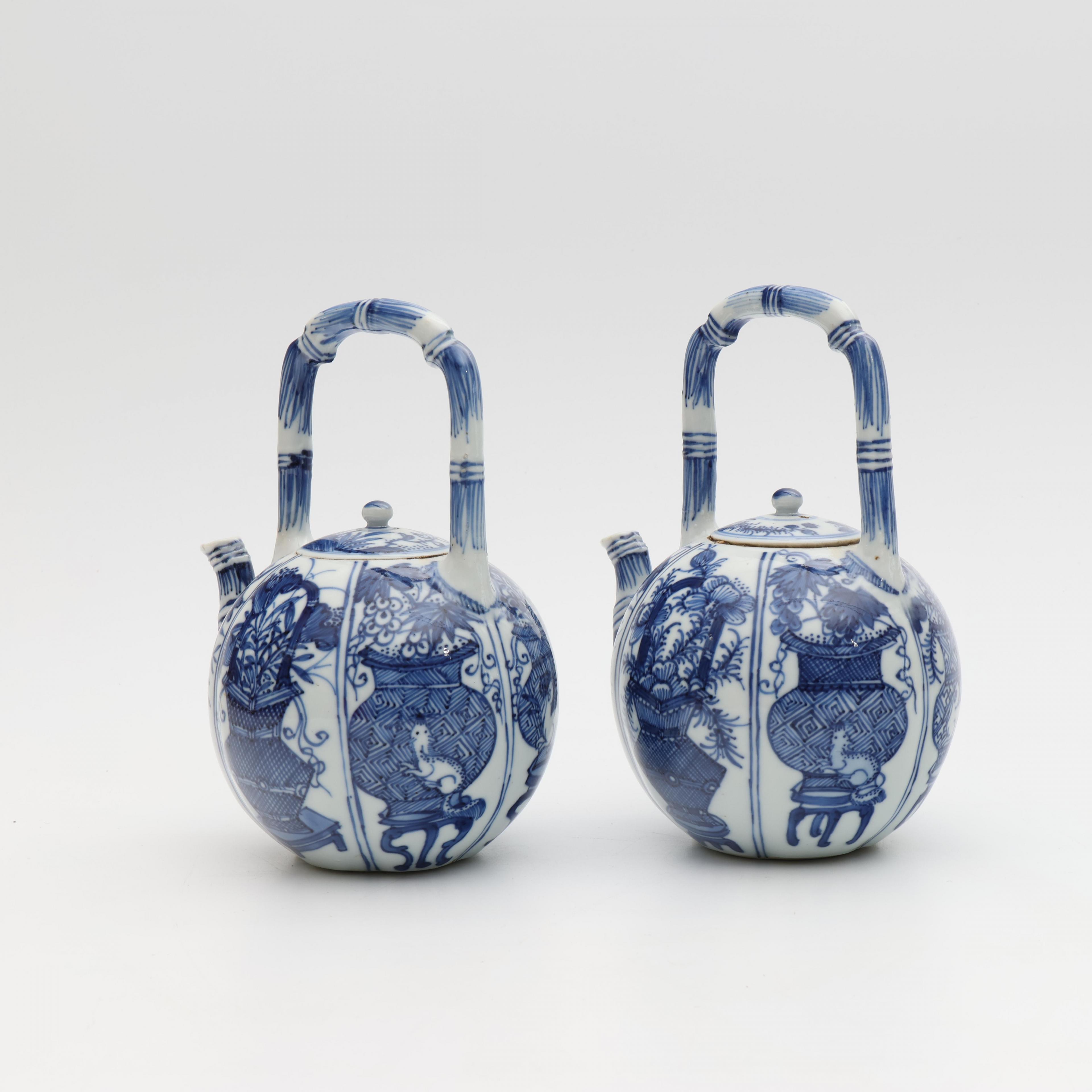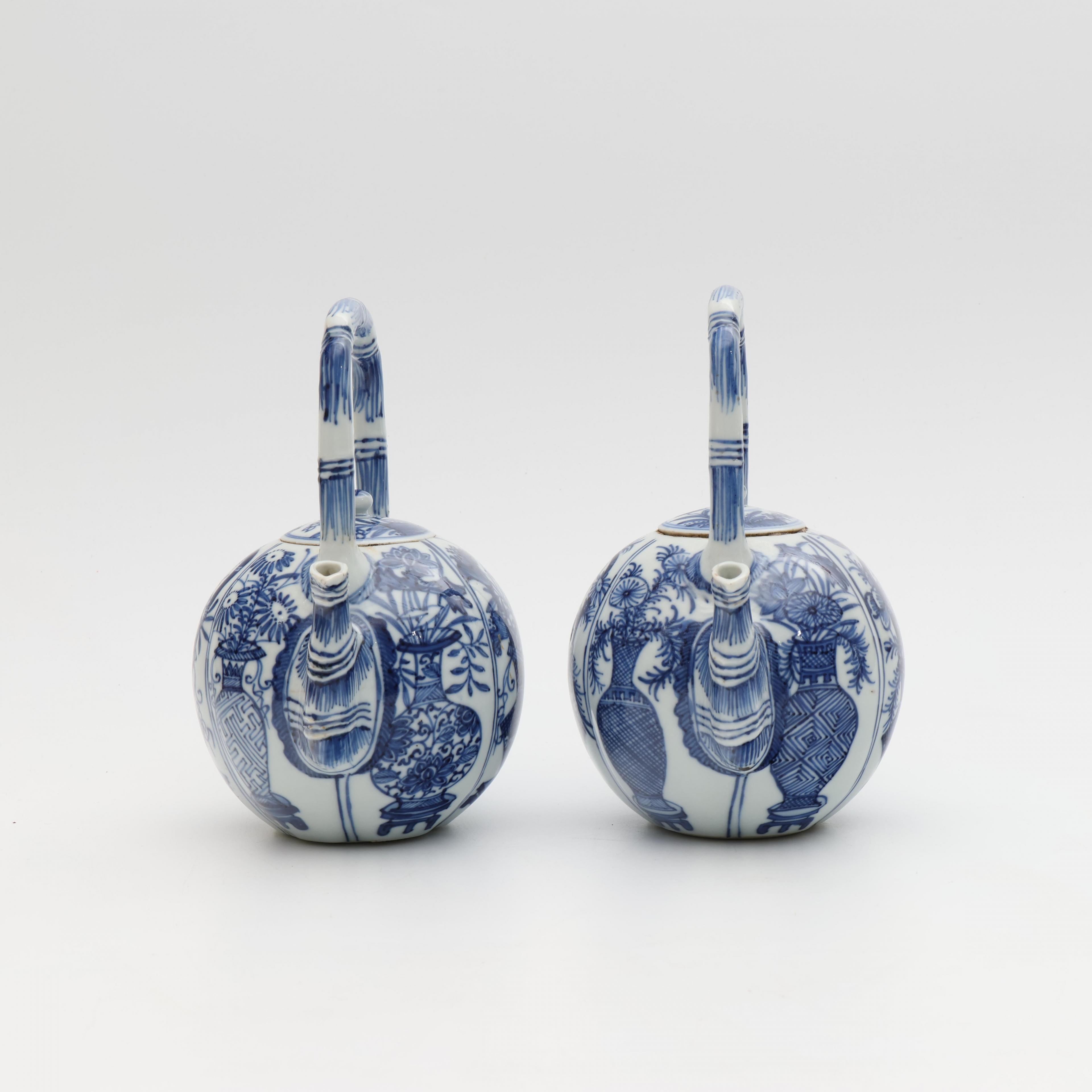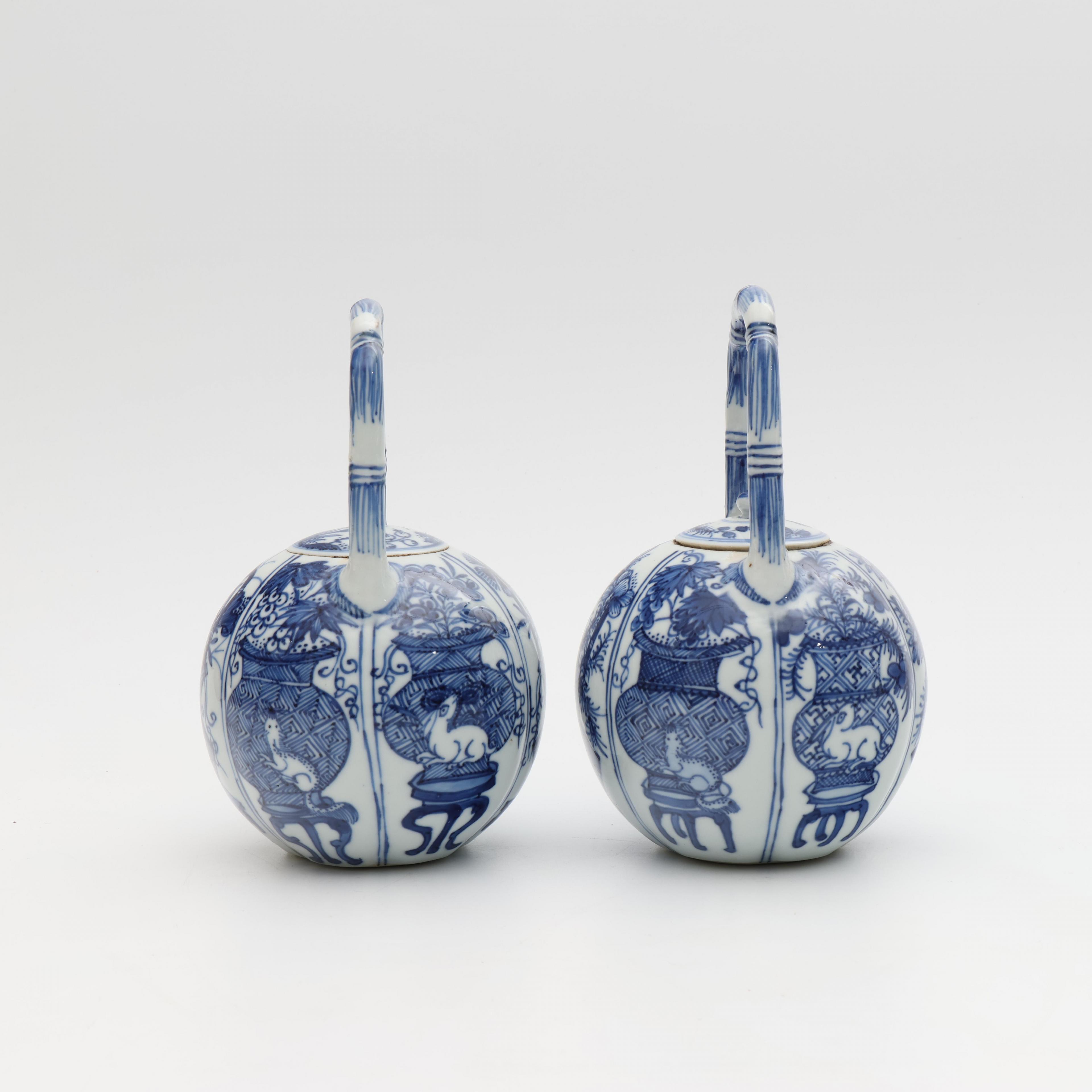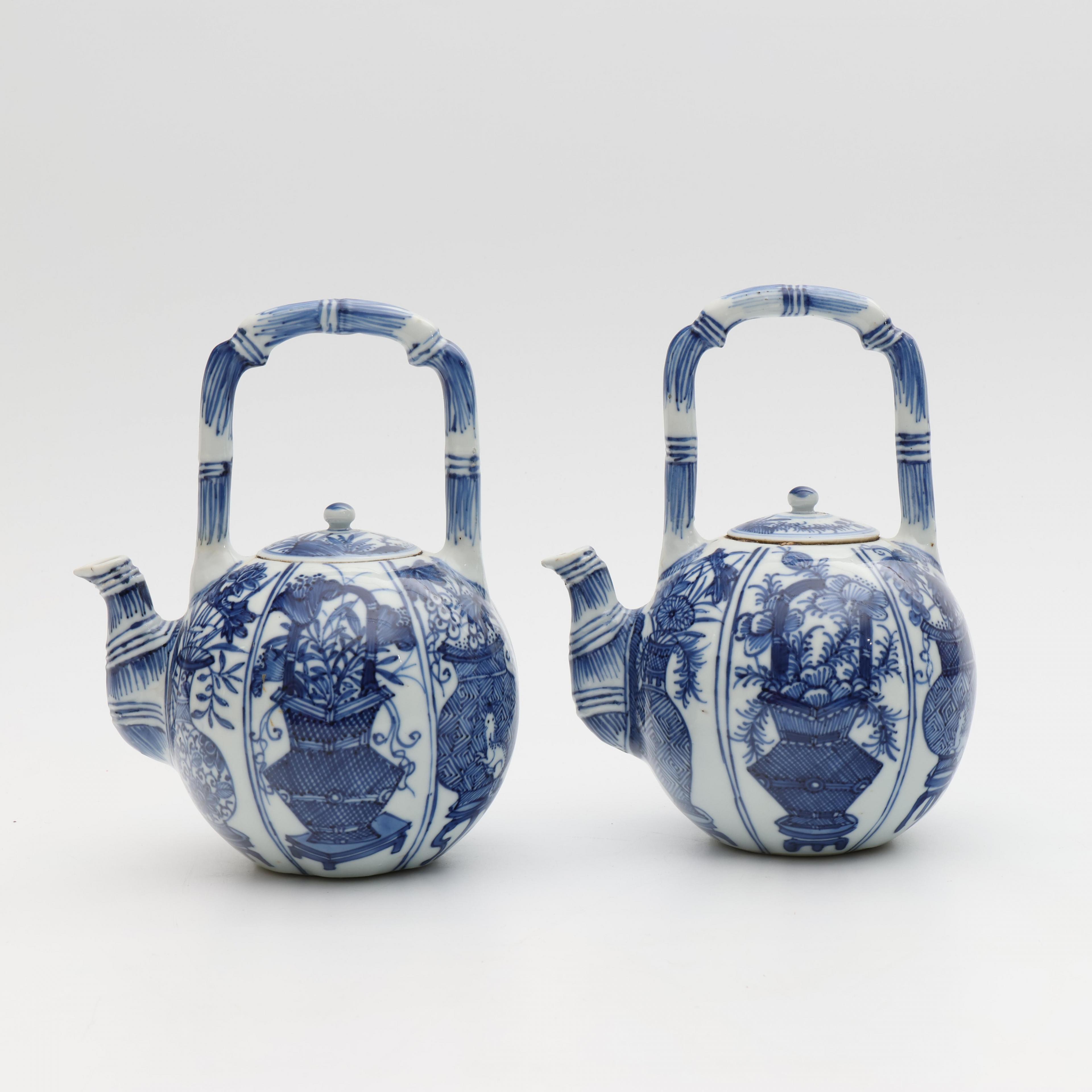China, a pair of blue and white porcelain teapots and covers, Kangxi period (1662-1722),