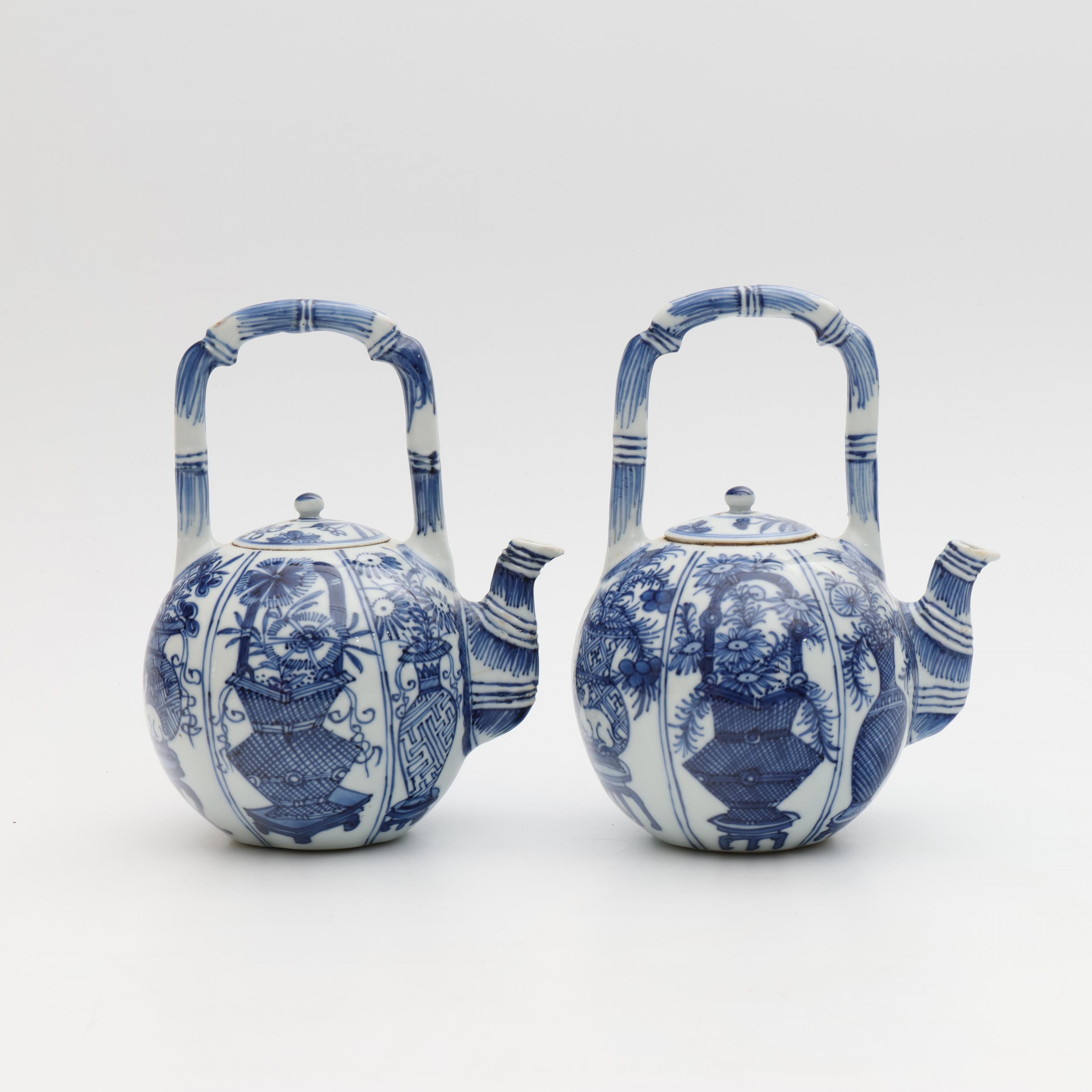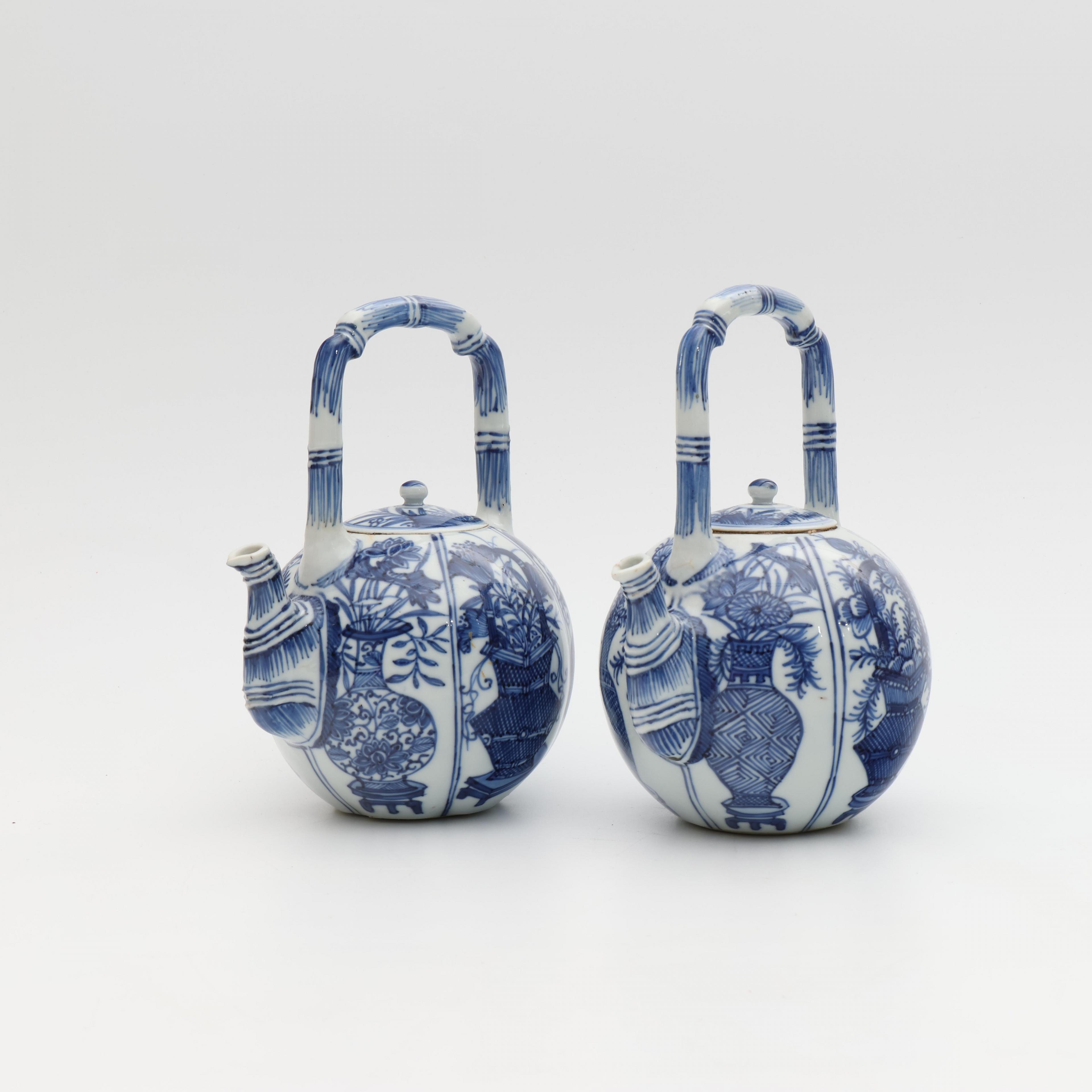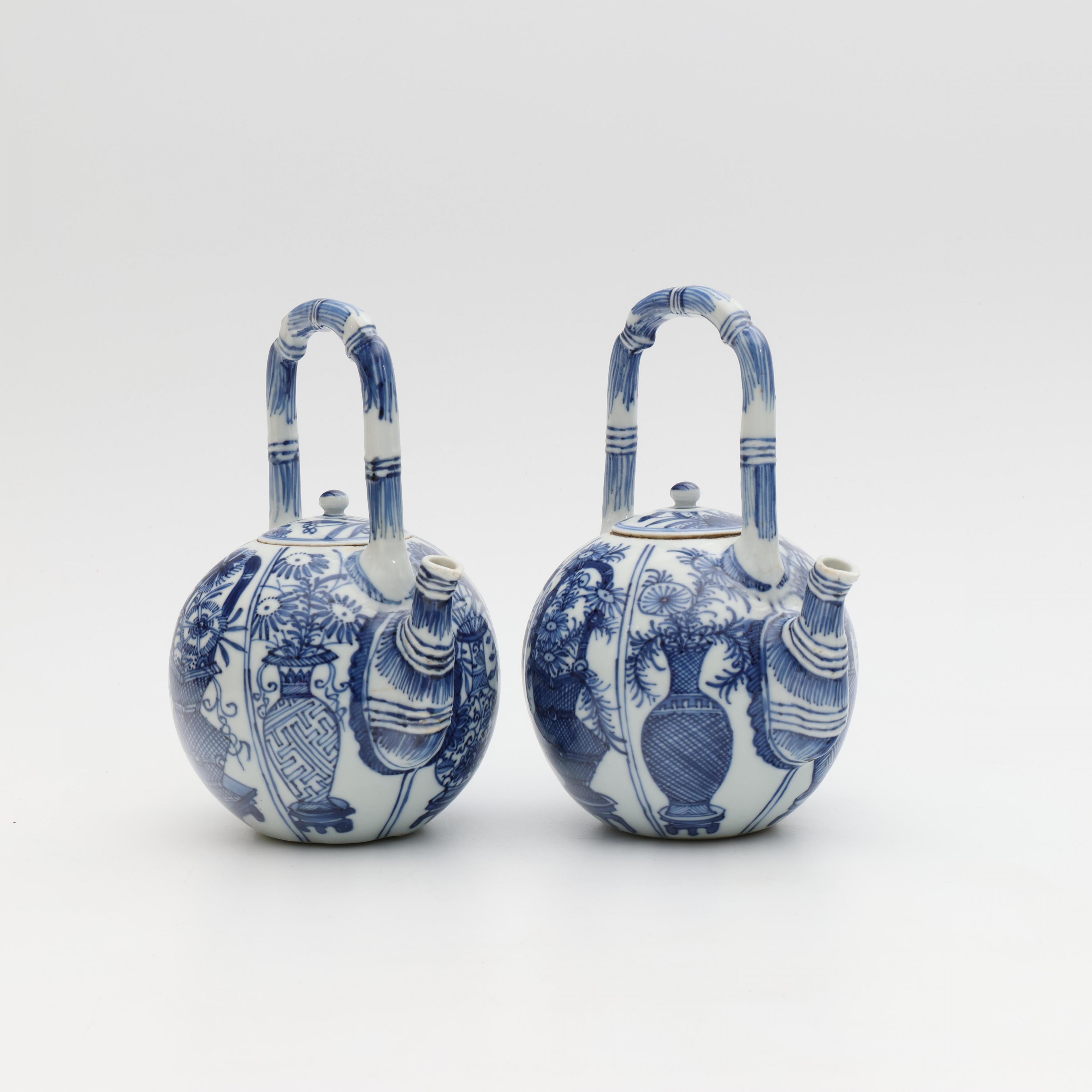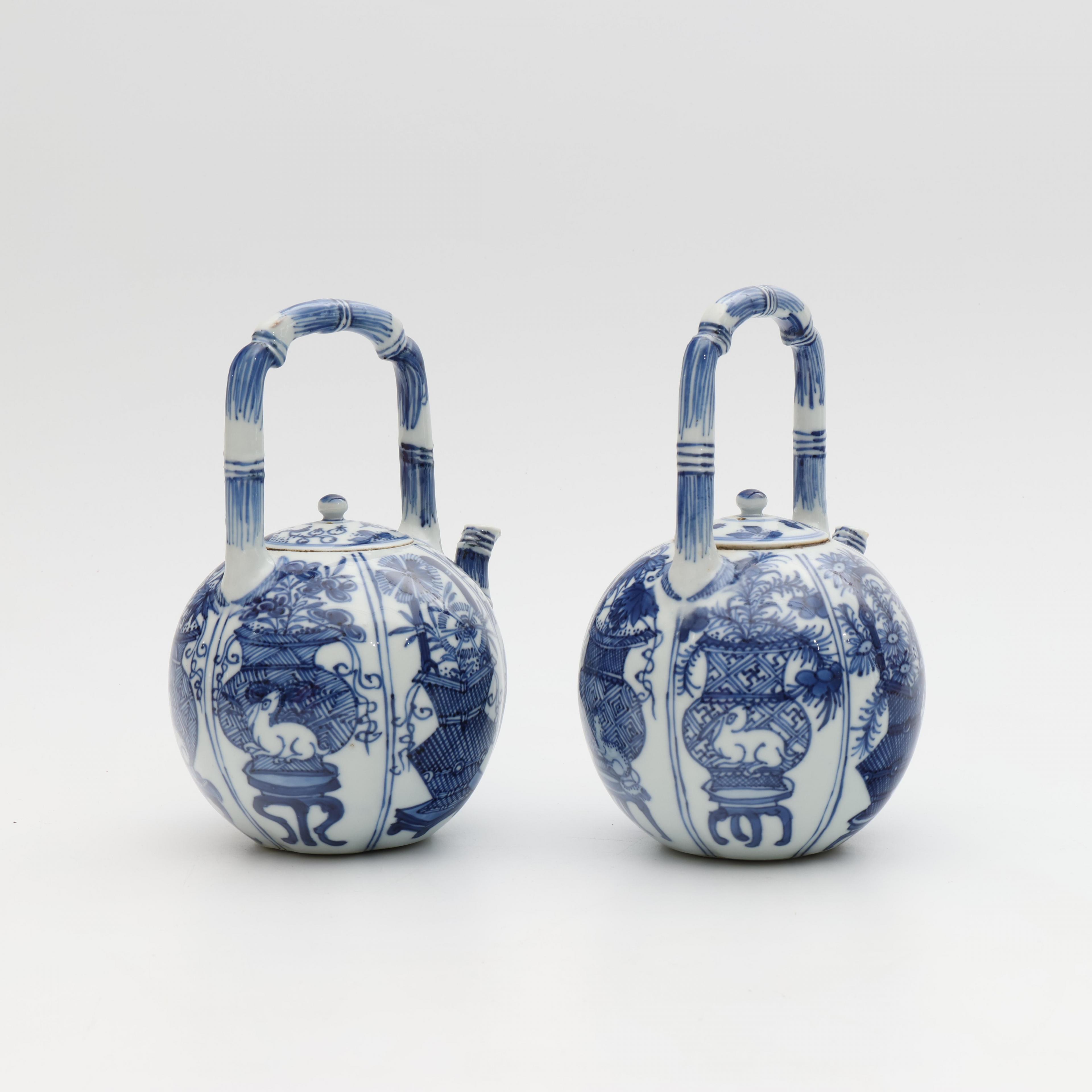 China, a pair of blue and white porcelain teapots and covers, Kangxi period (1662-1722),
