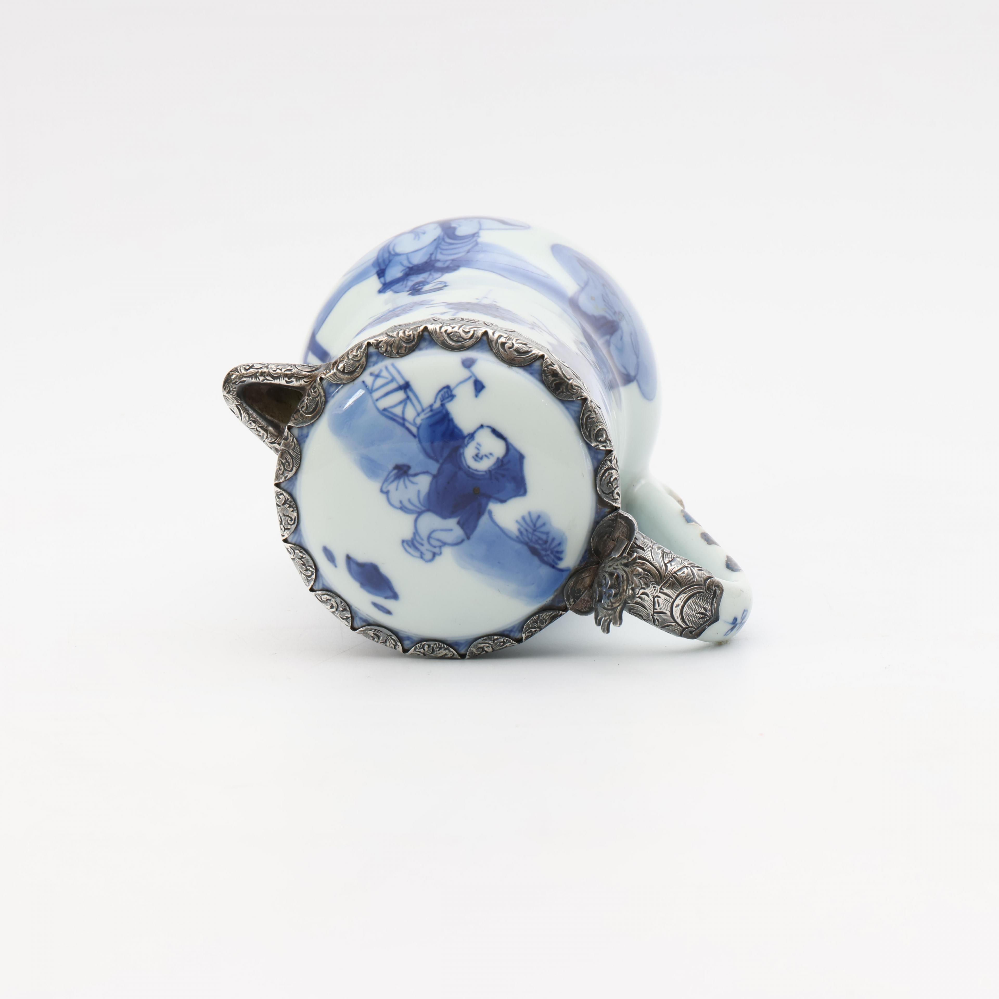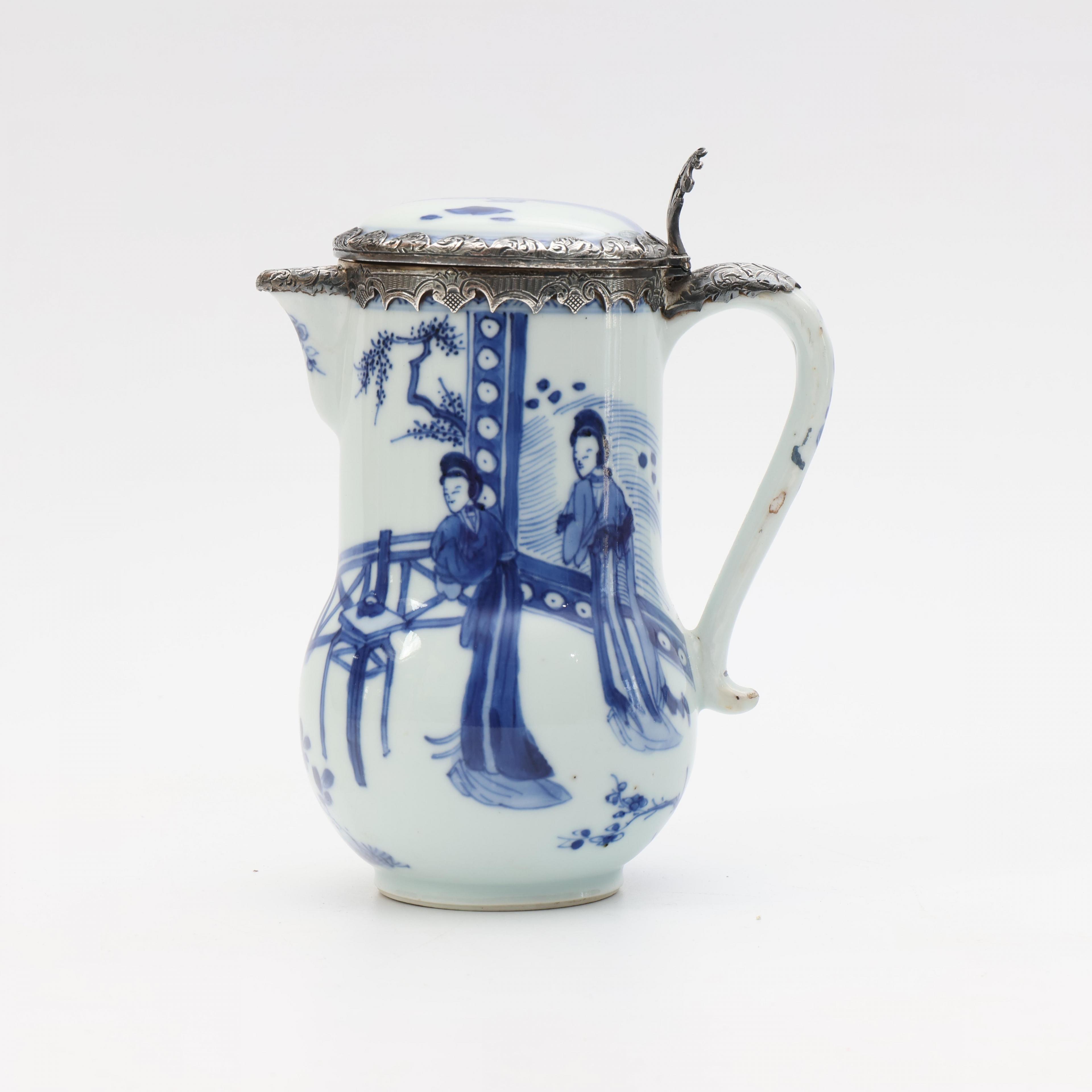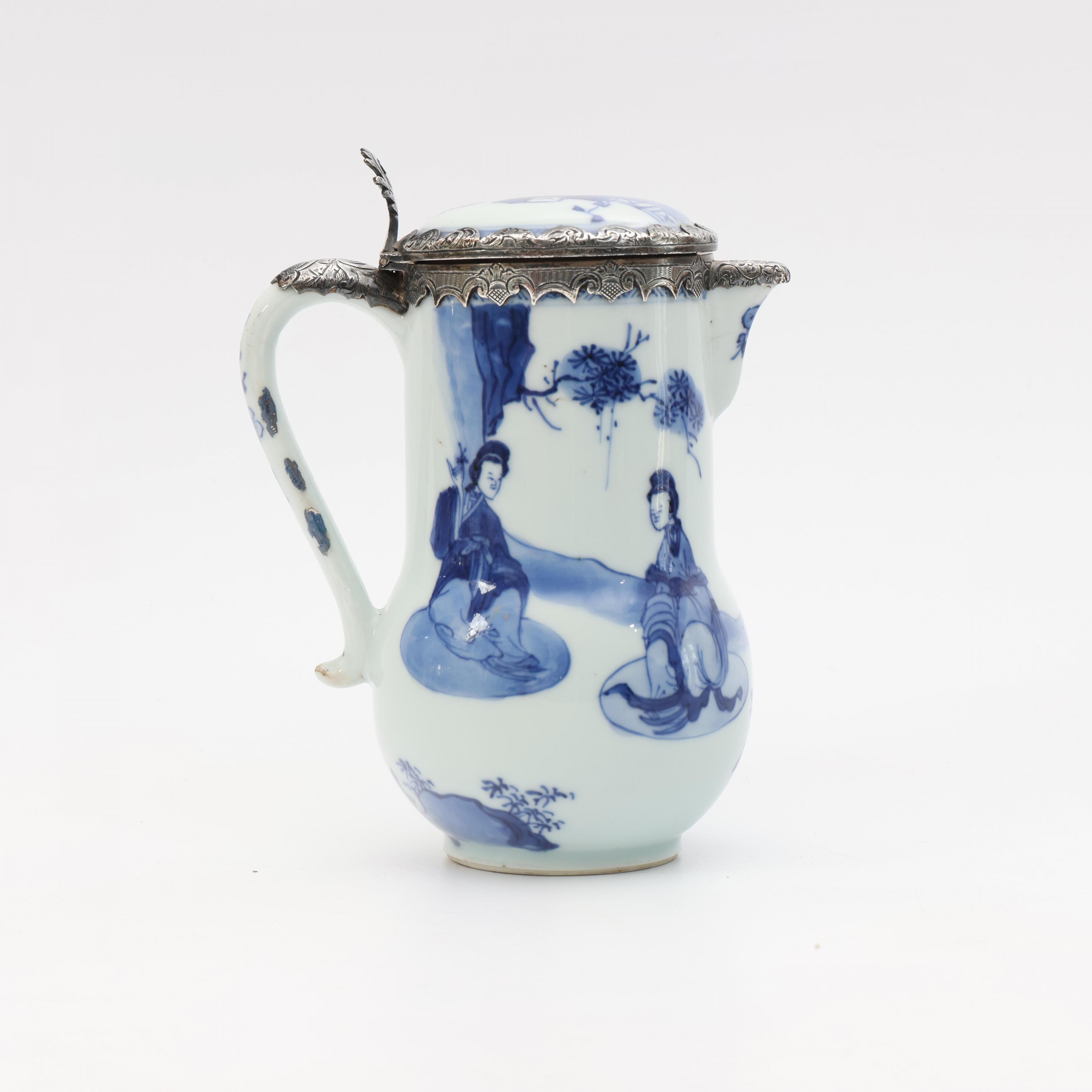 China, a silver-mounted blue and white porcelain milk-jug and cover, Kangxi period (1662-1722),