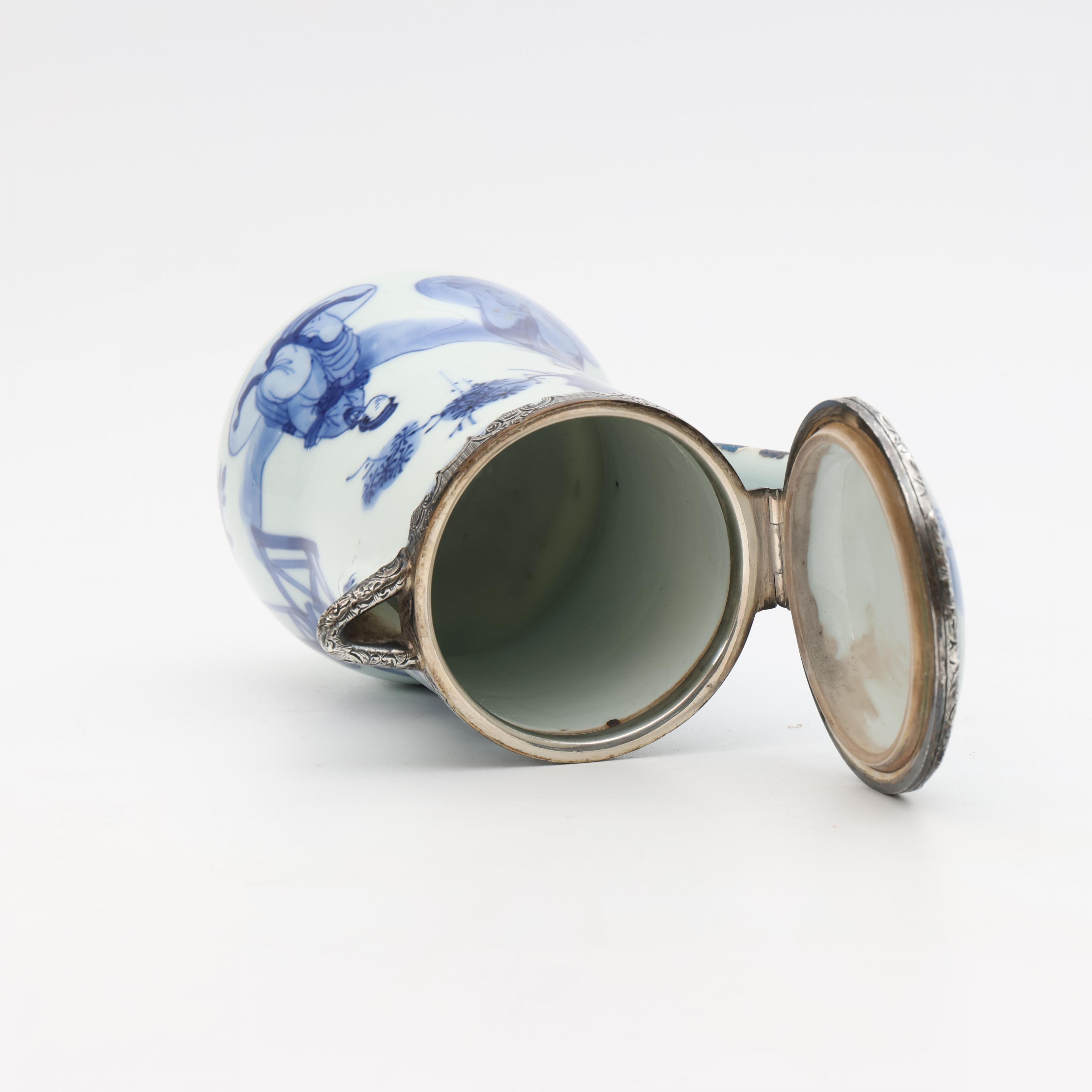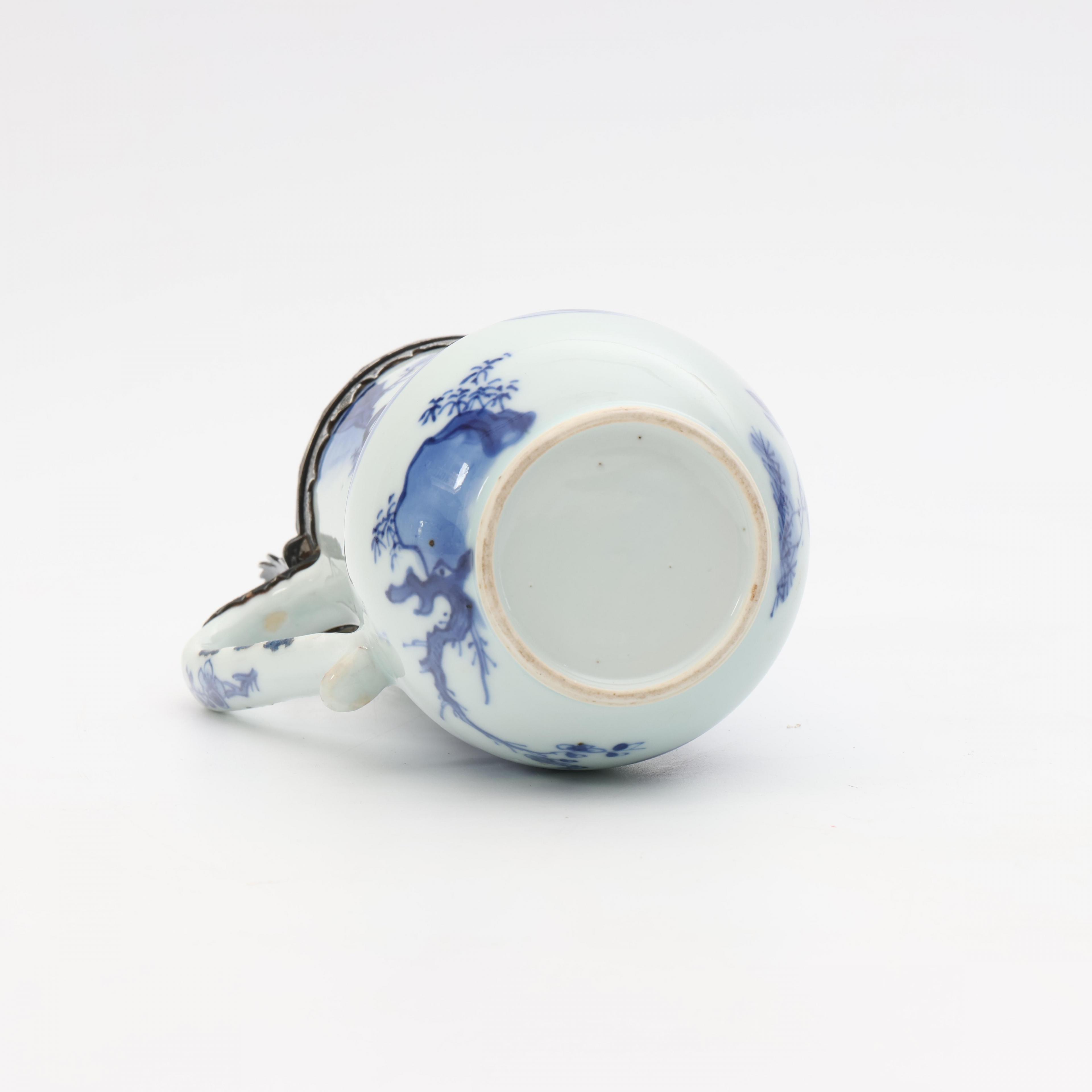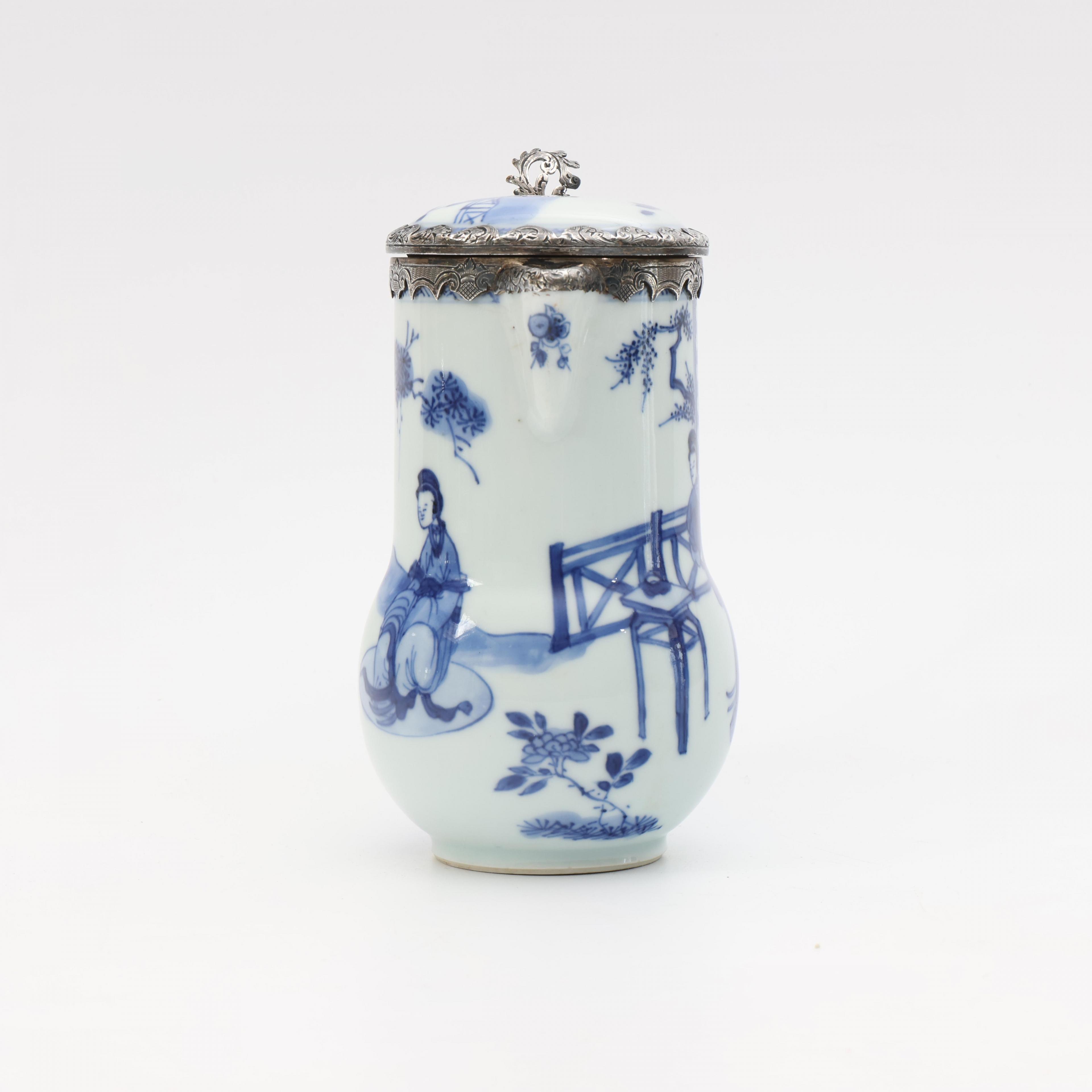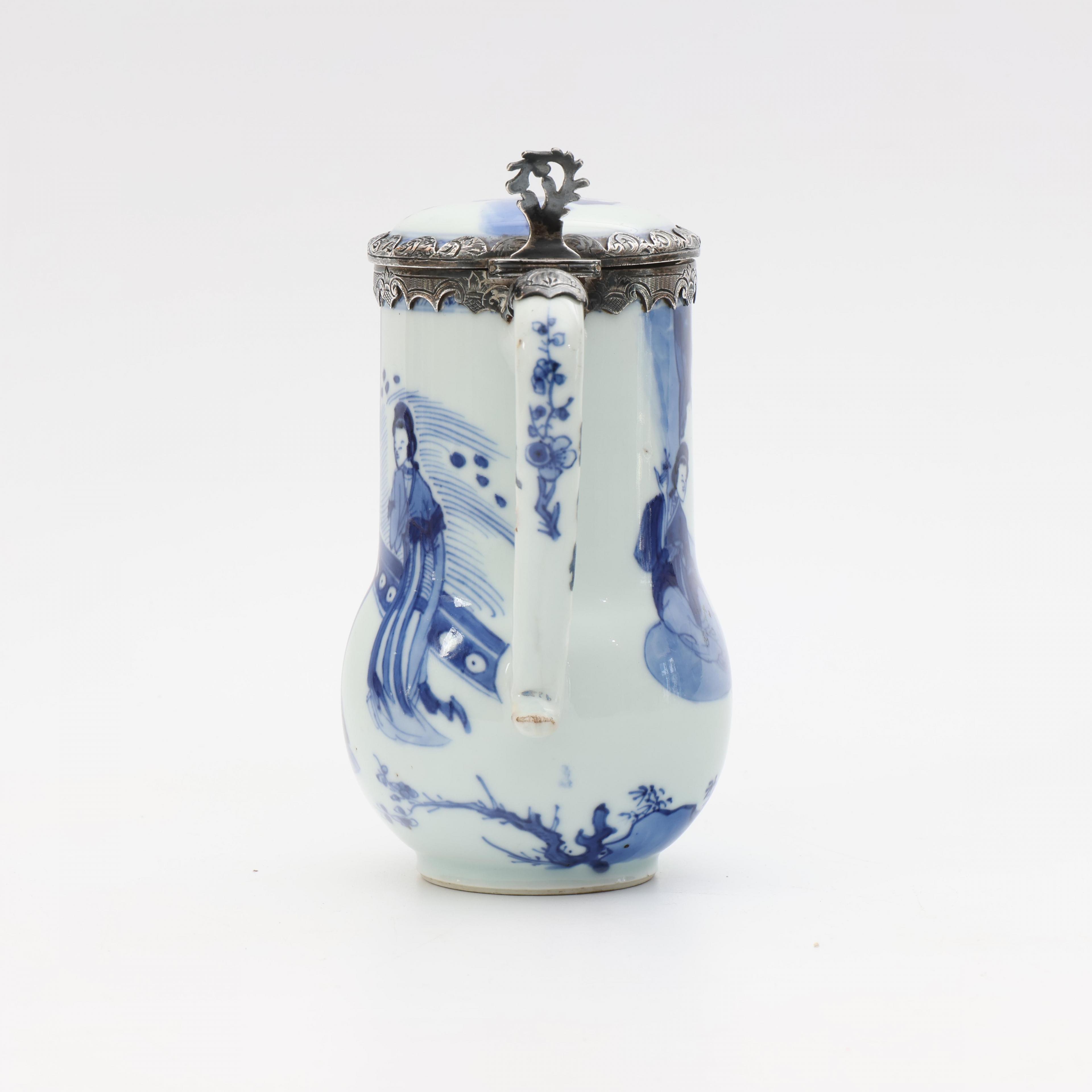 China, a silver-mounted blue and white porcelain milk-jug and cover, Kangxi period (1662-1722),