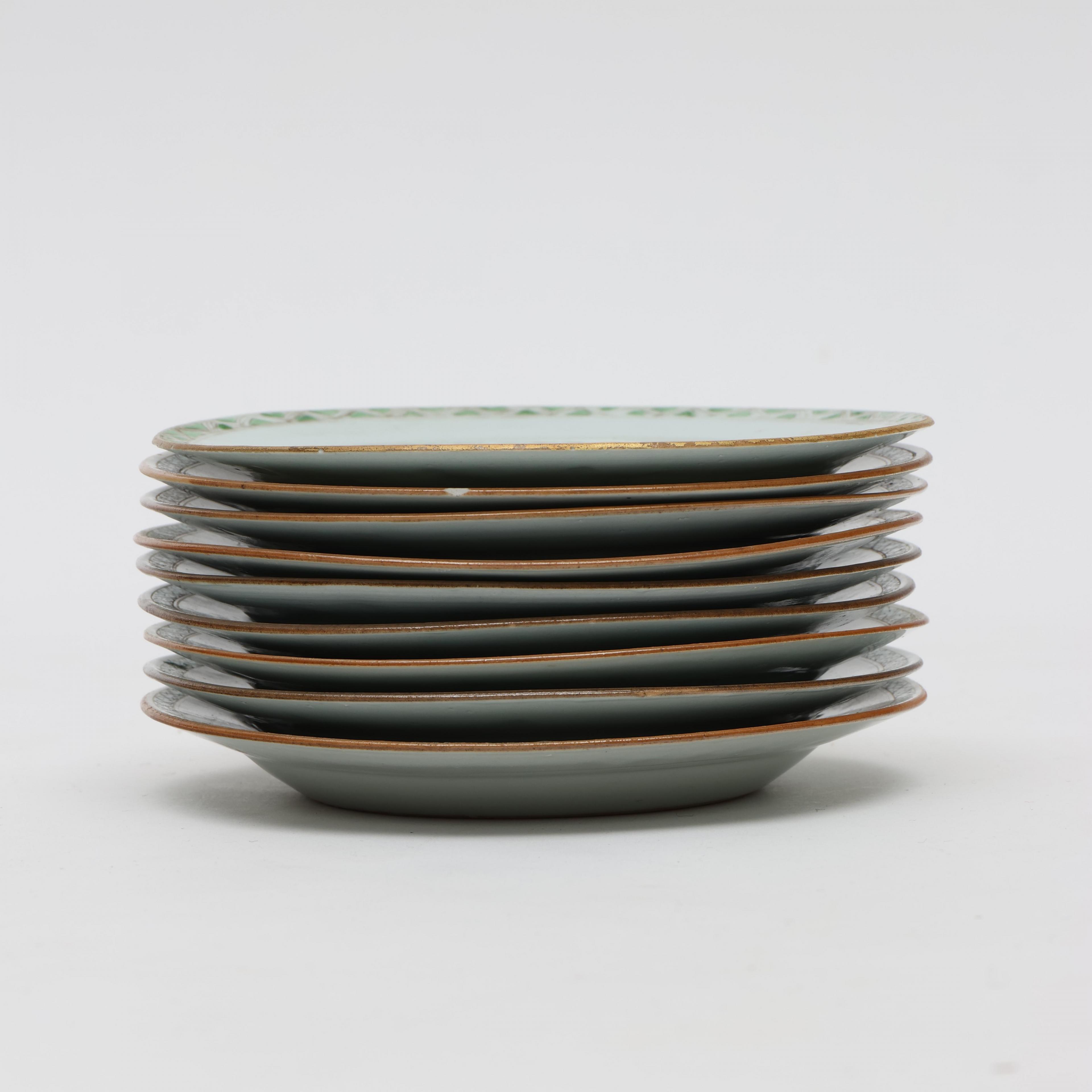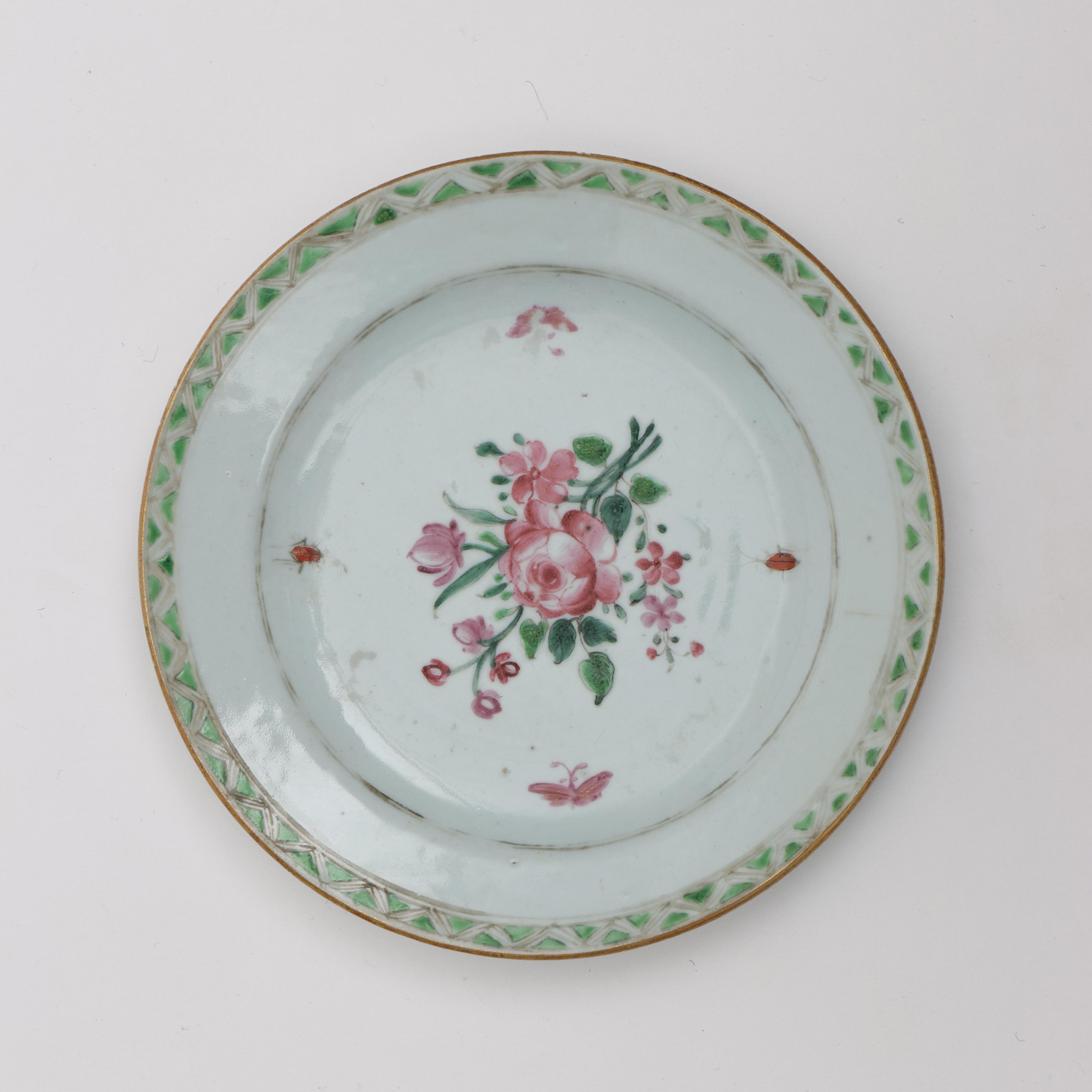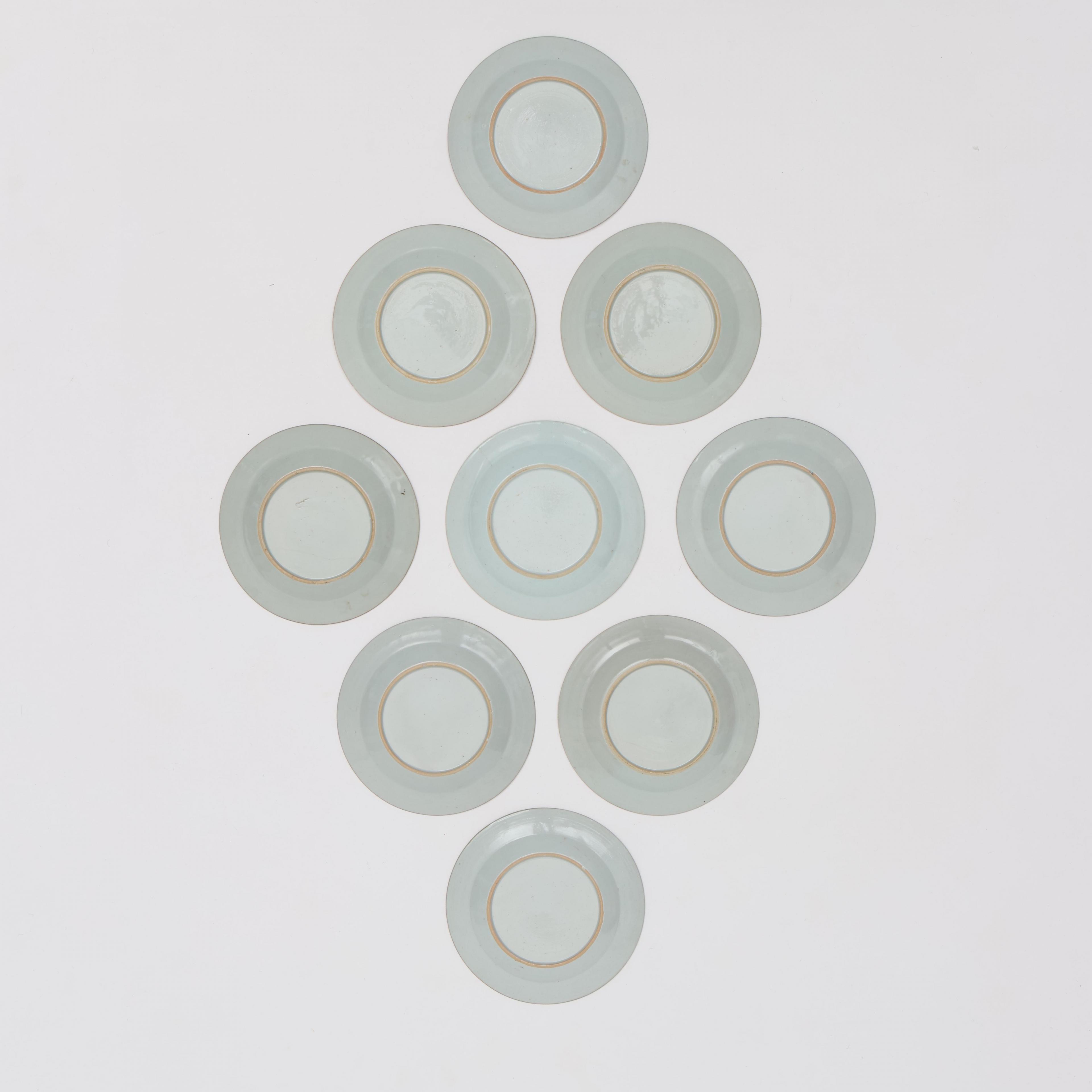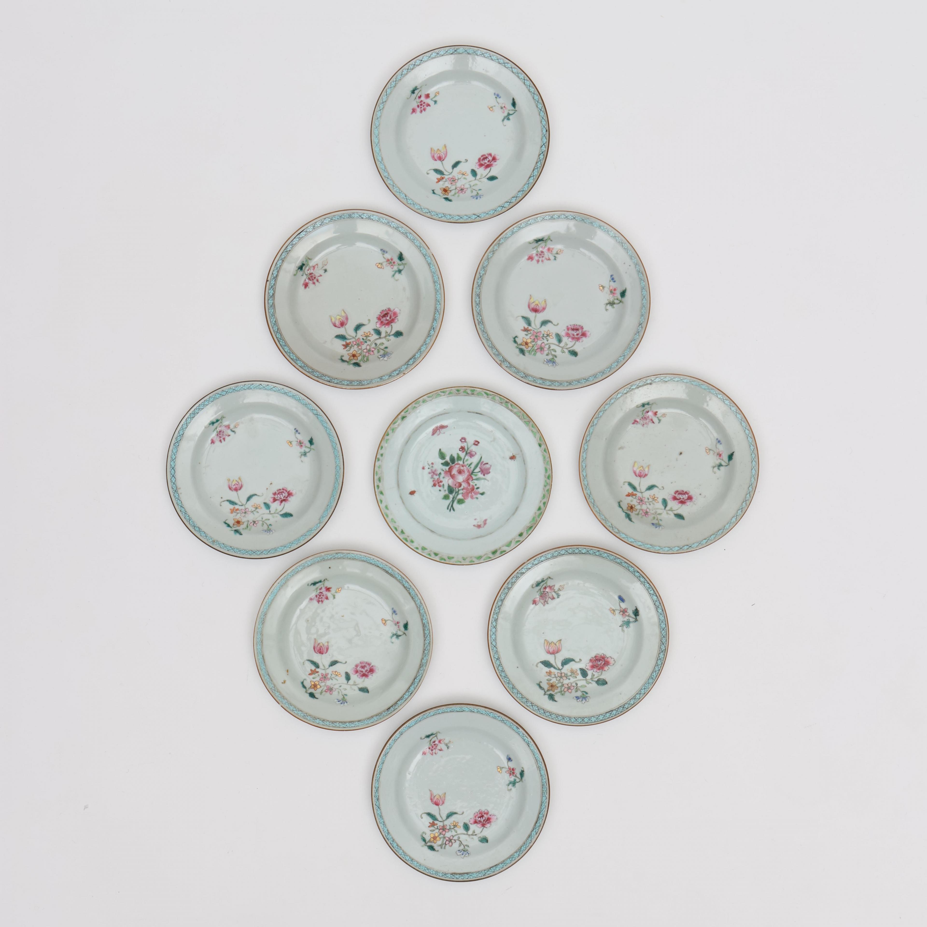 China, a set of eight and a single famille rose porcelain saucer dishes, Qianlong period (1736-1795),