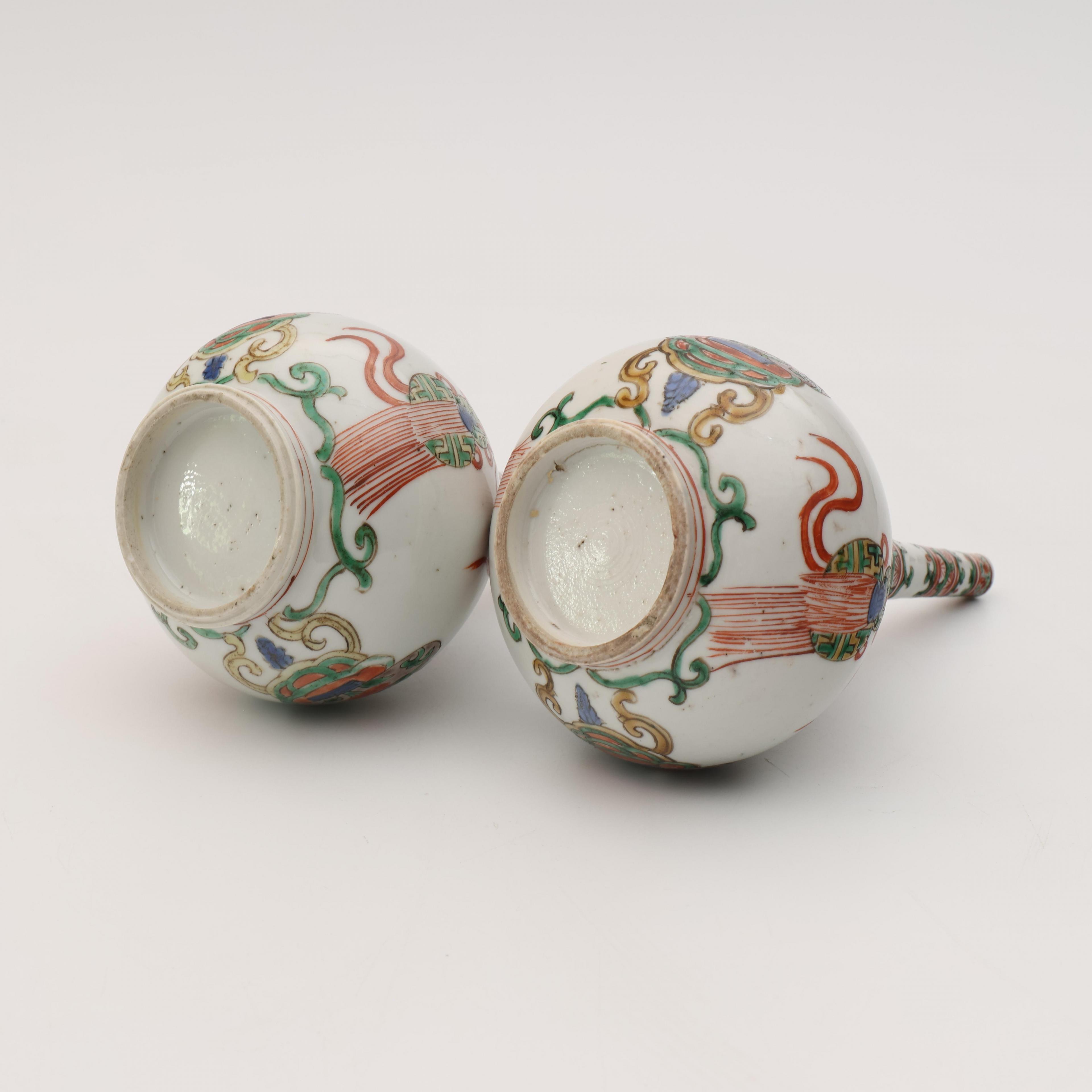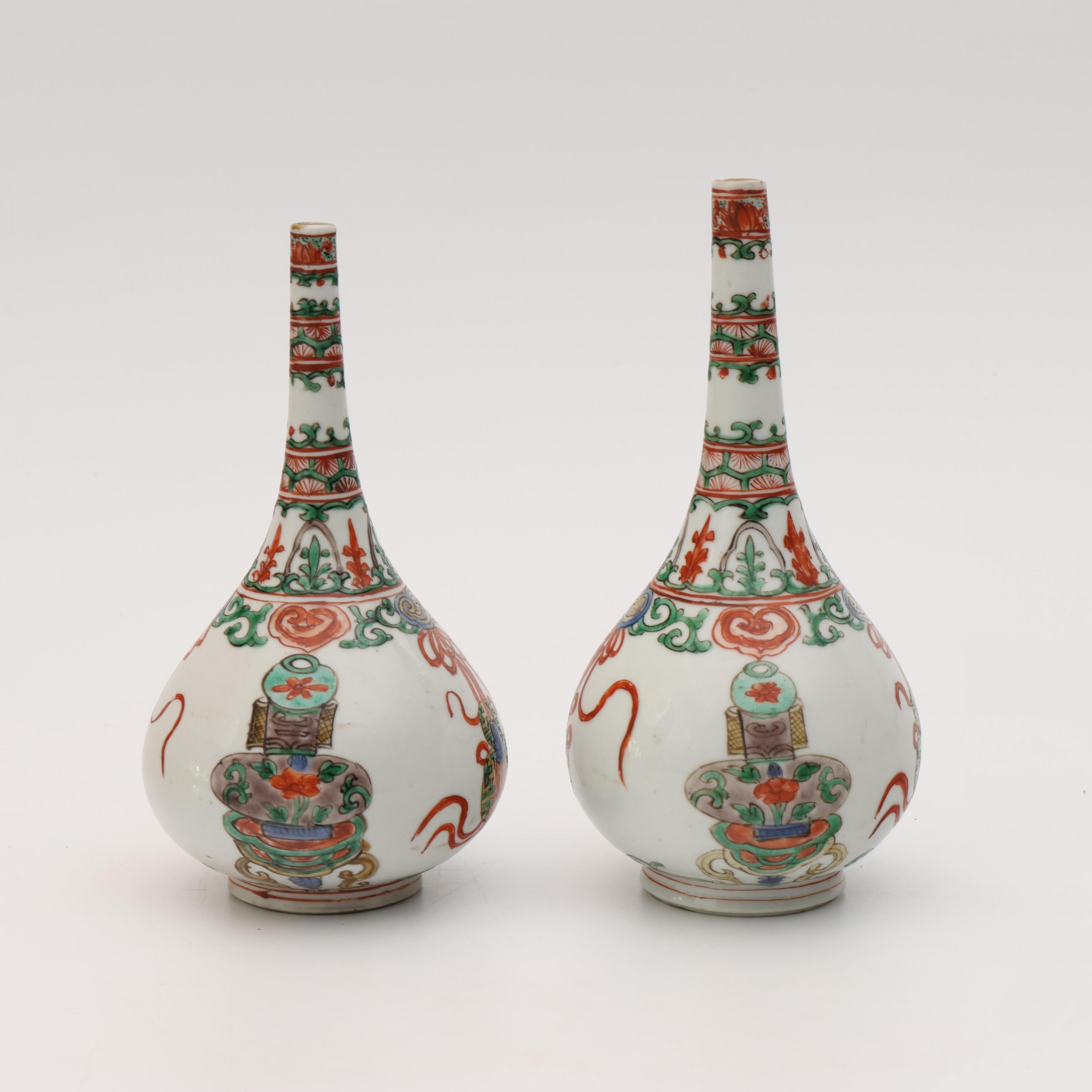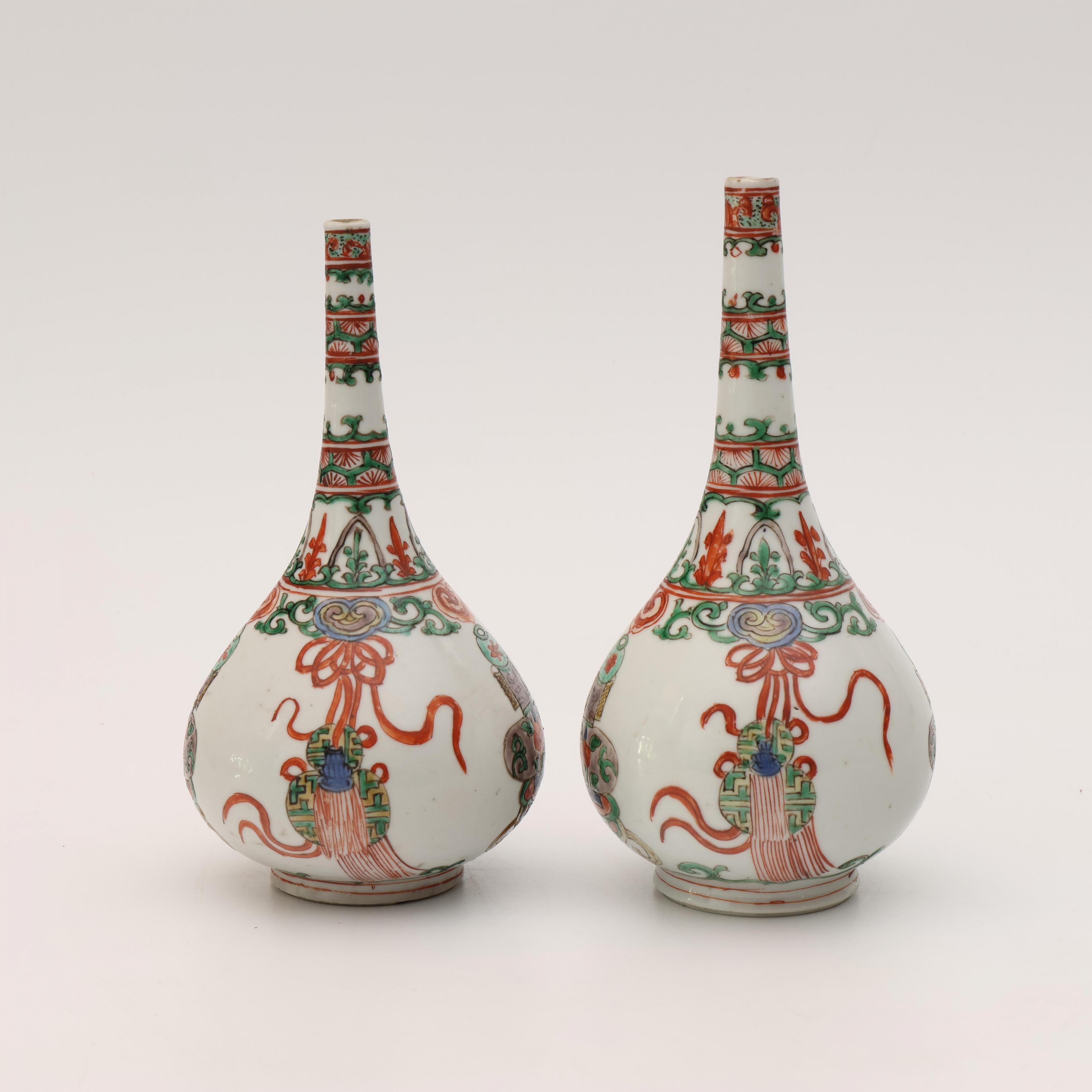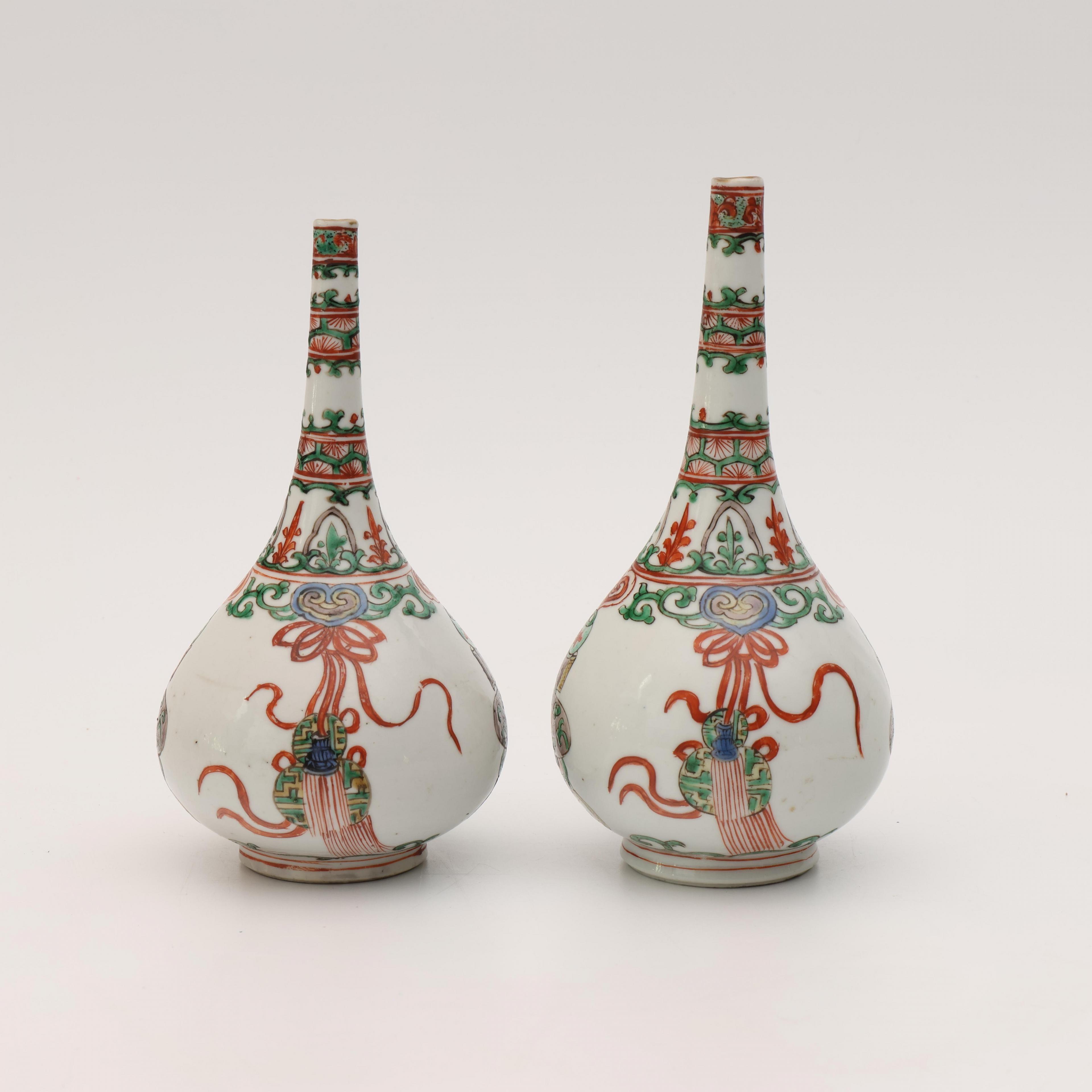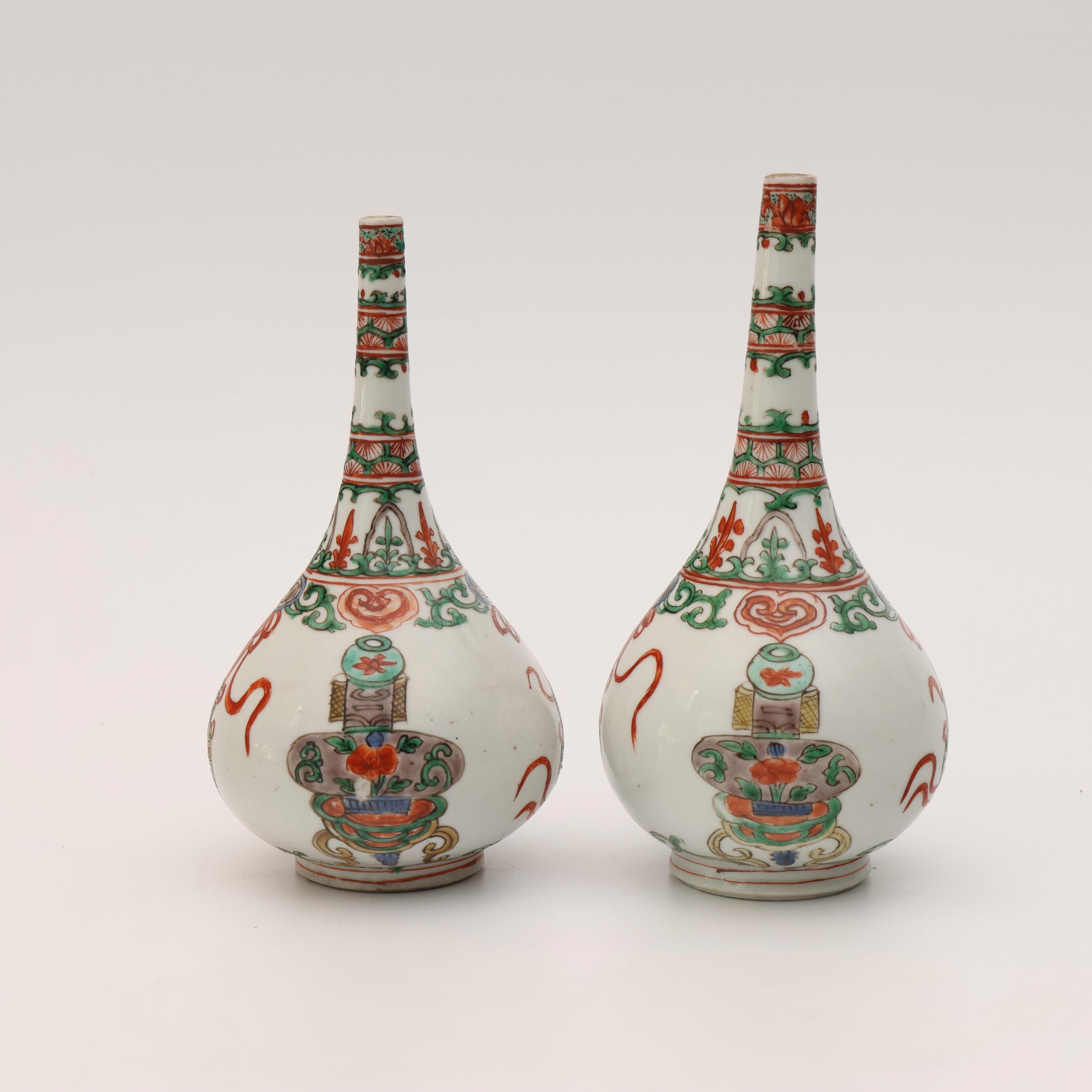 China, a near pair of famille verte porcelain bottle vases, Kangxi period (1662-1722),