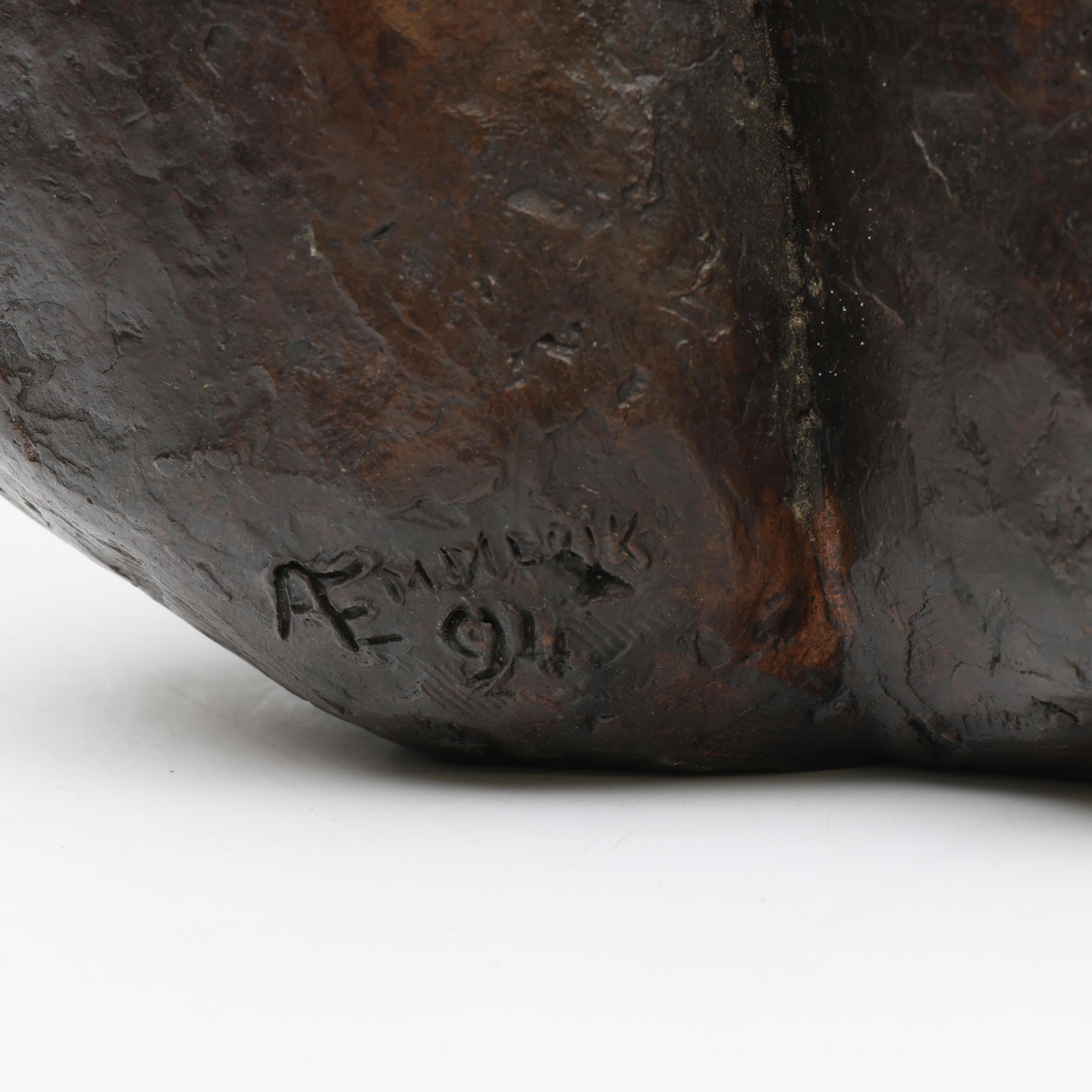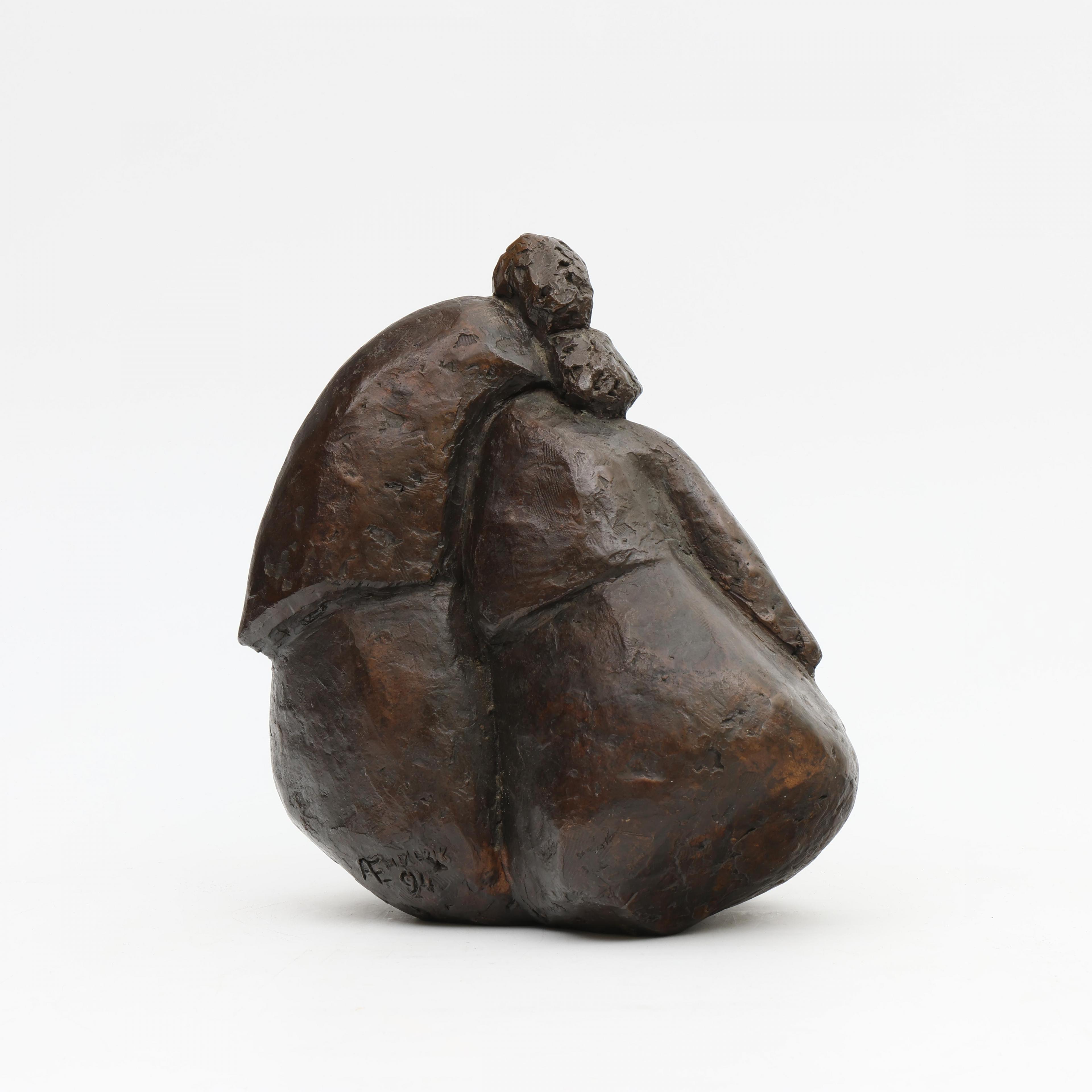 Ati Emmerik (geb. 1939), donker gepatineerd bronzen sculptuur, 'Moederliefde', 1991;