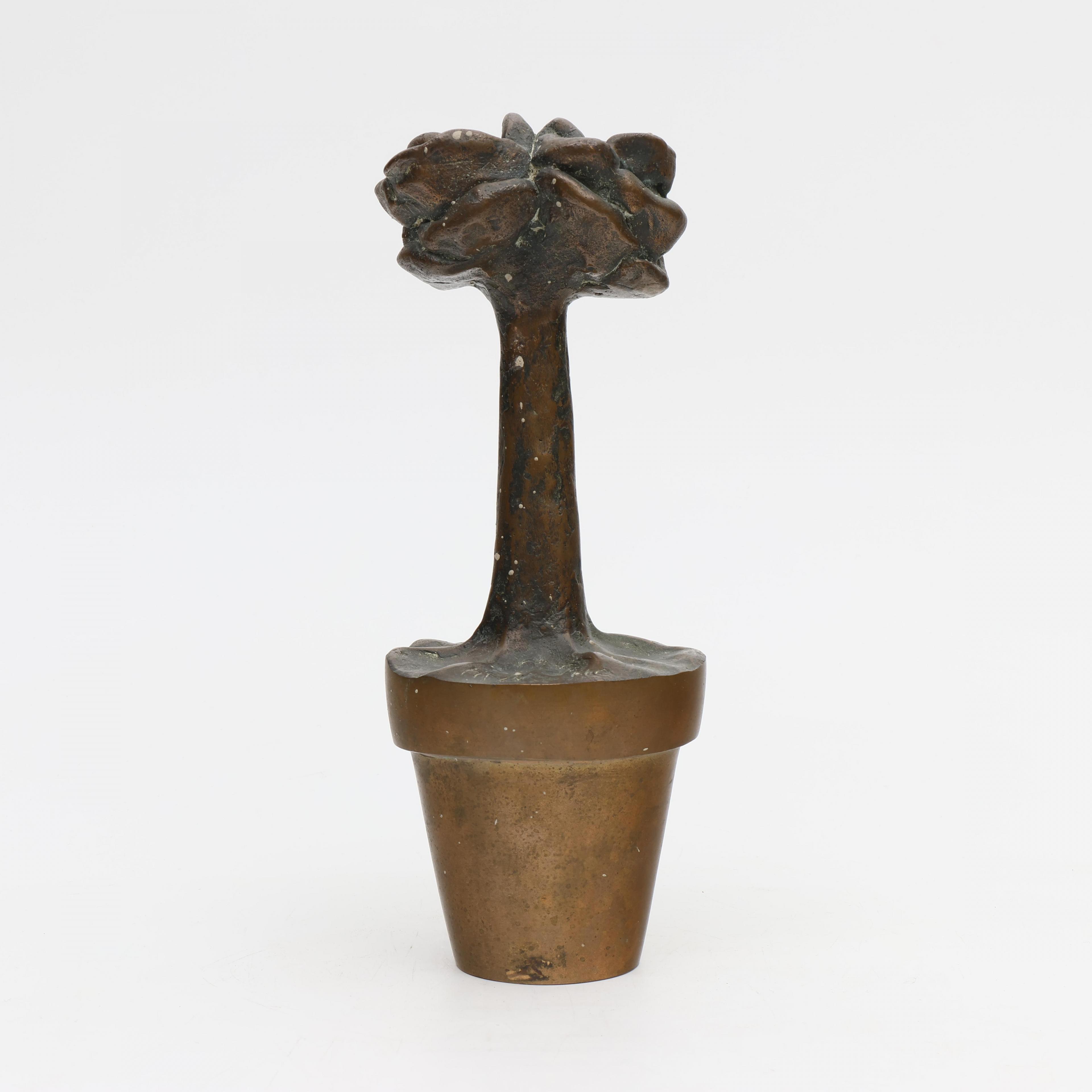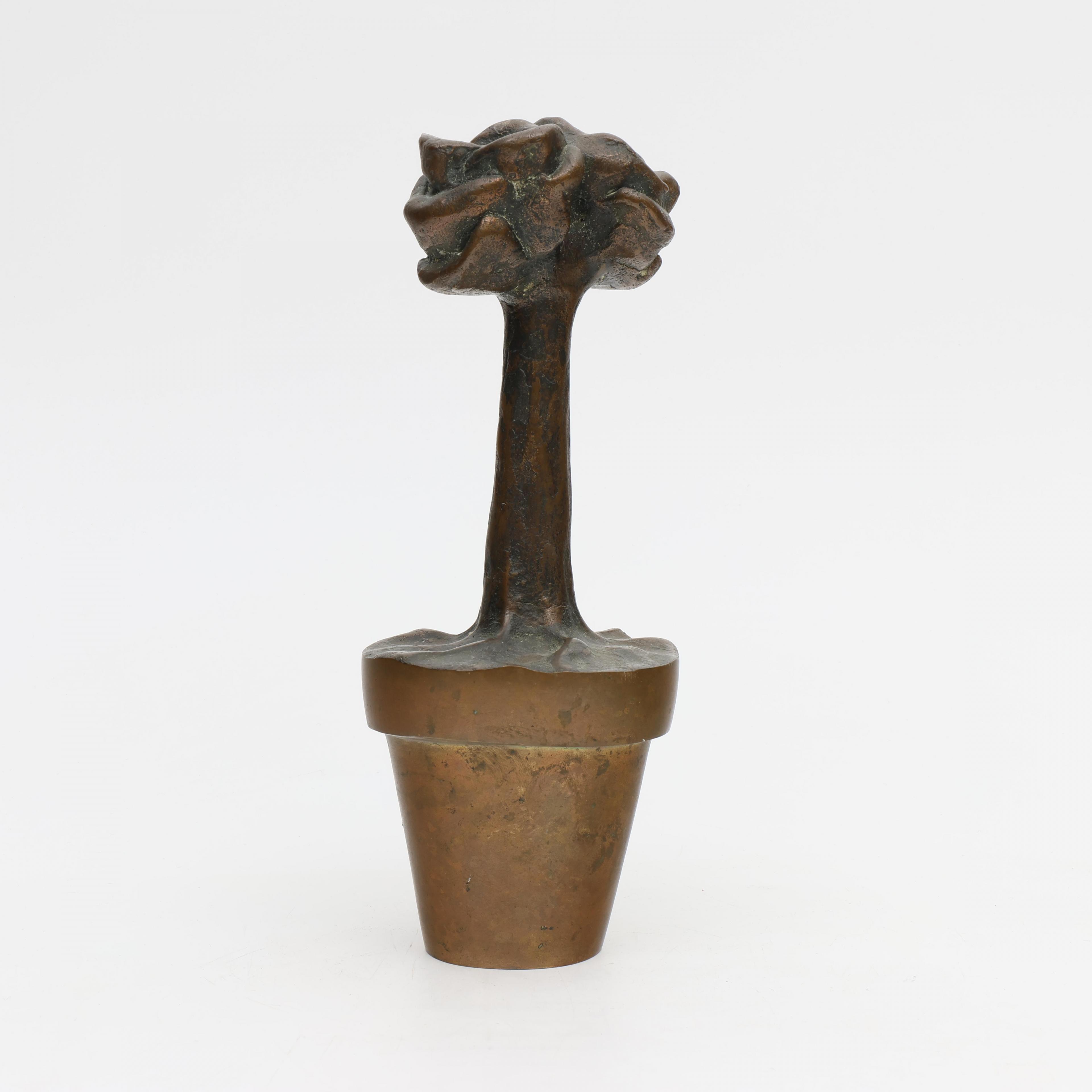 Bruin gepatineerd bronzen sculptuur, 'bloemen in bloempot', 1975;