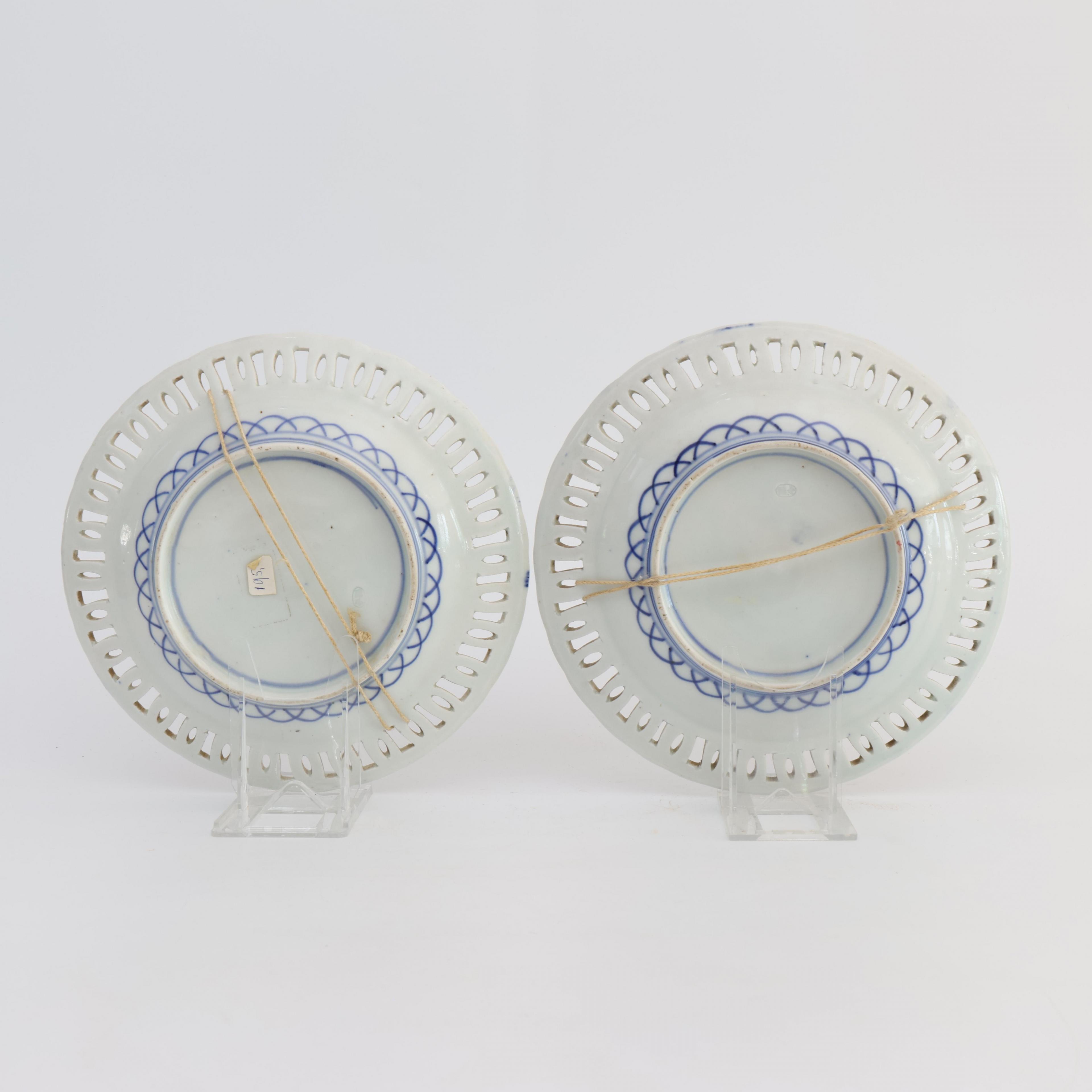 each with openworked rim and painted with flowers, each with impressed seal mark