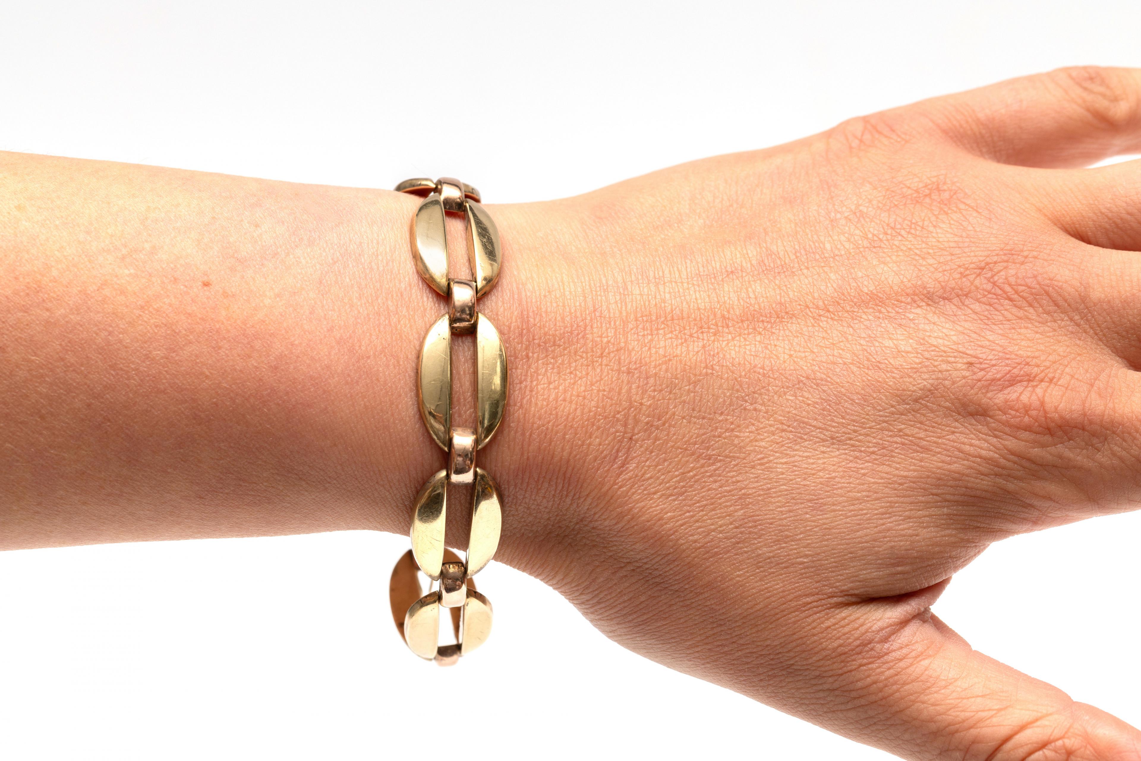 14 k. Gold bracelet, 1930s-1940s. Made of oval yellow gold links connected by red gold connectors.