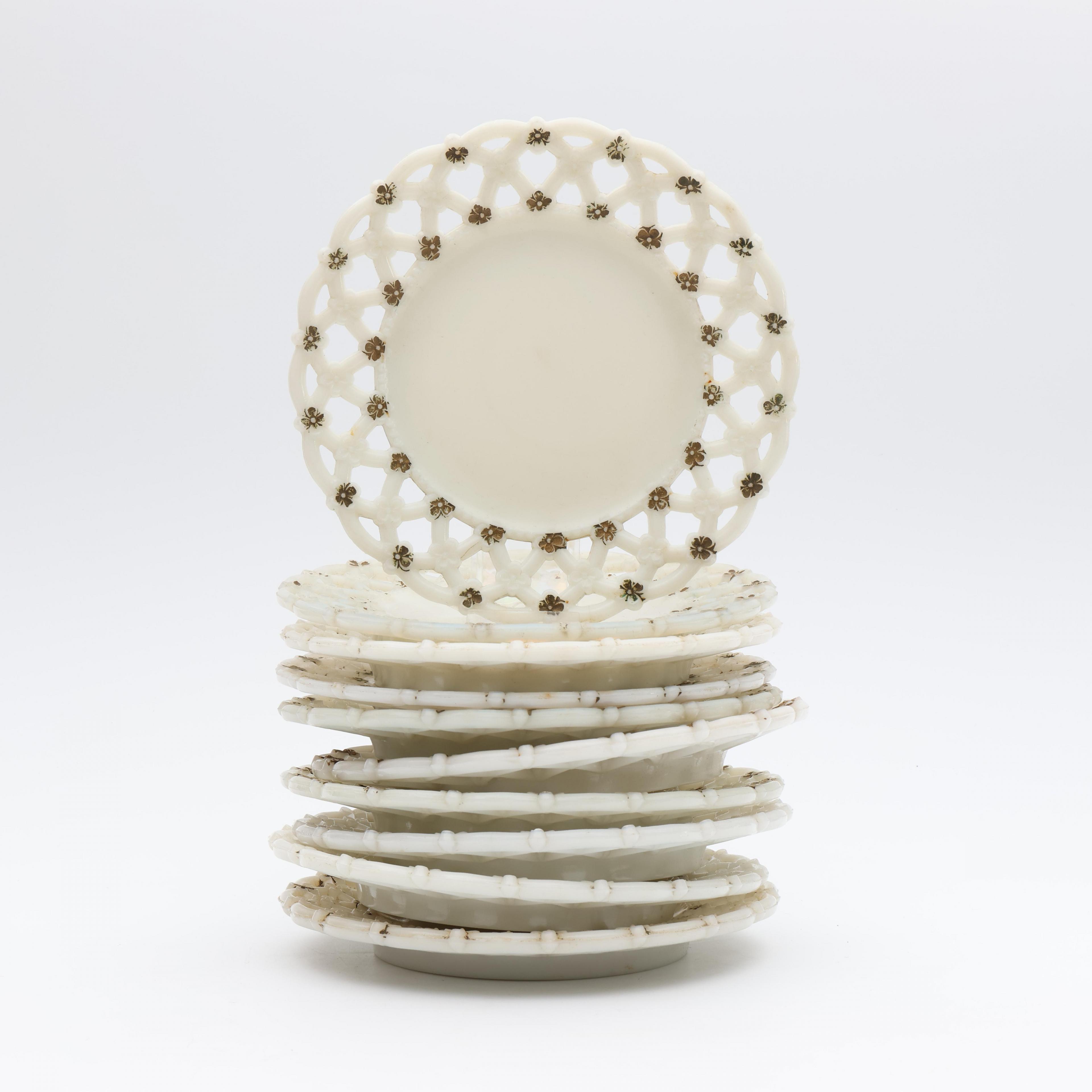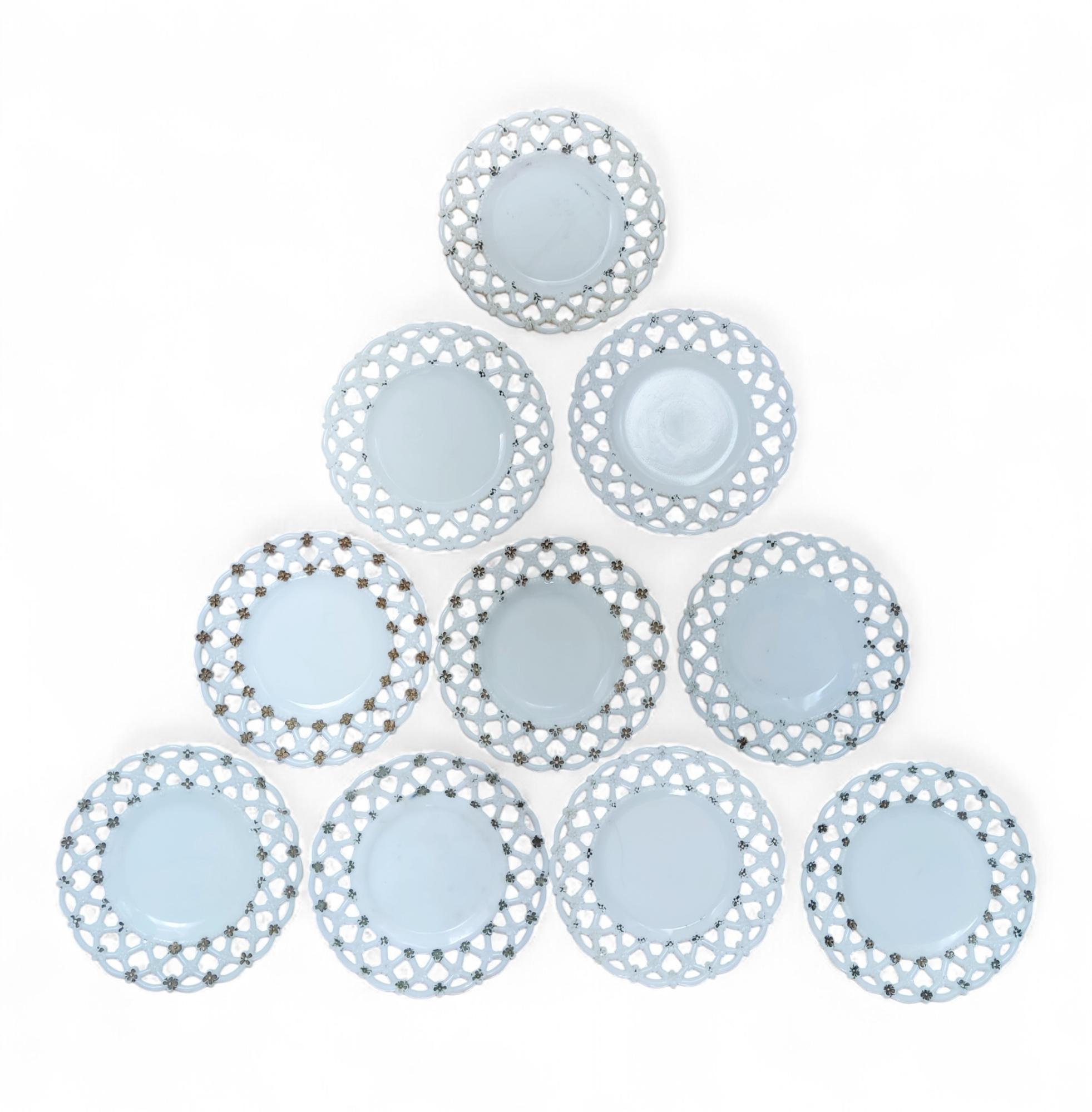 Frankrijk, tien persglazen iriserende schotels, ca. 1900;